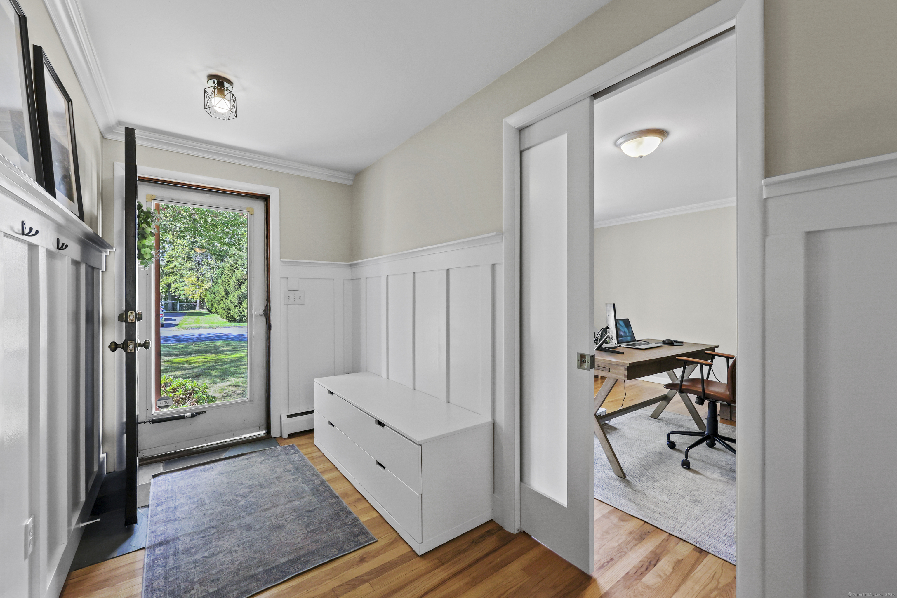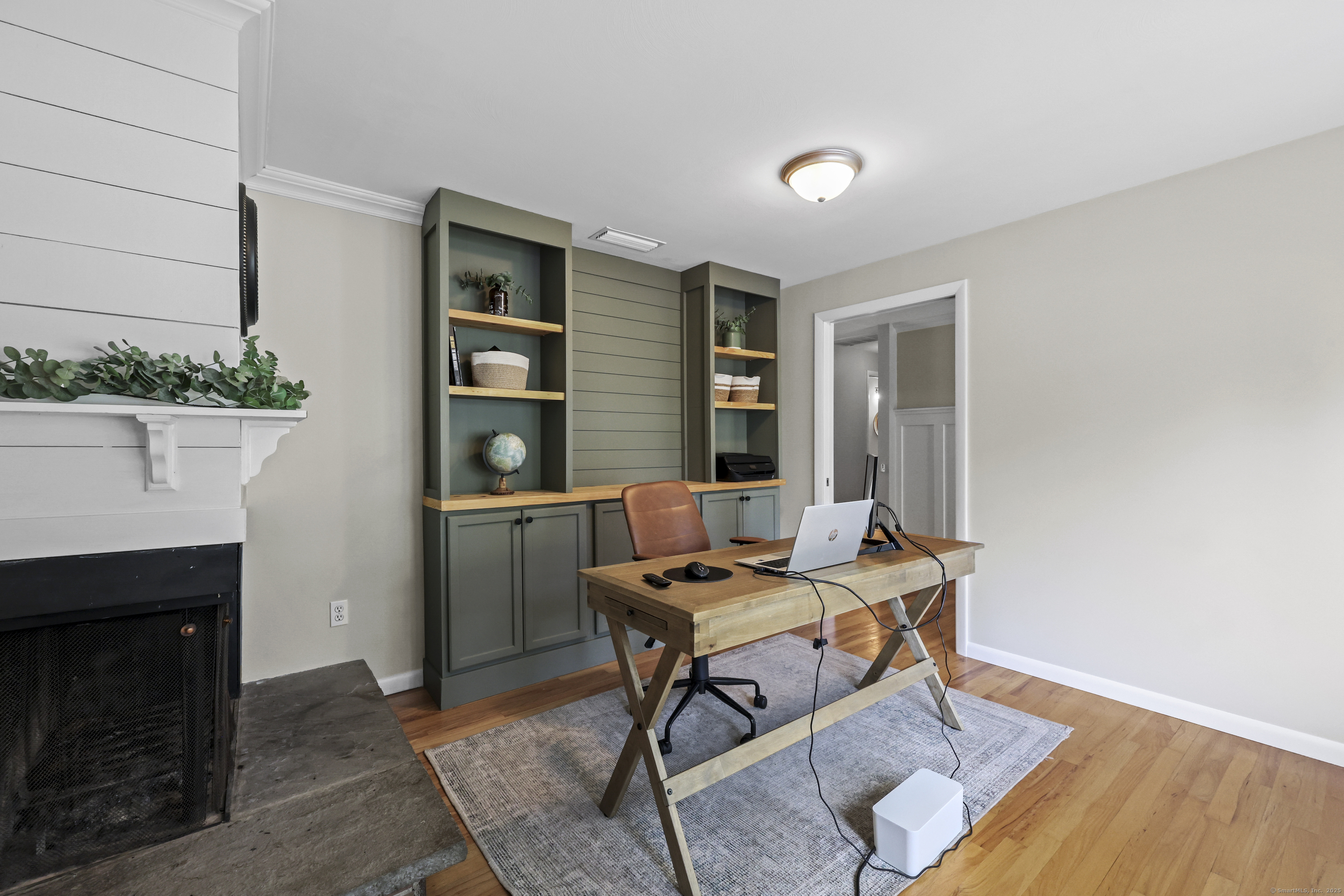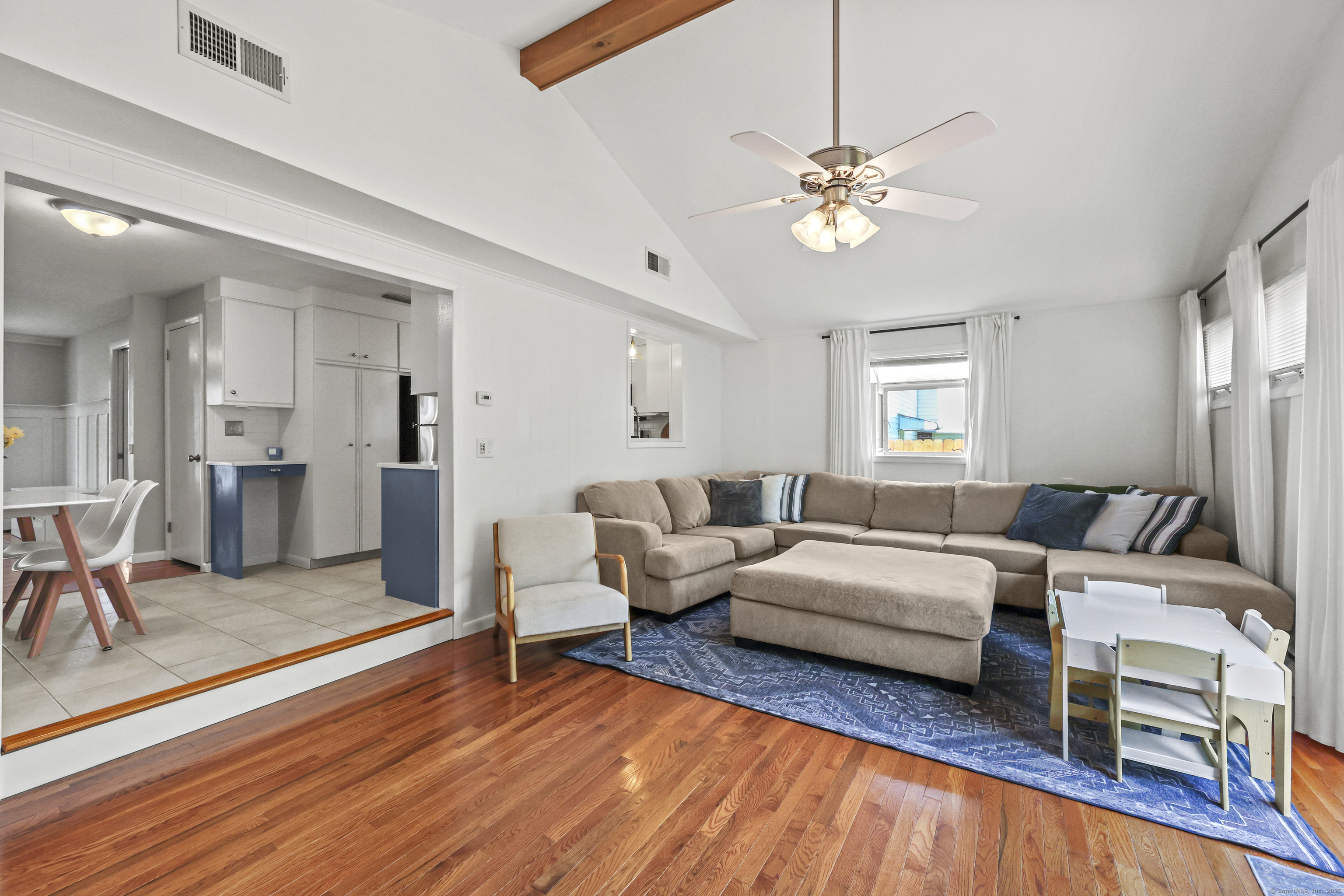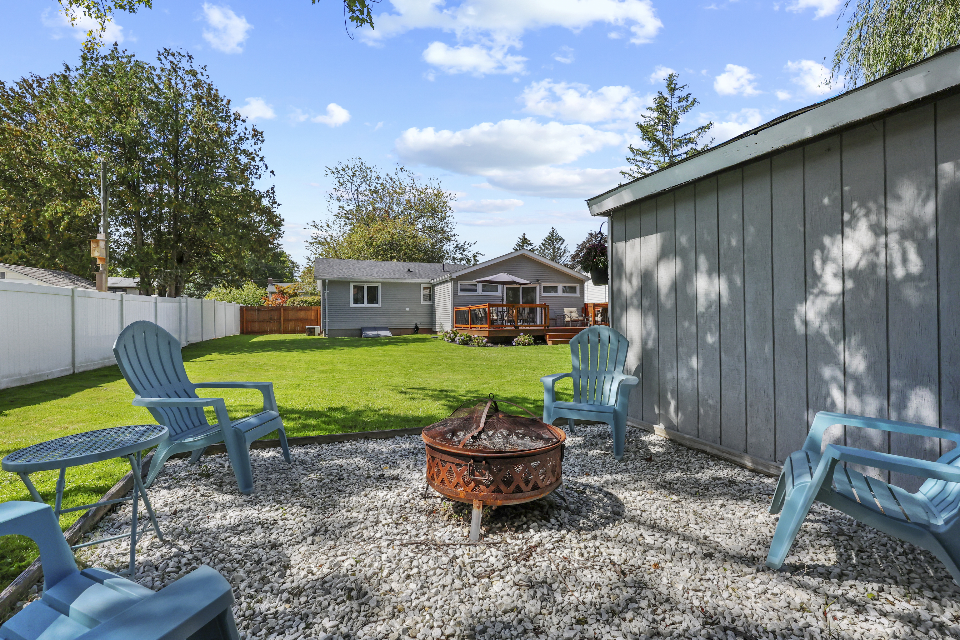 Welcome to this meticulously maintained and move in ready 3 bedroom Ranch style home in a very desirable location. Upon entering you are lead to the thoroughly remodeled kitchen with quality features, including quartz counters and stainless steel appliances. It is open to the spacious, bright and inviting living room with vaulted ceiling and sliders that open to a large deck overlooking the lush green lawn. The fenced in yard adds to privacy for grilling or even just being a fun place to sit. Both the third bedroom and the dining room with fireplace are good locations for an office if needed. Gleaming hardwood floors reveal that this home has been well loved and cared for. Roof replaced in 2021. Basement has ample storage. Come preview this home and make it yours!