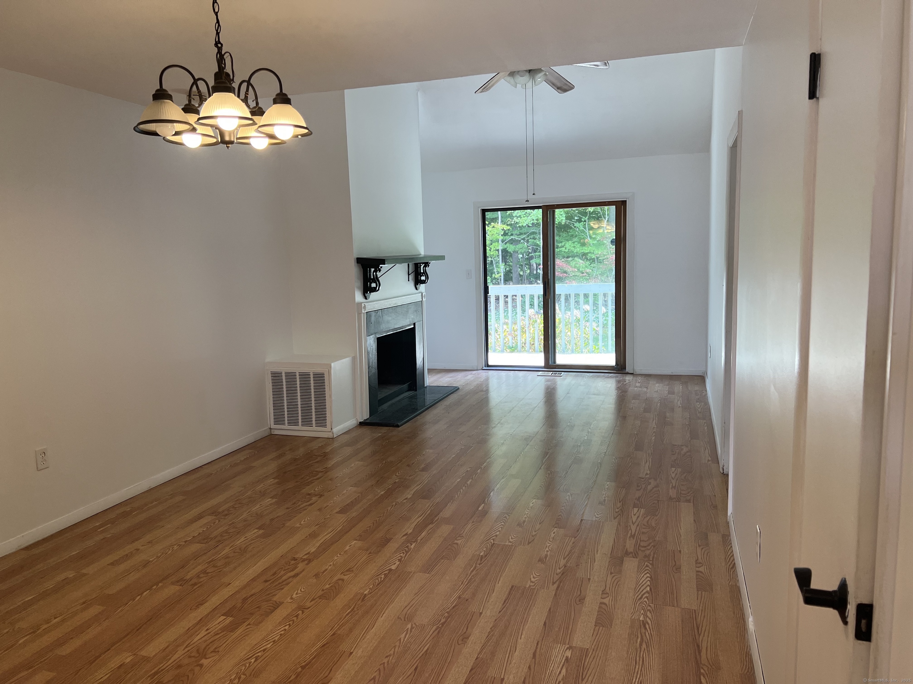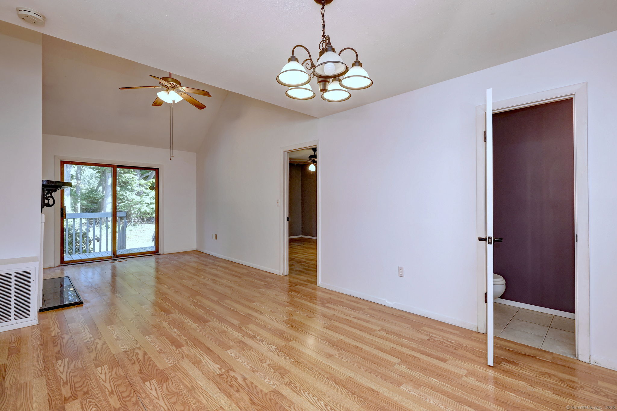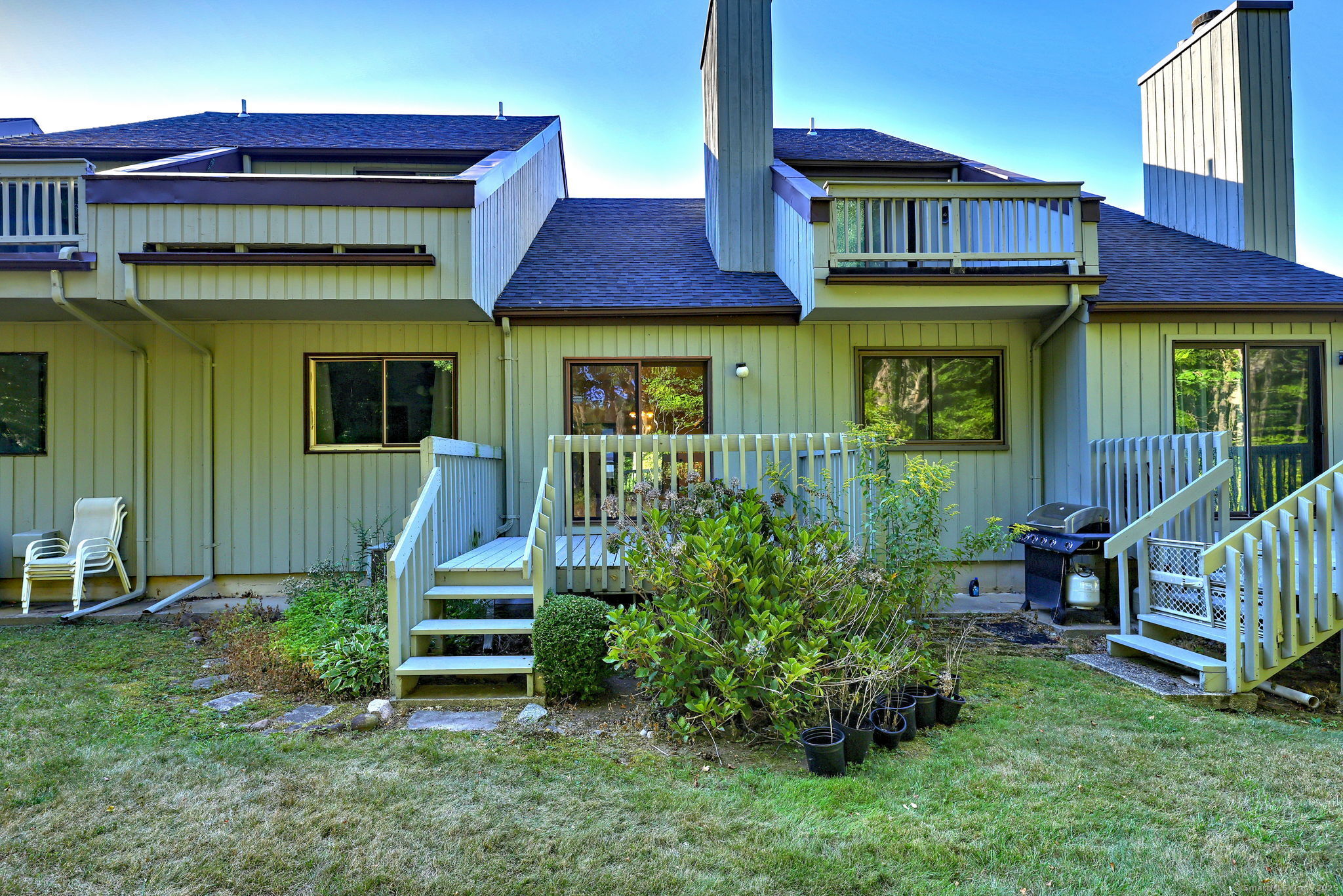 Nestled into the complex, near the pool and clubhouse, this unit has a view of nature and privacy from its deck. Step into this light-filled condo featuring an open floor plan that seamlessly connects the living and dining areas. This unit needs updates, but having this layout with three bedrooms, plus looking out onto woods and not another condo, it is worth the effort! The vaulted ceilings and cozy fireplace create a warm, inviting atmosphere, while sliding glass doors lead to a private deck-ideal for entertaining or unwinding. The fully applianced kitchen offers convenience and functionality. The first-floor primary bedroom includes a full en-suite bath for added comfort and privacy. A half bath is also located on the first floor for guests. Upstairs, you'll find two bedrooms, a full bath, and a versatile loft overlooking the living room-ideal for a home office, reading nook, or creative space. The spacious basement provides ample room for a family or media room, plus plenty of storage. Laundry is conveniently located in the basement. The unit is heated by natural gas, but the central air conditioning condenser is not working and needs to be replaced. Enjoy two assigned parking spaces and abundant guest parking. Bring your decorating ideas and make this gem truly shine!