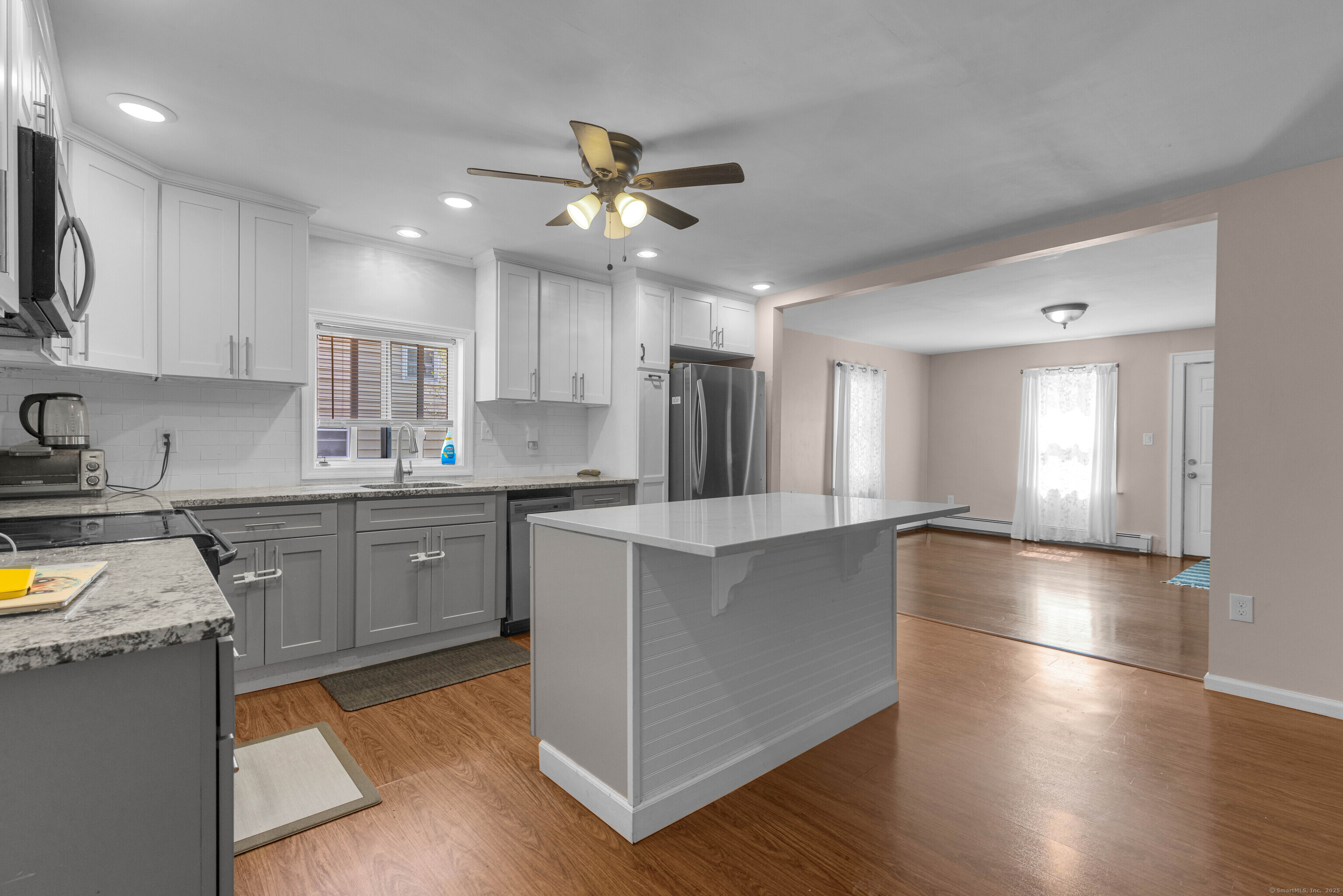 Beautiful two level Three Bedroom home that has been totally renovated, Newer Kitchen, new cabinets, Island in the middle of the Kitchen with stone counter tops, hardwood floors gleaming throughout entire home, Stainless steel appliances, two full bathrooms totally remodeled. The basement has expansion possibilities. This house sits on a level .25 acreage parcel looking for your landscape imagination.