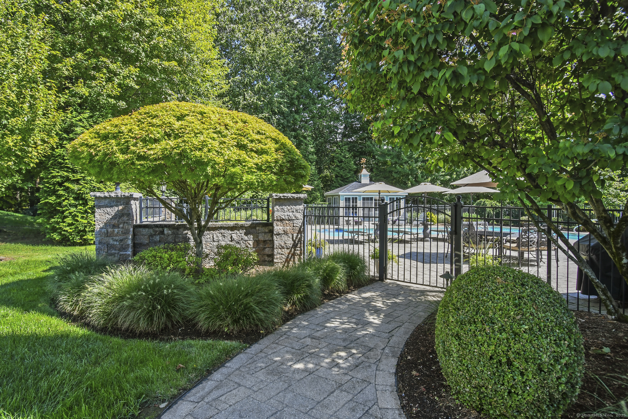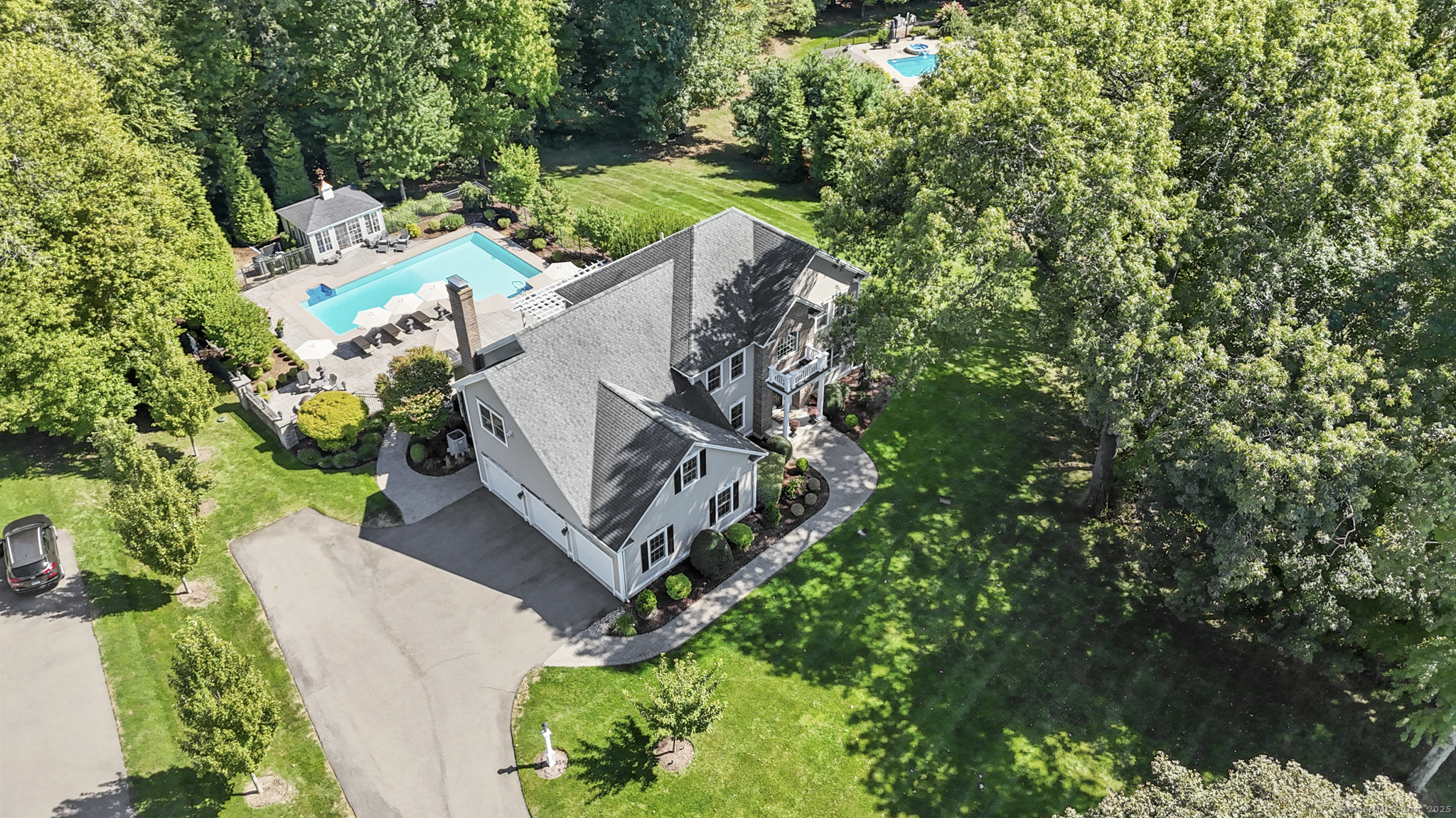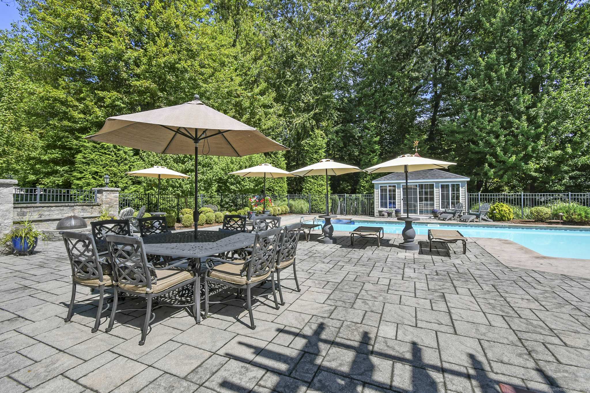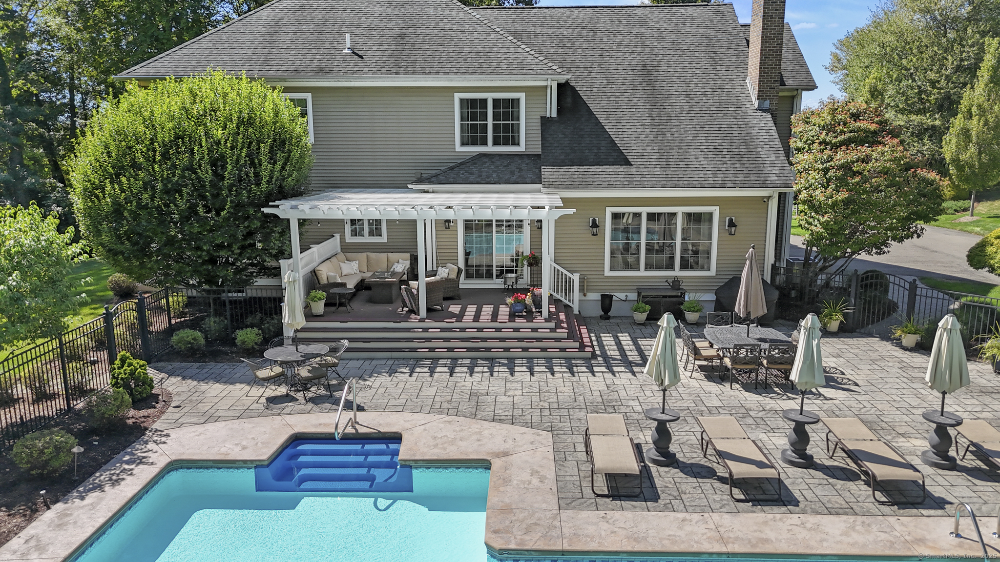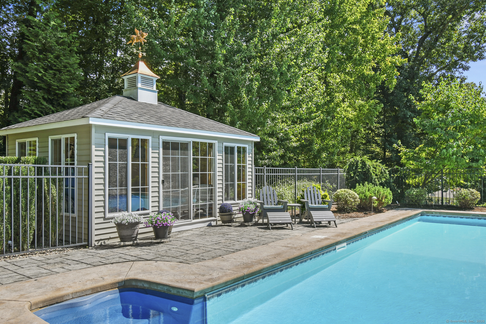 Exquisite Colonial with Pool, Finished Basement & Elegant Finishes. Welcome to this beautifully maintained 4-bedroom, 3.5-bath colonial, perfectly situated on 1.4 private acres at the end of a quiet cul-de-sac. From the moment you step inside, you'll be greeted by gleaming hardwood floors, crown molding, and wainscoting that flow seamlessly throughout the home, creating an atmosphere of timeless elegance. The spacious floor plan offers a perfect blend of formal and casual living spaces. The updated primary suite is a true retreat, featuring a newly renovated spa-like bathroom with a luxurious soaking tub and heated flooring for year-round comfort. The beautifully finished lower level expands your living space with a large living room, a full bar/kitchen, a full bathroom with shower, a dedicated exercise room, and a pantry for extra storage-all designed with the same attention to detail and beautiful finishes found throughout the home. Step outside to your own backyard oasis. The in-ground pool, pool house, built-in fire pit and expansive patios are ideal for summer entertaining or relaxing in total privacy. Meticulously maintained inside and out, this home offers the perfect combination of classic style and modern upgrades.