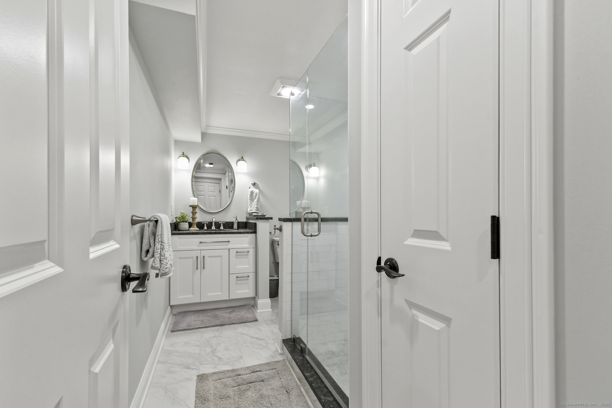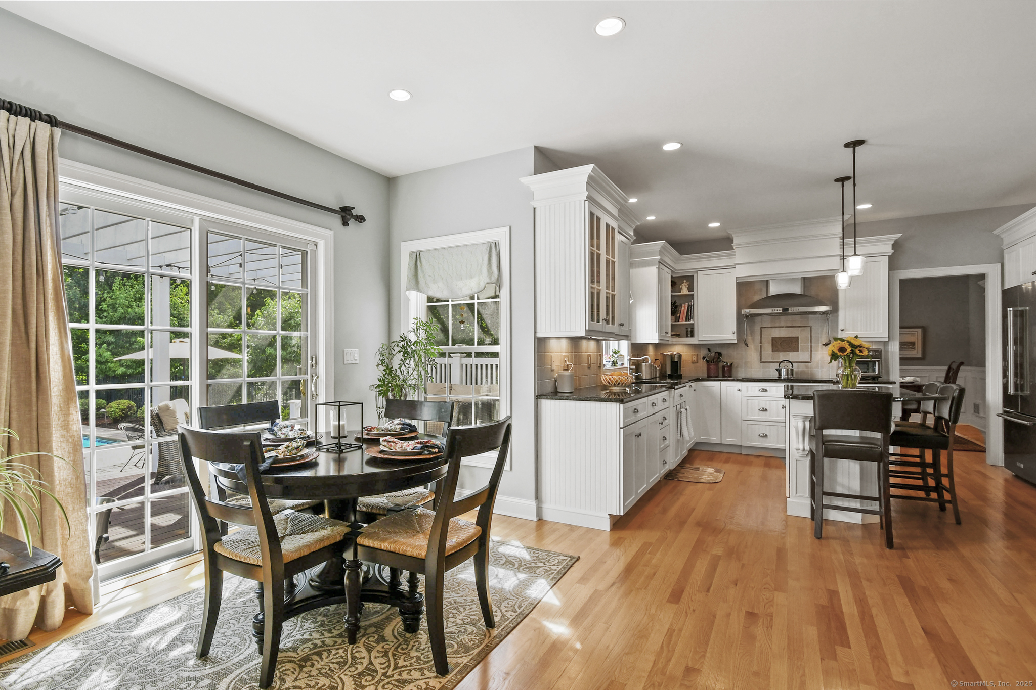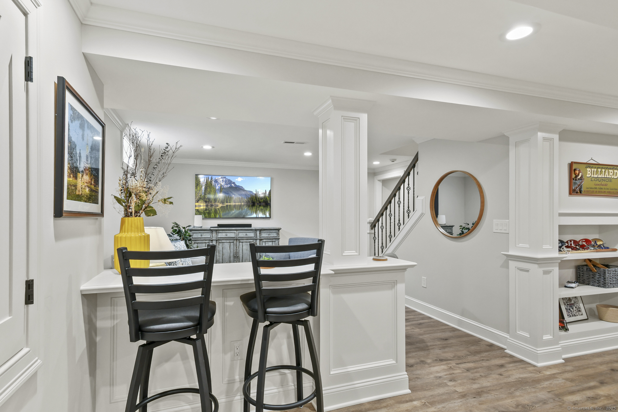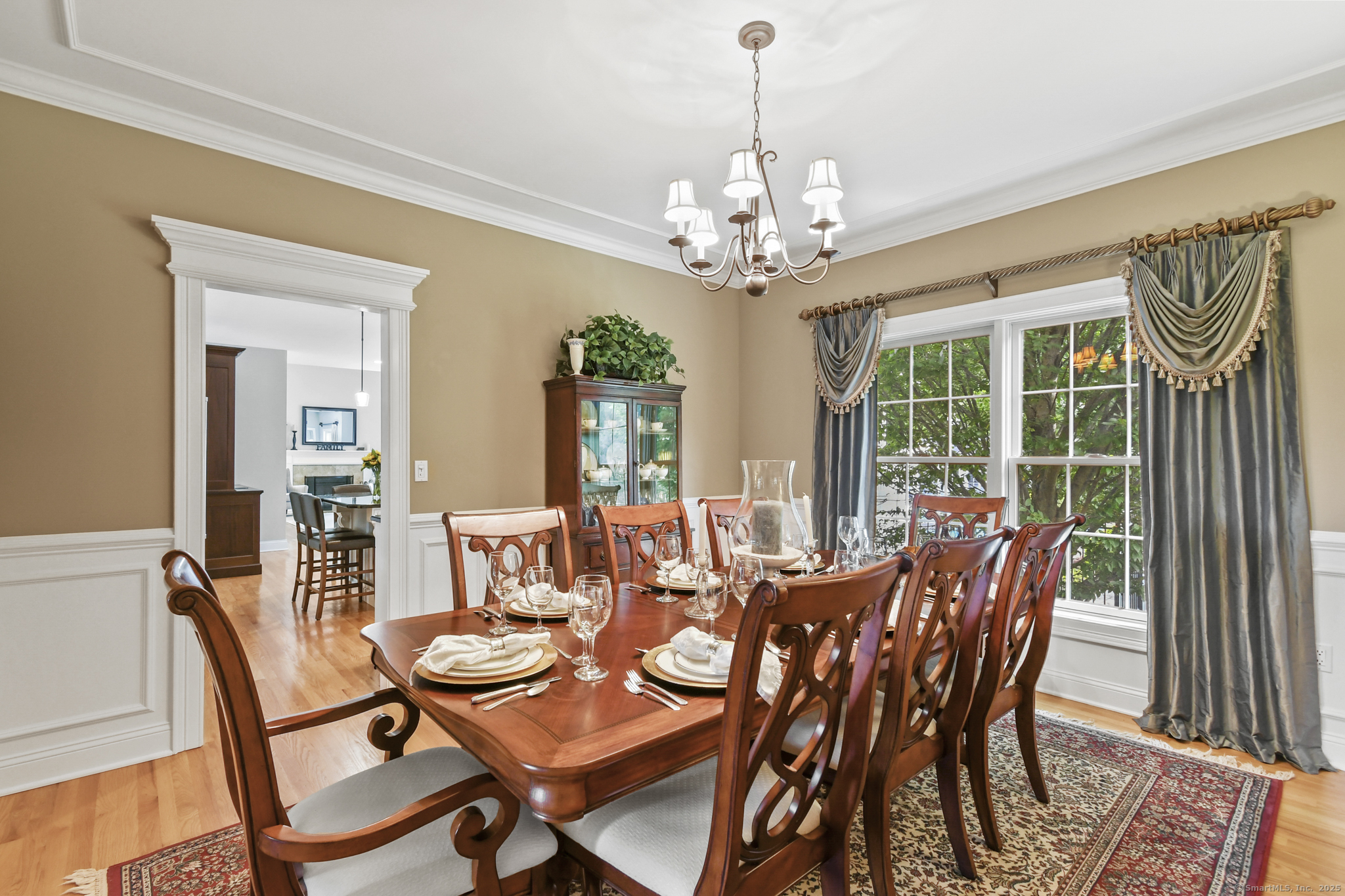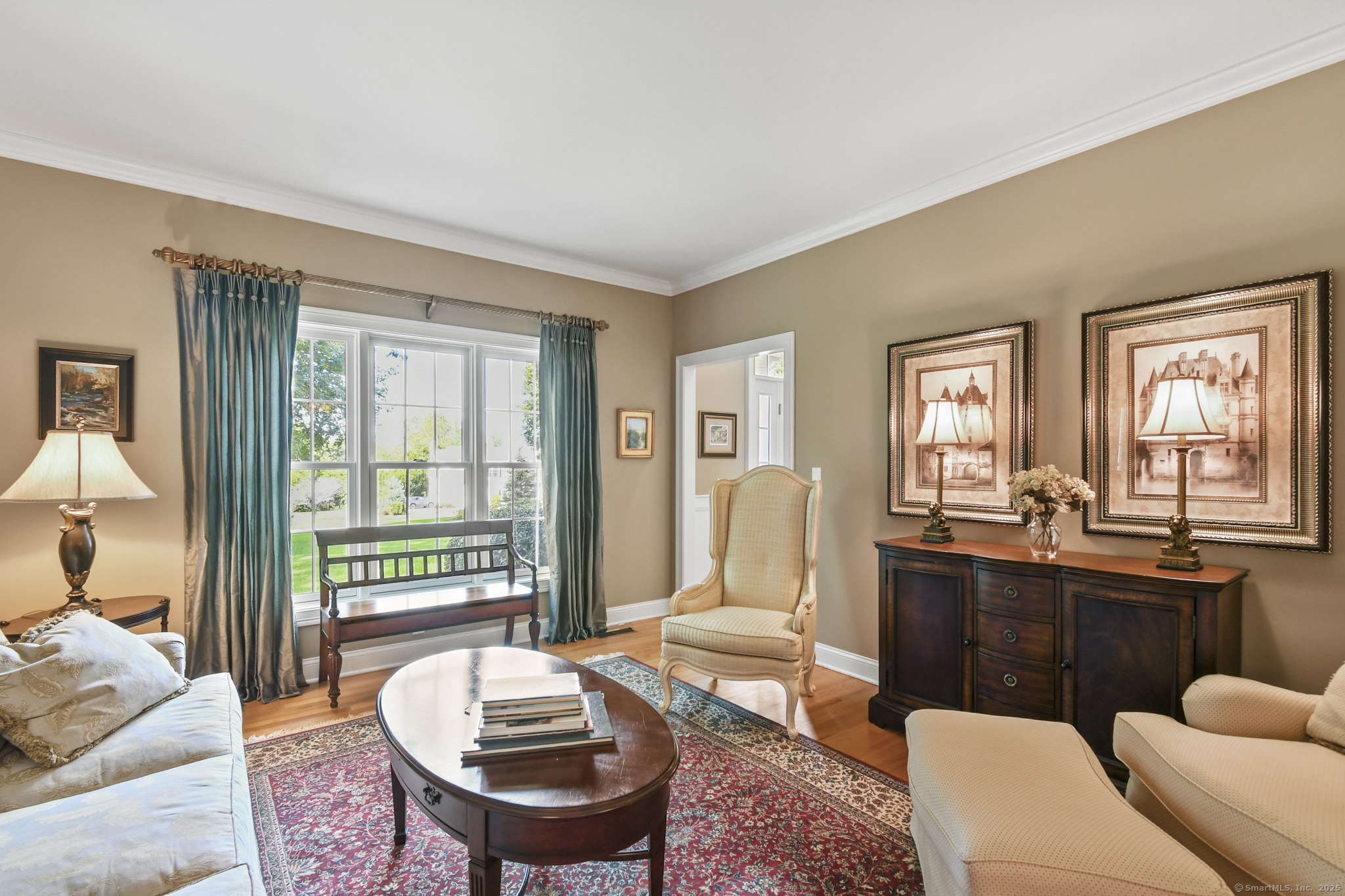 Exquisite Colonial with Pool, Finished Basement & Elegant Finishes. Welcome to this beautifully maintained 4-bedroom, 3.5-bath colonial, perfectly situated on 1.4 private acres at the end of a quiet cul-de-sac. From the moment you step inside, you'll be greeted by gleaming hardwood floors, crown molding, and wainscoting that flow seamlessly throughout the home, creating an atmosphere of timeless elegance. The spacious floor plan offers a perfect blend of formal and casual living spaces. The updated primary suite is a true retreat, featuring a newly renovated spa-like bathroom with a luxurious soaking tub and heated flooring for year-round comfort. The beautifully finished lower level expands your living space with a large living room, a full bar/kitchen, a full bathroom with shower, a dedicated exercise room, and a pantry for extra storage-all designed with the same attention to detail and beautiful finishes found throughout the home. Step outside to your own backyard oasis. The in-ground pool, pool house, built-in fire pit and expansive patios are ideal for summer entertaining or relaxing in total privacy. Meticulously maintained inside and out, this home offers the perfect combination of classic style and modern upgrades.