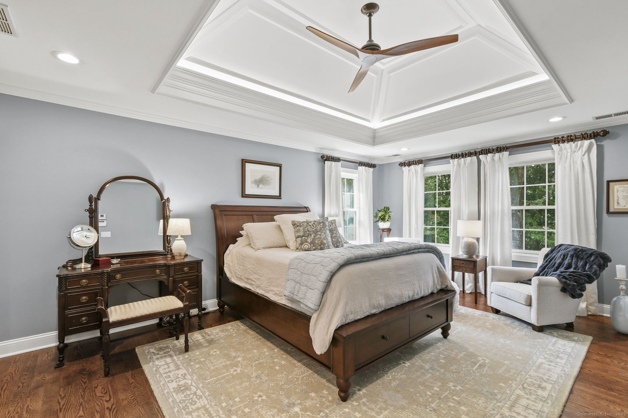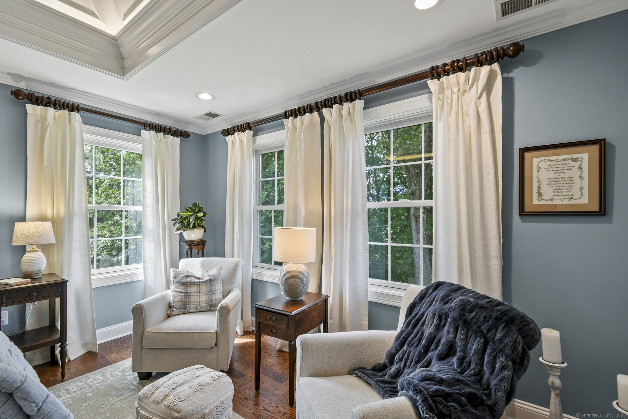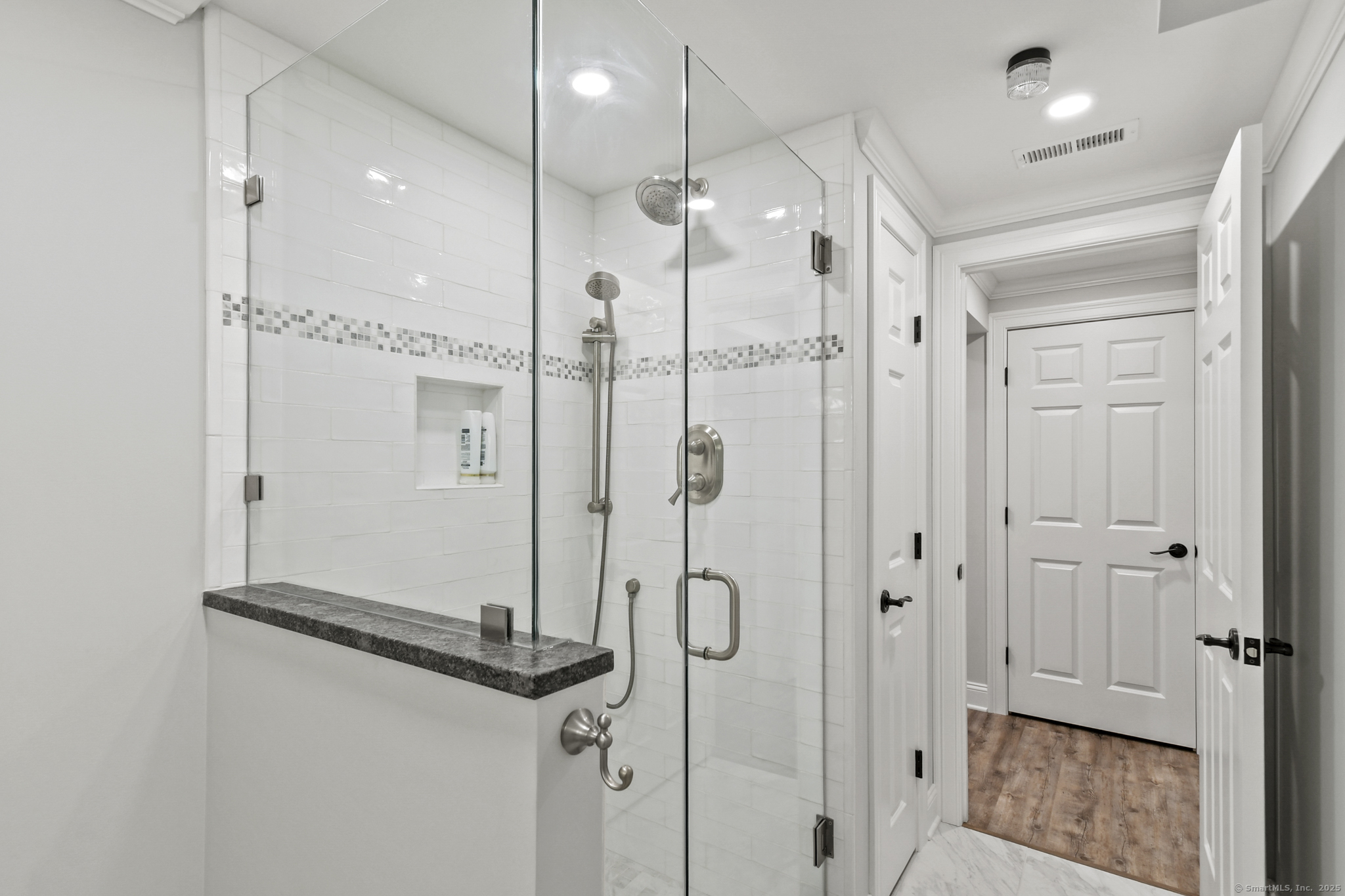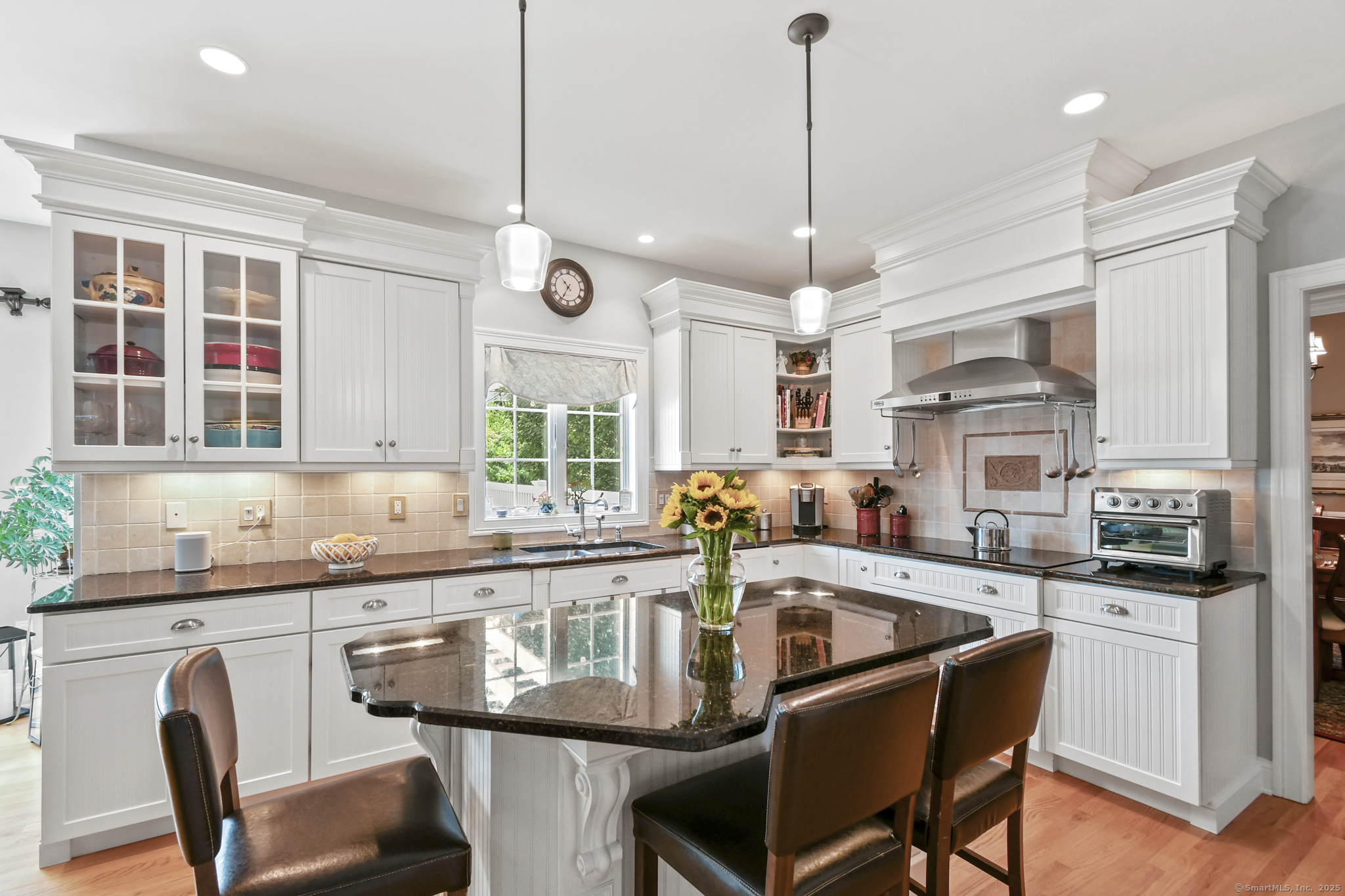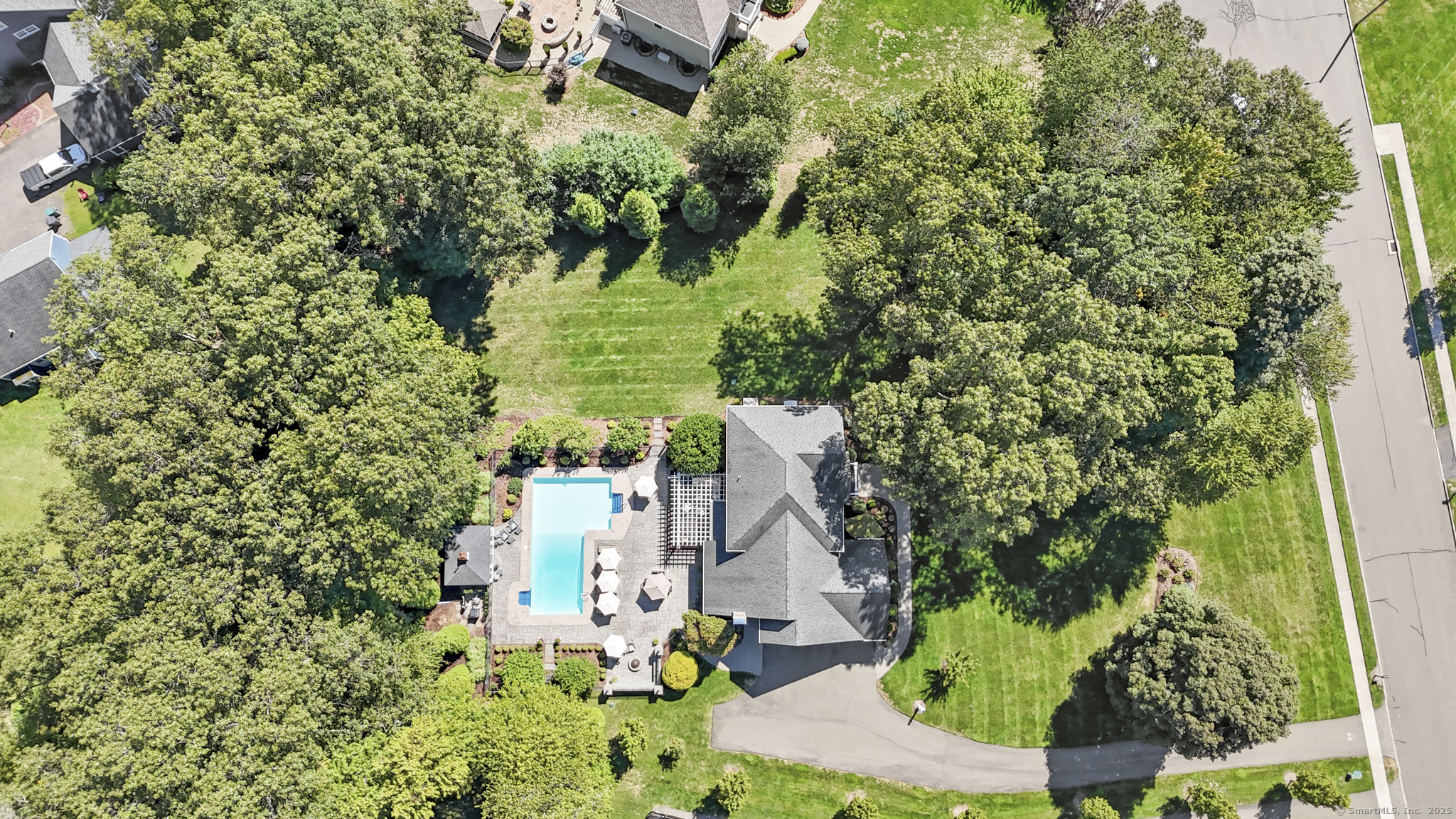 Exquisite Colonial with Pool, Finished Basement & Elegant Finishes. Welcome to this beautifully maintained 4-bedroom, 3.5-bath colonial, perfectly situated on 1.4 private acres at the end of a quiet cul-de-sac. From the moment you step inside, you'll be greeted by gleaming hardwood floors, crown molding, and wainscoting that flow seamlessly throughout the home, creating an atmosphere of timeless elegance. The spacious floor plan offers a perfect blend of formal and casual living spaces. The updated primary suite is a true retreat, featuring a newly renovated spa-like bathroom with a luxurious soaking tub and heated flooring for year-round comfort. The beautifully finished lower level expands your living space with a large living room, a full bar/kitchen, a full bathroom with shower, a dedicated exercise room, and a pantry for extra storage-all designed with the same attention to detail and beautiful finishes found throughout the home. Step outside to your own backyard oasis. The in-ground pool, pool house, built-in fire pit and expansive patios are ideal for summer entertaining or relaxing in total privacy. Meticulously maintained inside and out, this home offers the perfect combination of classic style and modern upgrades.