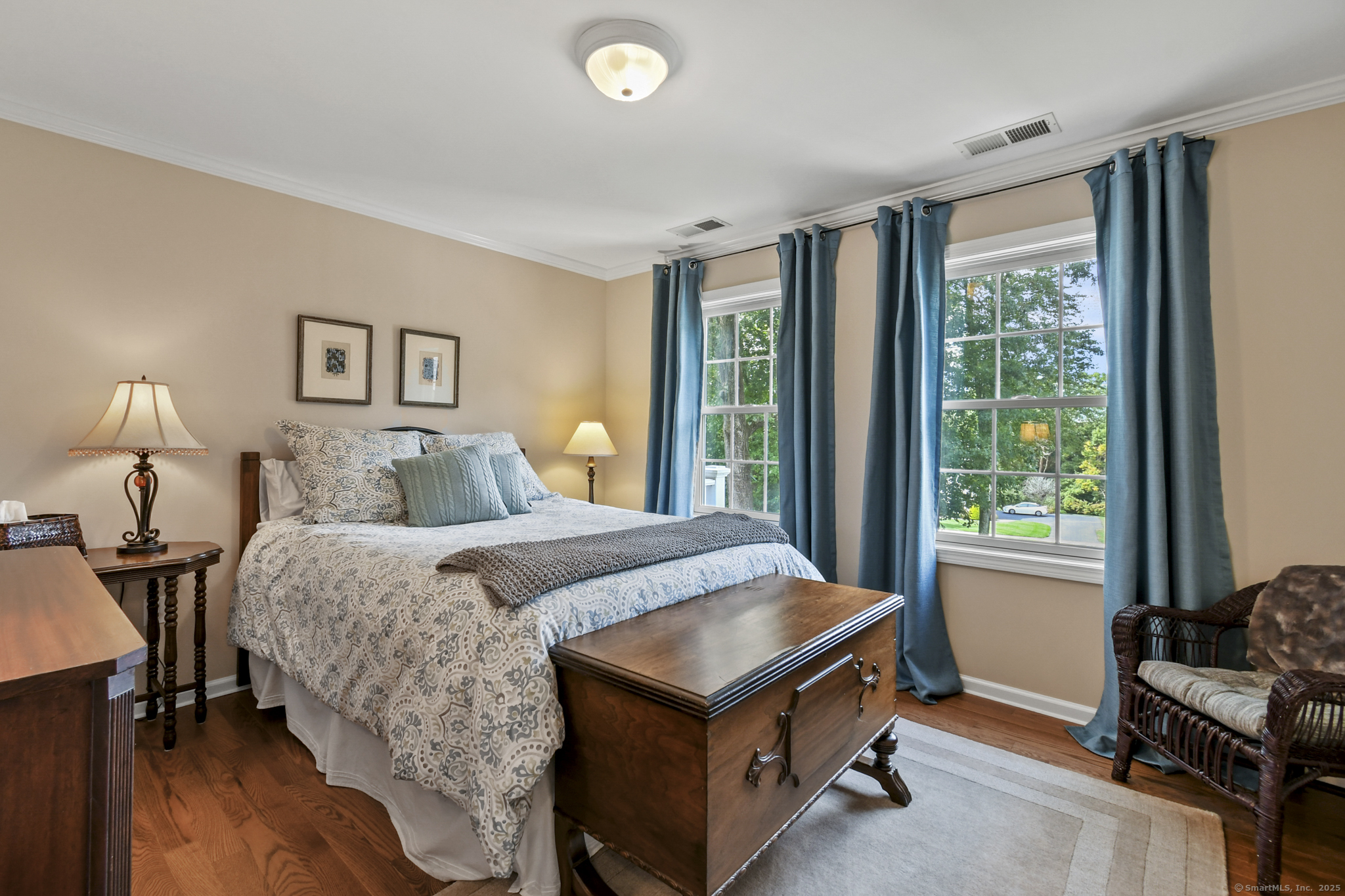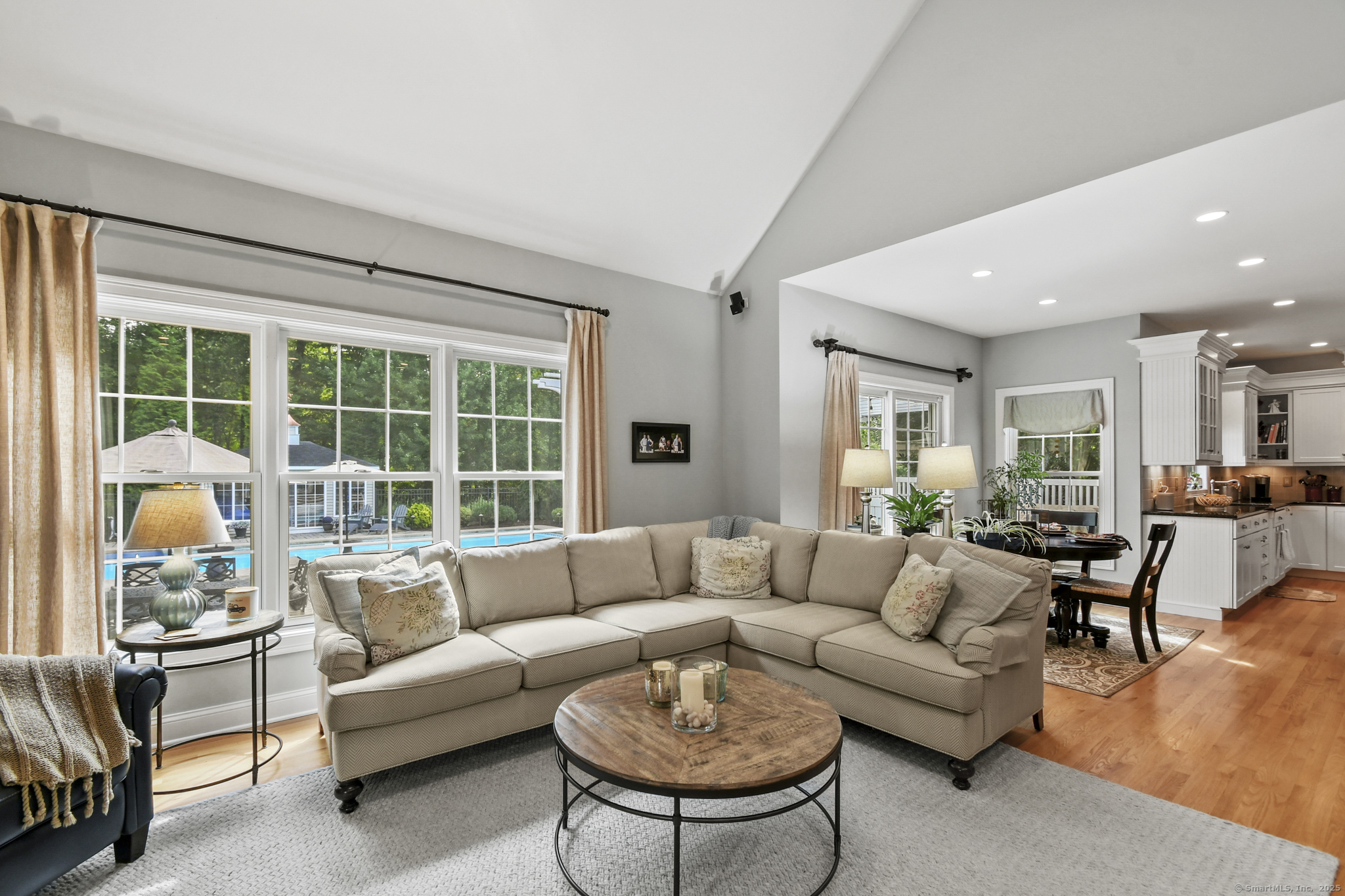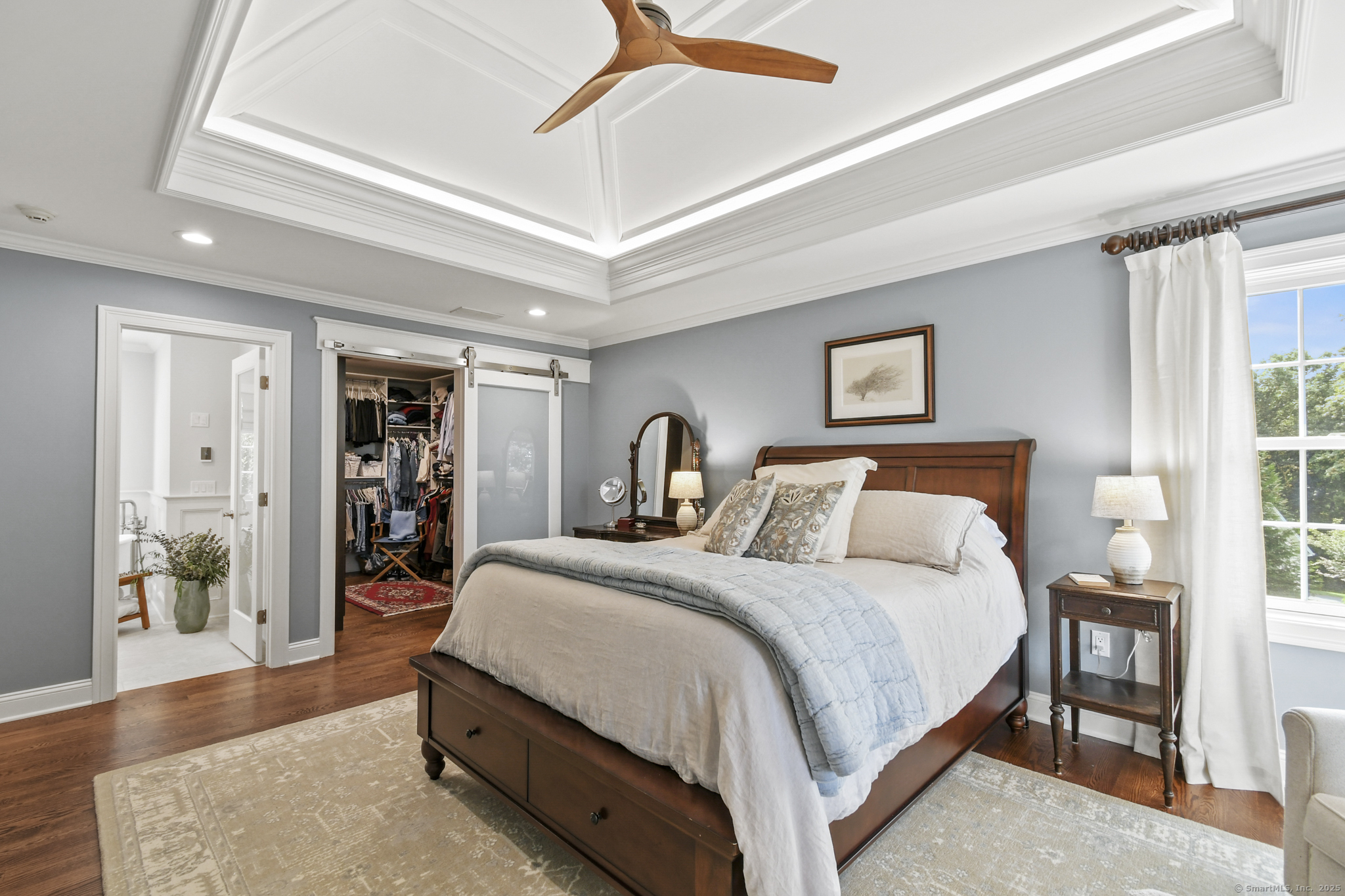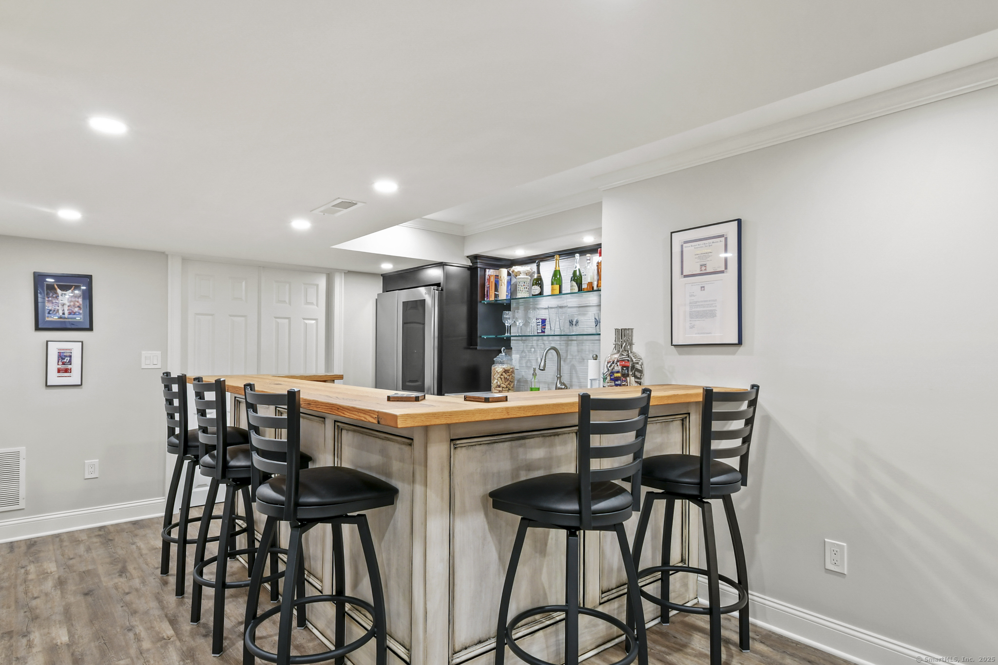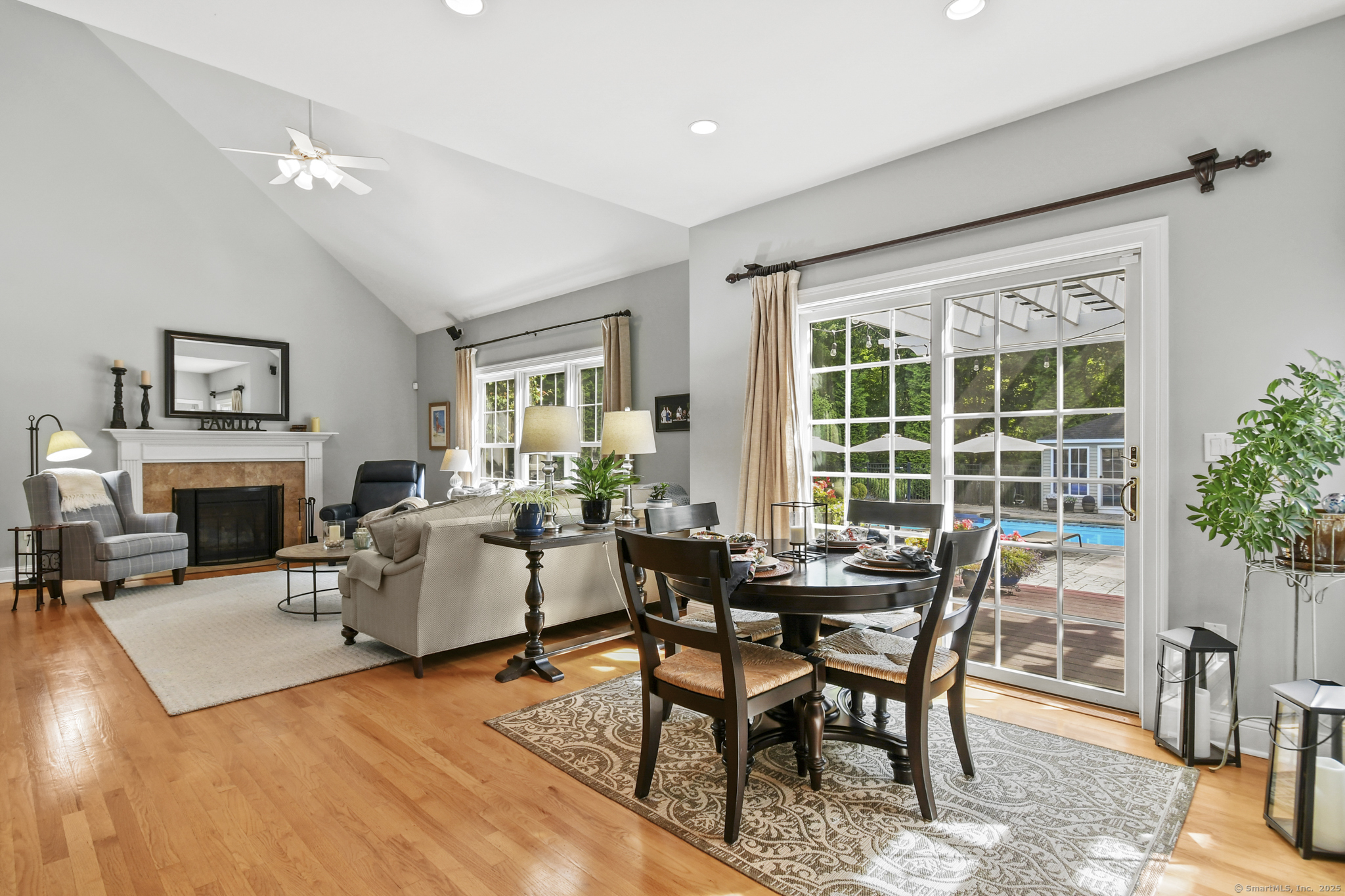 Exquisite Colonial with Pool, Finished Basement & Elegant Finishes. Welcome to this beautifully maintained 4-bedroom, 3.5-bath colonial, perfectly situated on 1.4 private acres at the end of a quiet cul-de-sac. From the moment you step inside, you'll be greeted by gleaming hardwood floors, crown molding, and wainscoting that flow seamlessly throughout the home, creating an atmosphere of timeless elegance. The spacious floor plan offers a perfect blend of formal and casual living spaces. The updated primary suite is a true retreat, featuring a newly renovated spa-like bathroom with a luxurious soaking tub and heated flooring for year-round comfort. The beautifully finished lower level expands your living space with a large living room, a full bar/kitchen, a full bathroom with shower, a dedicated exercise room, and a pantry for extra storage-all designed with the same attention to detail and beautiful finishes found throughout the home. Step outside to your own backyard oasis. The in-ground pool, pool house, built-in fire pit and expansive patios are ideal for summer entertaining or relaxing in total privacy. Meticulously maintained inside and out, this home offers the perfect combination of classic style and modern upgrades.