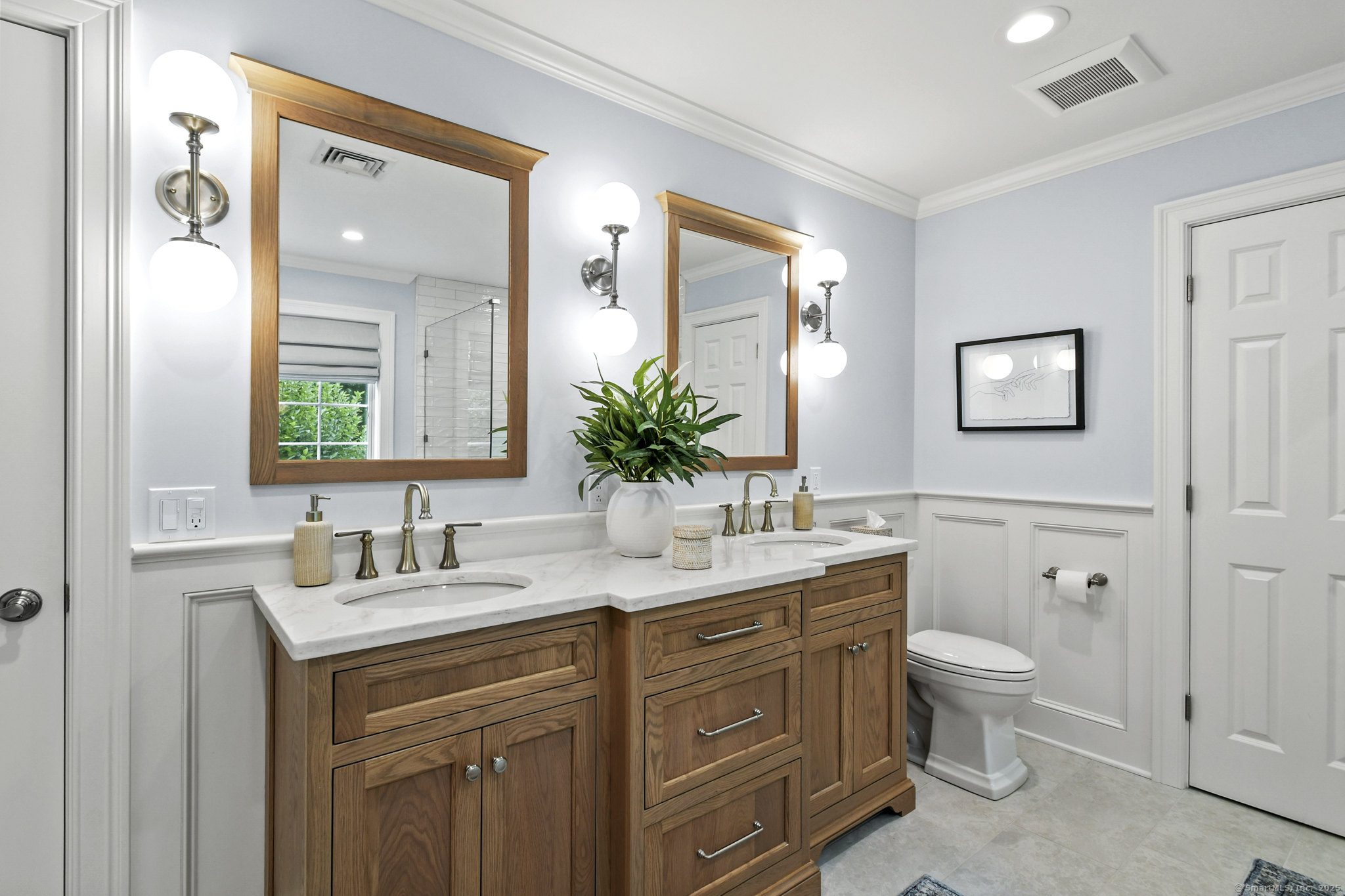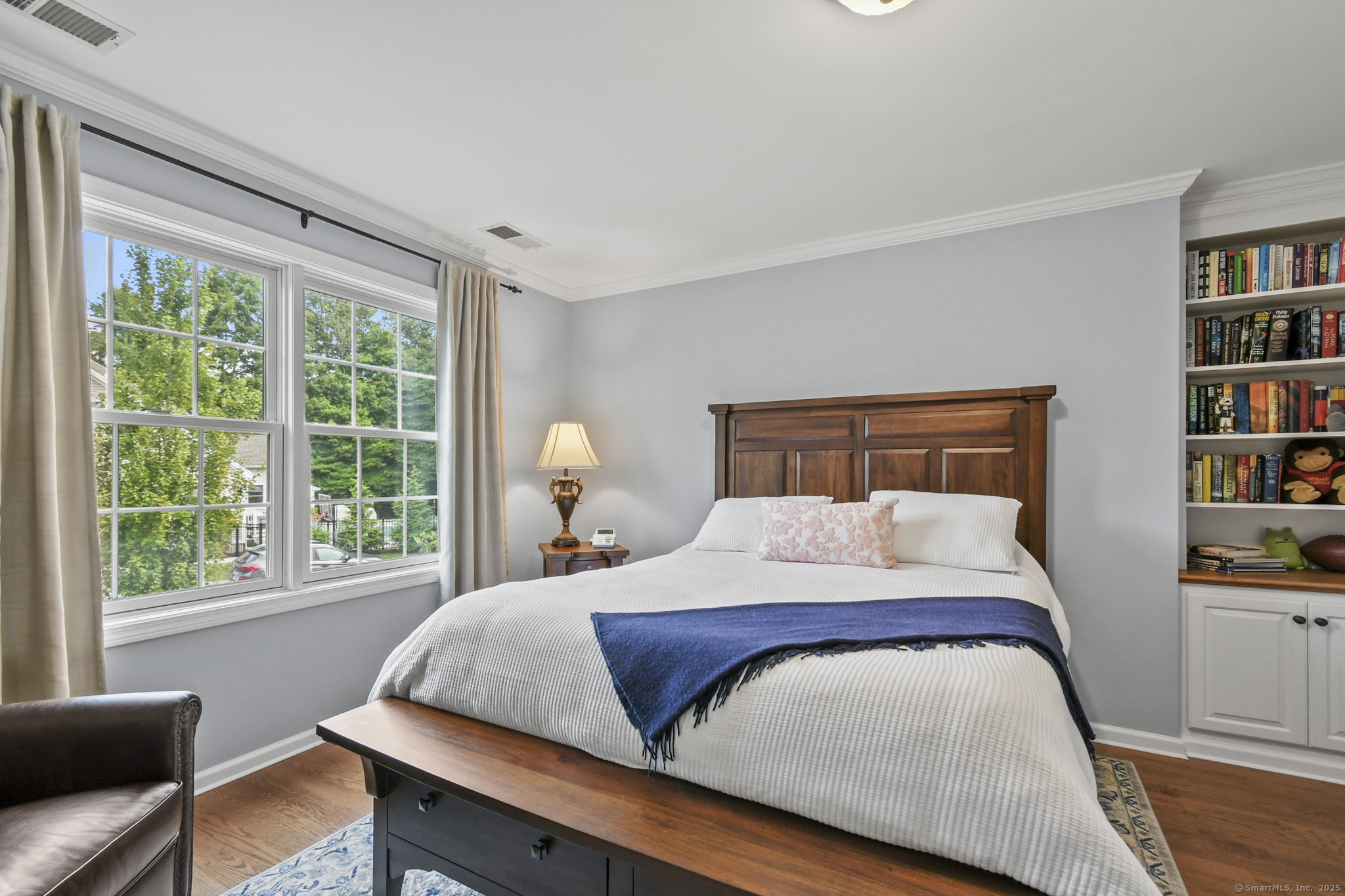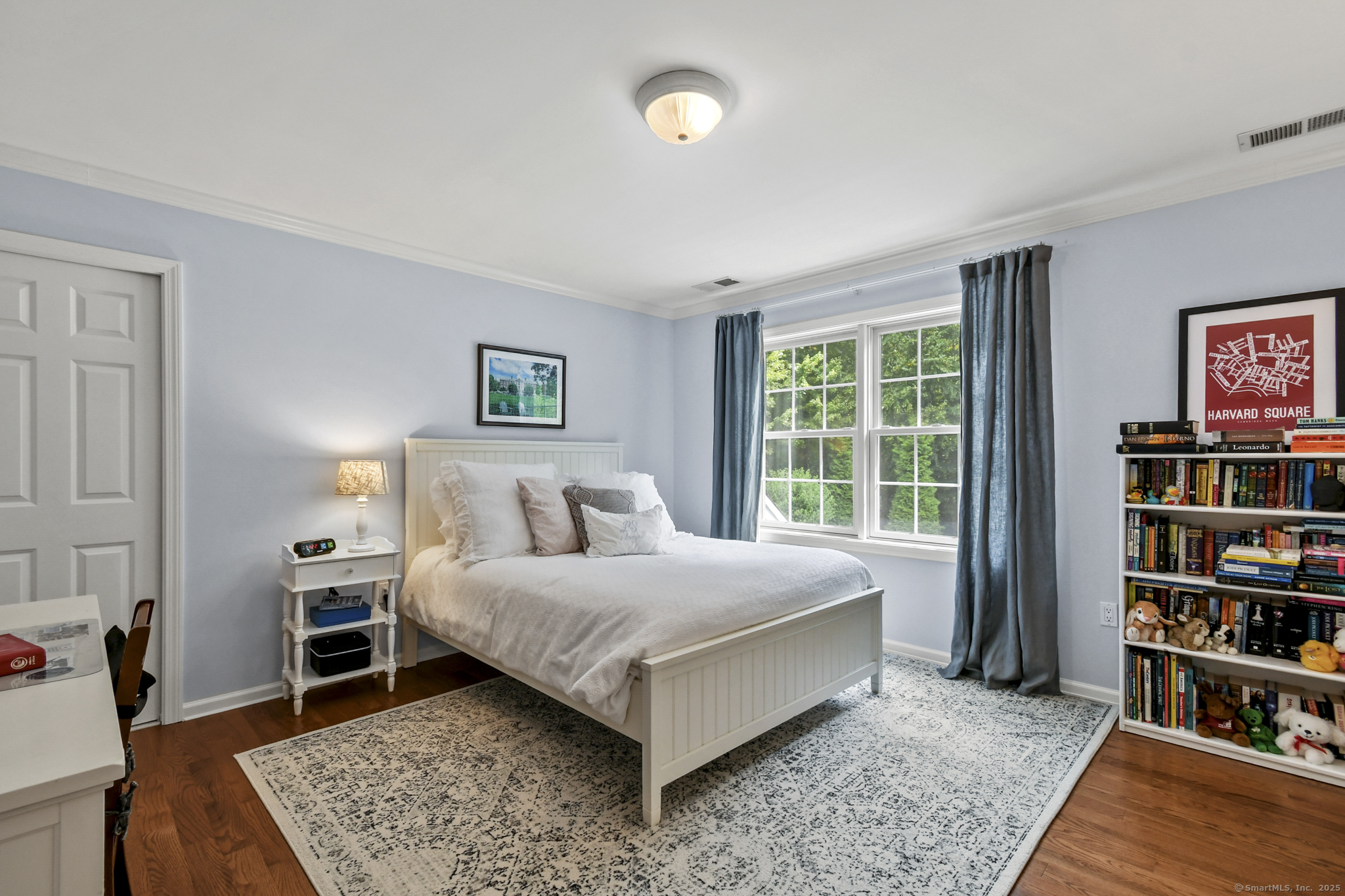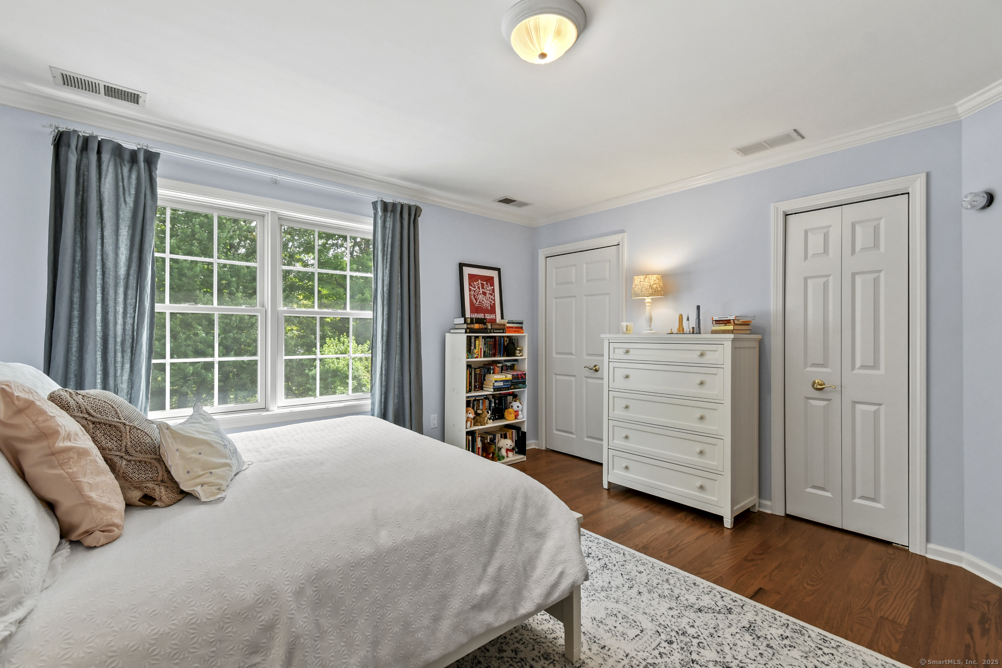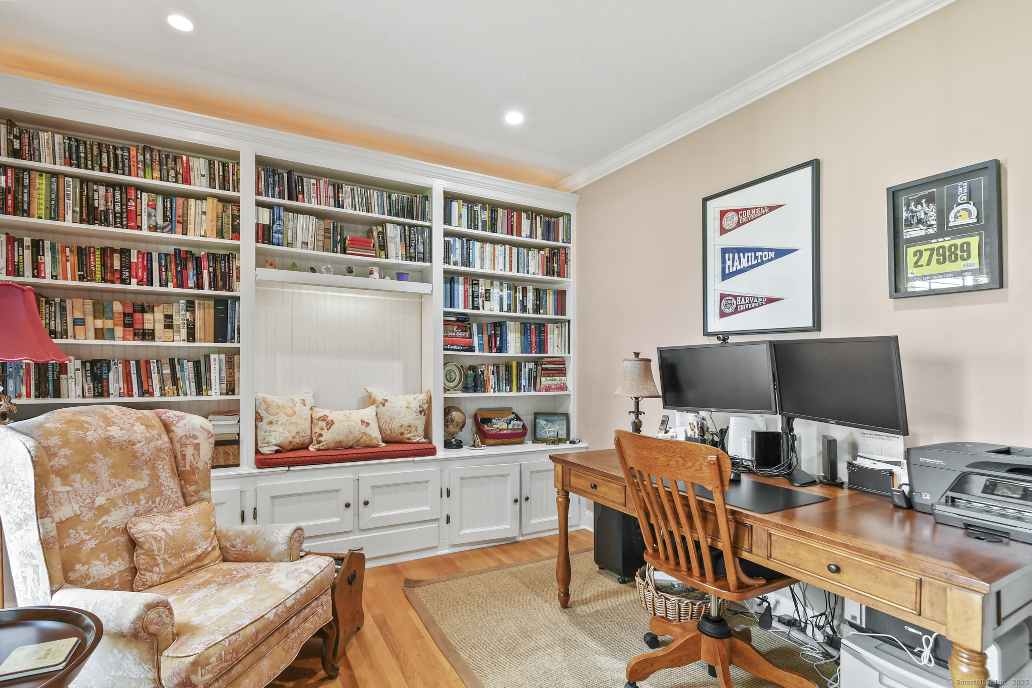 Exquisite Colonial with Pool, Finished Basement & Elegant Finishes. Welcome to this beautifully maintained 4-bedroom, 3.5-bath colonial, perfectly situated on 1.4 private acres at the end of a quiet cul-de-sac. From the moment you step inside, you'll be greeted by gleaming hardwood floors, crown molding, and wainscoting that flow seamlessly throughout the home, creating an atmosphere of timeless elegance. The spacious floor plan offers a perfect blend of formal and casual living spaces. The updated primary suite is a true retreat, featuring a newly renovated spa-like bathroom with a luxurious soaking tub and heated flooring for year-round comfort. The beautifully finished lower level expands your living space with a large living room, a full bar/kitchen, a full bathroom with shower, a dedicated exercise room, and a pantry for extra storage-all designed with the same attention to detail and beautiful finishes found throughout the home. Step outside to your own backyard oasis. The in-ground pool, pool house, built-in fire pit and expansive patios are ideal for summer entertaining or relaxing in total privacy. Meticulously maintained inside and out, this home offers the perfect combination of classic style and modern upgrades.