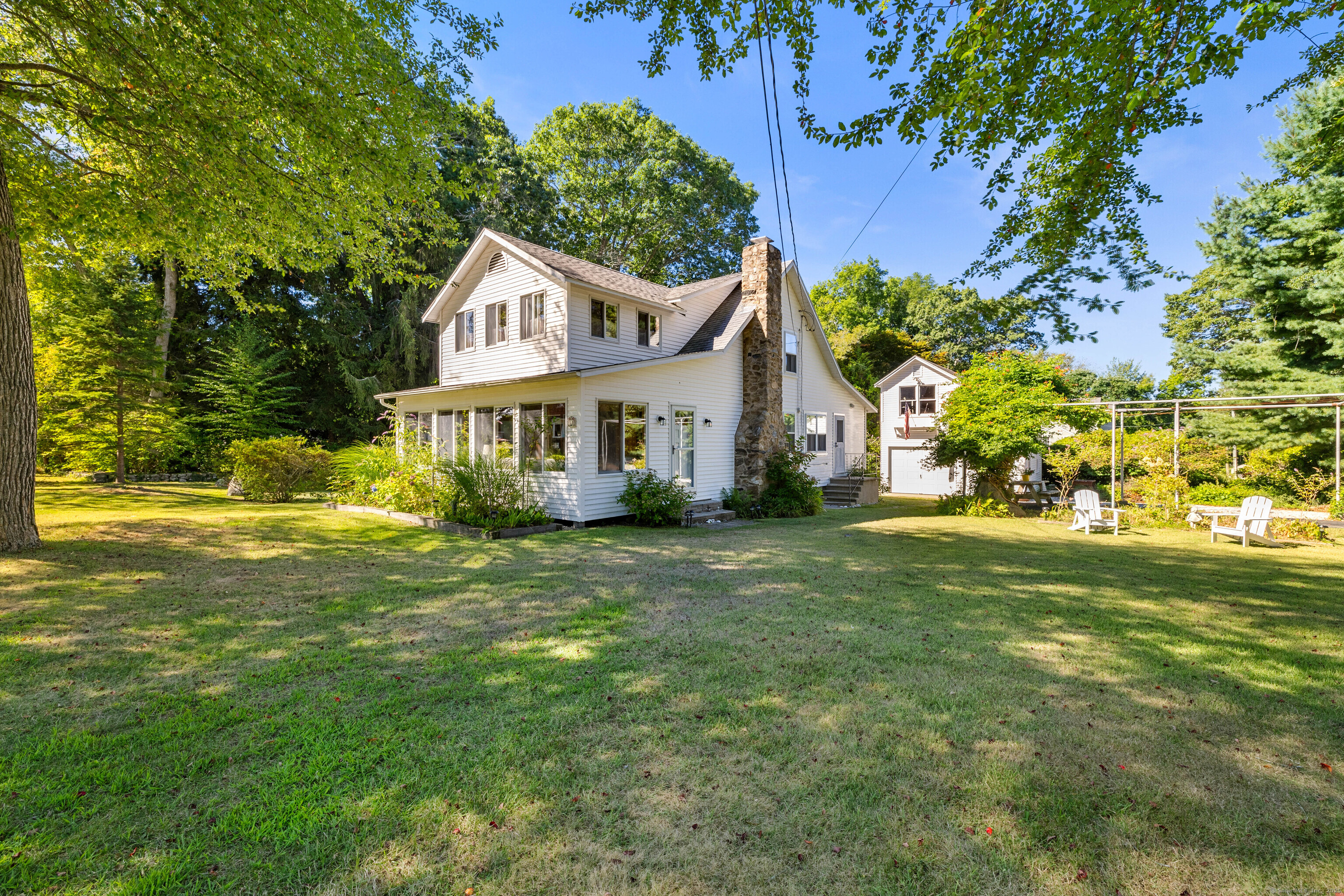 If you are yearning for the "beach vibes" of long ago, this certainly is the property for you to make your own memories with.One of the original Black Point Beach Club Association properties that has been owned by the same family for over 40 years is now looking for a new family that will love what Black Point offers: multiple beaches, tennis courts, summer camp program, a gourmet store, kayak racks both on the Bay side and Estuary, a clubhouse, boat launch and amenities for making the most of the community lifestyle. This properly is a clean slate for making it into your own. There is a large building that is wonderful for storage with an upstairs as well and perhaps could become an artist studio or office space. The town states that the home has 3 bedrooms. The upstairs porch is used as such; dormitory style. One full bath up and one full on the main level with laundry. An outside shower is fabulous. There is an arbor, a poured floor waiting for a greenhouse and a lovely lot allowing for expansion or family lawn games