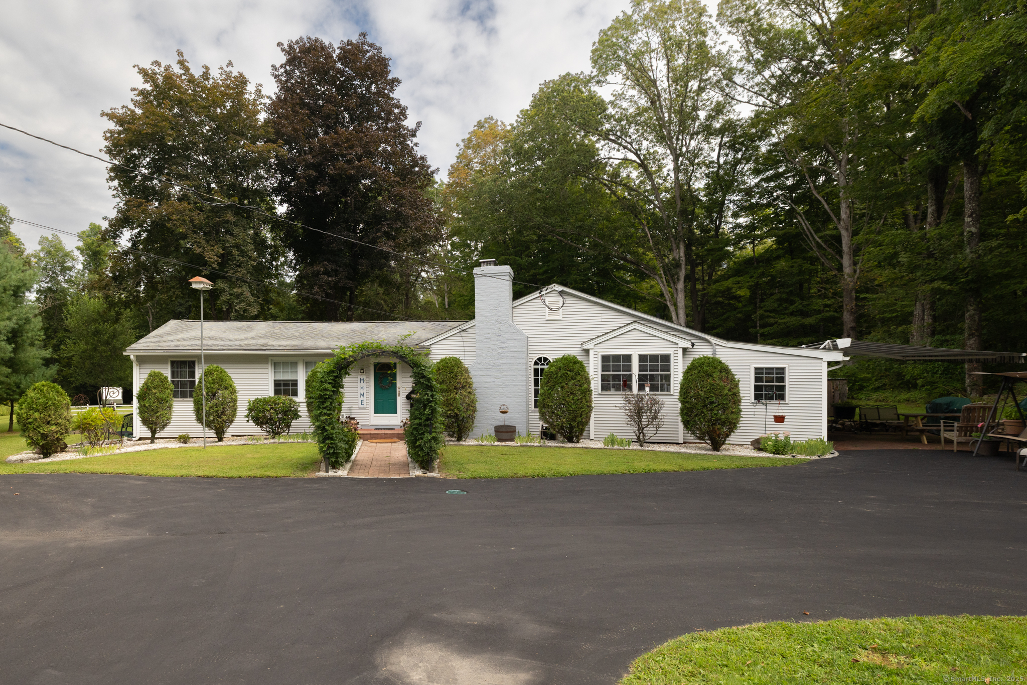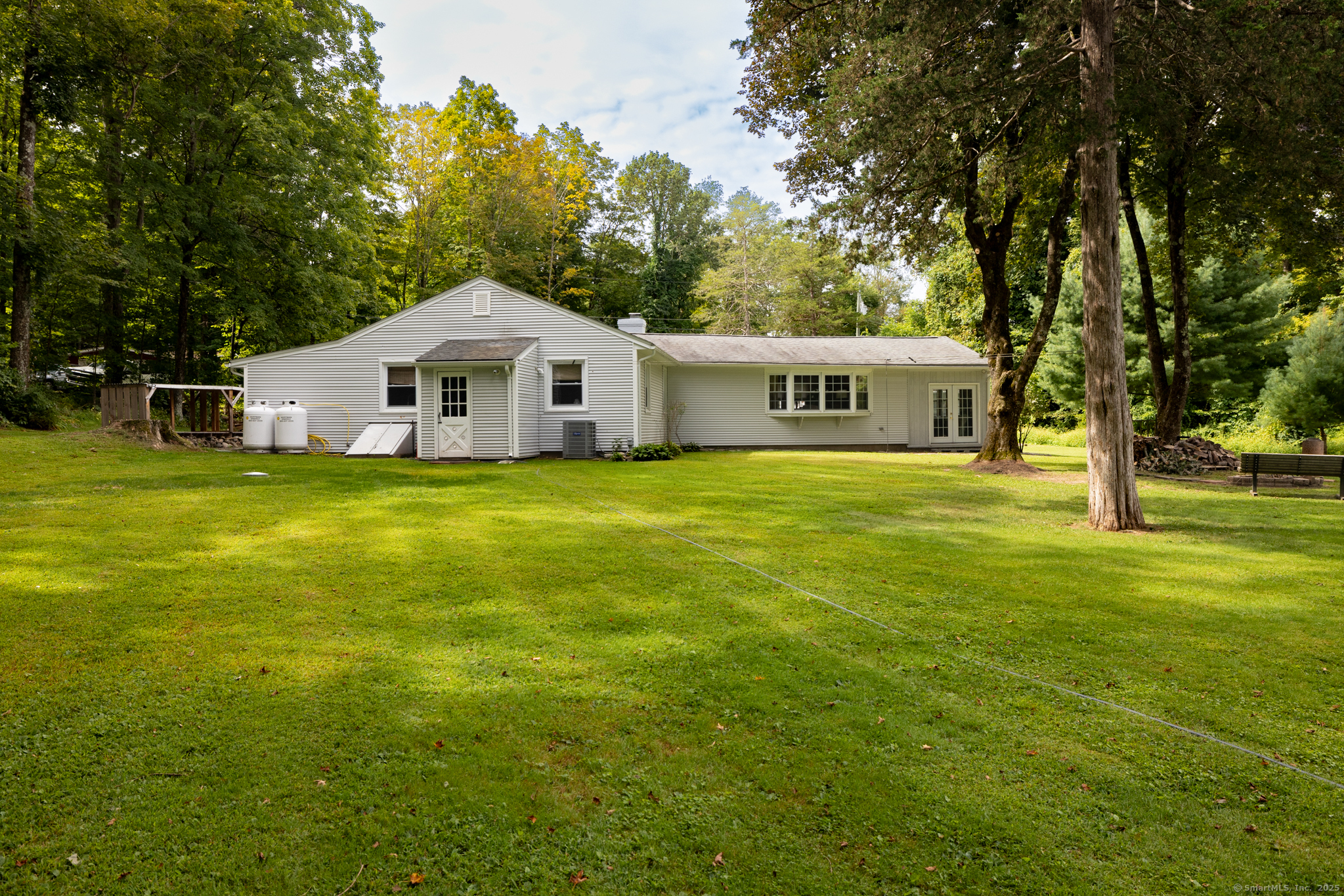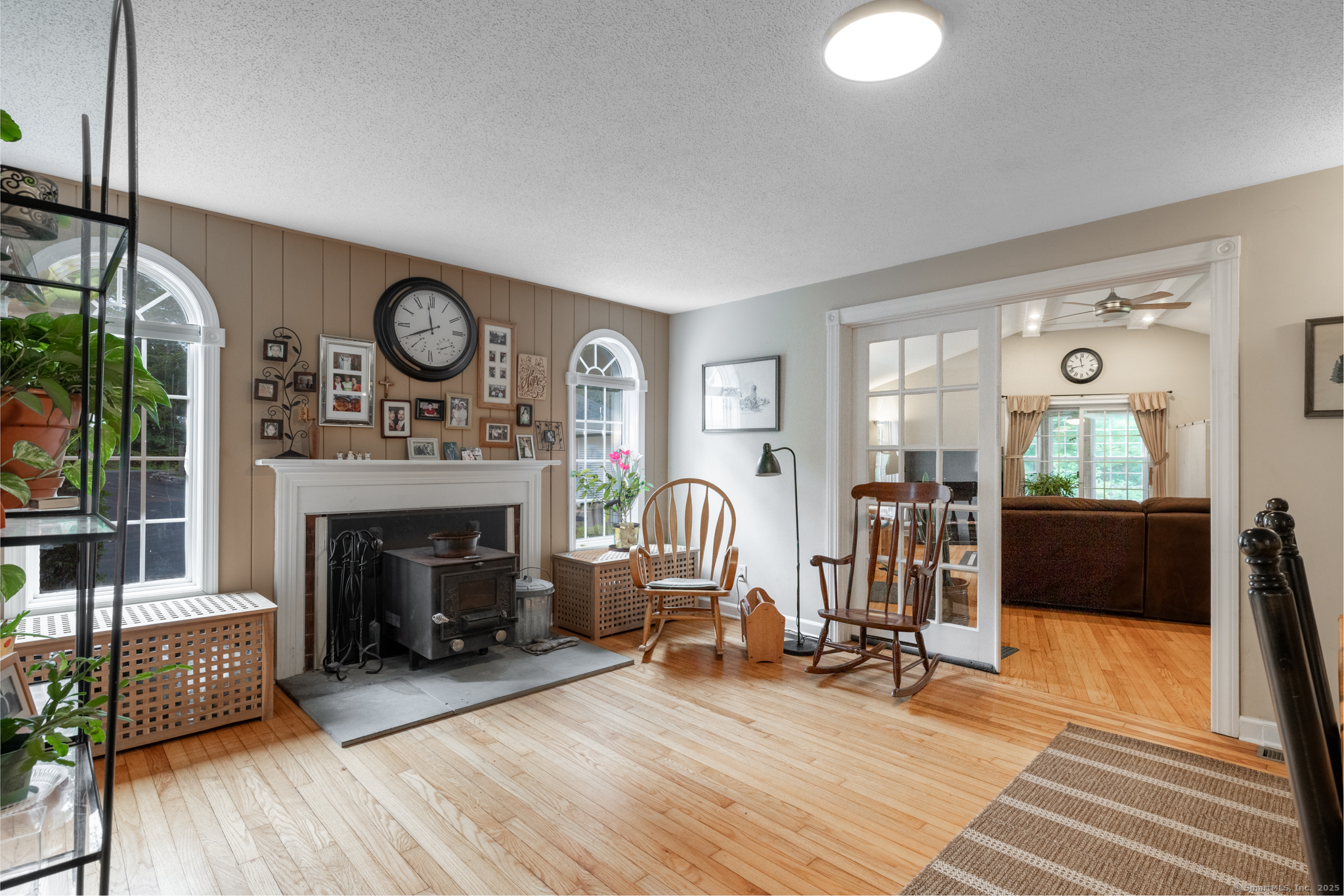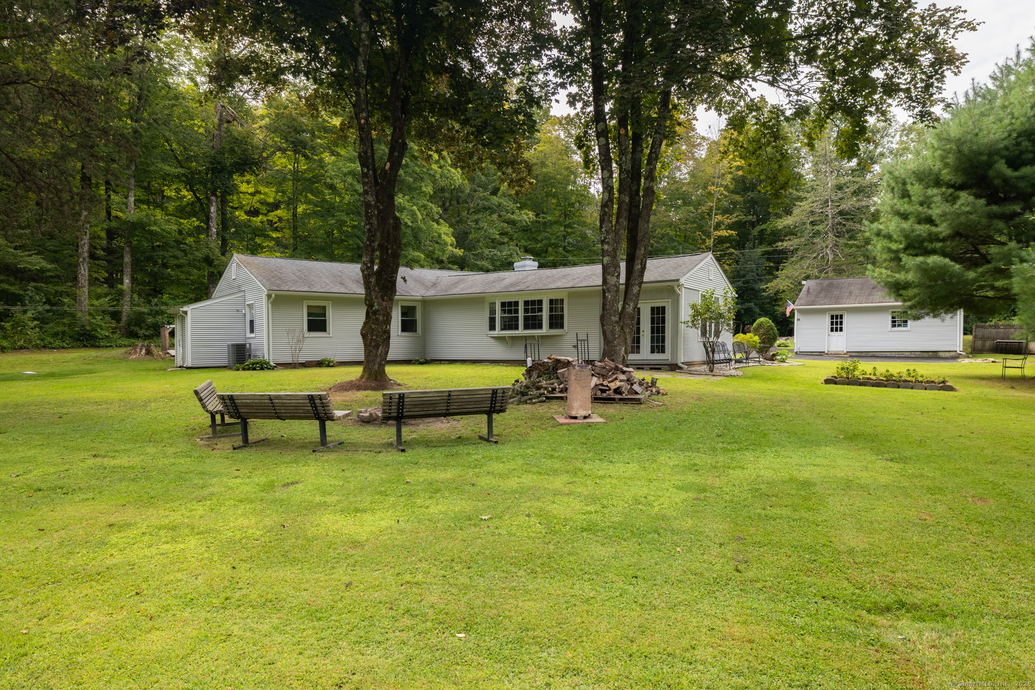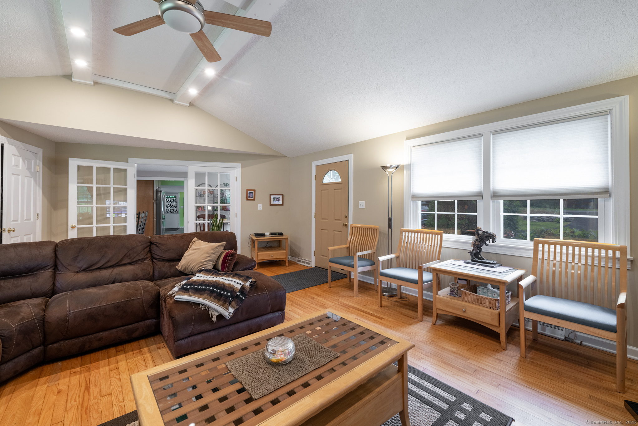 Discover this beautifully updated ranch-style home ideally situated on over an acre of level, private land, backing onto a tranquil nature preserve in the heart of Woodbury. Offering 2292 square feet of comfortable living space, this 3-bedroom, 1.5 bath home combines timeless character with modern upgrades-perfect for those seeking space, tranquility, and convenience. Inside, you'll find a bright and expansive Great Room with cathedral ceilings, original hardwood floors, LED lighting, bow windows, and ceiling fan-connected through French doors to a versatile all-season porch overlooking the lush backyard. The formal dining room features stunning Palladian windows, a cozy brick fireplace with a woodstove, and additional French doors leading back to the Great Room with a walk-in closet. The updated kitchen features modern cabinetry and countertops, a center island, engineered flooring, under-cabinet lighting, and brand- new appliances. A conveniently located laundry room is situated just steps away. All three bedrooms showcase beautiful hardwood flooring, including the Primary Bedroom offering a walk-in closet, an additional closet and private half bath. The home has seen numerous updates, including a newly renovated full bathroom with modern finishes.