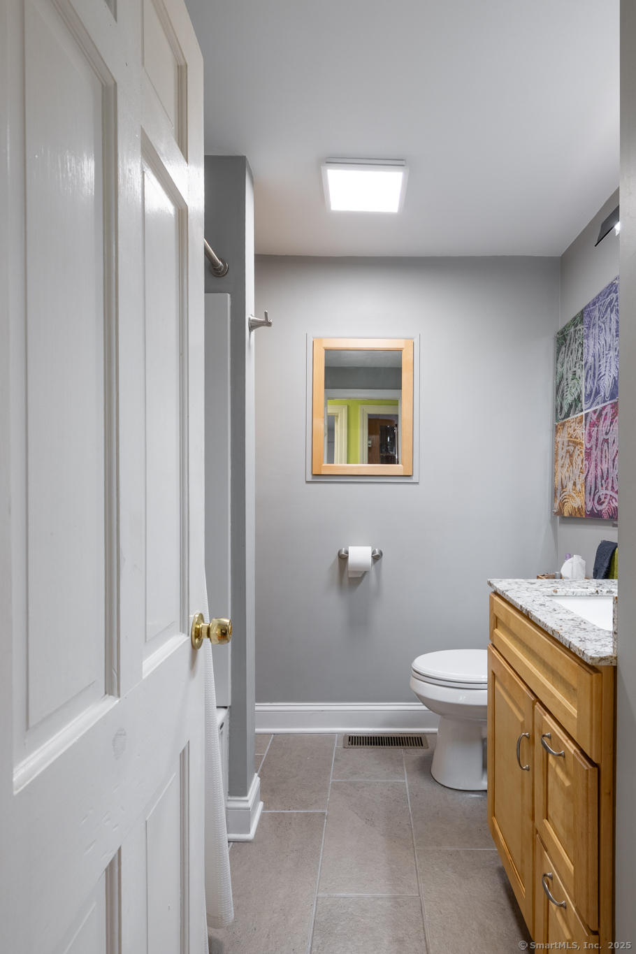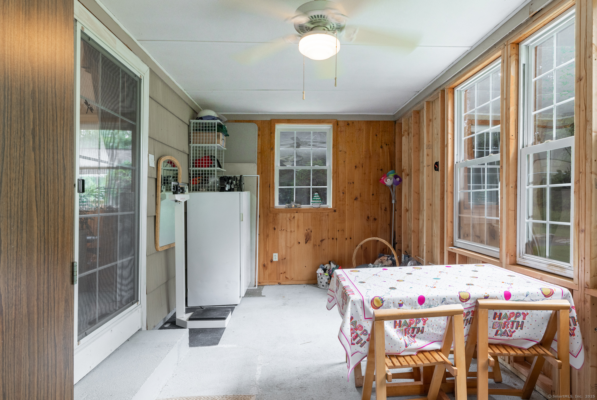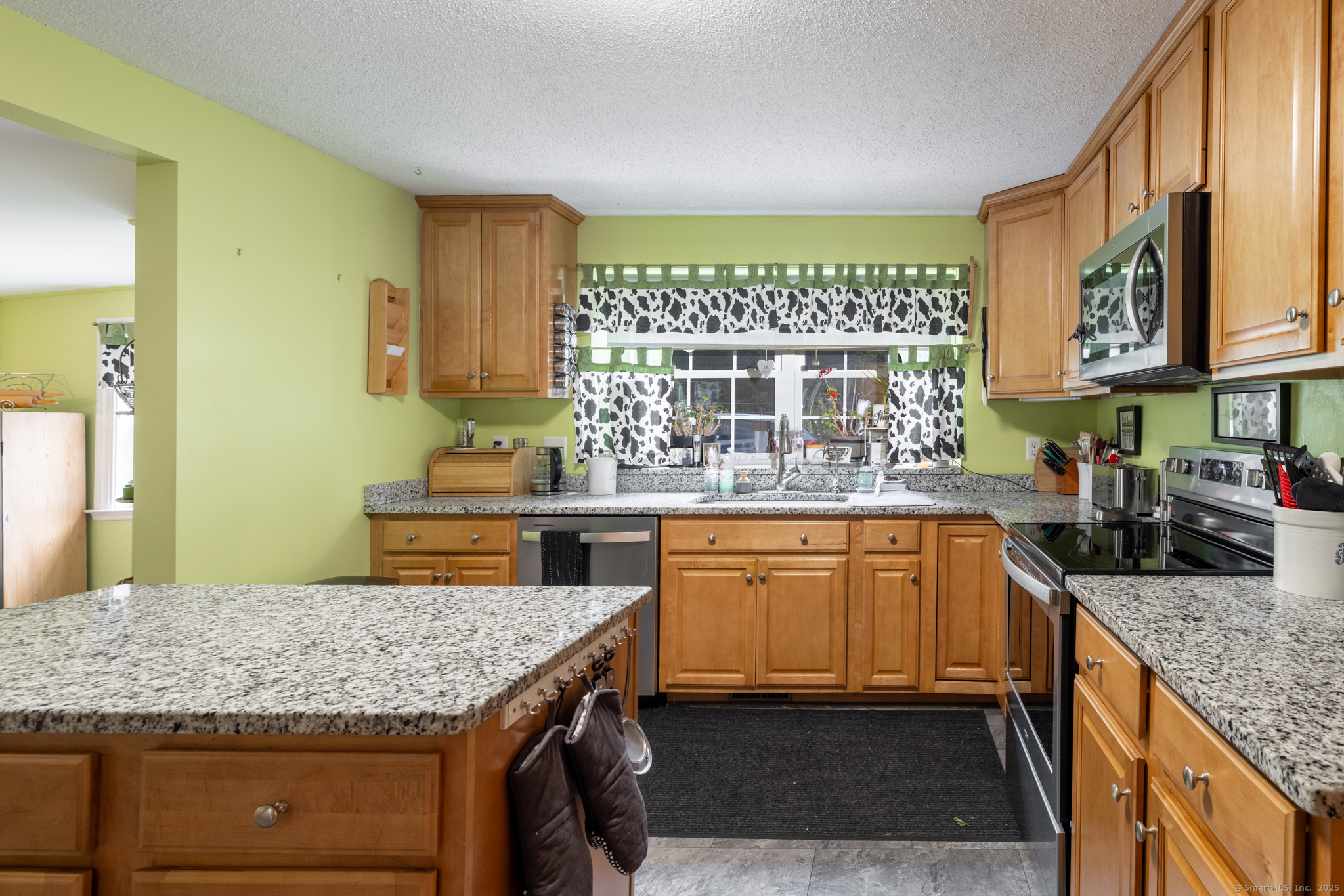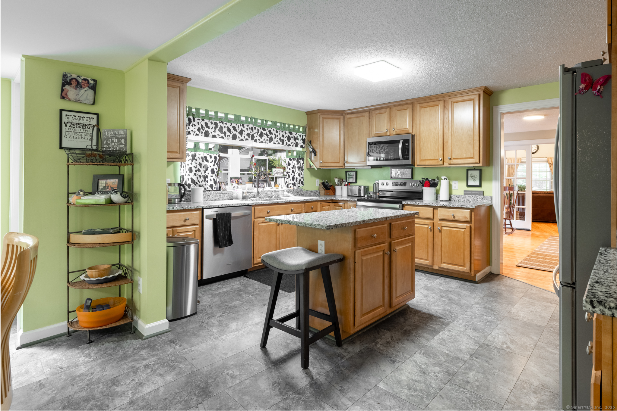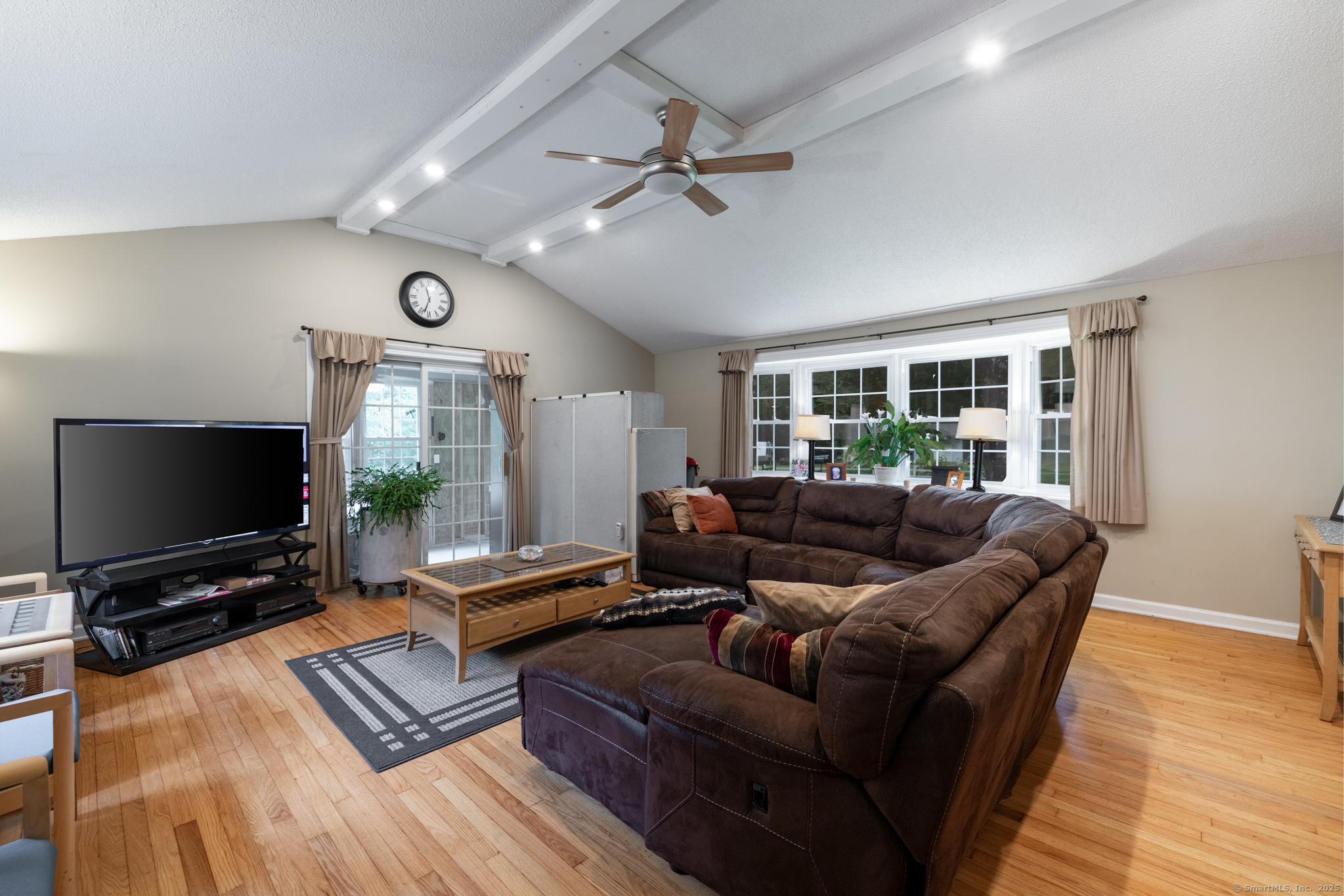 Discover this beautifully updated ranch-style home ideally situated on over an acre of level, private land, backing onto a tranquil nature preserve in the heart of Woodbury. Offering 2292 square feet of comfortable living space, this 3-bedroom, 1.5 bath home combines timeless character with modern upgrades-perfect for those seeking space, tranquility, and convenience. Inside, you'll find a bright and expansive Great Room with cathedral ceilings, original hardwood floors, LED lighting, bow windows, and ceiling fan-connected through French doors to a versatile all-season porch overlooking the lush backyard. The formal dining room features stunning Palladian windows, a cozy brick fireplace with a woodstove, and additional French doors leading back to the Great Room with a walk-in closet. The updated kitchen features modern cabinetry and countertops, a center island, engineered flooring, under-cabinet lighting, and brand- new appliances. A conveniently located laundry room is situated just steps away. All three bedrooms showcase beautiful hardwood flooring, including the Primary Bedroom offering a walk-in closet, an additional closet and private half bath. The home has seen numerous updates, including a newly renovated full bathroom with modern finishes.