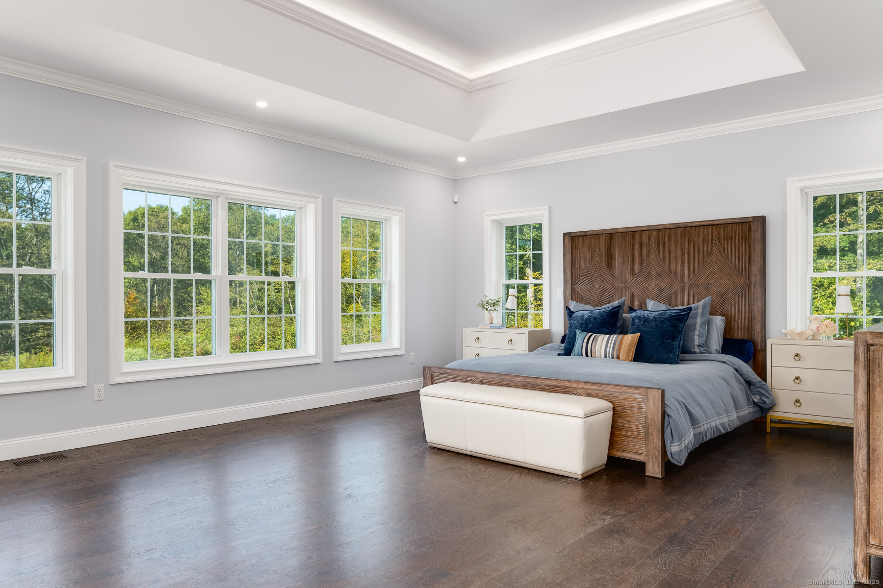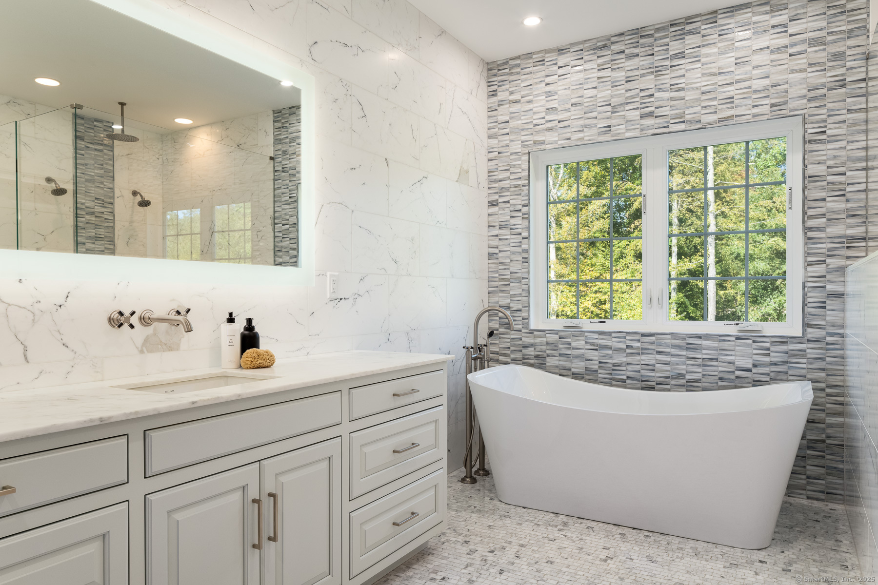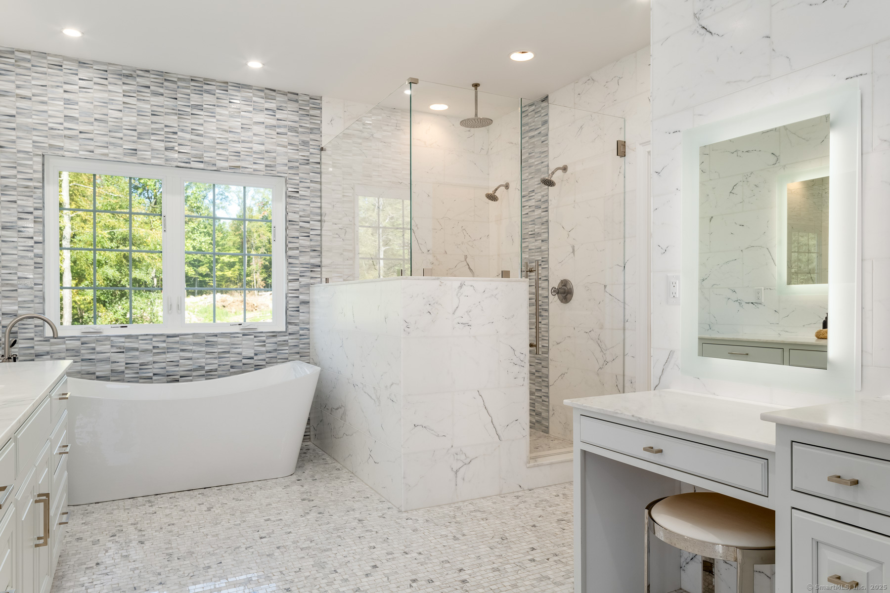 Beautifully sited on over 8 acres at the end of a cul-de-sac, this property offers unmatched peace and privacy - the perfect escape from the everyday hustle and bustle. Custom built in 2023, every aspect of this home exudes luxury, with exceptional finishes and attention to detail at every turn. The welcoming front porch sets the tone for what lies ahead. You'll enter into the two-story foyer with sight lines, through the living room, to the fabulous backyard. As you tour, you'll discover some delightful surprises like the hidden walk-in pantry in the chef's kitchen. The main level features a magnificent primary suite, offering an oasis of comfort and style, with a gorgeous marble bathroom, an expansive walk-in closet, and direct access to the oversized patio. On the upper level, you'll find three additional bedrooms, each attached to a bathroom, plus a bonus room that's suitable for an office, playroom, yoga room, or whatever your heart desires. The finished lower level is an entertainer's dream with its custom bar, complete with a kegerator, wine fridge, dishwasher and more. Step outside and revel in the spectacular spaces that offer breathtaking views of the lush surroundings. Experience an extraordinary blend of tranquility and sophistication at this exclusive retreat.