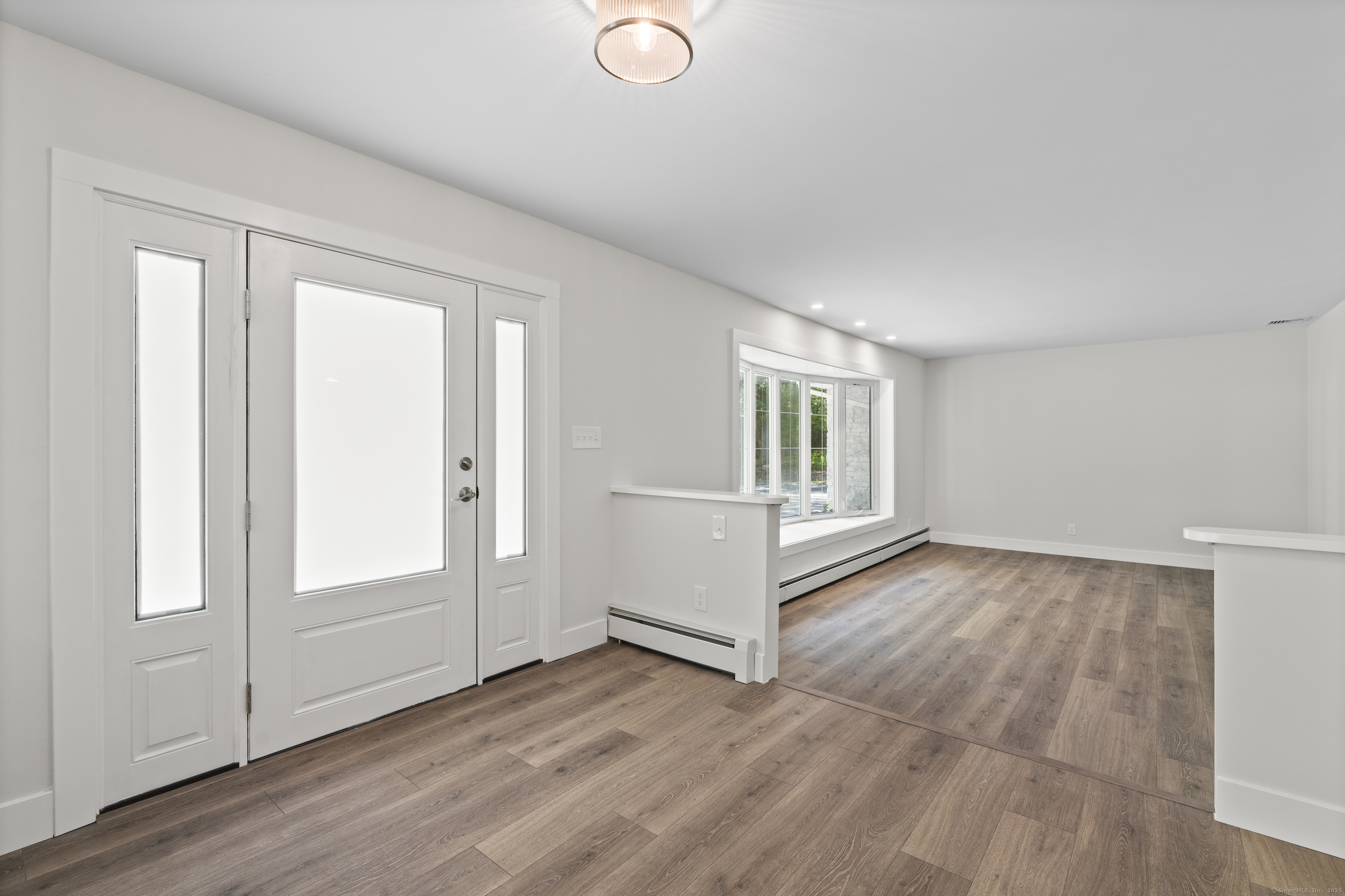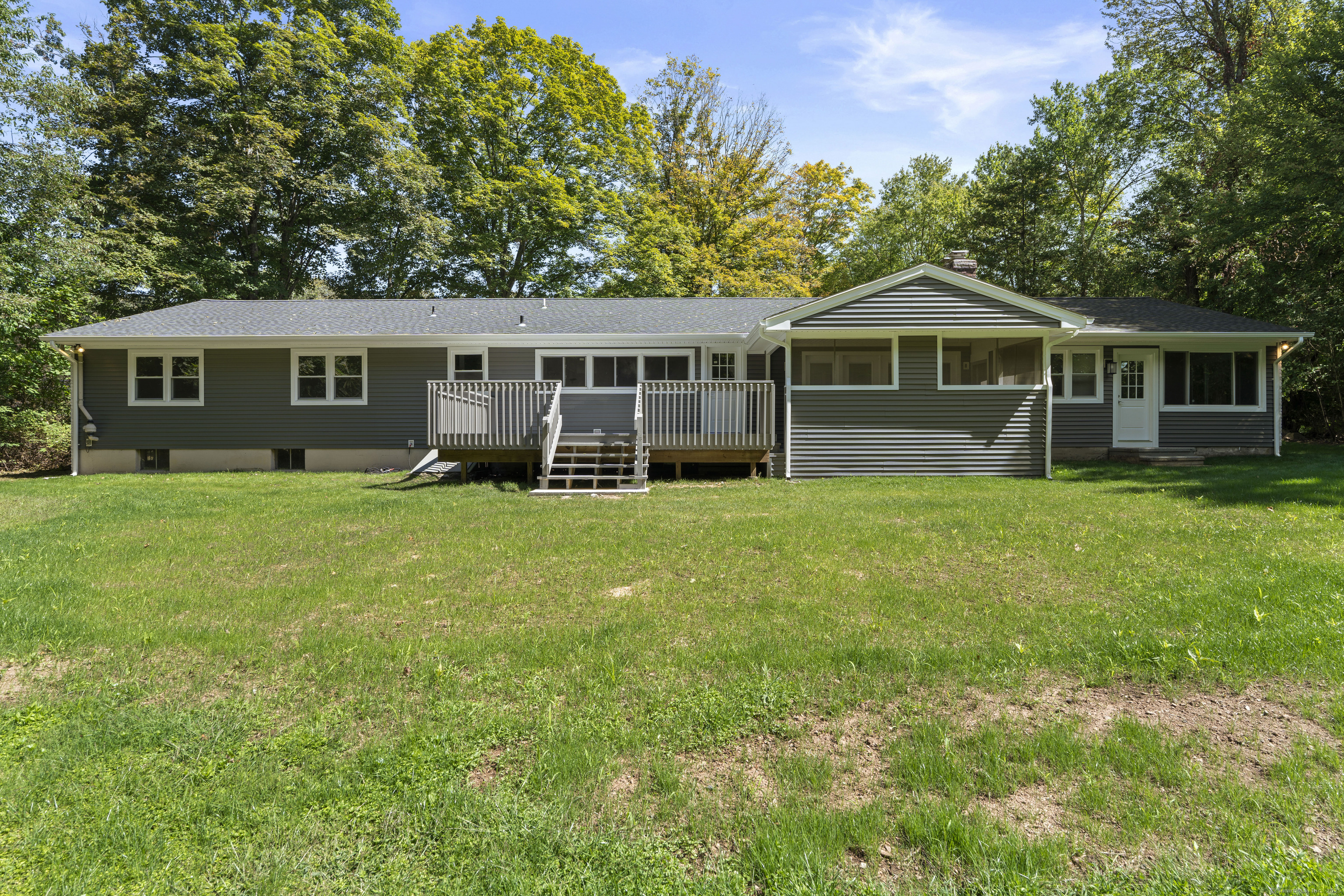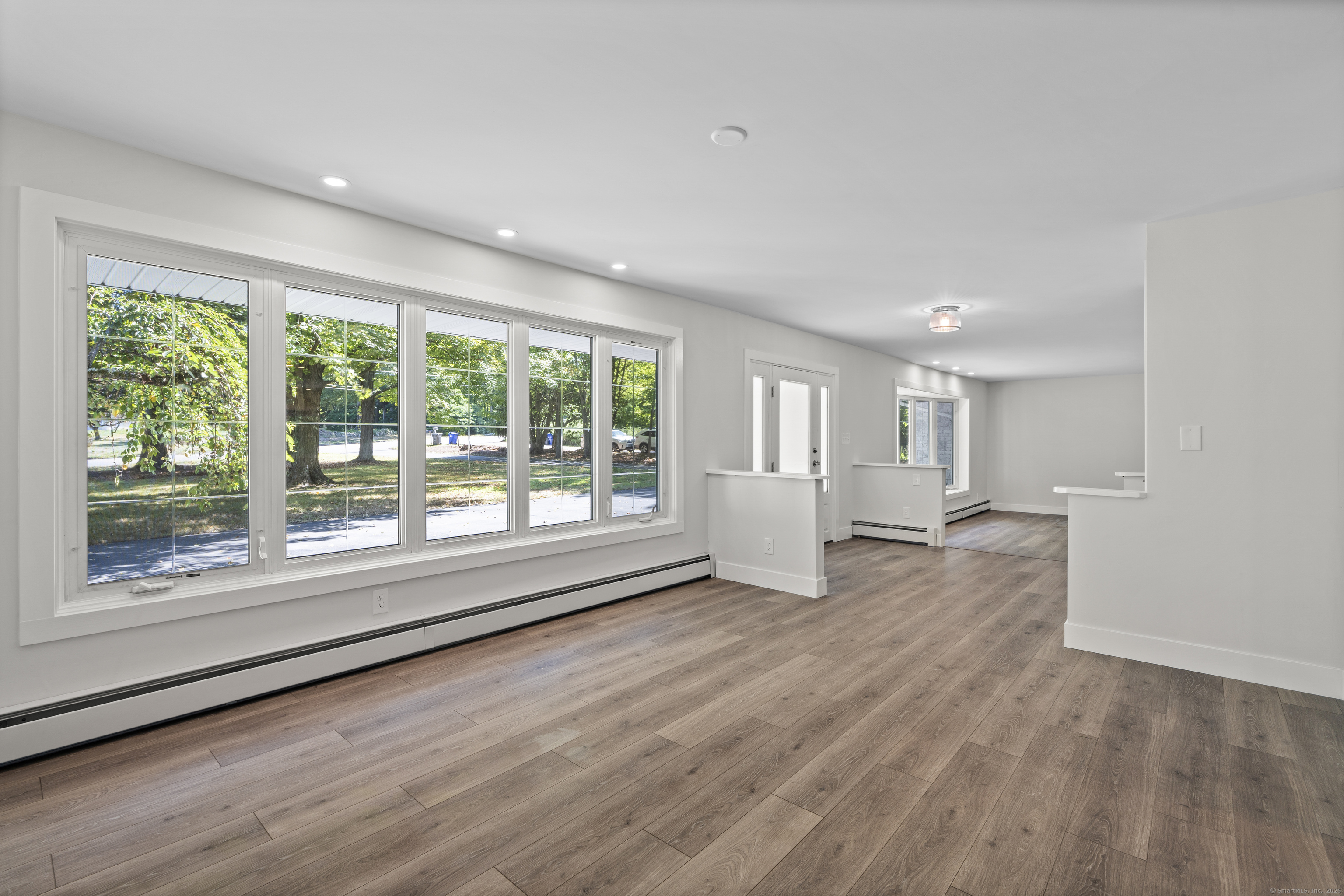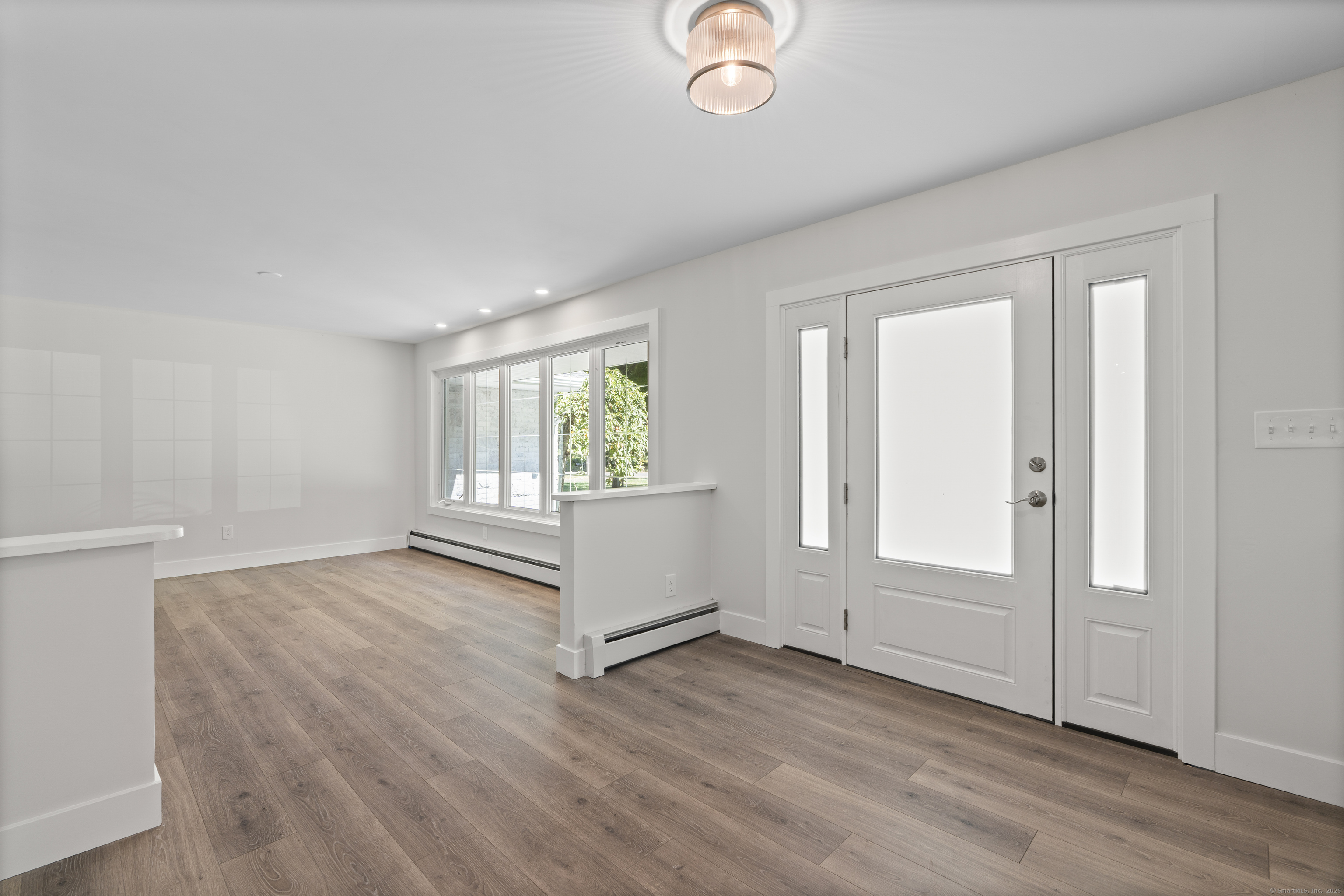Welcome to 21 Featherbed Lane -a beautifully renovated 5 BR, 4 bath ranch south of route 1 in Branford. Thoughtfully remodeled from top to bottom, this move-in ready home combines modern style with practical comfort. Situated on a generous lot, the home's striking white brick, gray vinyl siding, and wide circular driveway create standout curb appeal. Inside, a spacious foyer leads to a formal living room and dining room, perfect for entertaining. The fully renovated kitchen features an oversized island, brand-new stainless-steel appliances, and a wall of windows that fills the space with natural light. The kitchen is open to the family room with a stone fireplace and French doors leading to covered porch and a large deck overlooking the private backyard. At the opposite end of the home are four large bedrooms, two with ensuite baths. Other updates include new flooring, doors and trim, generous recessed lighting, and fresh paint throughout. A separate apartment with its own bedroom and bath offers flexible living options-perfect for multigenerational living, a live-in caregiver, a home office or studio, or rental income. This apartment can be converted back into an attached garage if desired. Enjoy one-level living with an open layout, low-threshold entry, and a curbless shower-designed for comfort, mobility, and aging in place. City water, sewer, and natural gas offer low-maintenance, efficient, and worry-free living.