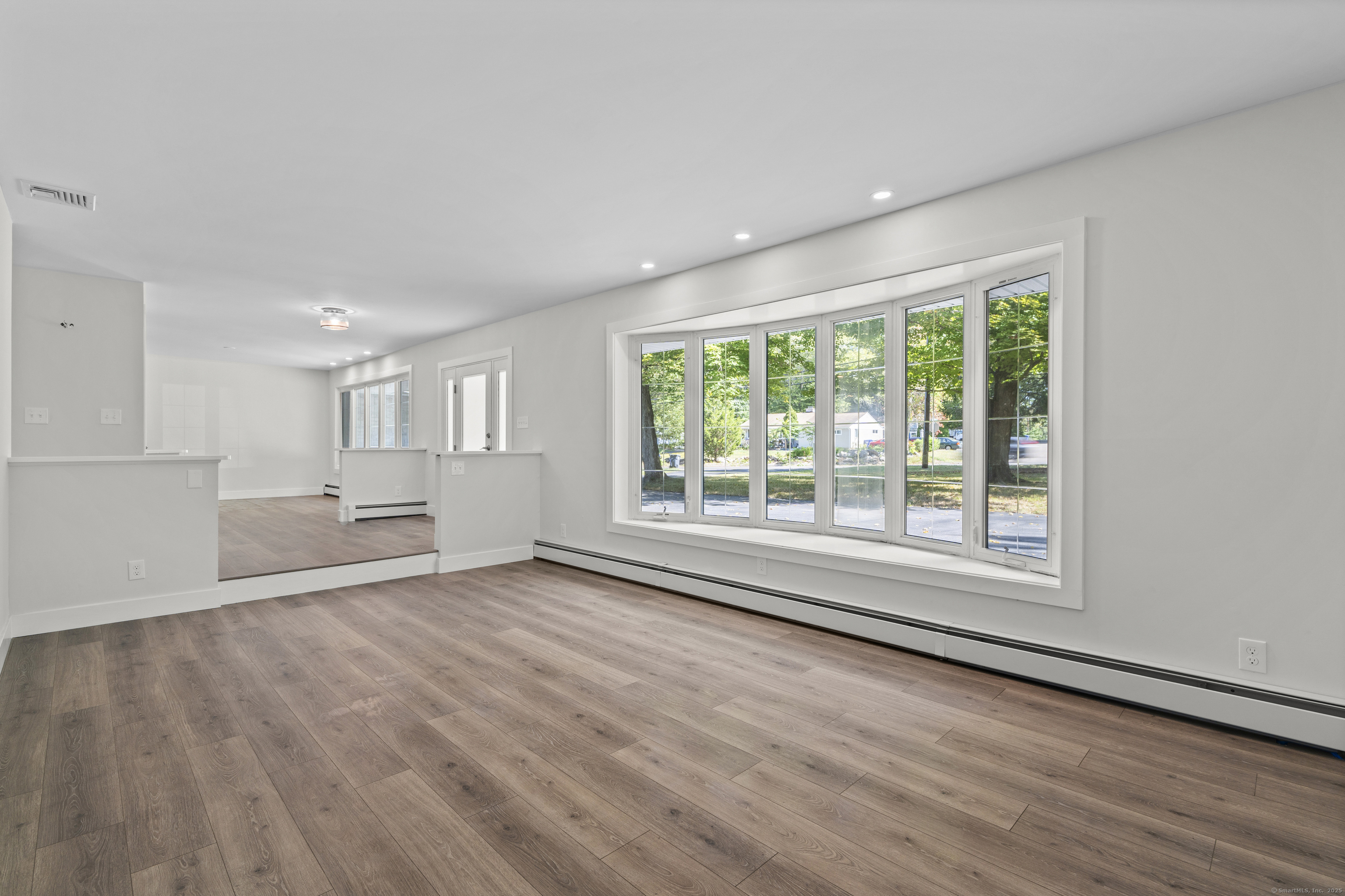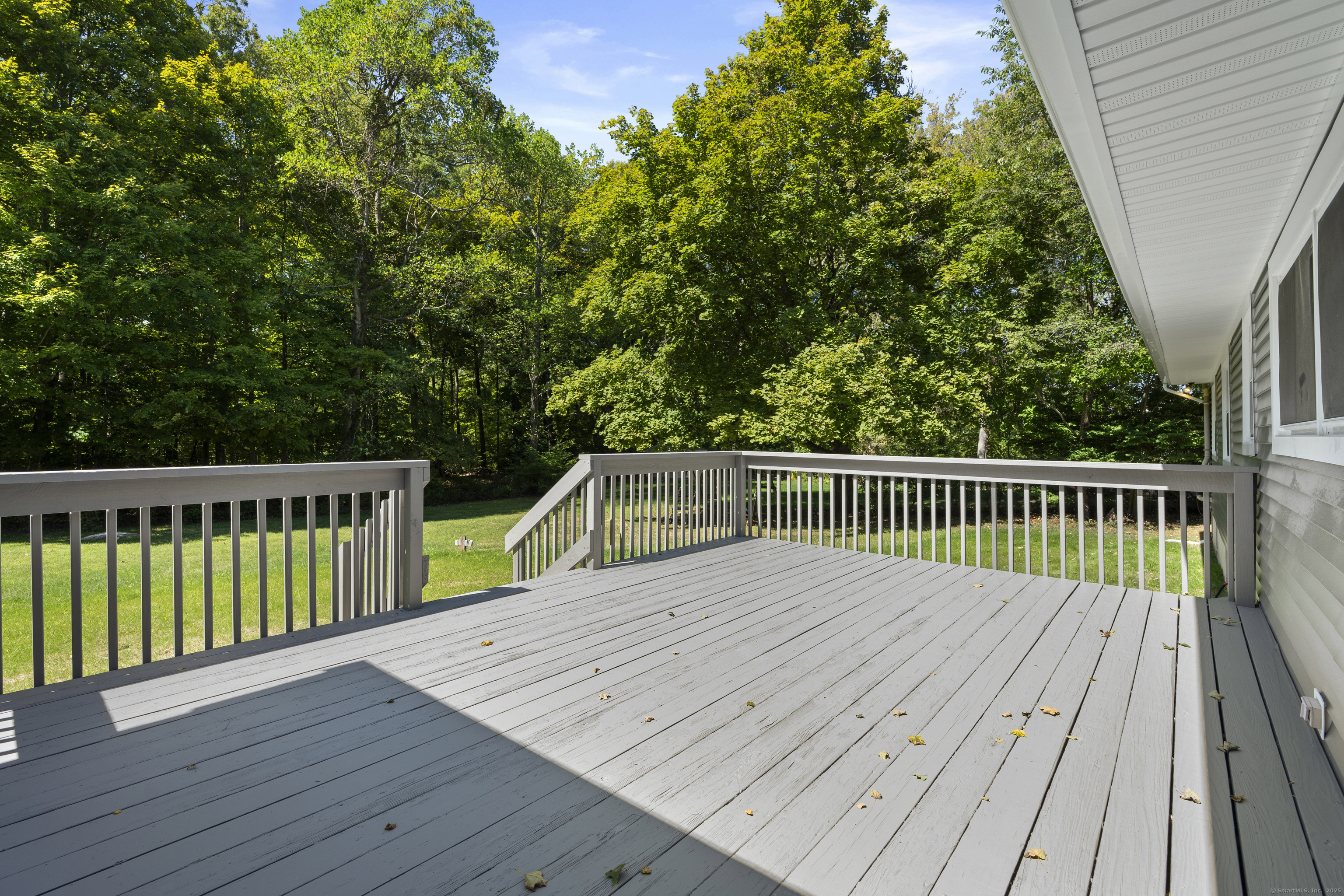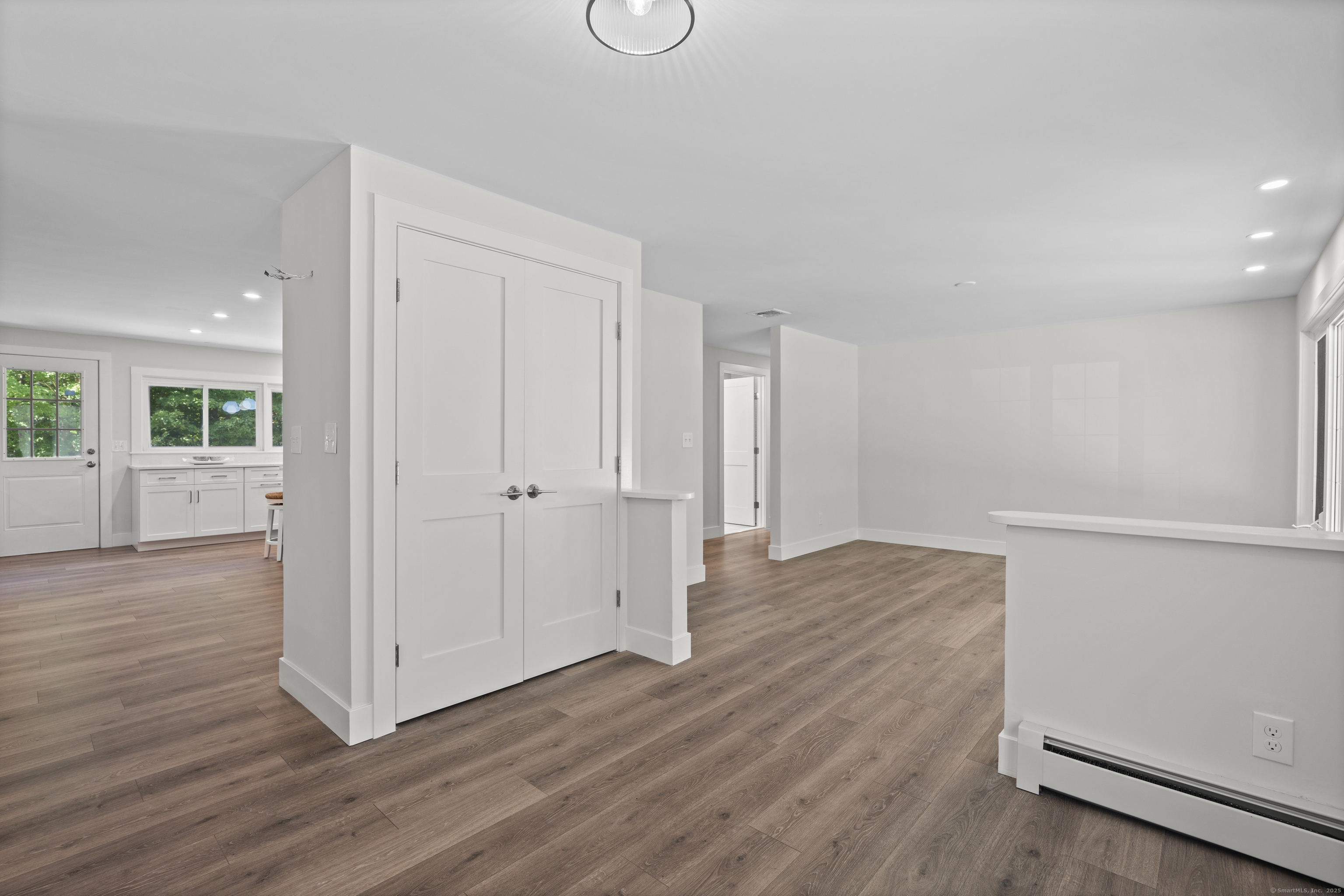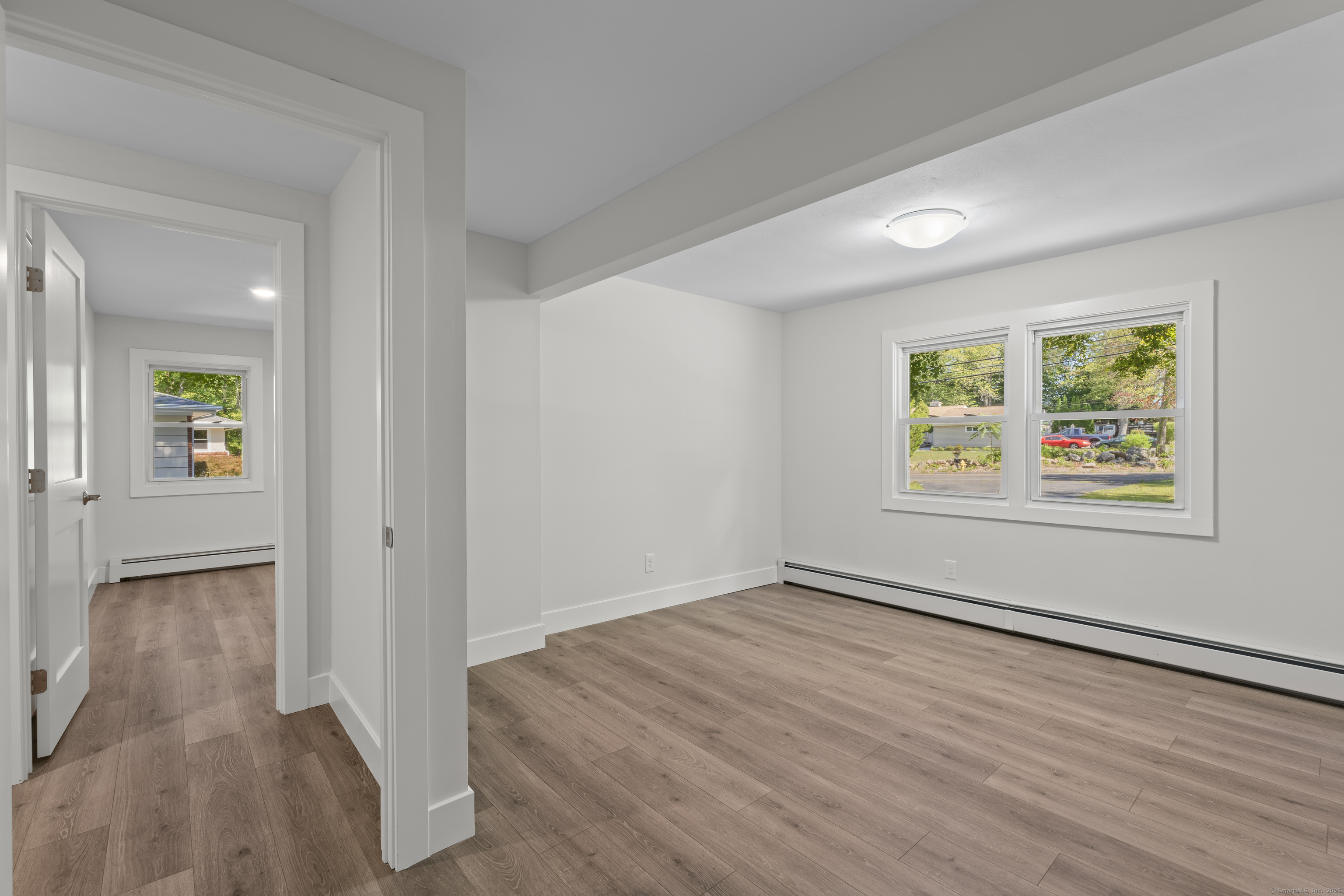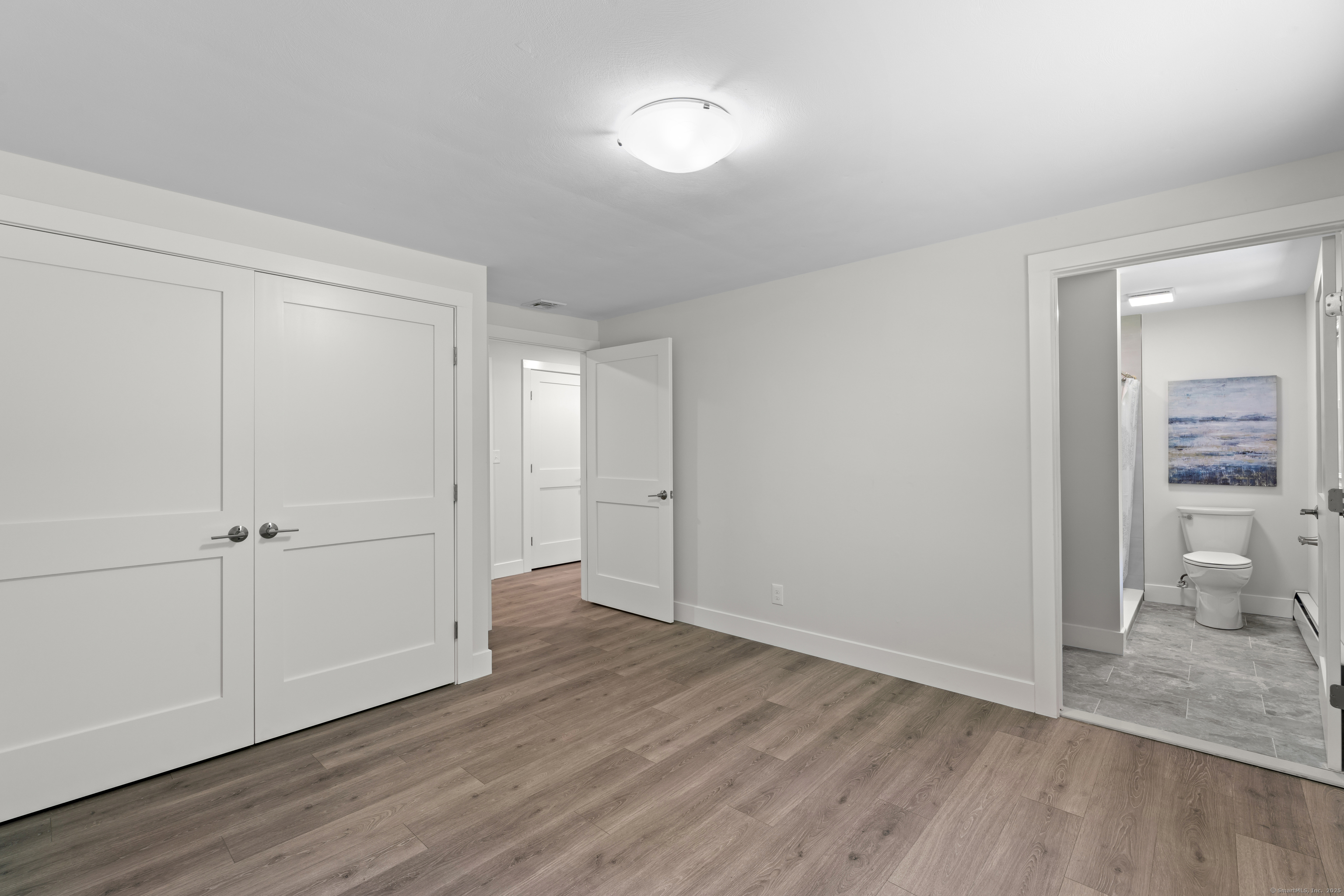 Welcome to 21 Featherbed Lane -a beautifully renovated 5 BR, 4 bath ranch south of route 1 in Branford. Thoughtfully remodeled from top to bottom, this move-in ready home combines modern style with practical comfort. Situated on a generous lot, the home's striking white brick, gray vinyl siding, and wide circular driveway create standout curb appeal. Inside, a spacious foyer leads to a formal living room and dining room, perfect for entertaining. The fully renovated kitchen features an oversized island, brand-new stainless-steel appliances, and a wall of windows that fills the space with natural light. The kitchen is open to the family room with a stone fireplace and French doors leading to covered porch and a large deck overlooking the private backyard. At the opposite end of the home are four large bedrooms, two with ensuite baths. Other updates include new flooring, doors and trim, generous recessed lighting, and fresh paint throughout. A separate apartment with its own bedroom and bath offers flexible living options-perfect for multigenerational living, a live-in caregiver, a home office or studio, or rental income. This apartment can be converted back into an attached garage if desired. Enjoy one-level living with an open layout, low-threshold entry, and a curbless shower-designed for comfort, mobility, and aging in place. City water, sewer, and natural gas offer low-maintenance, efficient, and worry-free living.