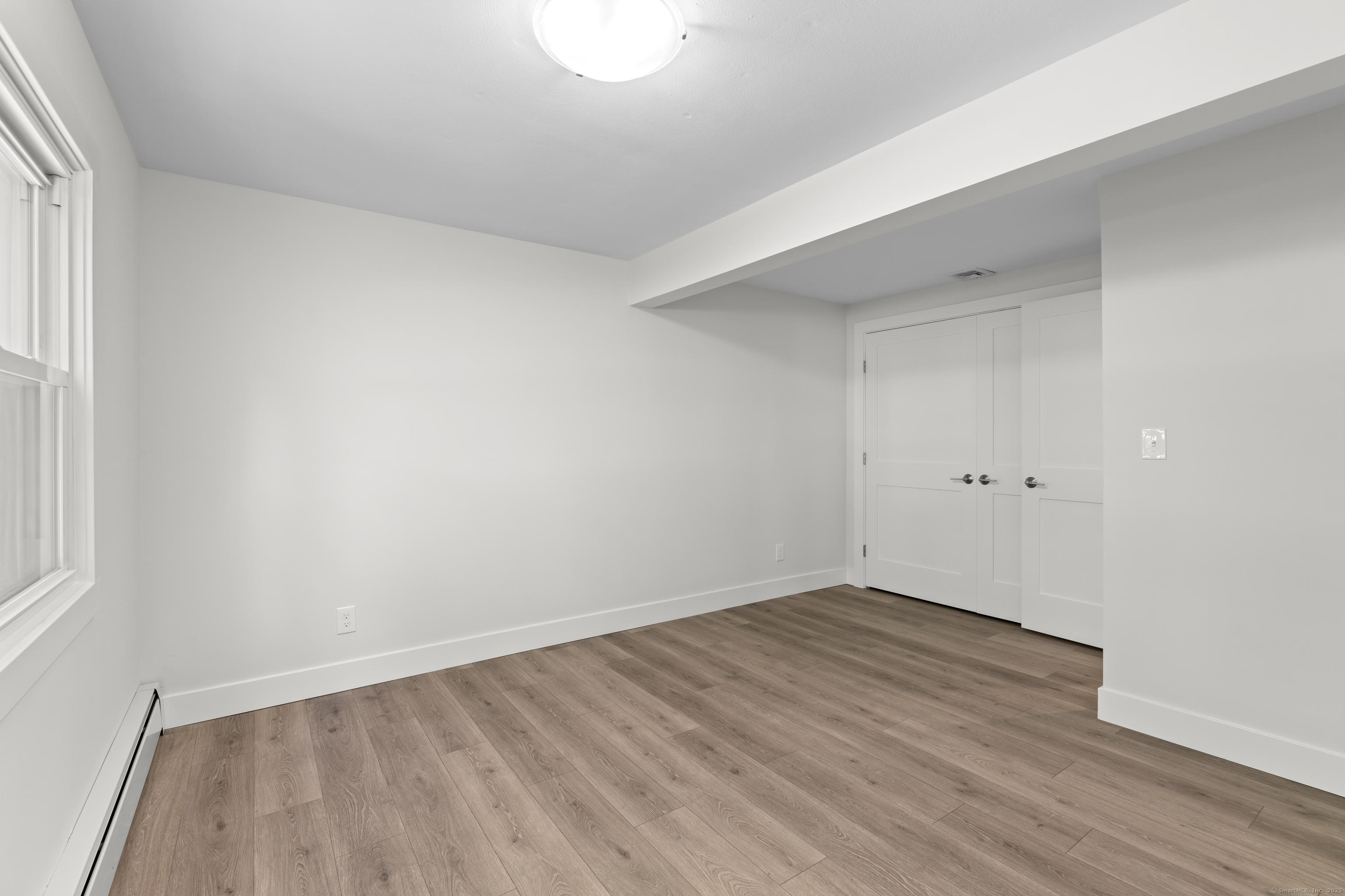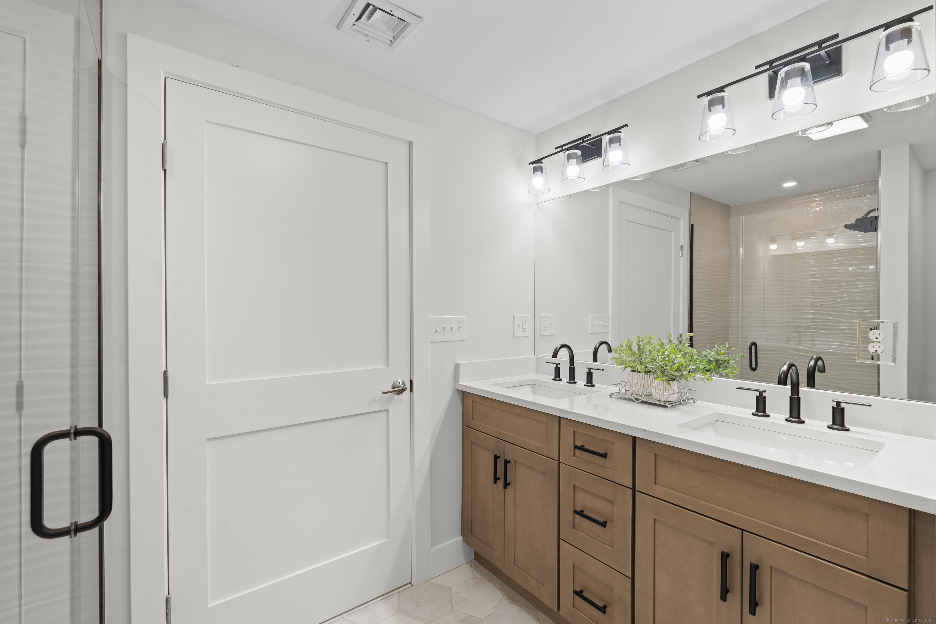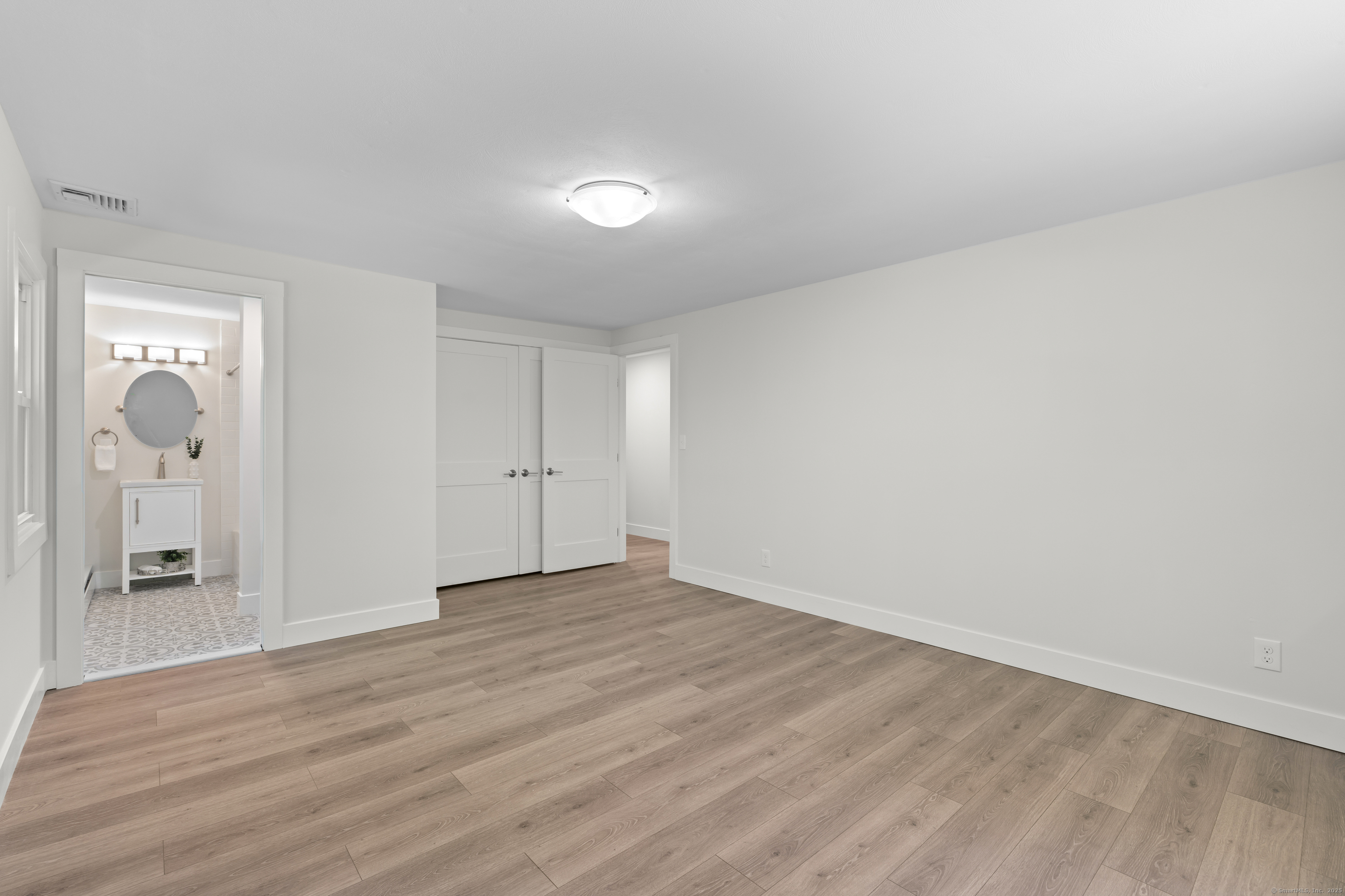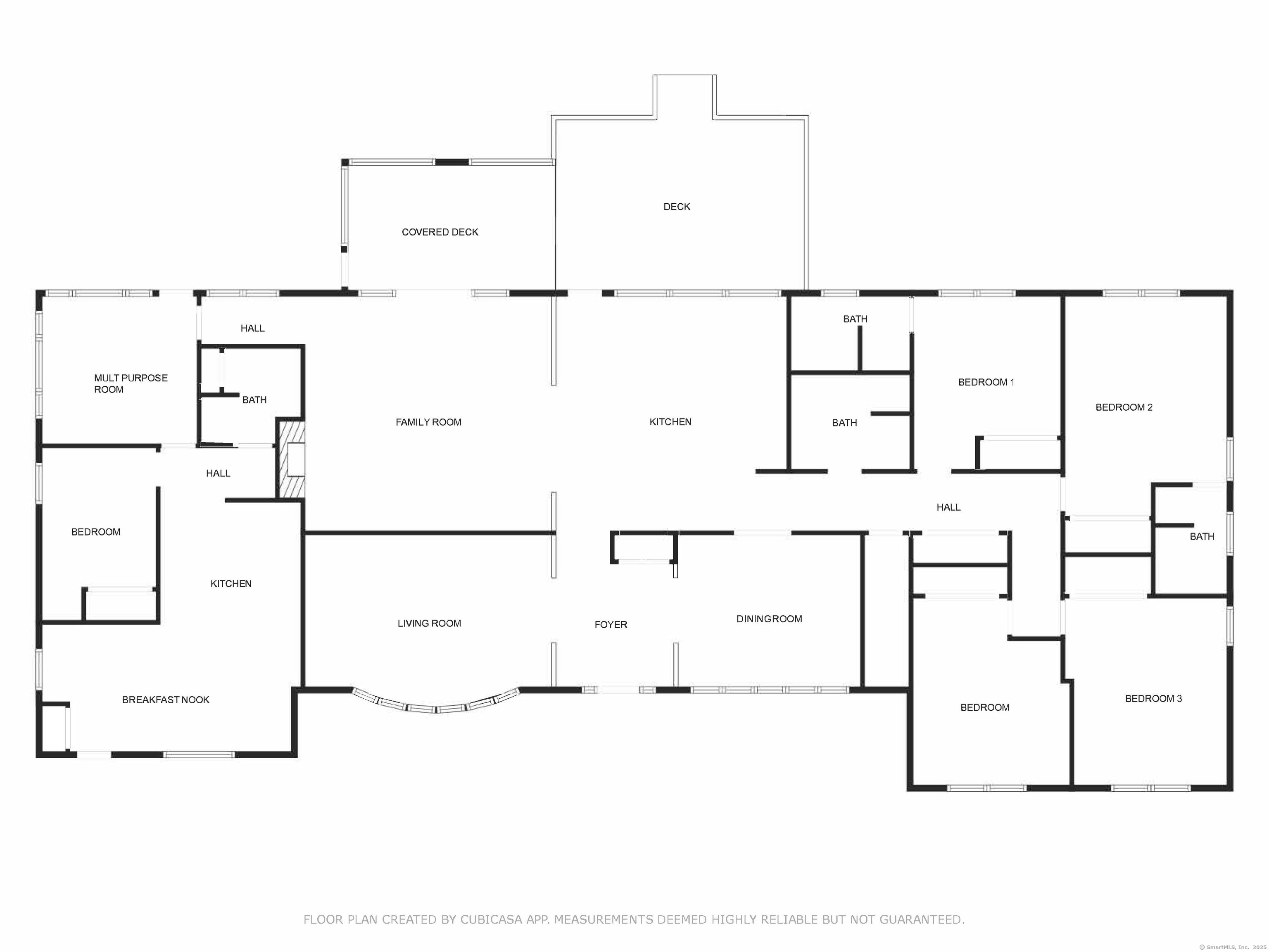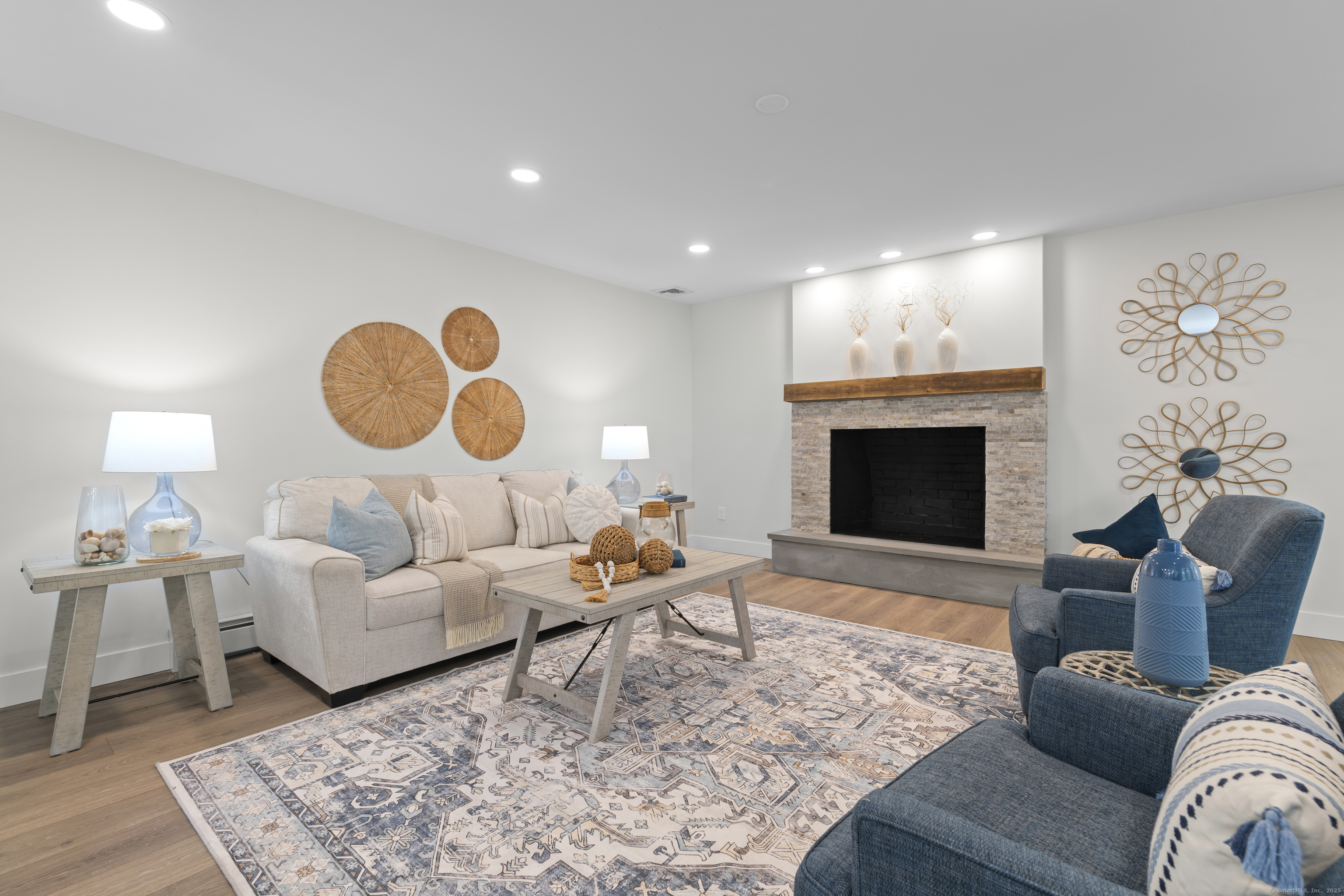 Welcome to 21 Featherbed Lane -a beautifully renovated 5 BR, 4 bath ranch south of route 1 in Branford. Thoughtfully remodeled from top to bottom, this move-in ready home combines modern style with practical comfort. Situated on a generous lot, the home's striking white brick, gray vinyl siding, and wide circular driveway create standout curb appeal. Inside, a spacious foyer leads to a formal living room and dining room, perfect for entertaining. The fully renovated kitchen features an oversized island, brand-new stainless-steel appliances, and a wall of windows that fills the space with natural light. The kitchen is open to the family room with a stone fireplace and French doors leading to covered porch and a large deck overlooking the private backyard. At the opposite end of the home are four large bedrooms, two with ensuite baths. Other updates include new flooring, doors and trim, generous recessed lighting, and fresh paint throughout. A separate apartment with its own bedroom and bath offers flexible living options-perfect for multigenerational living, a live-in caregiver, a home office or studio, or rental income. This apartment can be converted back into an attached garage if desired. Enjoy one-level living with an open layout, low-threshold entry, and a curbless shower-designed for comfort, mobility, and aging in place. City water, sewer, and natural gas offer low-maintenance, efficient, and worry-free living.