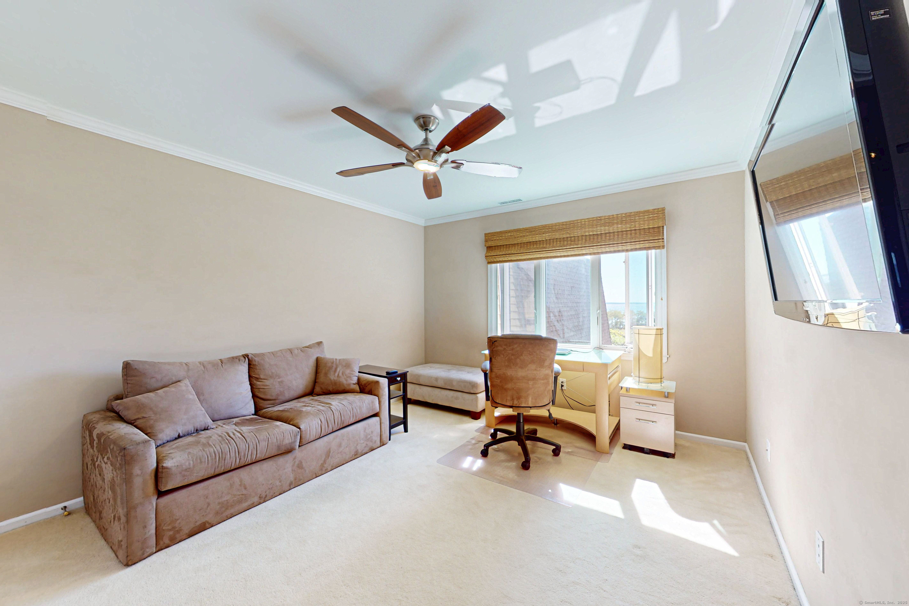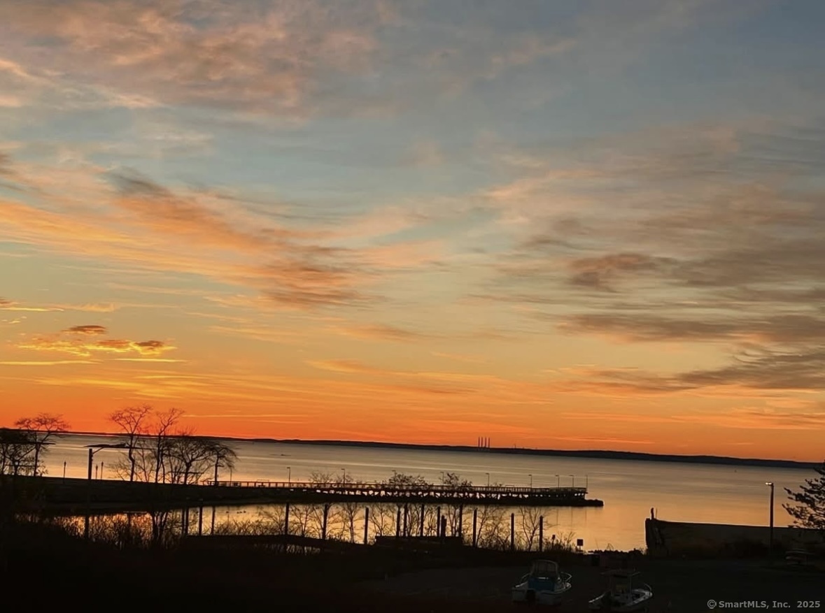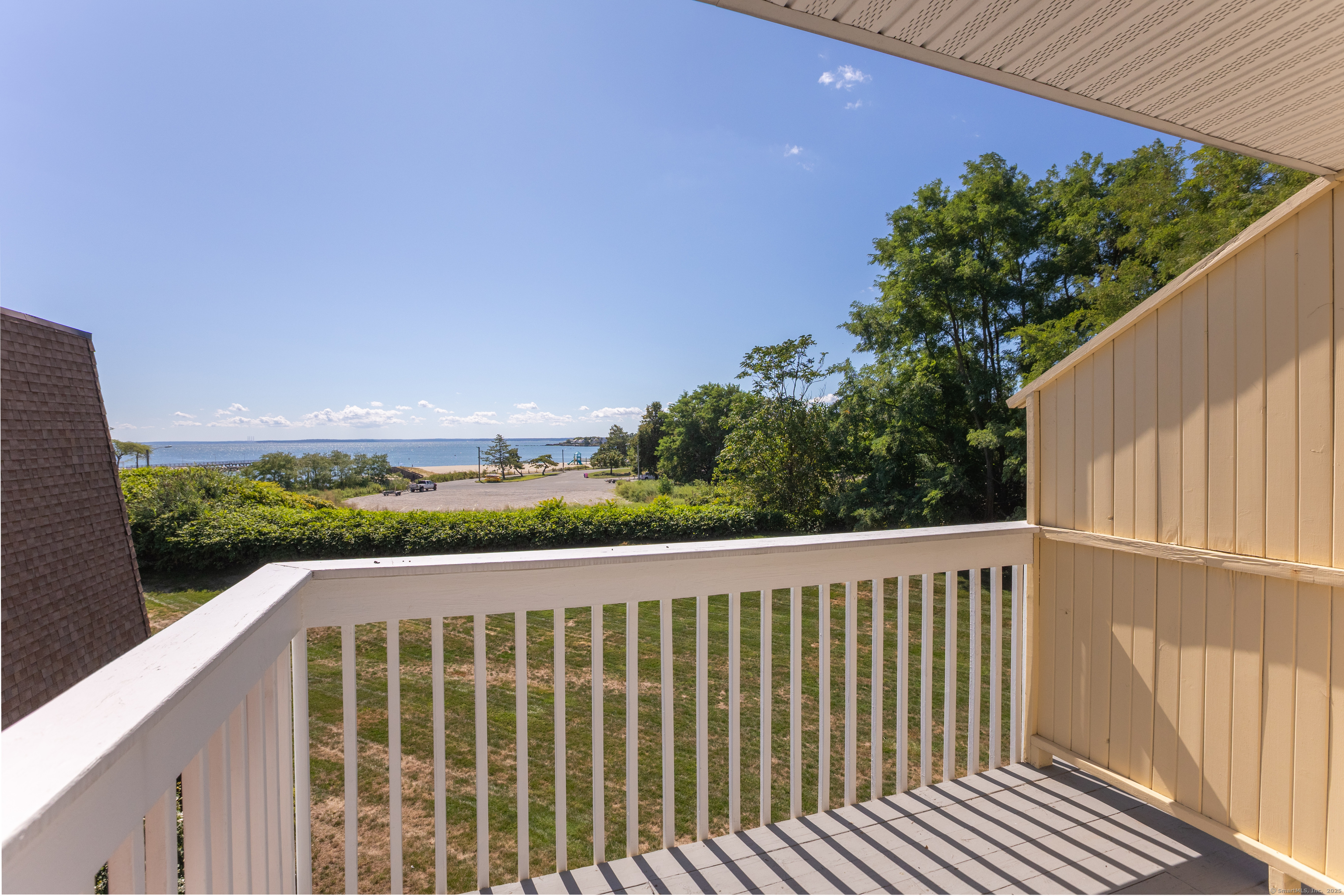 Shippan Point home has sparkling water views over Long Island Sound! Welcome to your seaside escape located in coveted Marina Bay. This bright and spacious 2-bedroom, 2.5-bath duplex condominium is perfectly sited just steps to the beach and minutes to Metro North train, and downtown shopping. Designed with an open-floor plan and flooded with natural light, the main level features an updated galley kitchen with granite counters, stainless steel appliances, and custom cabinets. The kitchen flows seamlessly into the dining area, where sliders open onto a private balcony-your perfect venue for relaxing or entertaining with spectacular water views. The adjoining oversized living room has a warming wood fireplace. A tastefully updated powder room and plenty of storage complete the main floor. Upstairs, the serene primary suite offers a luxurious private balcony overlooking Long Island Sound, a spacious layout with a walk-in closet, and a full en-suite bath. The second bedroom is filled with natural light and features custom closets, making it perfect as a guest room, home office, or both. A second full bath, laundry, and central vacuum are conveniently located on this level as well. Enjoy resort-style living with access to beautifully landscaped grounds, a waterfront in-ground pool, kayak racks, bike room, grills and a recently renovated clubhouse.
