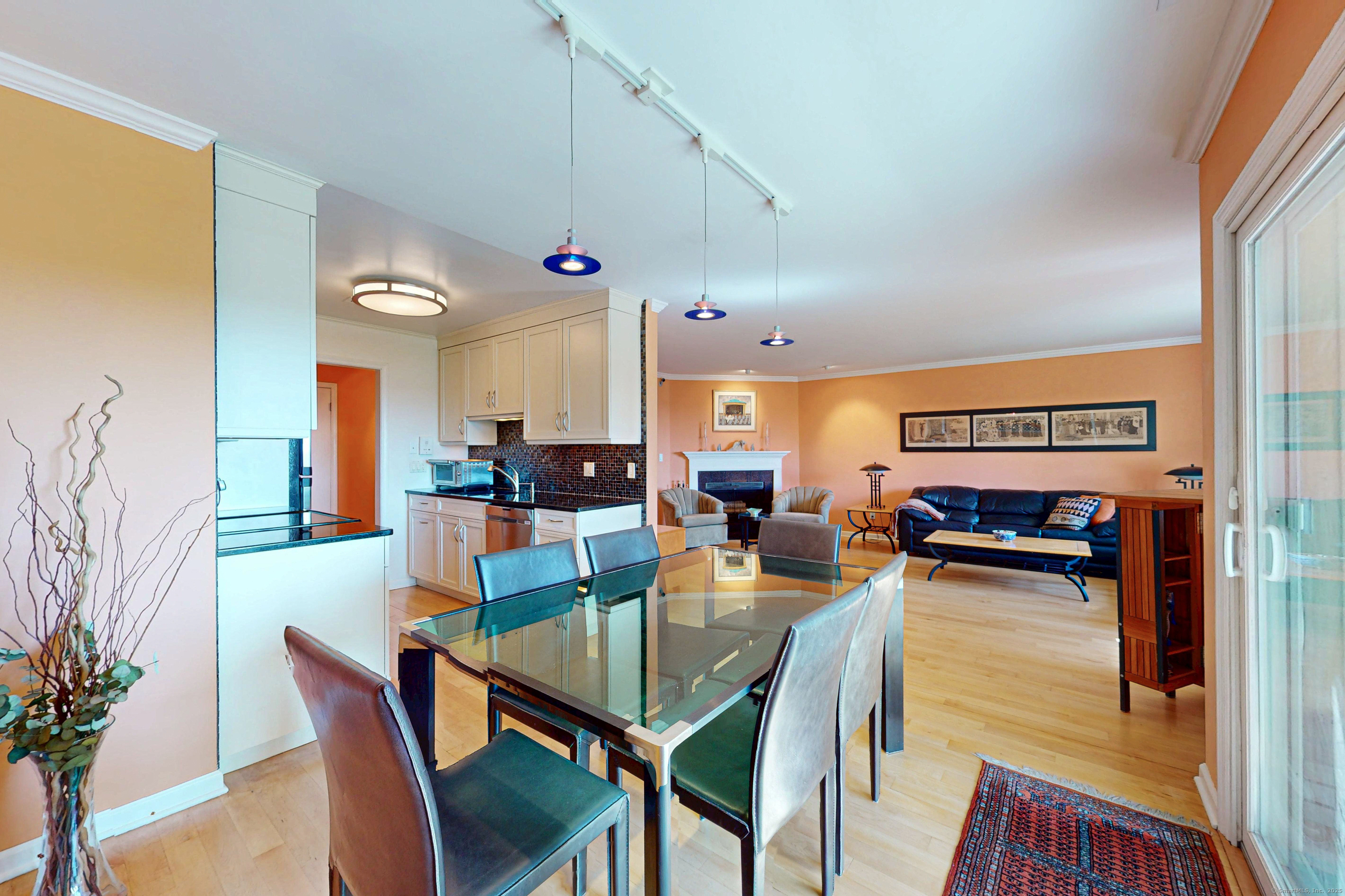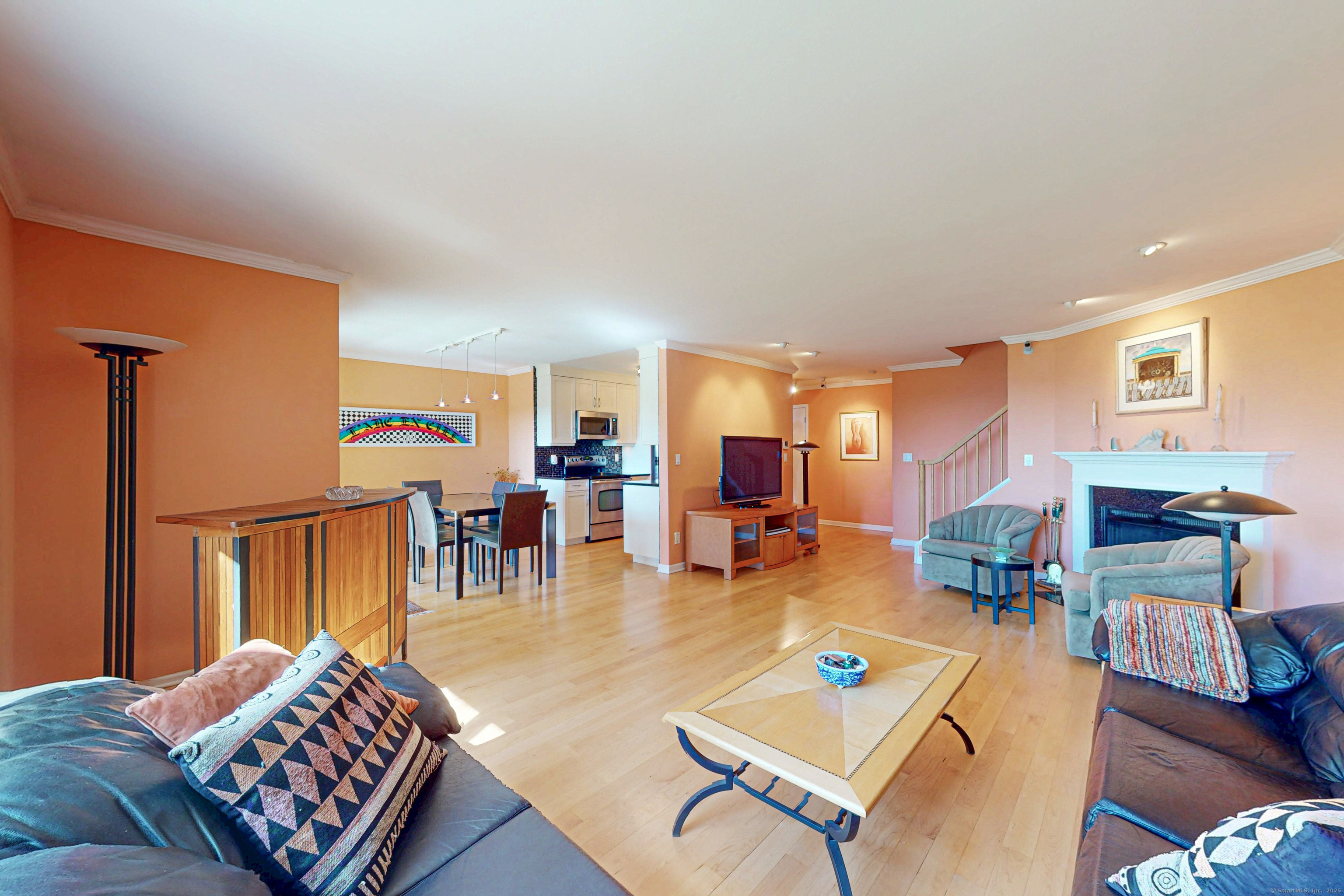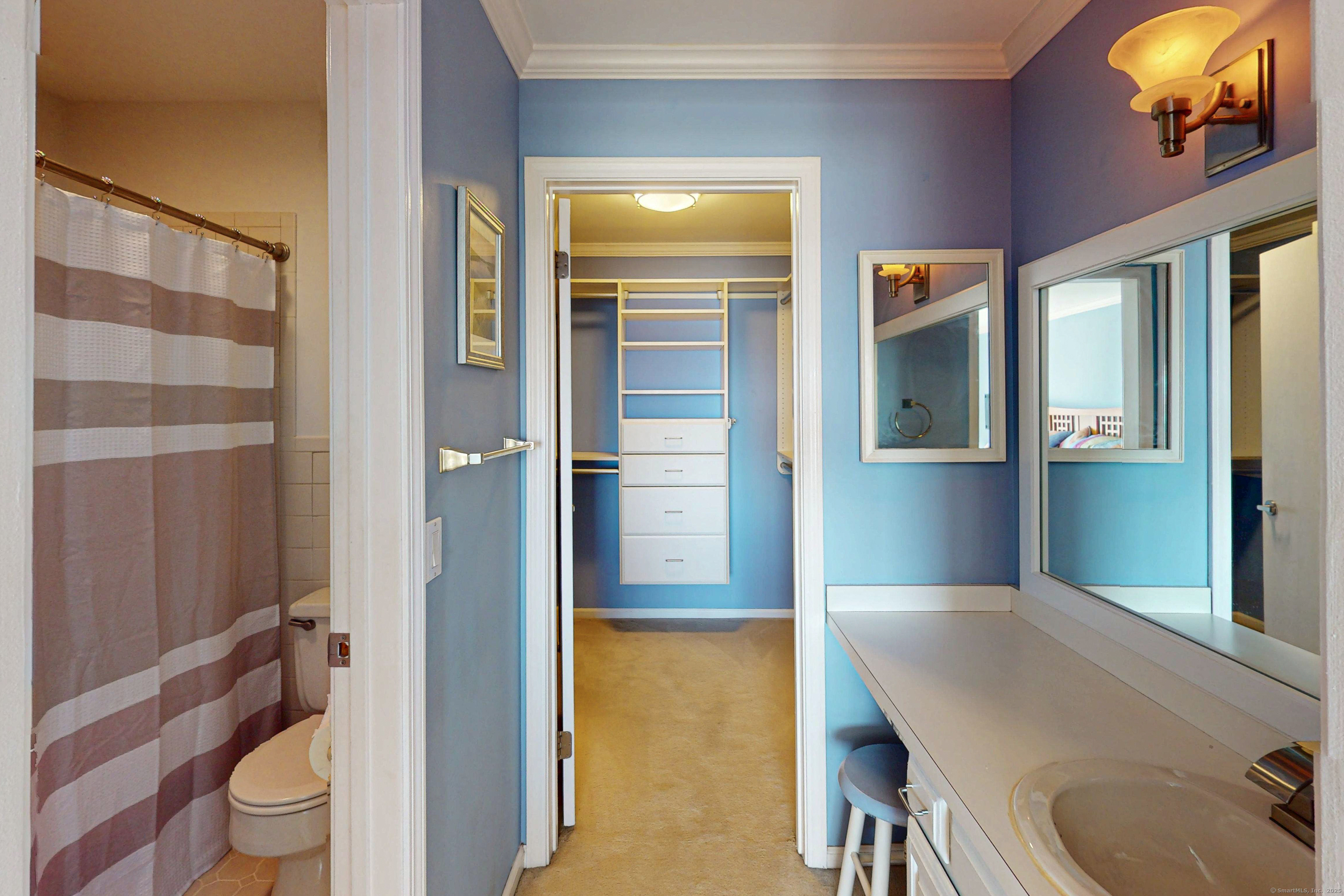 Shippan Point home has sparkling water views over Long Island Sound! Welcome to your seaside escape located in coveted Marina Bay. This bright and spacious 2-bedroom, 2.5-bath duplex condominium is perfectly sited just steps to the beach and minutes to Metro North train, and downtown shopping. Designed with an open-floor plan and flooded with natural light, the main level features an updated galley kitchen with granite counters, stainless steel appliances, and custom cabinets. The kitchen flows seamlessly into the dining area, where sliders open onto a private balcony-your perfect venue for relaxing or entertaining with spectacular water views. The adjoining oversized living room has a warming wood fireplace. A tastefully updated powder room and plenty of storage complete the main floor. Upstairs, the serene primary suite offers a luxurious private balcony overlooking Long Island Sound, a spacious layout with a walk-in closet, and a full en-suite bath. The second bedroom is filled with natural light and features custom closets, making it perfect as a guest room, home office, or both. A second full bath, laundry, and central vacuum are conveniently located on this level as well. Enjoy resort-style living with access to beautifully landscaped grounds, a waterfront in-ground pool, kayak racks, bike room, grills and a recently renovated clubhouse.