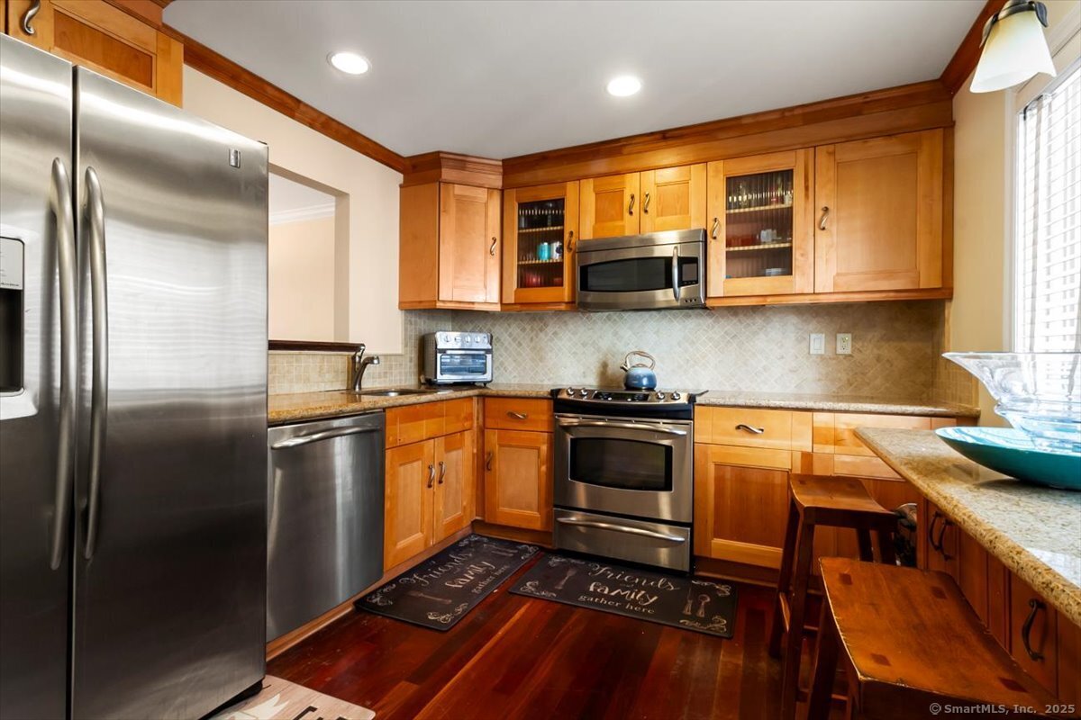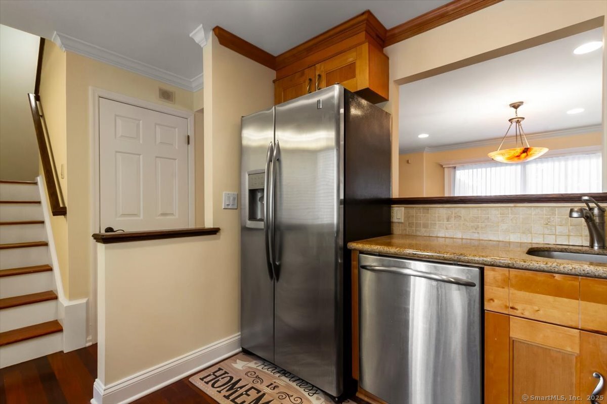 Welcome to this well-loved home for over 18 years in Parkview Green in the sought-after Springdale area. This is an exceptionally spacious townhouse that offers comfort and convenience in a prime location with easy access to the train for a quick commute to NYC, Springdale Elementary School, parks, library, shopping, and restaurants and a quick jaunt to Darien and New Canaan. This specially designed home spans 4 finished levels, offering both functionality and style. Cook in your kitchen and entertain in your open dining and living room with a cozy fireplace and large sliding doors to the deck that invites natural light and provides a perfect retreat to relax and unwind. The spacious primary bedroom features a custom designed walk-in closet, an ensuite updated bathroom and a deck off of the primary. An additional bedroom and bath are also spacious. The basement is perfect for a home office or playroom, with its adjacent laundry room, lots of storage. The expansive upstairs loft area with a bathroom and separate heating and cooling makes this a home with room to fit all of your needs and wants. The heating and cooling systems are only 3 years old. You have 2 assigned parking spots right in front of your home, and the exterior vinyl siding, insulation, gutters, downspouts and decks are all updated. This rarely available beauty in Parkview Green will not last.