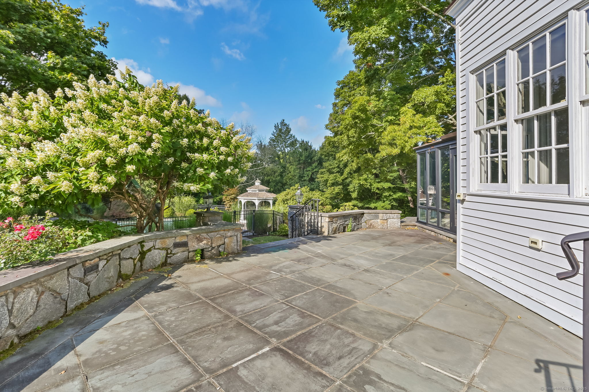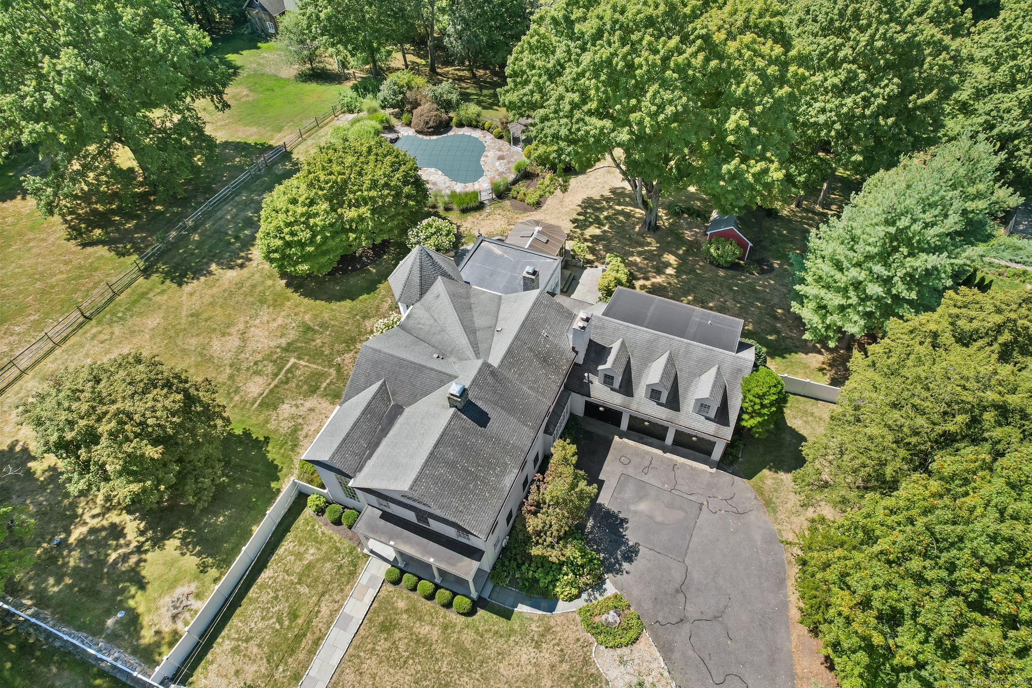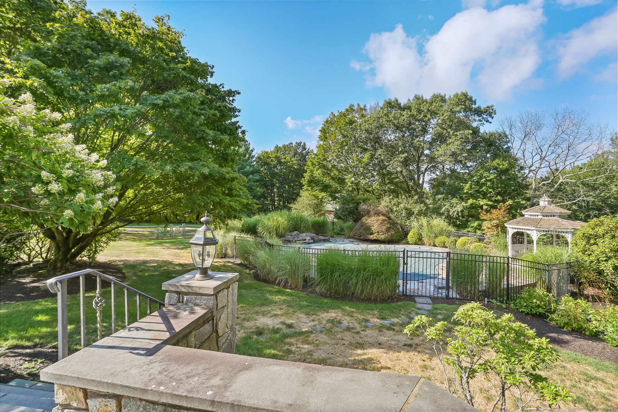 Transport yourself back in time in this classic Greenfield Hill colonial! This renovated 1817 stunner offers over 5,000 square feet of living space - complete with studio apartment, a light & welcoming sunroom and an amazing gunite pool with waterfall! Mature plantings and trees abound on this spacious, rolling property. A dramatic, two-story front entry with classic staircase welcomes you home. Hardwood floors and high ceilings give even more character and elegance to the home. A more contemporary, open floor plan runs throughout the first floor - highlighted by a chef's kitchen, family room and formal dining room (both with fireplaces), living room, den, office and more! The primary bedroom suite with elegant bath and walk-in closet punctuates the fantastic second floor, with three additional bedrooms. The home is perfect for hosting parties and overnight guests. An apartment (w/separate entrance) over the garage, an attached three-car garage and charming front porch are further features of this pastoral, private & relaxing home and property. Enjoy everyday or on the weekends! Option to rent the property with the on-premises barn! The two-story barn adds even more to your experience. It has three large stalls - perfect for trail rides a stone's throw away at The Fairfield Bridle Trails and Brett Woods! Additional riding opportunities at the nearby Fairfield County Hunt Club. Close to Fairfield & Westport shopping, restaurants, entertainment & commuting