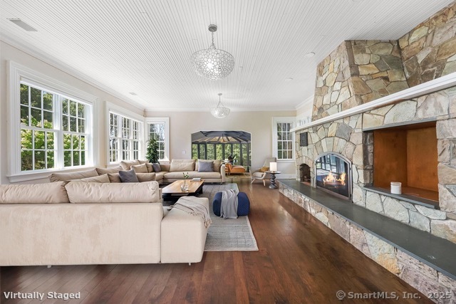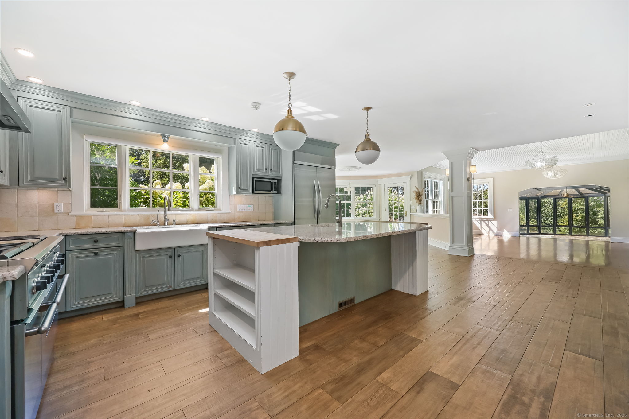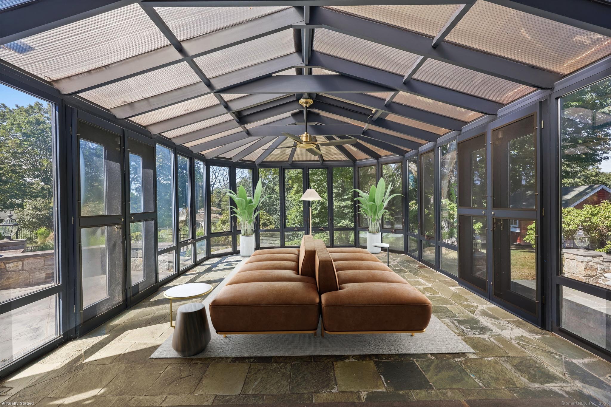 Transport yourself back in time in this classic Greenfield Hill colonial! This renovated 1817 stunner offers over 5,000 square feet of living space - complete with studio apartment, a light & welcoming sunroom and an amazing gunite pool with waterfall! Mature plantings and trees abound on this spacious, rolling property. A dramatic, two-story front entry with classic staircase welcomes you home. Hardwood floors and high ceilings give even more character and elegance to the home. A more contemporary, open floor plan runs throughout the first floor - highlighted by a chef's kitchen, family room and formal dining room (both with fireplaces), living room, den, office and more! The primary bedroom suite with elegant bath and walk-in closet punctuates the fantastic second floor, with three additional bedrooms. The home is perfect for hosting parties and overnight guests. An apartment (w/separate entrance) over the garage, an attached three-car garage and charming front porch are further features of this pastoral, private & relaxing home and property. Enjoy everyday or on the weekends! Option to rent the property with the on-premises barn! The two-story barn adds even more to your experience. It has three large stalls - perfect for trail rides a stone's throw away at The Fairfield Bridle Trails and Brett Woods! Additional riding opportunities at the nearby Fairfield County Hunt Club. Close to Fairfield & Westport shopping, restaurants, entertainment & commuting