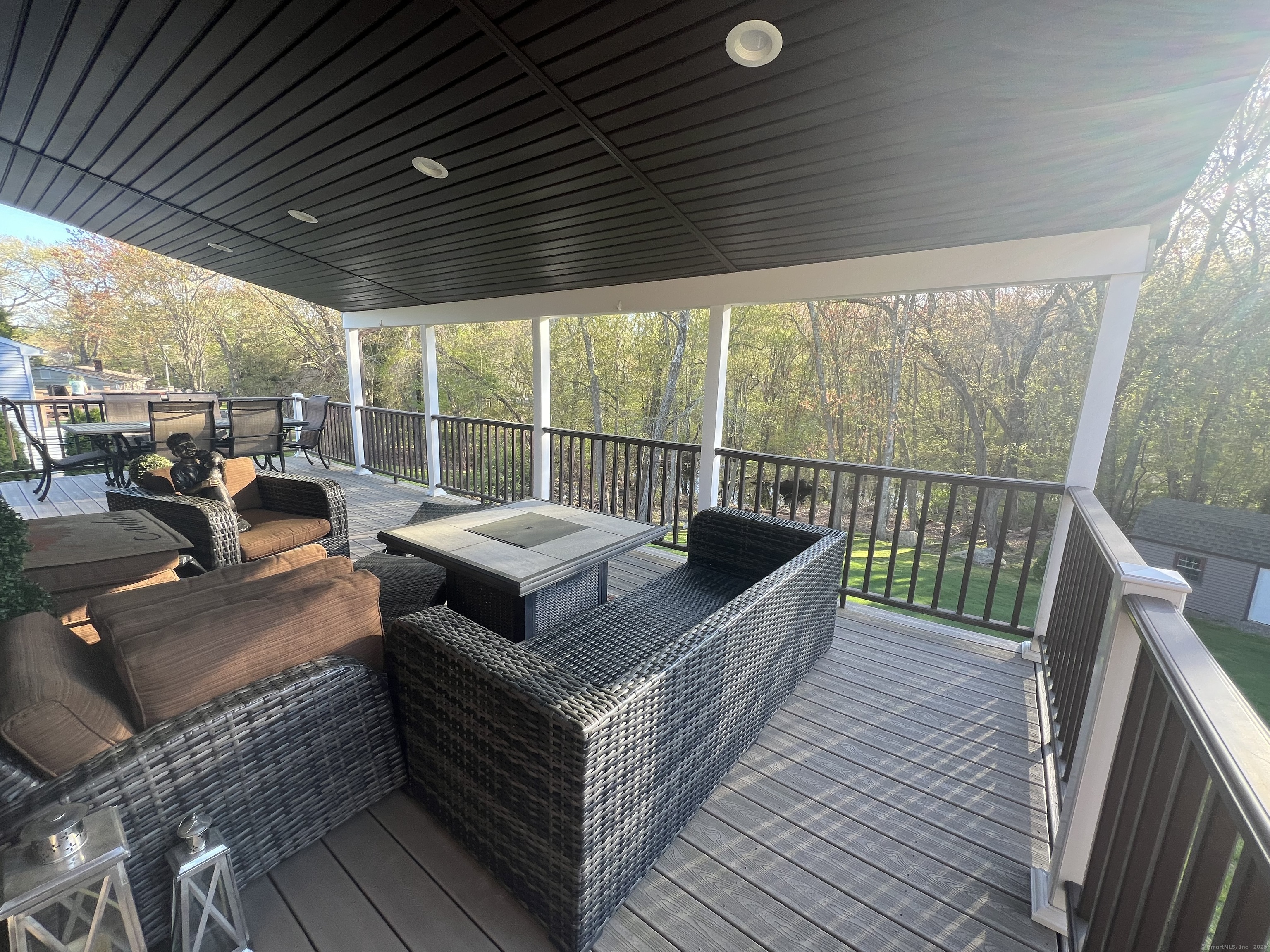 Charming Raised Ranch Just Steps from Oxoboxo Lake: Welcome to this lovingly maintained 3-bedroom, 1.5-bath home, proudly owned for over 47 years. Ideally located just a short walk from the scenic shores of Oxoboxo Lake, this property offers the perfect combination of comfort, convenience, and natural beauty. Step outside and enjoy the peaceful surroundings from both levels of Trex decking-perfect for relaxing, entertaining, or simply taking in the serene landscape. The backyard extends into tranquil wetlands, offering 1.21 acres of a calming backdrop filled with the sights and sounds of local wildlife. Additional features are a one-car garage with automatic opener, backup generator for peace of mind, and a backyard shed for extra storage of tools, equipment, or seasonal items. Inside, you'll find three bedrooms on the upper level and a spacious full bath with a tub and shower. The kitchen features brand-new appliances and is ready for your culinary creations. Central air conditioning ensures year-round comfort throughout the home. The finished basement adds valuable living space, complete with a large storage room and a convenient half bath-perfect for a home office, recreation area, or guest suite. This home has been well cared for and is ready for your personal touch. With just a few minor updates, it can truly shine. Don't miss this rare opportunity to own a peaceful retreat just steps from the lake. Schedule your private showing today!