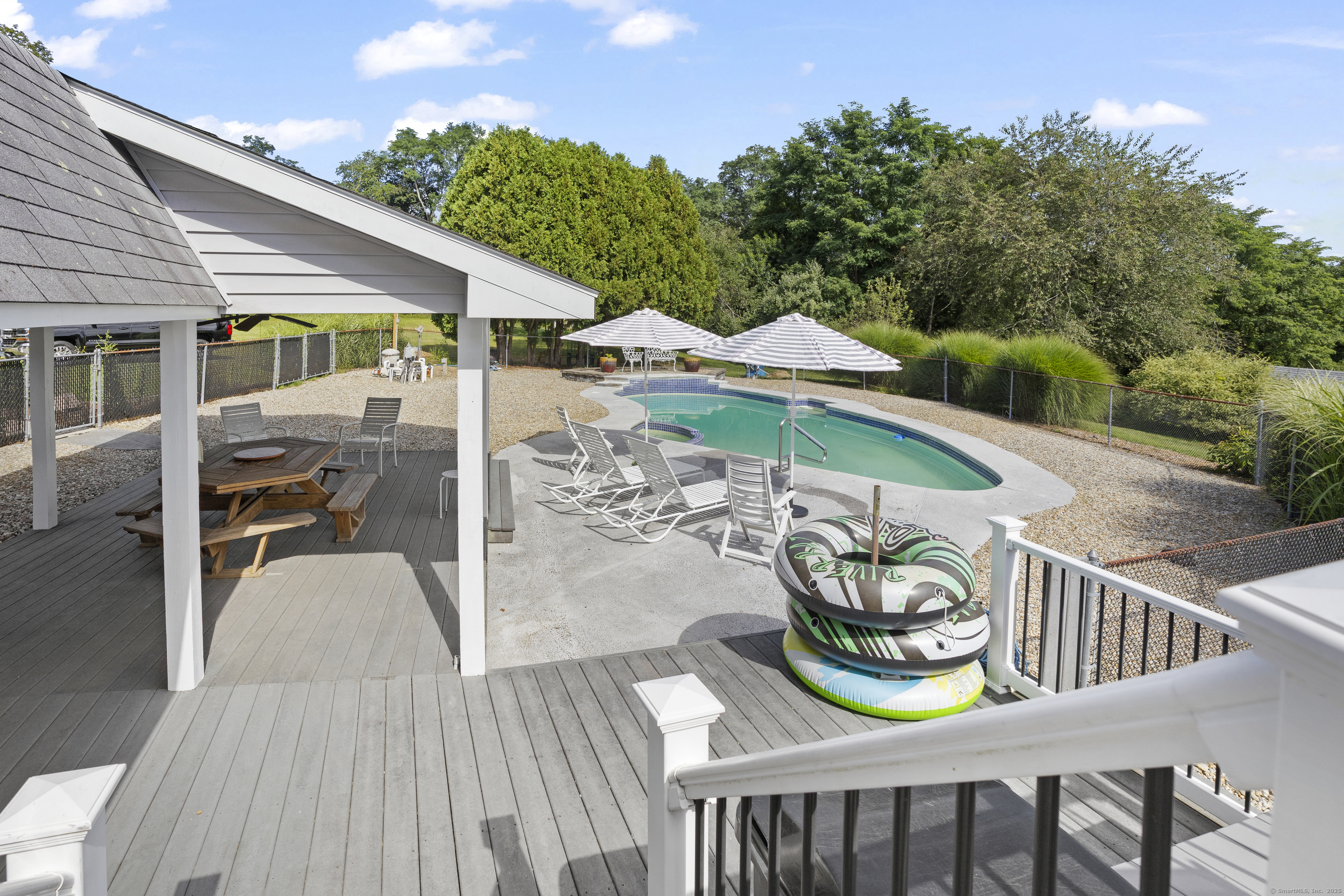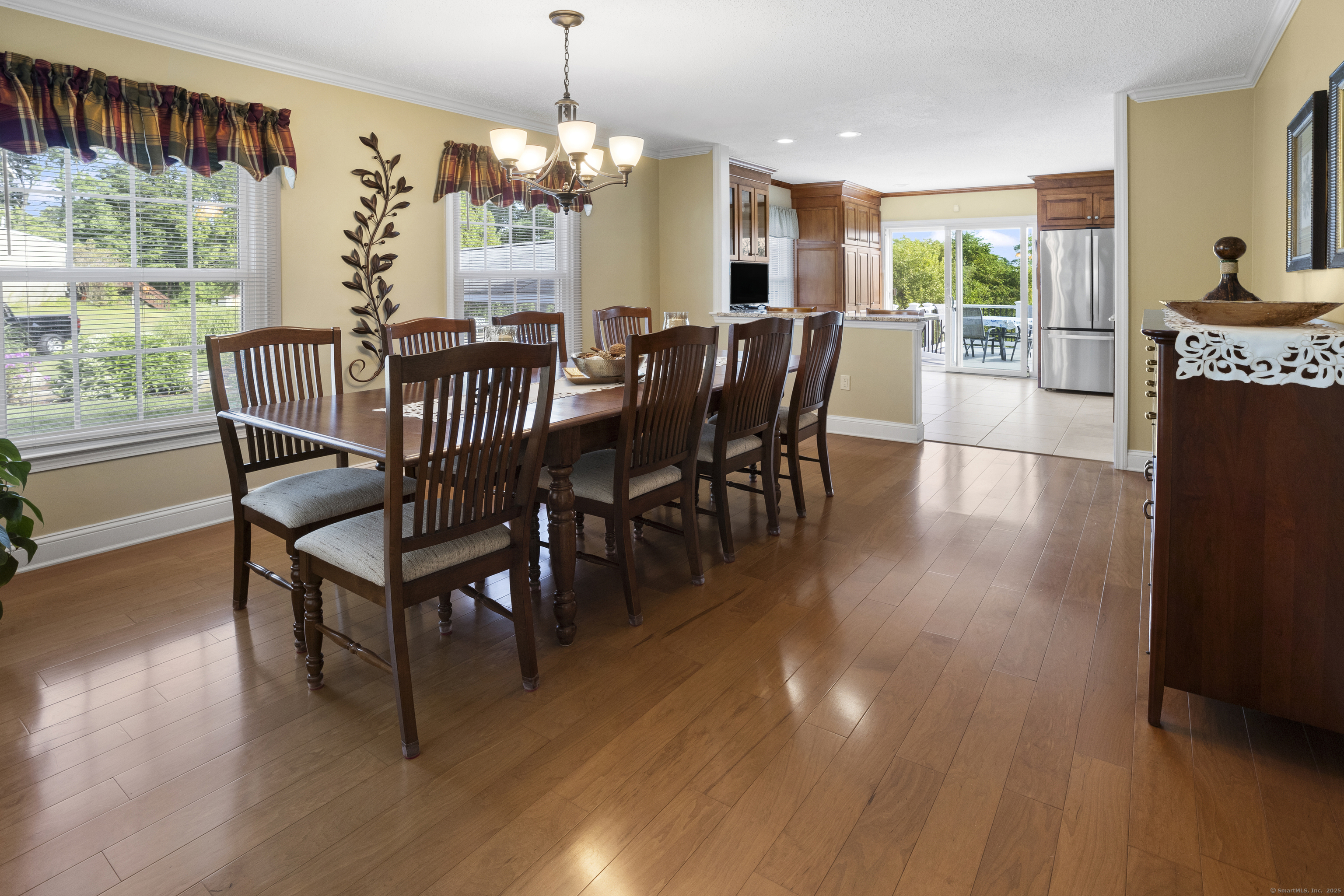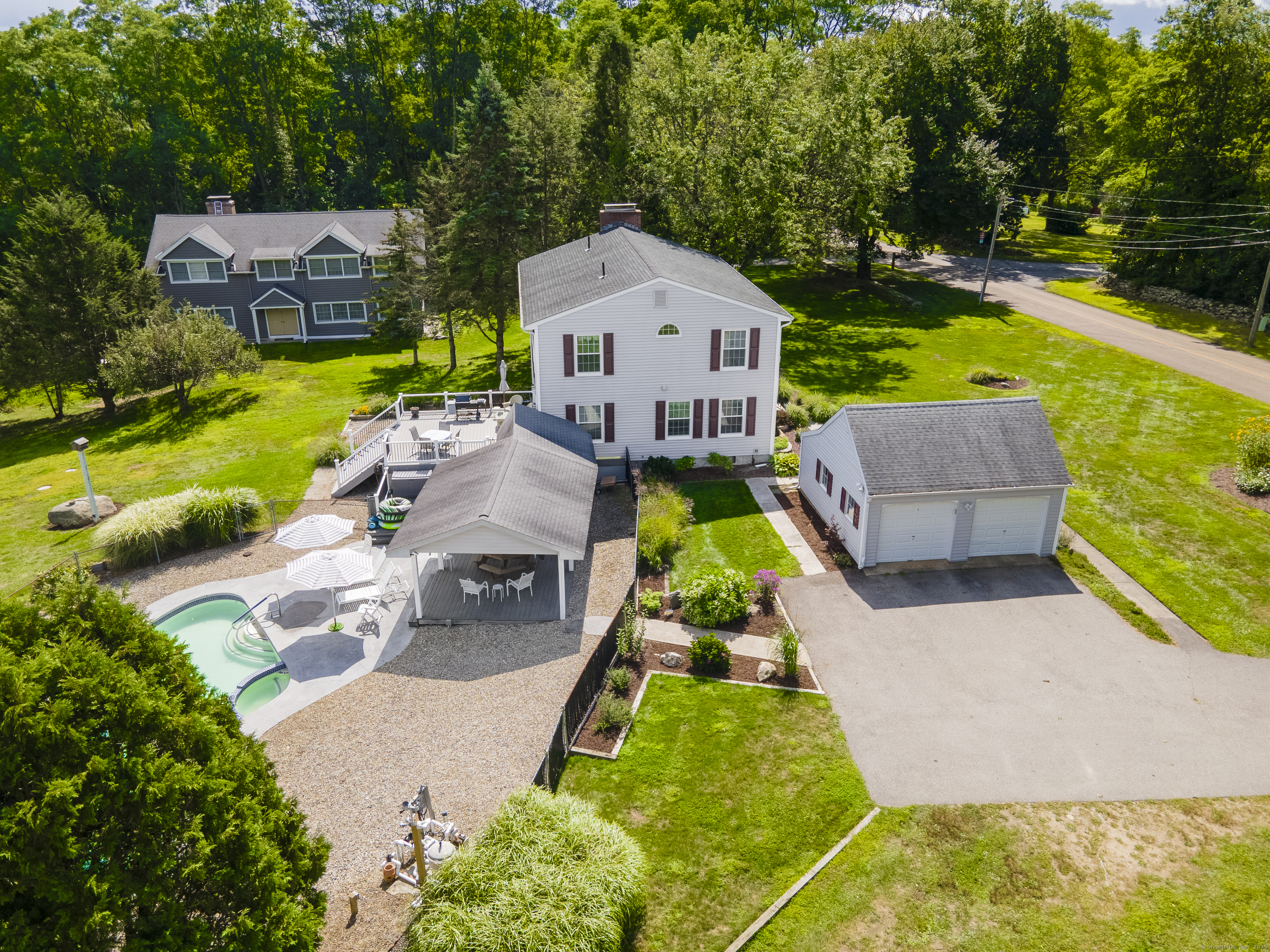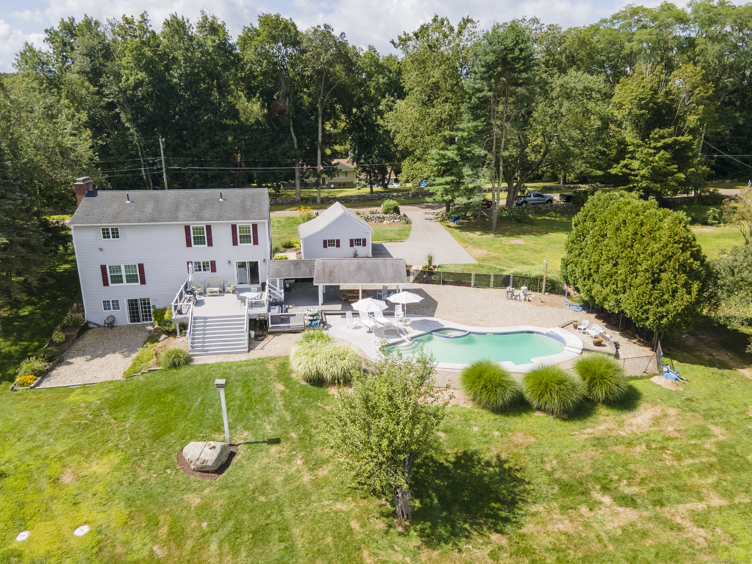 You will be thankful this Thanksgiving when you entertain your guests in this spacious, care-free home! The seller has lovingly refurbished this home with new windows, revised floor plan, engineered wood floors, newer roof, kitchen, attic insulation, chimney and more. Brand new septic in 2024. A gentle sloping back yard will afford a place to sled on a winter's day before you hop up to the lovely granite kitchen island to enjoy hot cocoa. In summer, entertain under the Pavilion while guests enjoy the in-ground pool and yard. Paddleboard or kayak at Coventry Lake just down the street! There are a Town Beach and Boat launch! Flower beds will satisfy your green thumb and there is plenty of space for raised beds. Potential for in-law suite in walk-out basement. Also, a workshop awaits a master craft person! Central vac! College bound? UConn and Eastern Connecticut State University are minutes away! Easy commute to Hartford and Manchester malls!