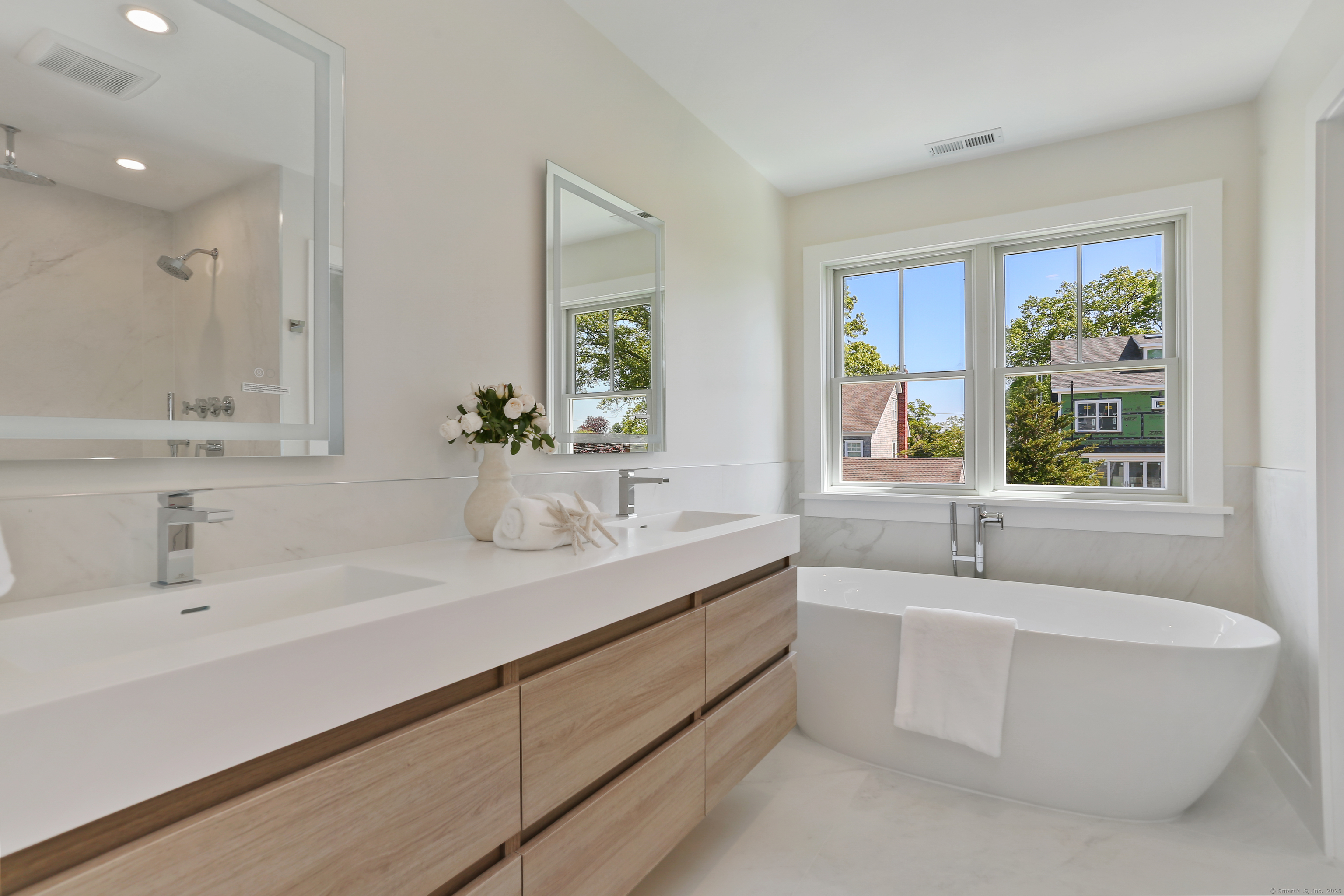 Stunning NEW construction the desirable Fairfield Beach neighborhood. This gorgeous home is crafted by premier 43 year Fairfield County builder. Premium materials, thoughtful design, and masterful workmanship are showcased throughout. Step inside to find a clean lined, open living space with 9' ceilings. The inviting living room, featuring a captivating 54" cool wall gas fireplace, seamlessly flows into the custom gourmet kitchen. This culinary haven is equipped with Thermador appliances, a center island with 2" beveled quartz counters, espresso machine, and walk-in pantry ensuring both style and functionality. The dining area, with French doors, offers a picturesque view of the expansive backyard and stone patio. The main floor flex room provides versatile options, including office, family room, formal dining, or an additional bedroom. Upstairs, the spacious primary bedroom boasts a lux bathroom and walk-in closet. Two more bedrooms and a laundry room complete the 2nd level. The 3rd level offers the 4th bedroom and bath along with a flex bonus room and lots of storage. Wonderful location, easy walking distance to vibrant Fairfield town center, train, beach & tennis. Waterfront community 50 miles from NYC offering coastal charm, historic preservation, wonderful dining, shopping, arts and 2 nationally ranked Universities.