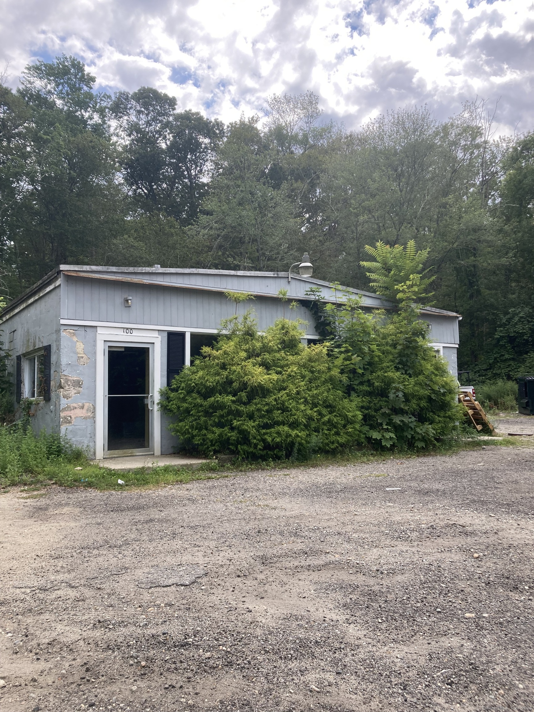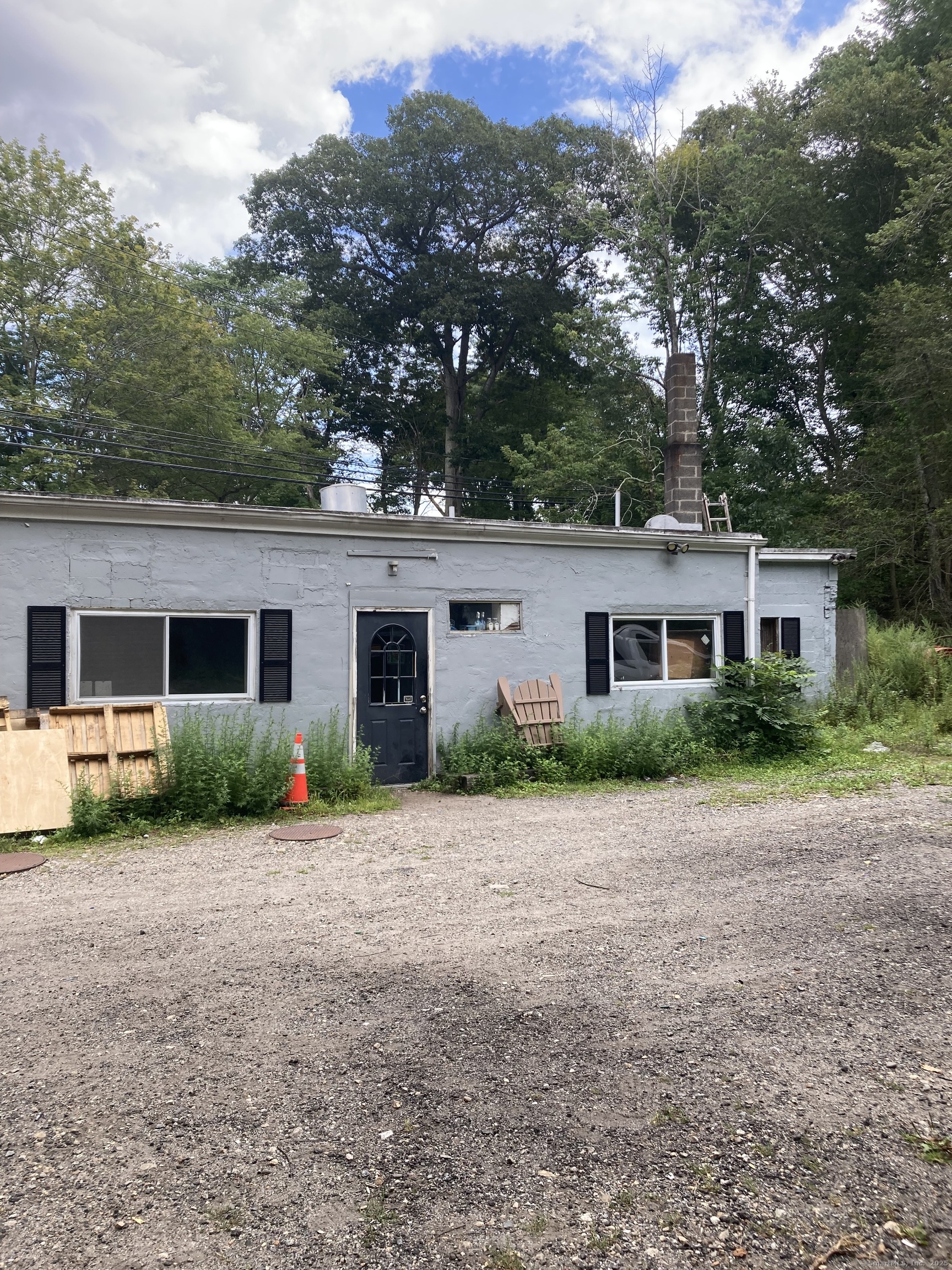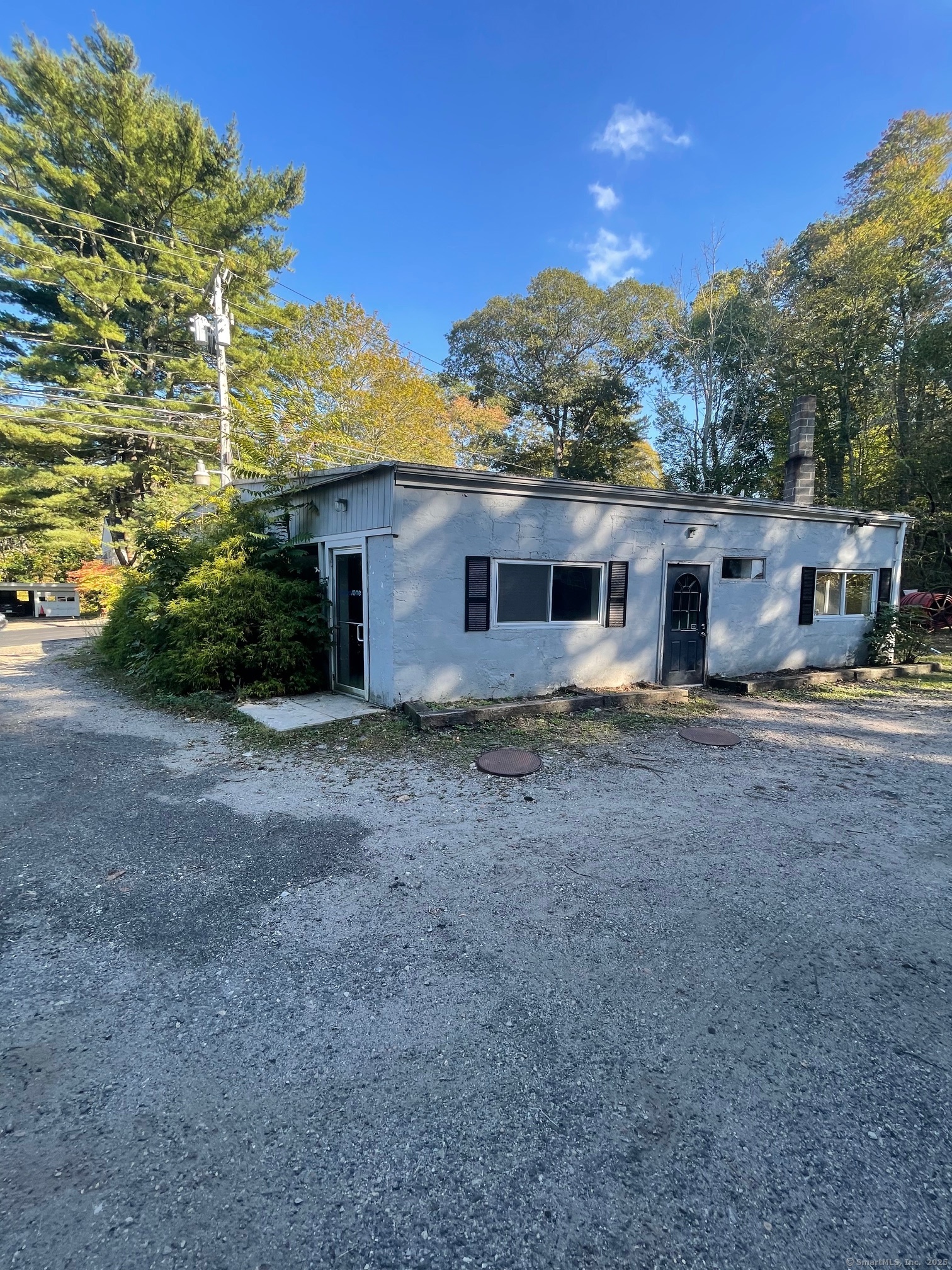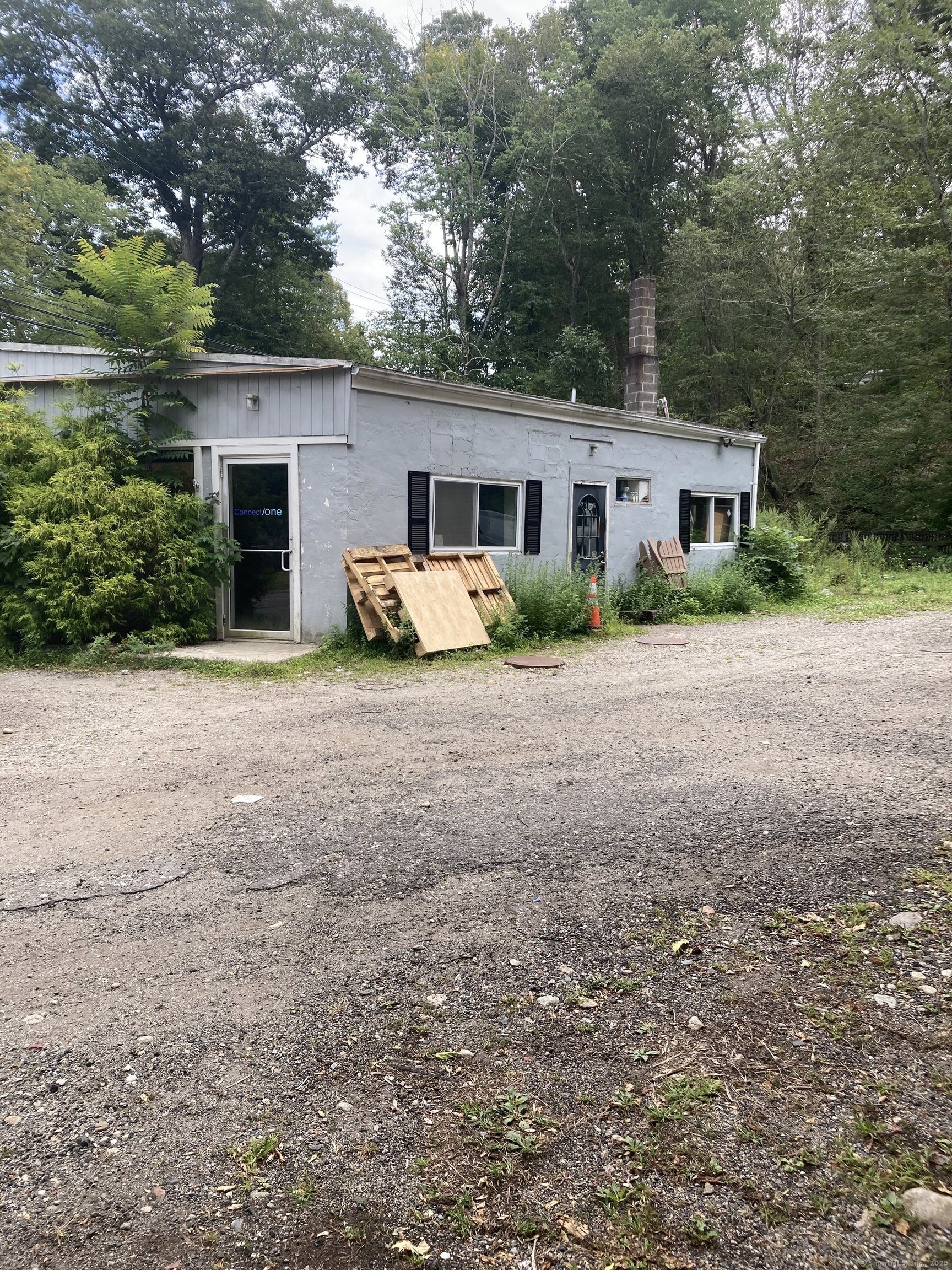 Commercial building consisting of 2,853 SF with wooden deck along a stream. Last use was a restaurant in half and plumber in the other half. Approvals to add additional building with apartment above.