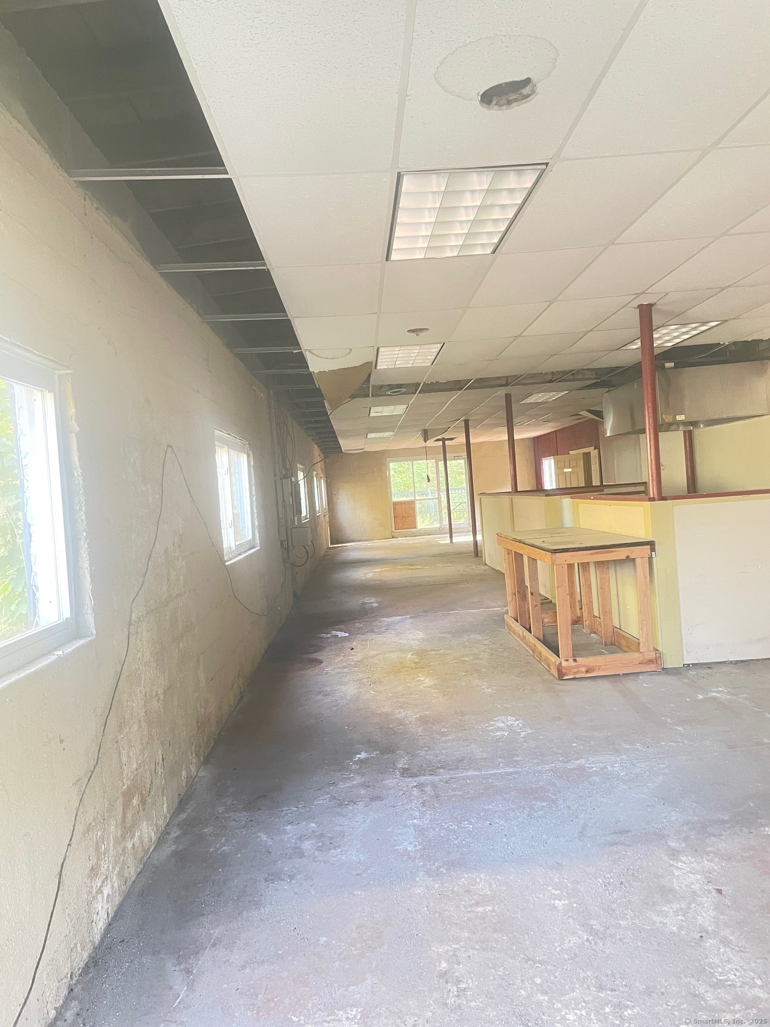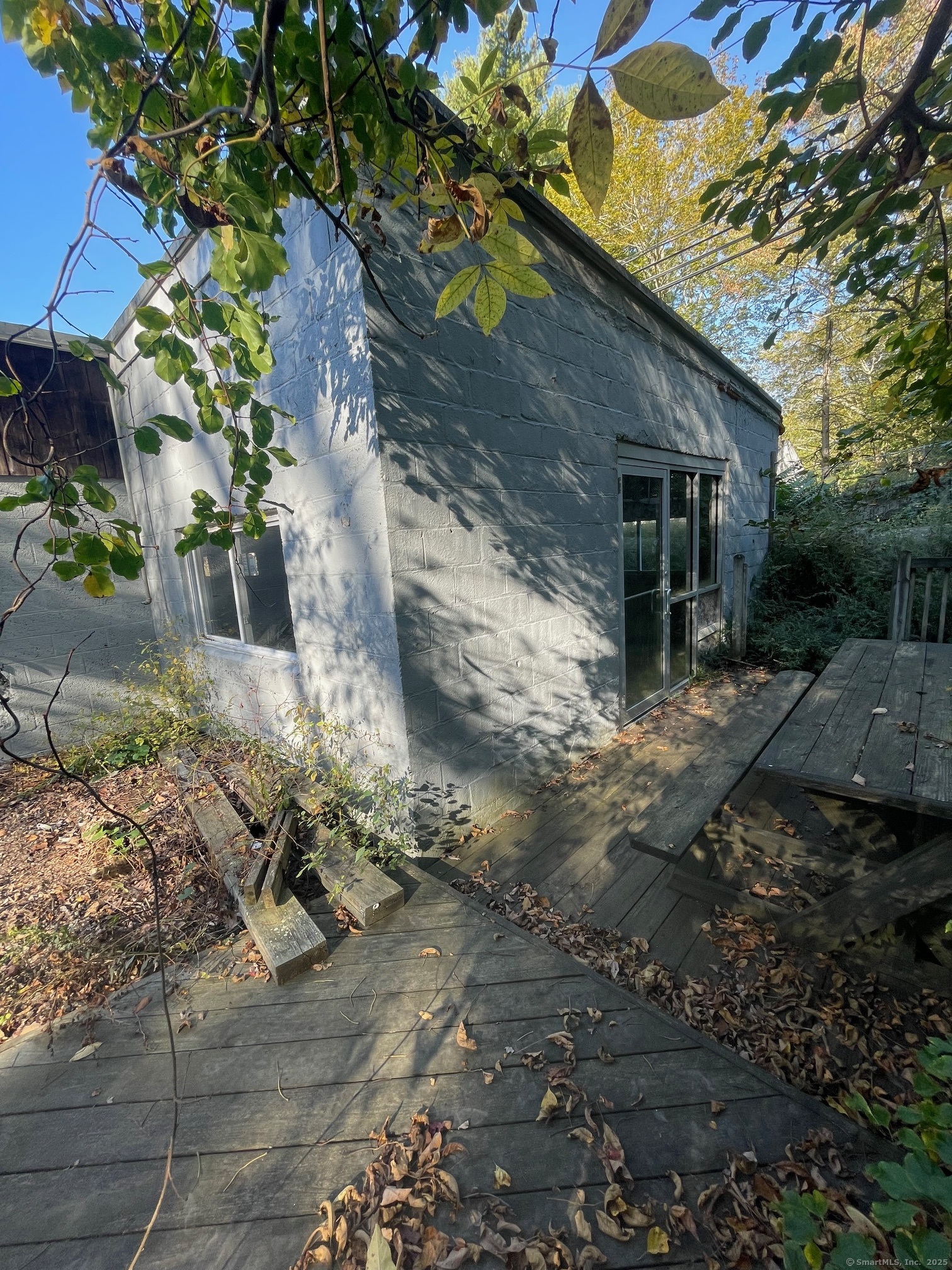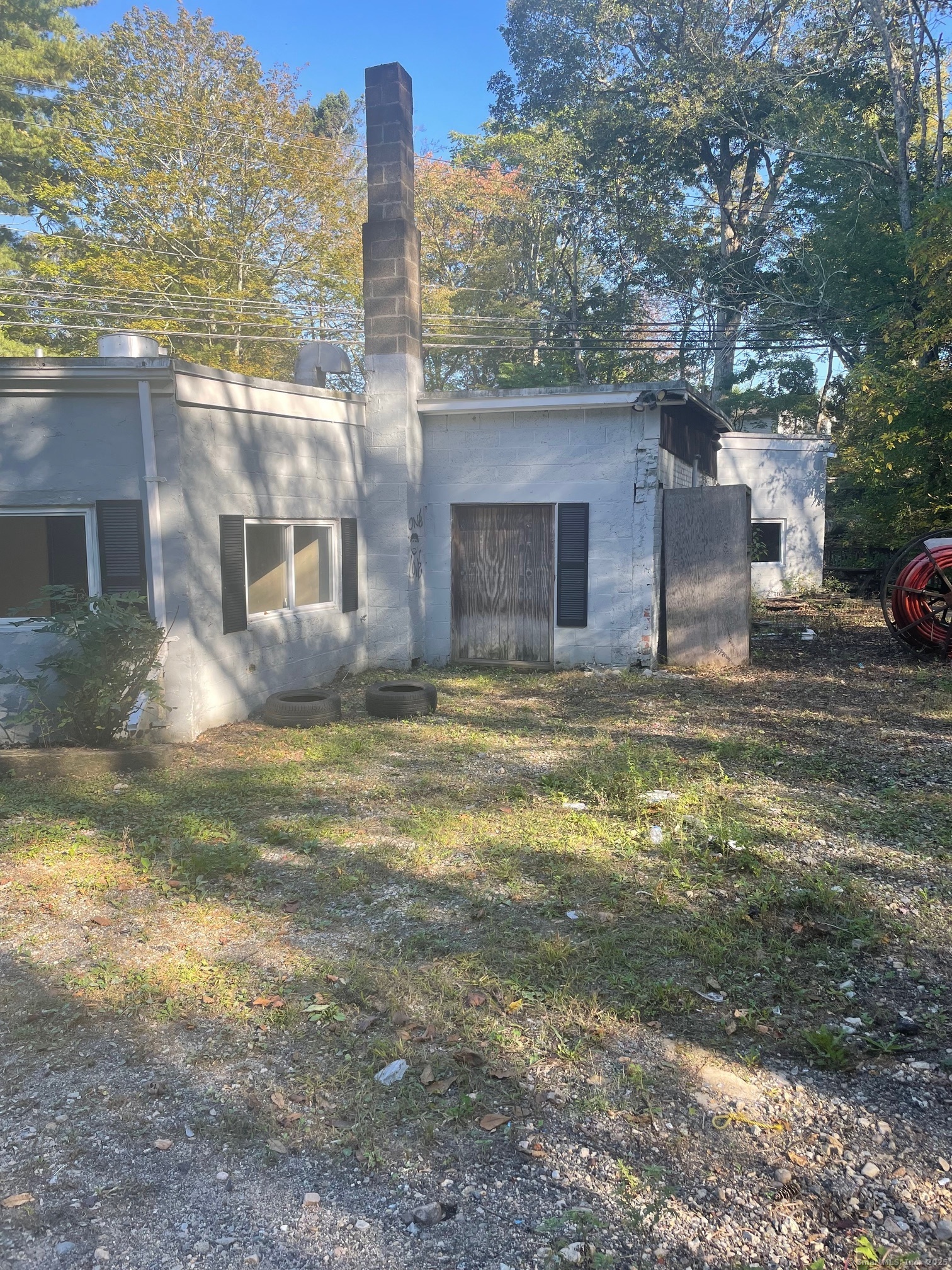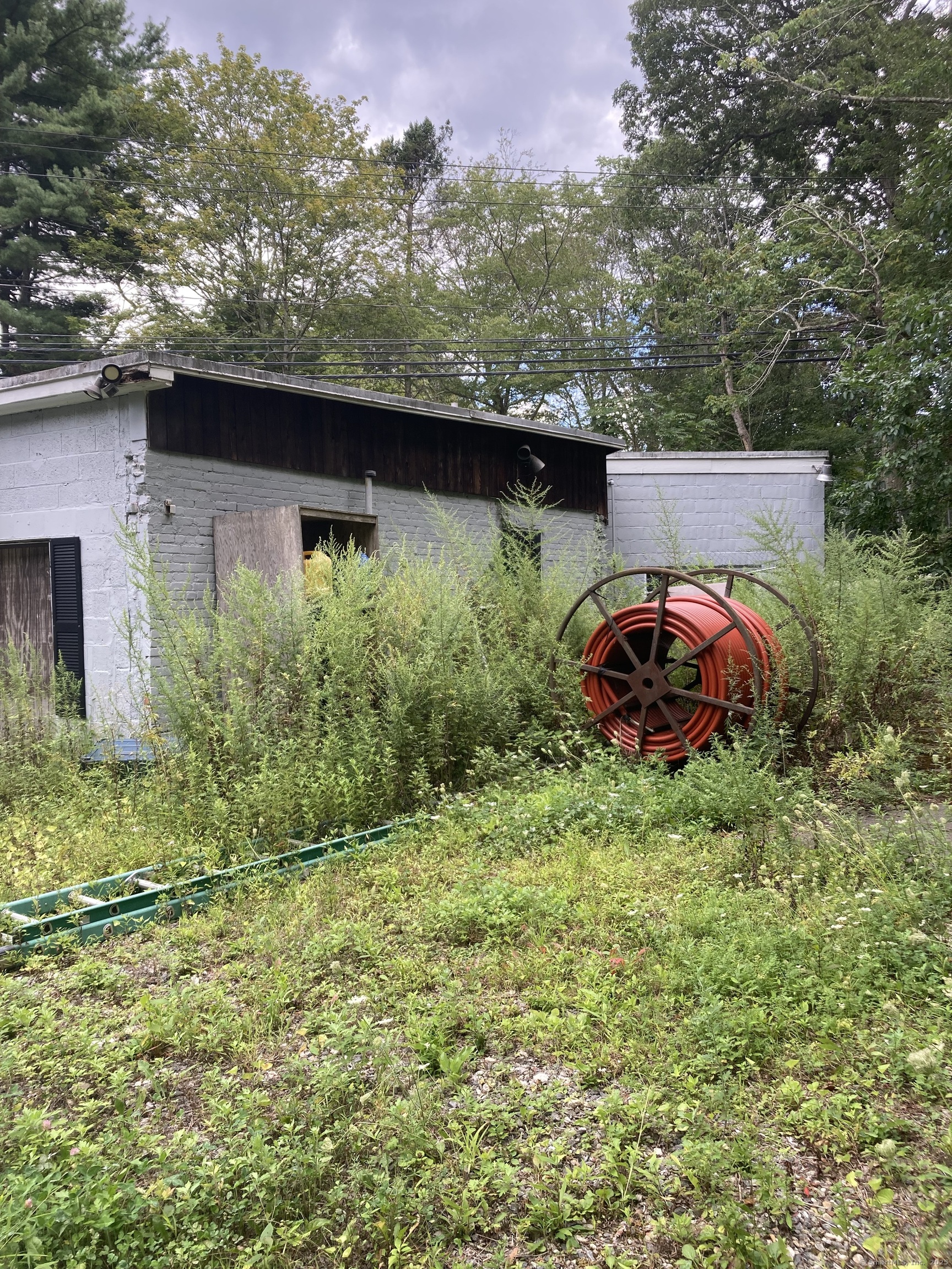 Commercial building consisting of 2,853 SF with wooden deck along a stream. Last use was a restaurant in half and plumber in the other half. Approvals to add additional building with apartment above.