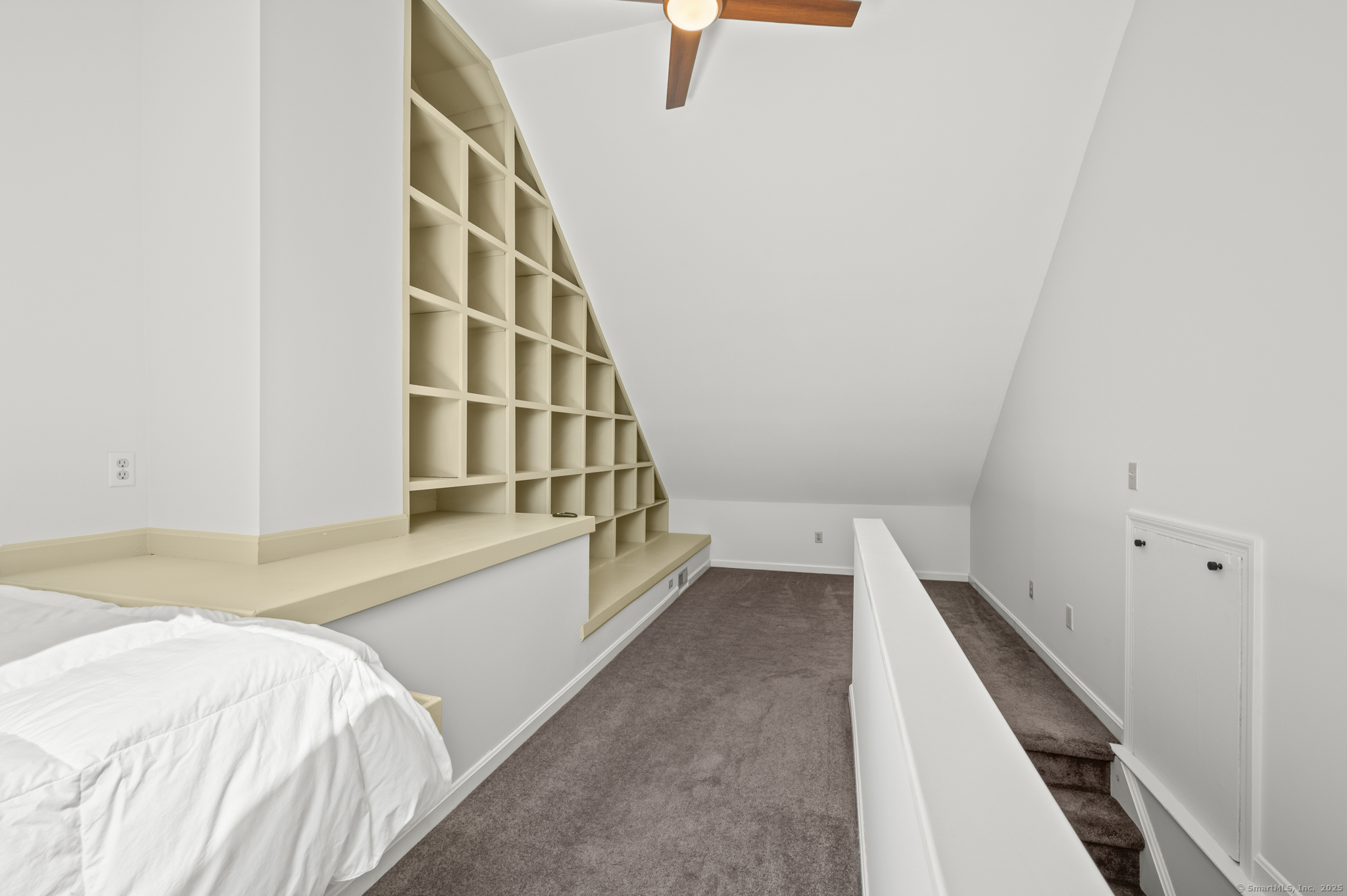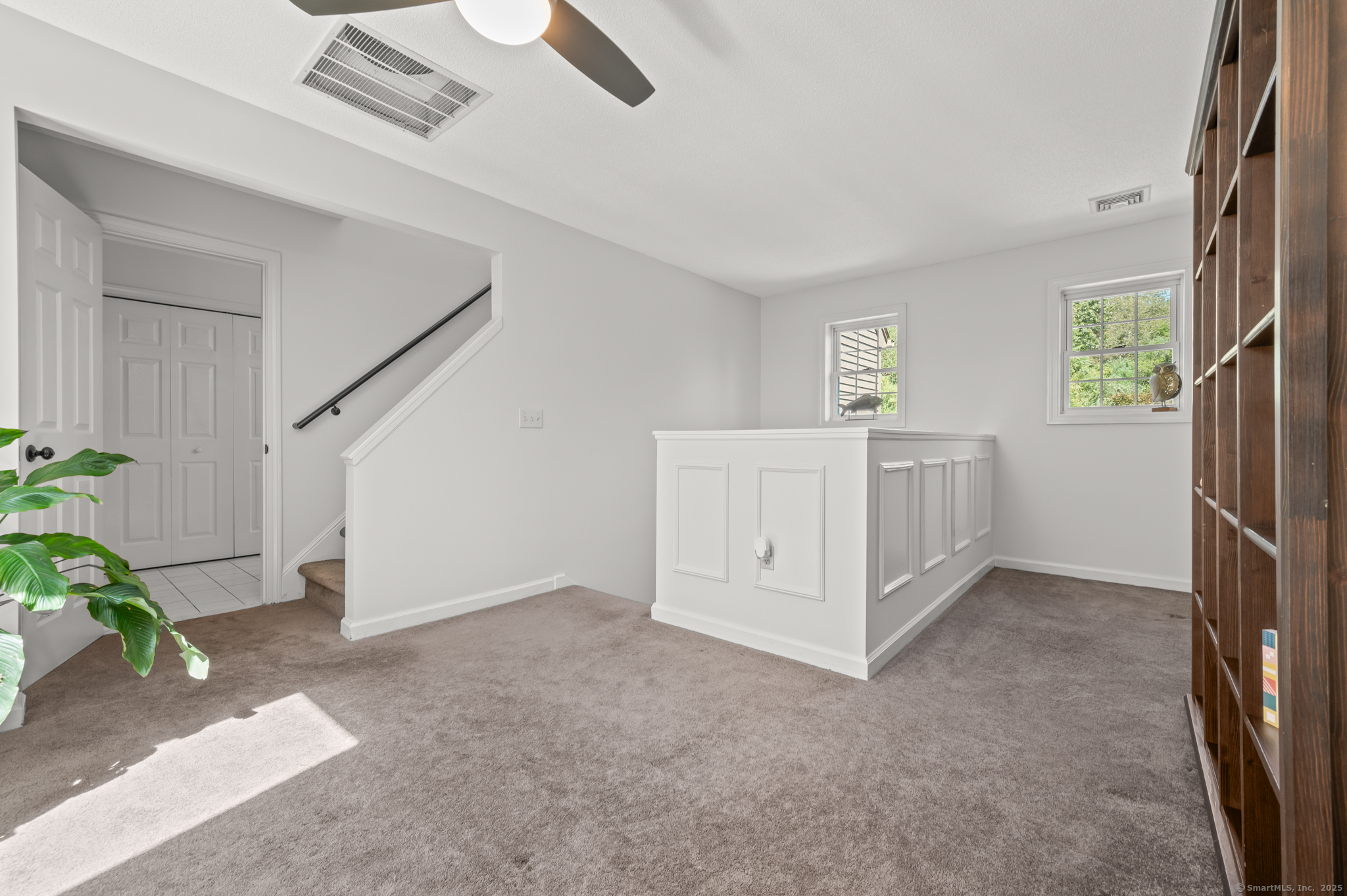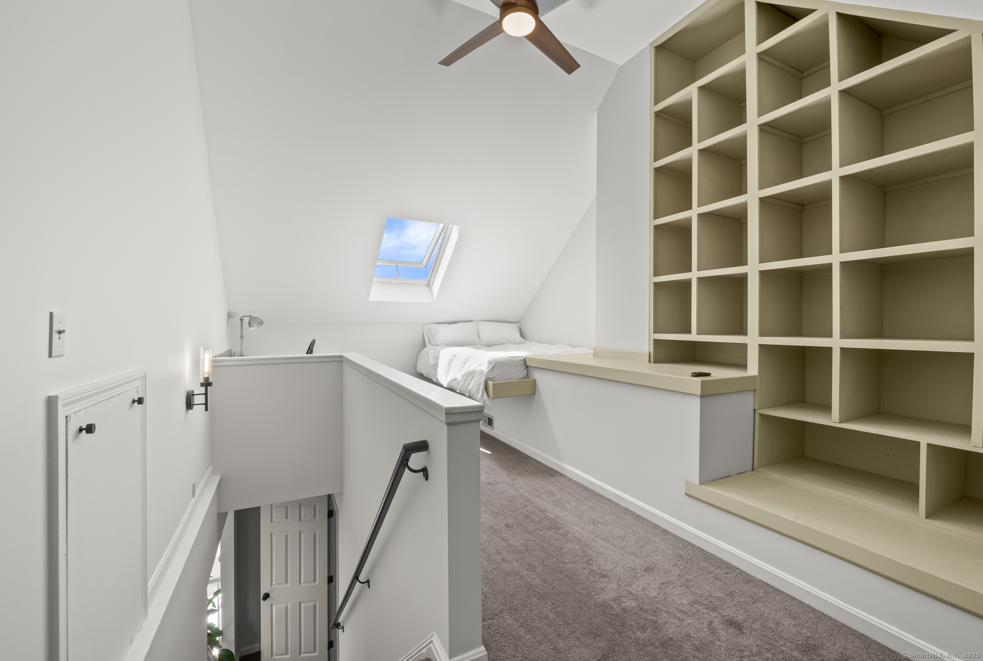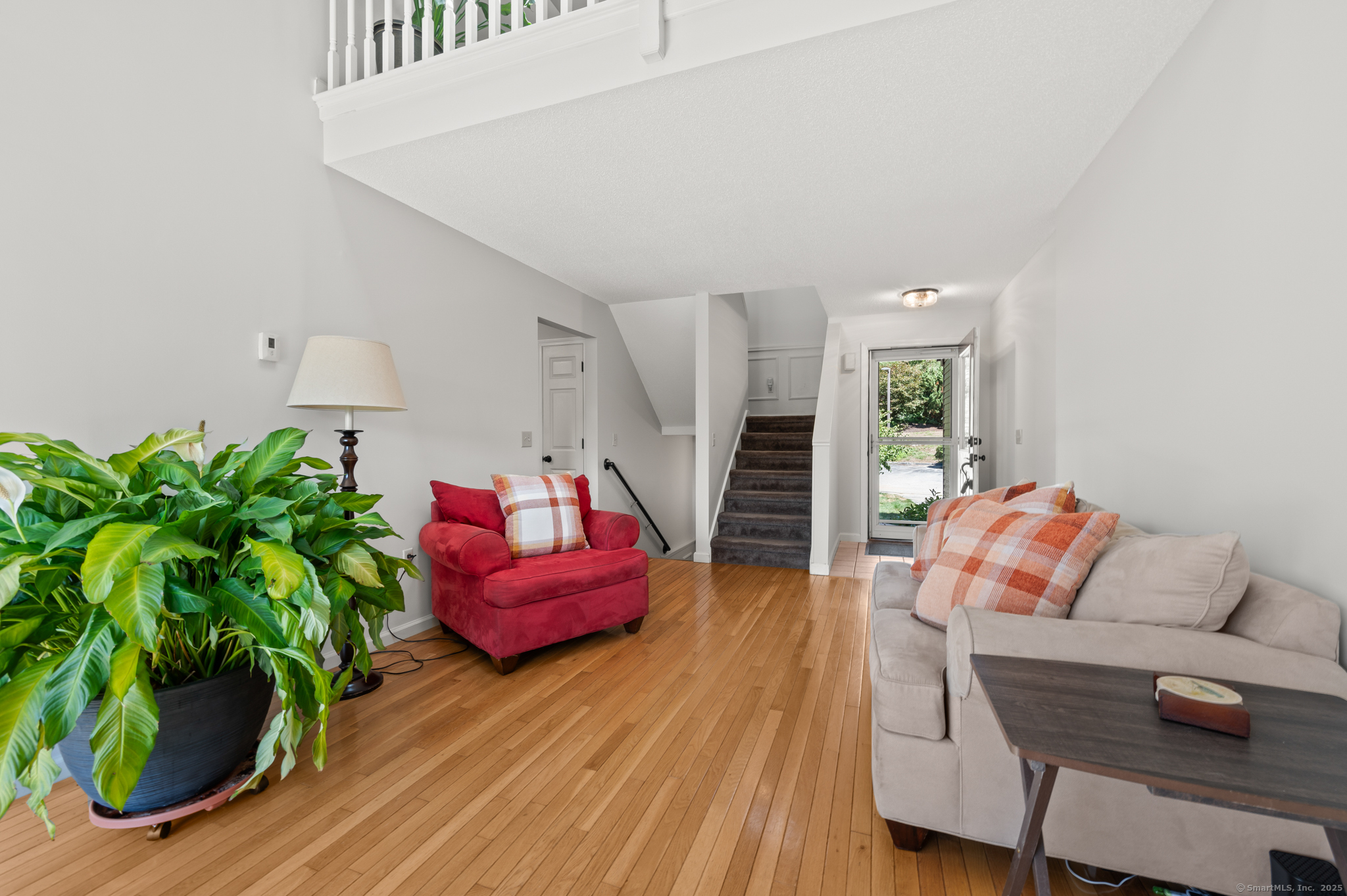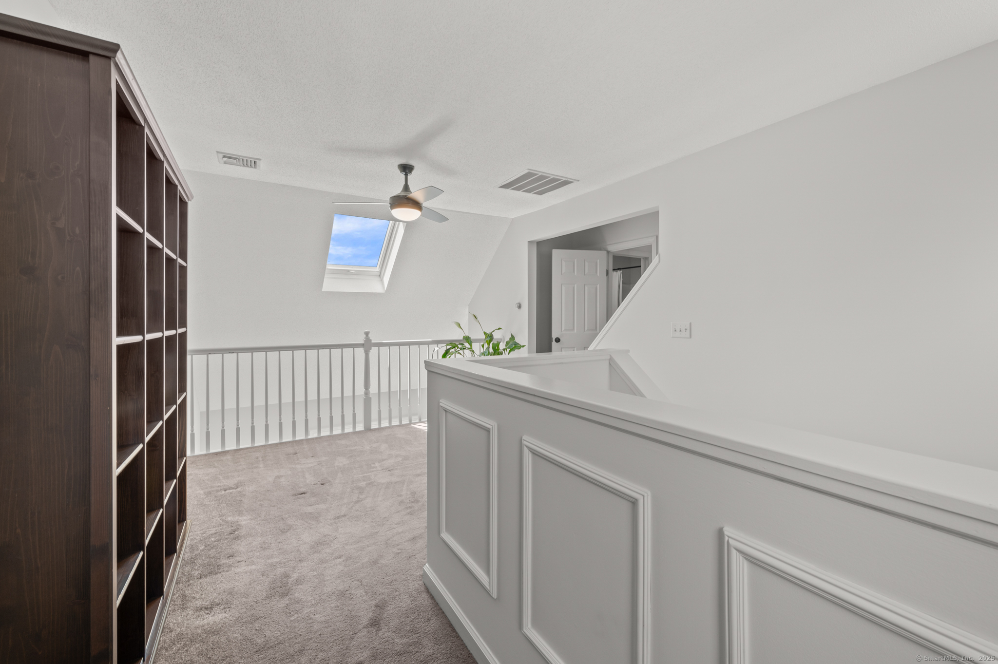 Fantastic Townhouse in a Sought-After Community! This bright and inviting townhouse features fresh interior paint and a kitchen with granite countertops and stainless-steel appliances. The open-concept living room showcases vaulted ceilings, skylights, hardwood floors, and a cozy fireplace. Step outside to a private deck that backs to the woods-perfect for relaxing or entertaining. The walkout finished lower level provides flexible space for a family room, exercise area, or home office. With 2 full bathrooms, a half bath, central air, and an attached garage, this home offers both comfort and convenience. A loft area and finished walk-up attic add even more versatile living space. Fantastic location close to UConn, shopping, and dining!