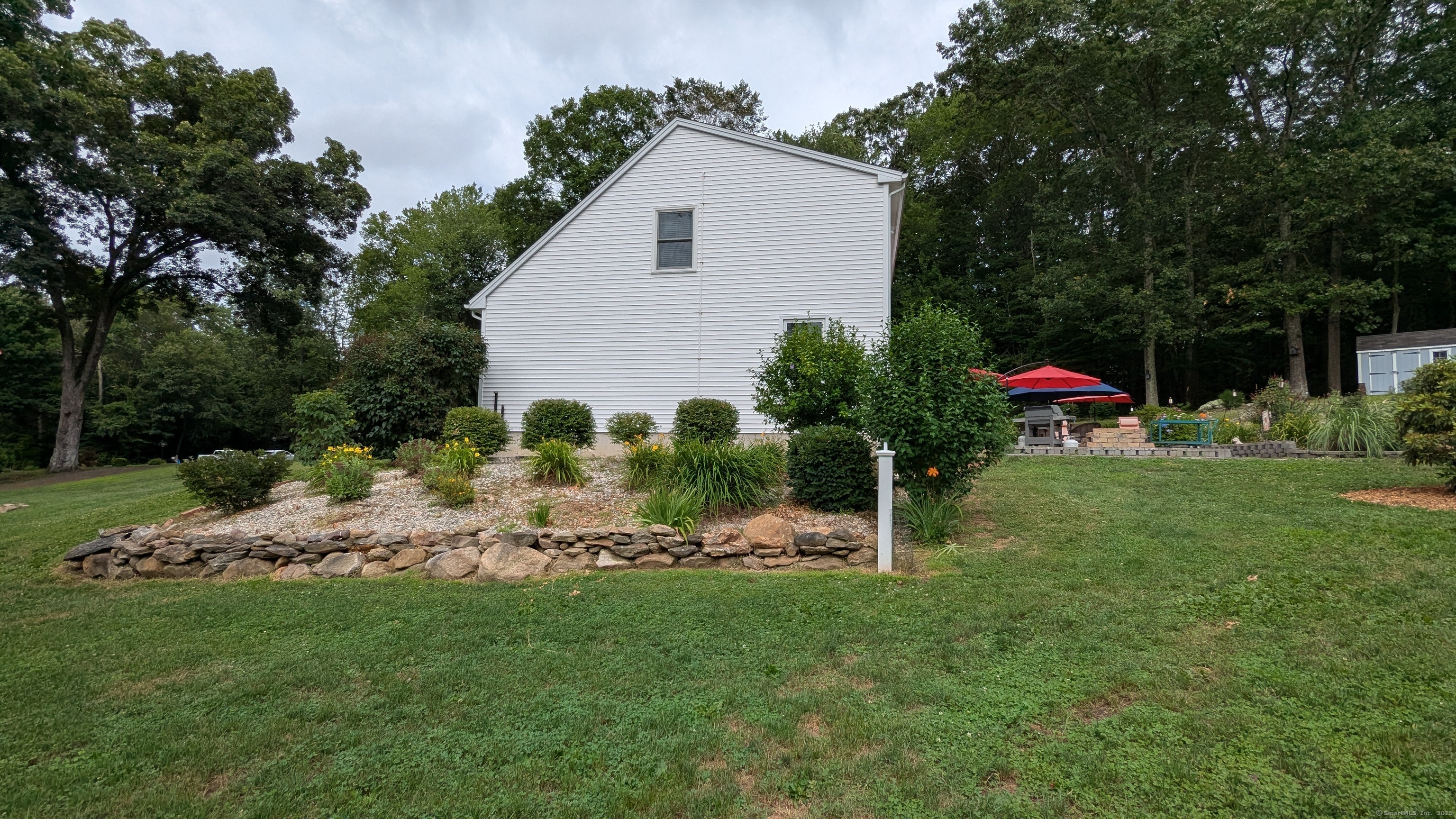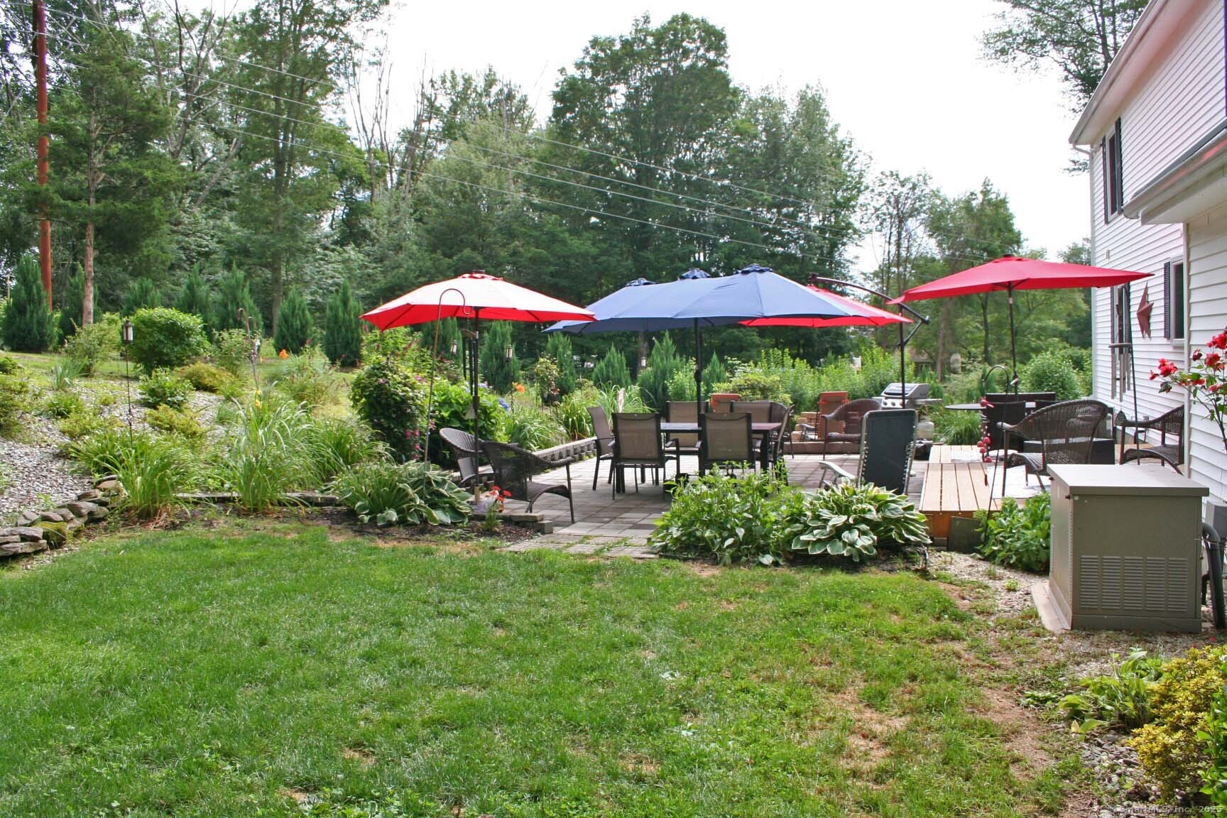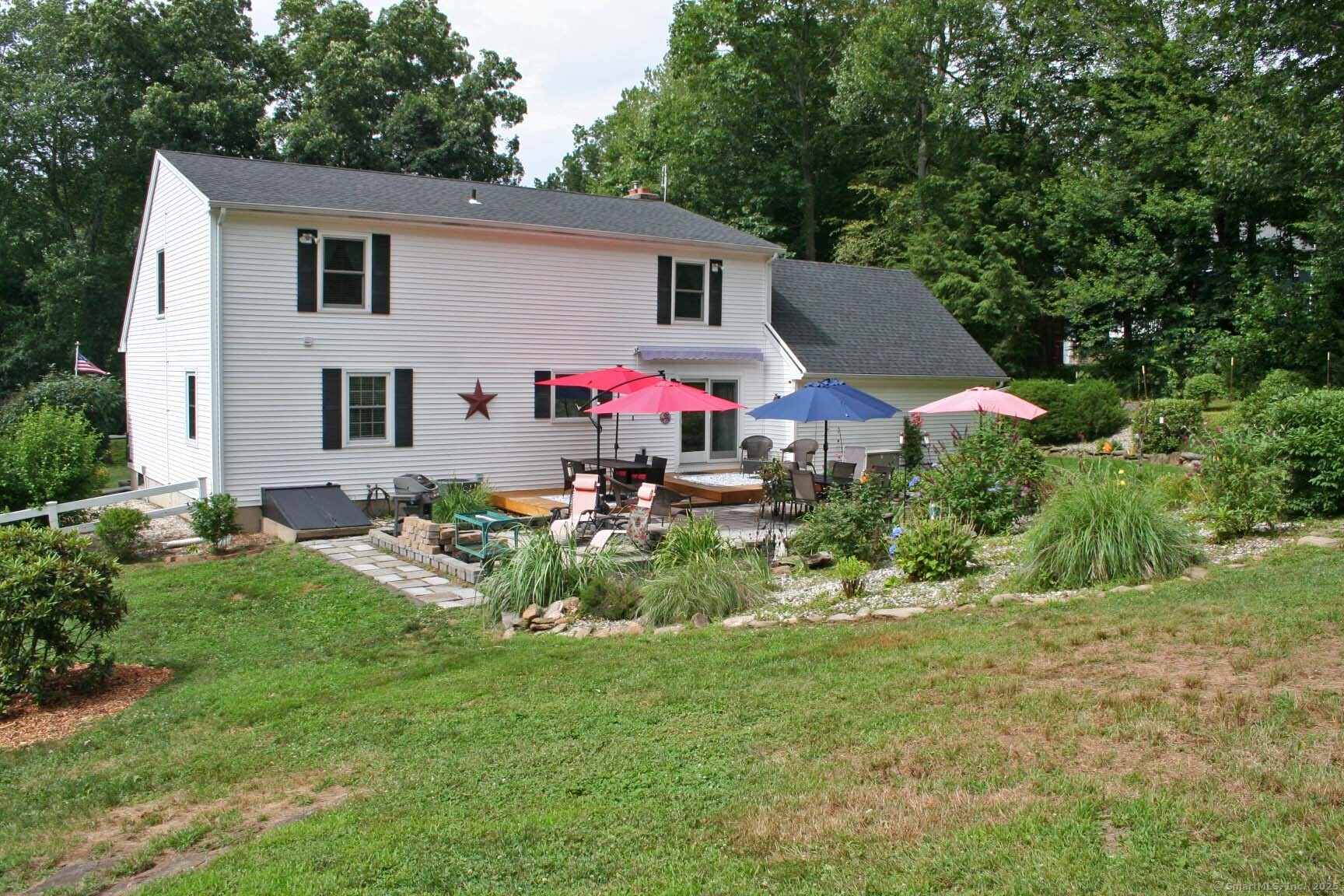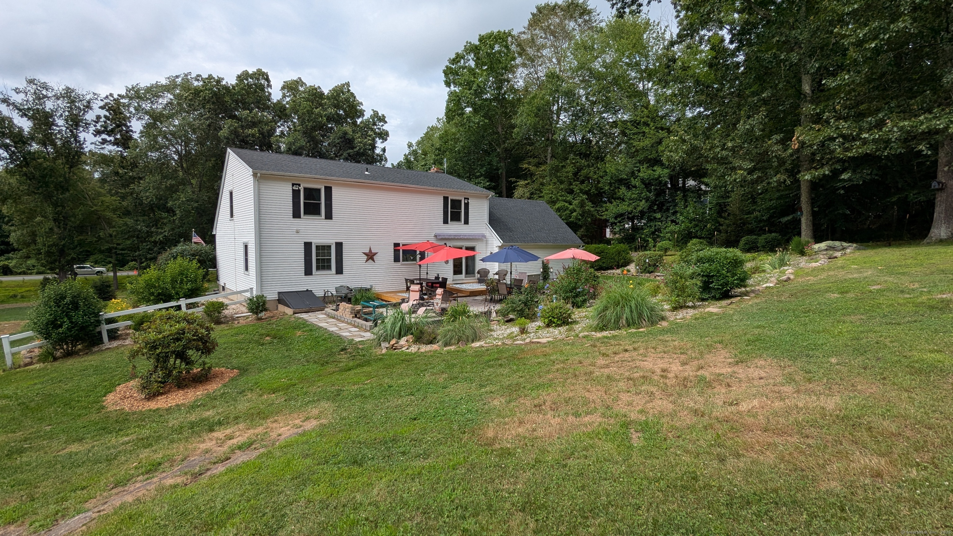 Lovely Cape Cod style home set in a country subdivision only a short drive from East Hampton village, the town Library, and ball fields. While the neighborhood is centrally located with easy access to Lake Pocotopaug, town tennis & pickleball courts, and the town beach, it's also peaceful and serene. The home is set back from the road on a beautifully landscaped 1.72 acre lot with an expansive patio space for entertaining. In addition to the 2-car attached garage, there is a 24x20 detached garage/barn. Indoors, a large family room has a fireplace and built in bookshelves. The adjacent dining room has a slider to the rear deck and a breakfast bar separates it from the kitchen. Excellent cabinet and counter space and perfect for entertaining! Also on this level is a bedroom with a walk-in closet, plus a room that can serve as a formal living room, home office, study - whatever you need it to be. The laundry is on this level and there is a full bathroom with a tub. Upstairs you will find two huge front to back bedrooms. The primary bedroom has both a walk-in closet and a regular closet, plus eaves storage. Both rooms have wood floors and paddle fans. The Full unfinished basement could easily be finished for extra living or recreational space. The home has central air, central vacuum and a standby generator. Updates include roof & water heater 2018, a/c & generator 2017, furnace 2015. Come visit today!