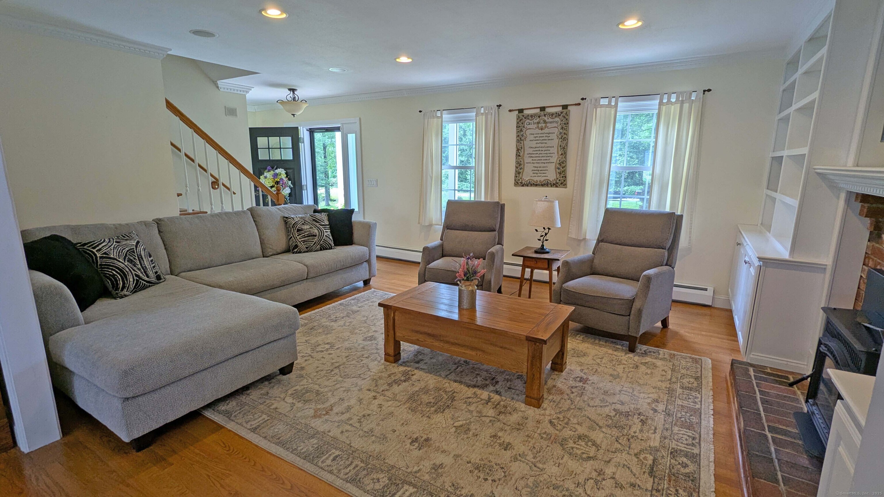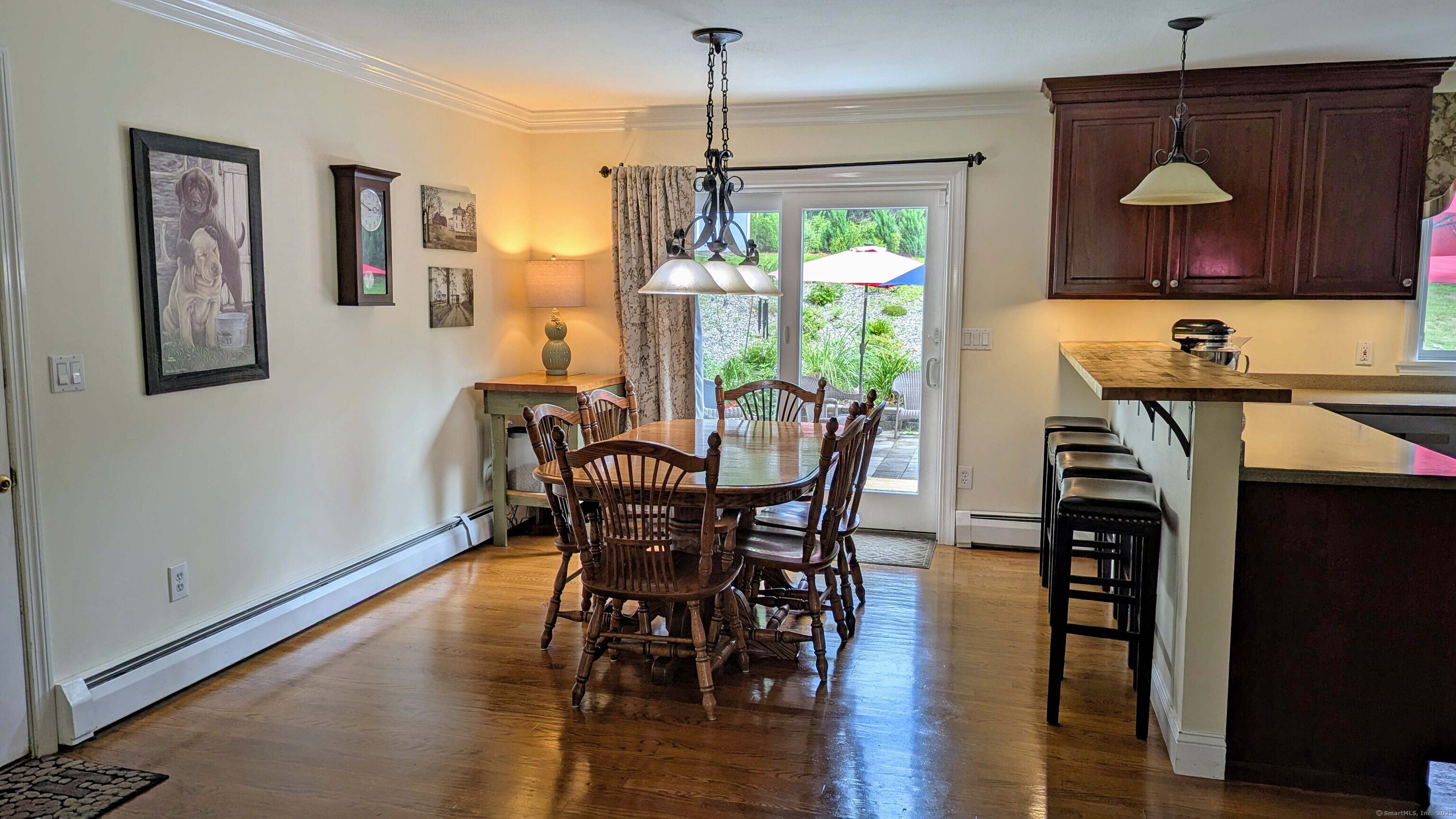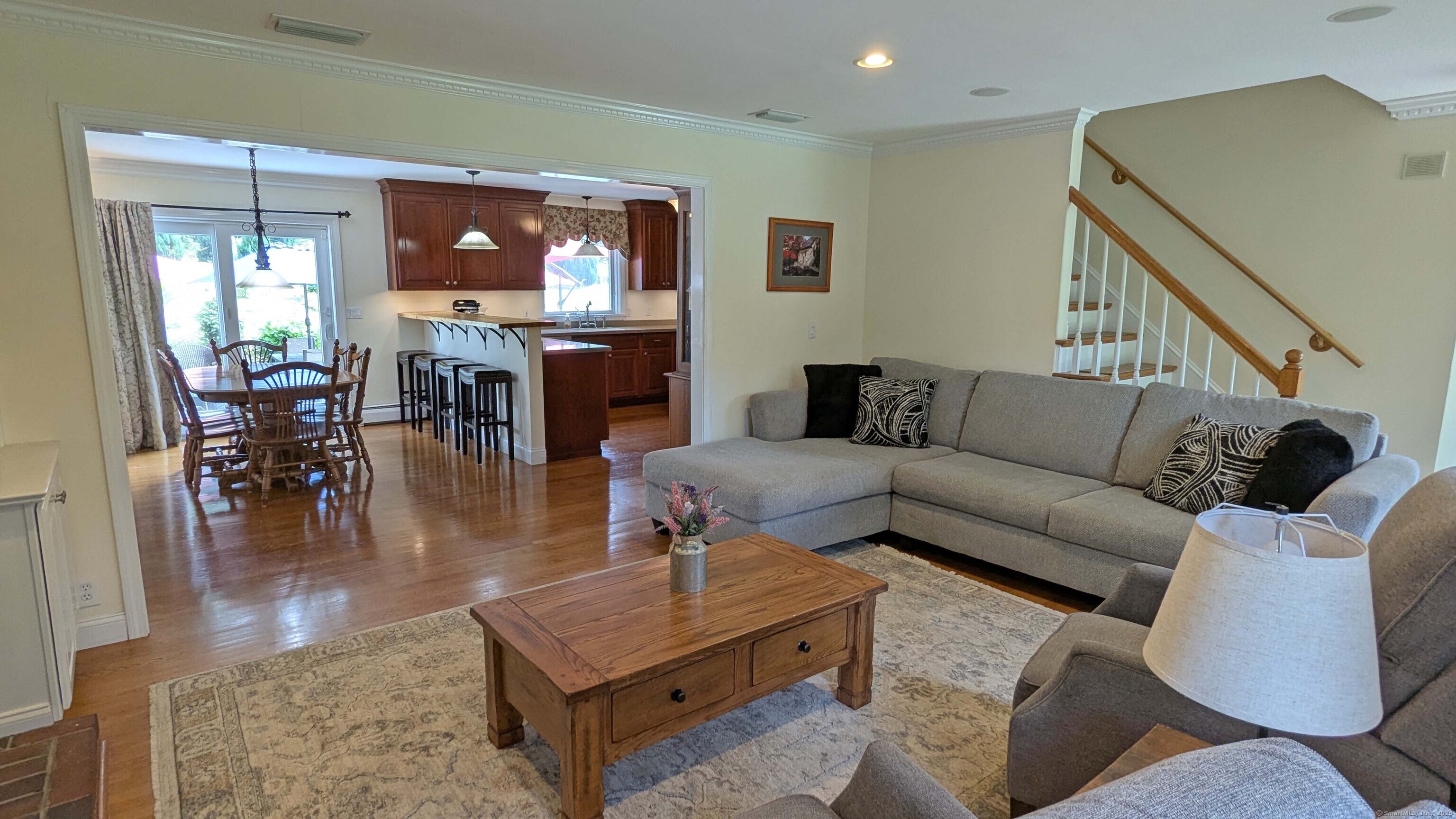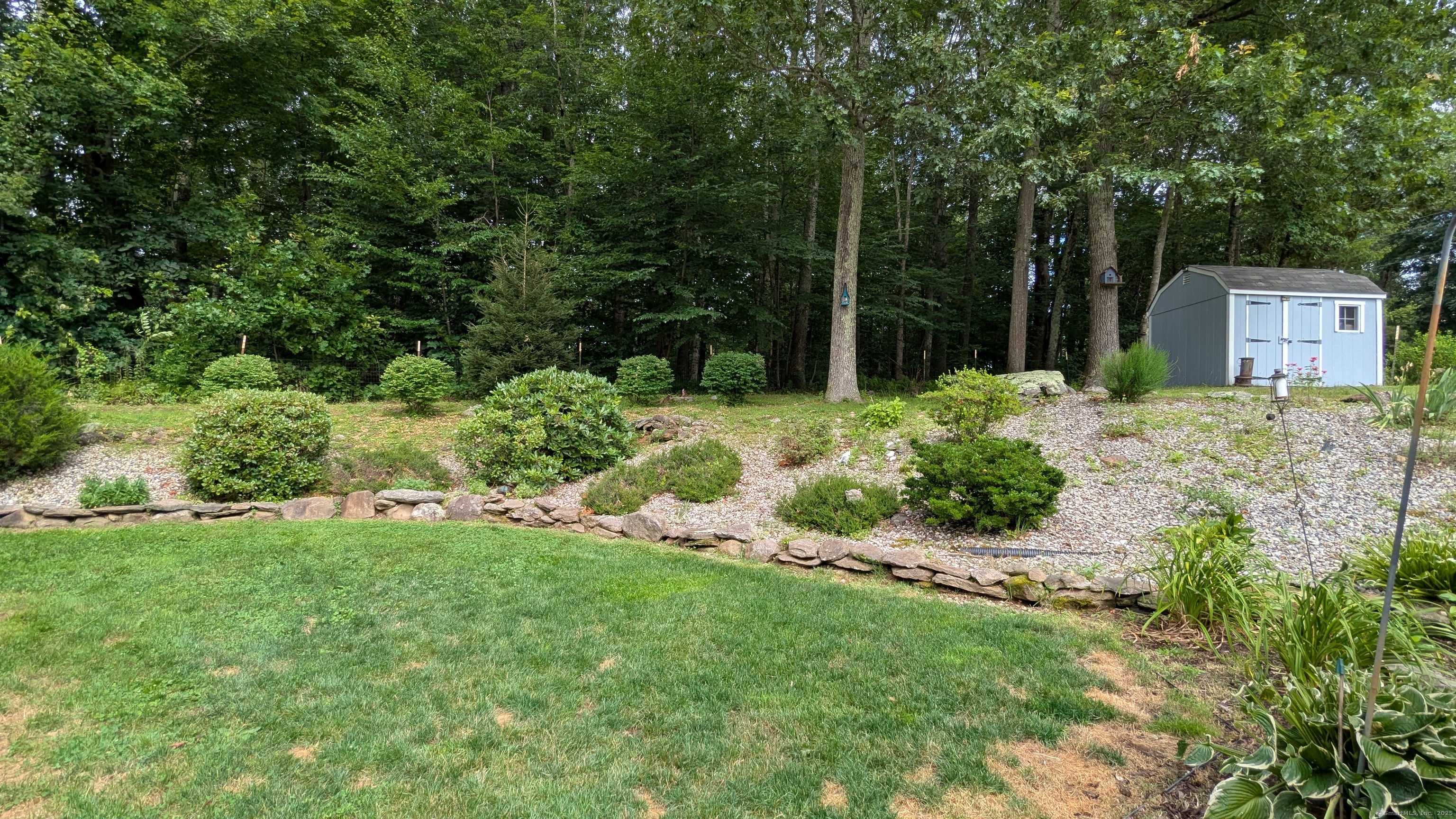 Lovely Cape Cod style home set in a country subdivision only a short drive from East Hampton village, the town Library, and ball fields. While the neighborhood is centrally located with easy access to Lake Pocotopaug, town tennis & pickleball courts, and the town beach, it's also peaceful and serene. The home is set back from the road on a beautifully landscaped 1.72 acre lot with an expansive patio space for entertaining. In addition to the 2-car attached garage, there is a 24x20 detached garage/barn. Indoors, a large family room has a fireplace and built in bookshelves. The adjacent dining room has a slider to the rear deck and a breakfast bar separates it from the kitchen. Excellent cabinet and counter space and perfect for entertaining! Also on this level is a bedroom with a walk-in closet, plus a room that can serve as a formal living room, home office, study - whatever you need it to be. The laundry is on this level and there is a full bathroom with a tub. Upstairs you will find two huge front to back bedrooms. The primary bedroom has both a walk-in closet and a regular closet, plus eaves storage. Both rooms have wood floors and paddle fans. The Full unfinished basement could easily be finished for extra living or recreational space. The home has central air, central vacuum and a standby generator. Updates include roof & water heater 2018, a/c & generator 2017, furnace 2015. Come visit today!