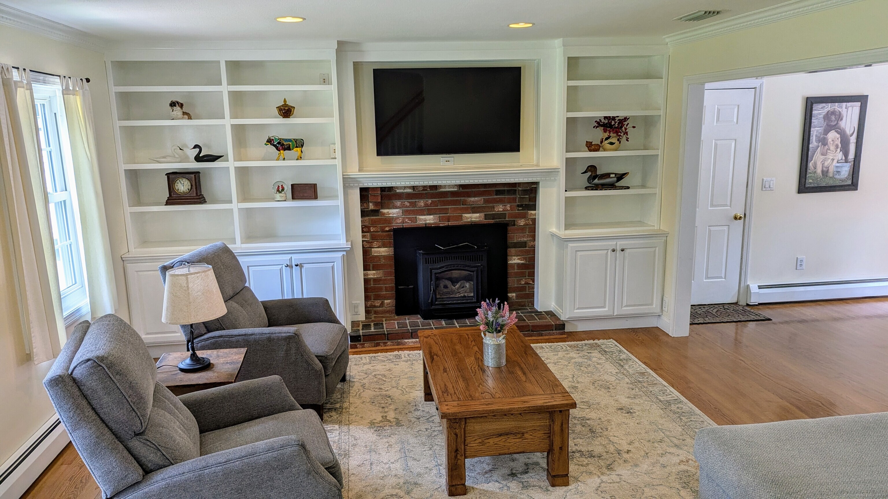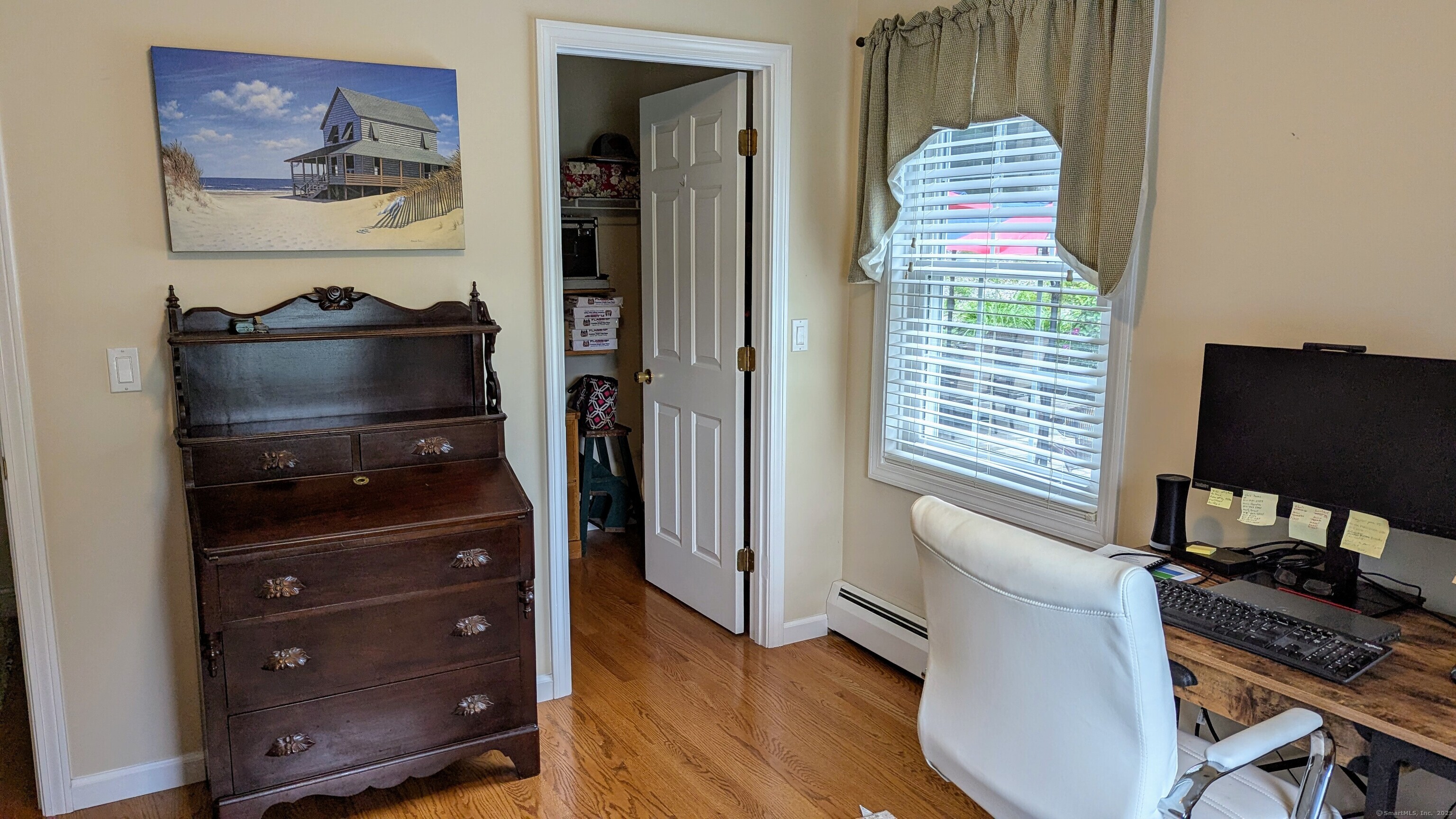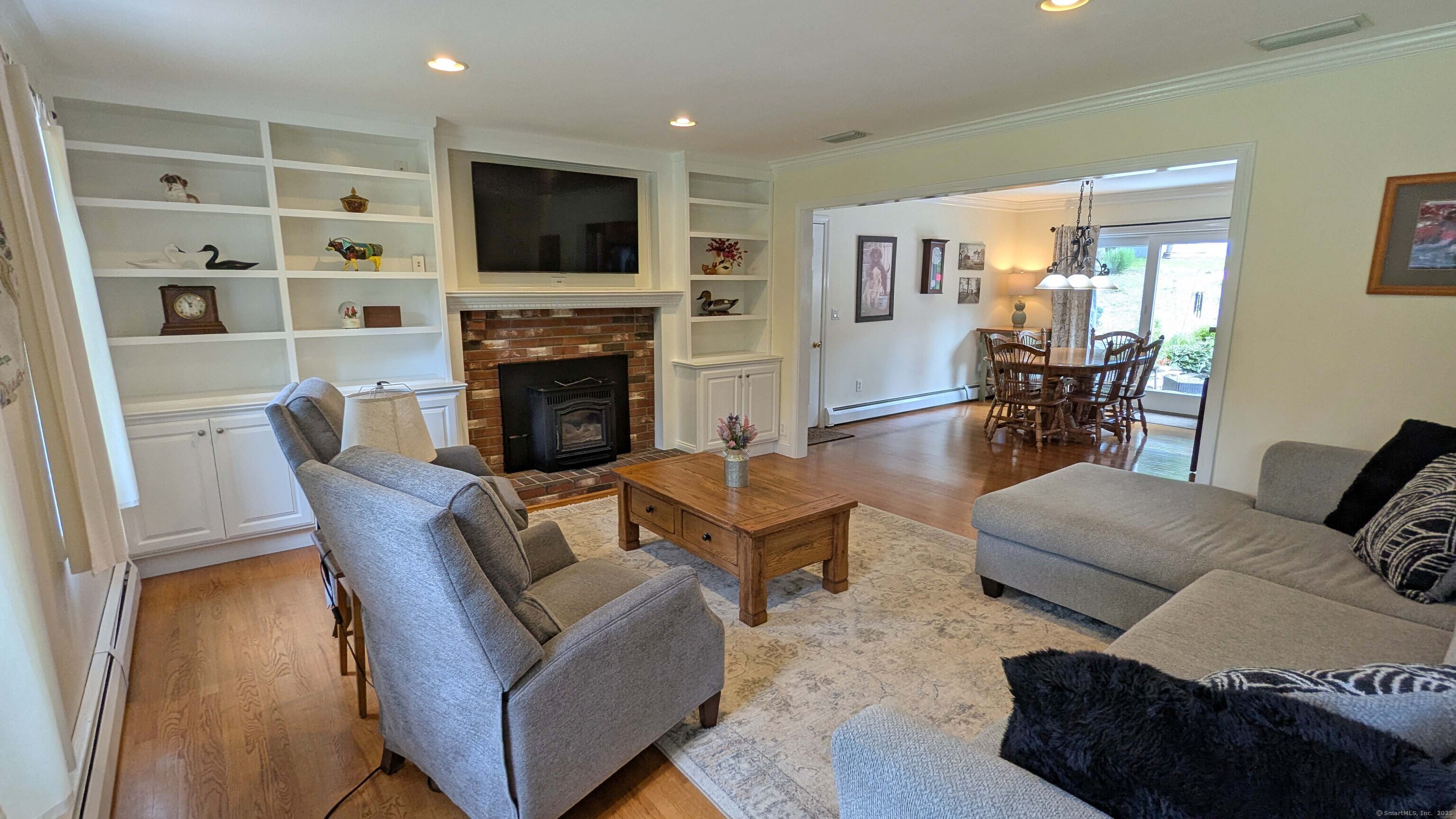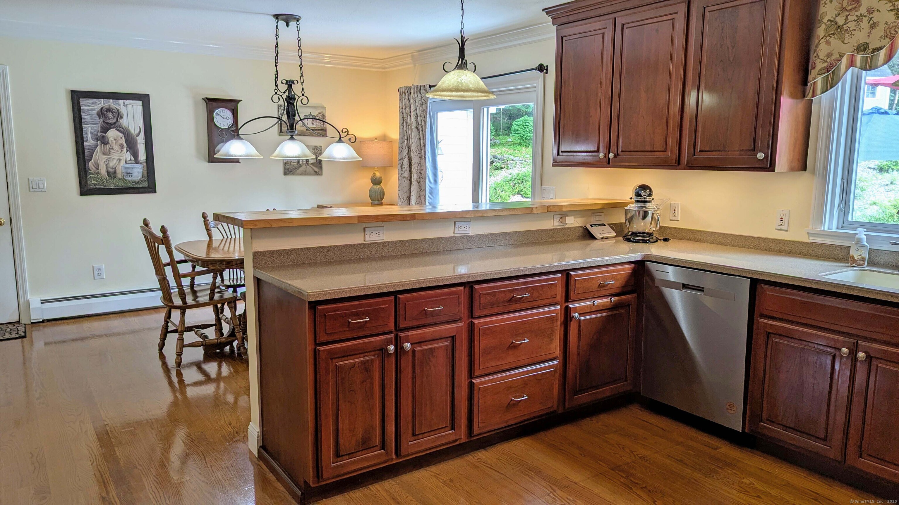 Lovely Cape Cod style home set in a country subdivision only a short drive from East Hampton village, the town Library, and ball fields. While the neighborhood is centrally located with easy access to Lake Pocotopaug, town tennis & pickleball courts, and the town beach, it's also peaceful and serene. The home is set back from the road on a beautifully landscaped 1.72 acre lot with an expansive patio space for entertaining. In addition to the 2-car attached garage, there is a 24x20 detached garage/barn. Indoors, a large family room has a fireplace and built in bookshelves. The adjacent dining room has a slider to the rear deck and a breakfast bar separates it from the kitchen. Excellent cabinet and counter space and perfect for entertaining! Also on this level is a bedroom with a walk-in closet, plus a room that can serve as a formal living room, home office, study - whatever you need it to be. The laundry is on this level and there is a full bathroom with a tub. Upstairs you will find two huge front to back bedrooms. The primary bedroom has both a walk-in closet and a regular closet, plus eaves storage. Both rooms have wood floors and paddle fans. The Full unfinished basement could easily be finished for extra living or recreational space. The home has central air, central vacuum and a standby generator. Updates include roof & water heater 2018, a/c & generator 2017, furnace 2015. Come visit today!