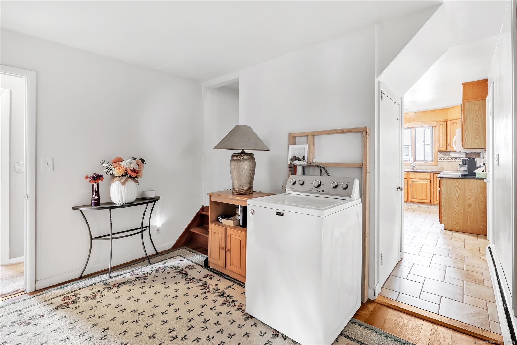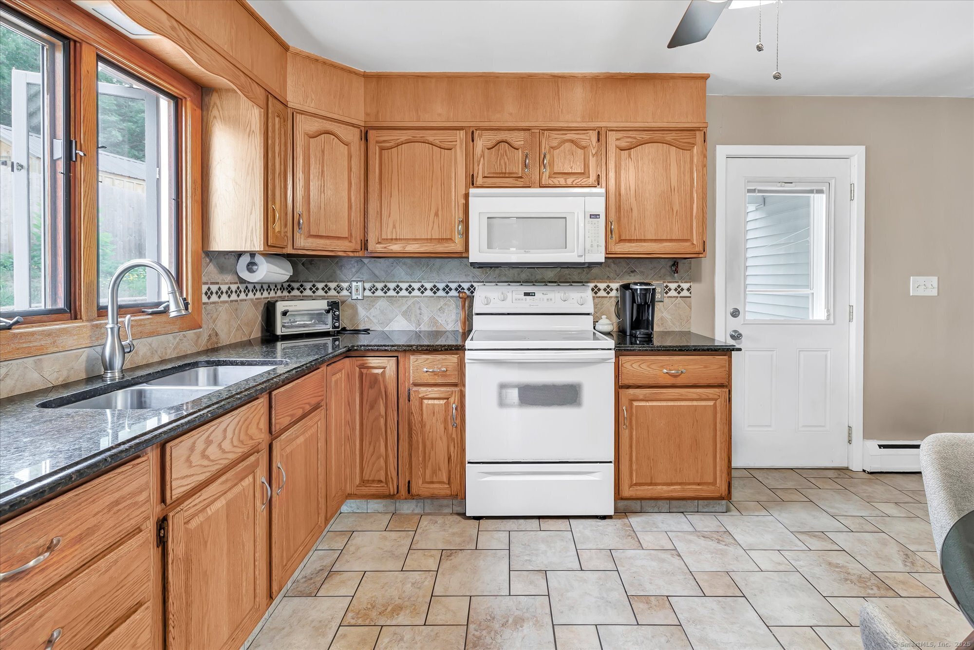 This lovingly cared-for home has been in the same family for over 50 years. What began as a charming 3-bedroom, 1-bath ranch has been thoughtfully expanded into a spacious 5-bedroom, 2-bath home-perfect for a growing family! The welcoming front entrance opens to a sun-filled living room that flows seamlessly into the remodeled eat-in kitchen, featuring custom oak cabinets, granite countertops, and a fully applianced. Just off the kitchen, you'll find a dining room and a hallway leading to four bedrooms and a full bath on the first floor. Upstairs, a large primary bedroom addition includes its own full bath, creating a private retreat. The partially finished basement offers even more living space, complemented by efficient gas heating and on-demand hot water. Location is everything-this custom ranch is just steps from the elementary school across the street, with convenient access to shopping, restaurants, and beaches. Don't miss this rare opportunity-homes like this don't come along often!