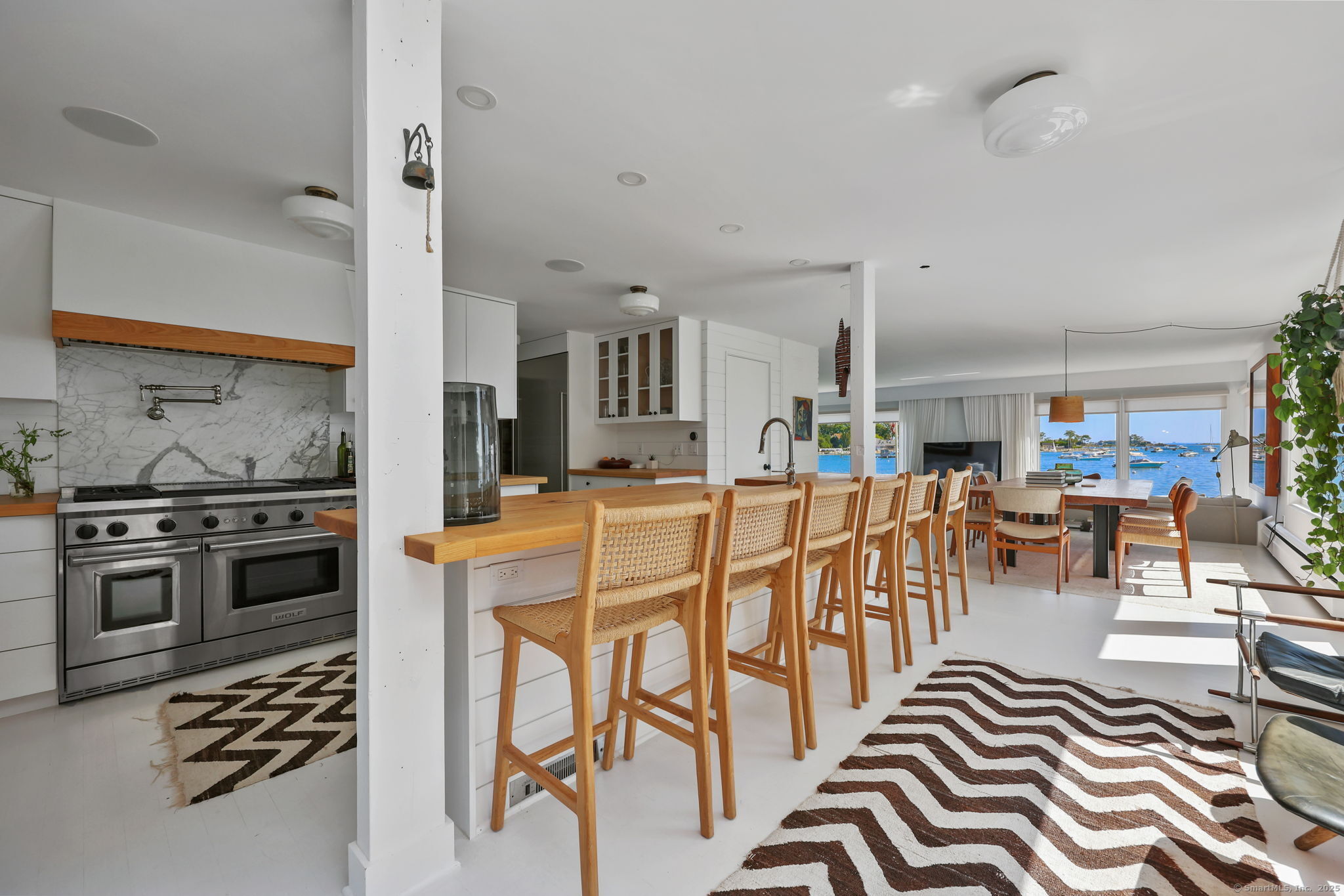 Discover a coastal haven at 31 Bluff Ave in Rowayton, CT. This expansive 3,453 sf home seamlessly blends luxury with serene waterfront living, offering an unparalleled retreat adorned with panoramic views. Featuring 4 spacious bedrooms and 3.5 baths, the residence invites you into a realm of comfort with the primary suite boasting a new walk-in closet. At the heart of the home, an expansive living area showcases floor-to-ceiling windows that frame breathtaking water views, capturing the essence of indoor-outdoor living. Culinary enthusiasts will be drawn to the modern kitchen, thoughtfully designed with high-end Sub-Zero and Wolf appliances, complemented by ash wood countertops. Outside, your private sanctuary awaits, featuring an 80-foot beachfront that offers direct access to tranquil waters-ideal for swimming and kayaking. The property includes a convenient two-car garage, providing ample storage. Experience the luxury of a private beach transforming everyday life into a perpetual getaway. The lower-level gym includes a full bath and water views, enhancing the seamless living experience. Recent updates include a new metal roof, hurricane windows, and an outdoor kitchen. A massive landscaping project introduced 300 green giant trees and sea grass, meticulously placed to enhance the yard's natural beauty. This unique waterfront property presents an opportunity to reside in a home that serves as a tranquil retreat while still walking distance to town and beaches.