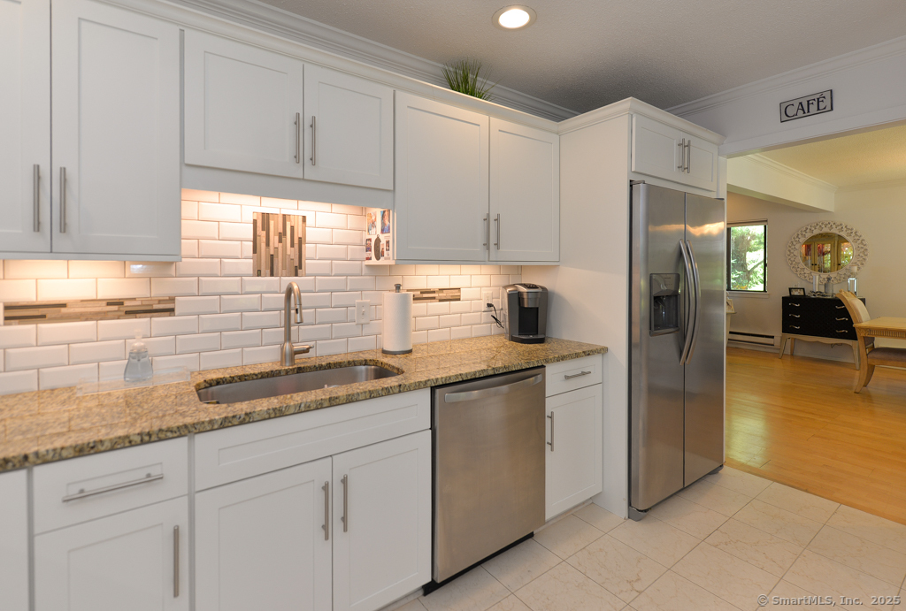 A beautiful renovated kitchen and perfect privacy off the deck await at this 2bed/2bath condo in all ages Heritage Crest! This end unit gets lots of natural light and is sited at the edge of the community with nothing buts woods off the deck. Just up the street are the community pool and tennis courts. Inside the eat-in kitchen offers white cabinets, granite counters and stainless-steel appliances. The living room is focused on a wood burning fireplace and includes sliders to the deck. The primary suite features a full bath and walk-in closet. The 2nd bedroom is just across the hall from another bath which has been remodeled with stylish tile and fixtures. Central air replaced in 2024 too.