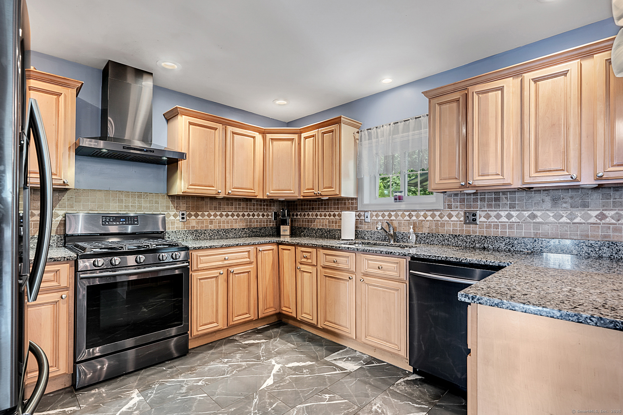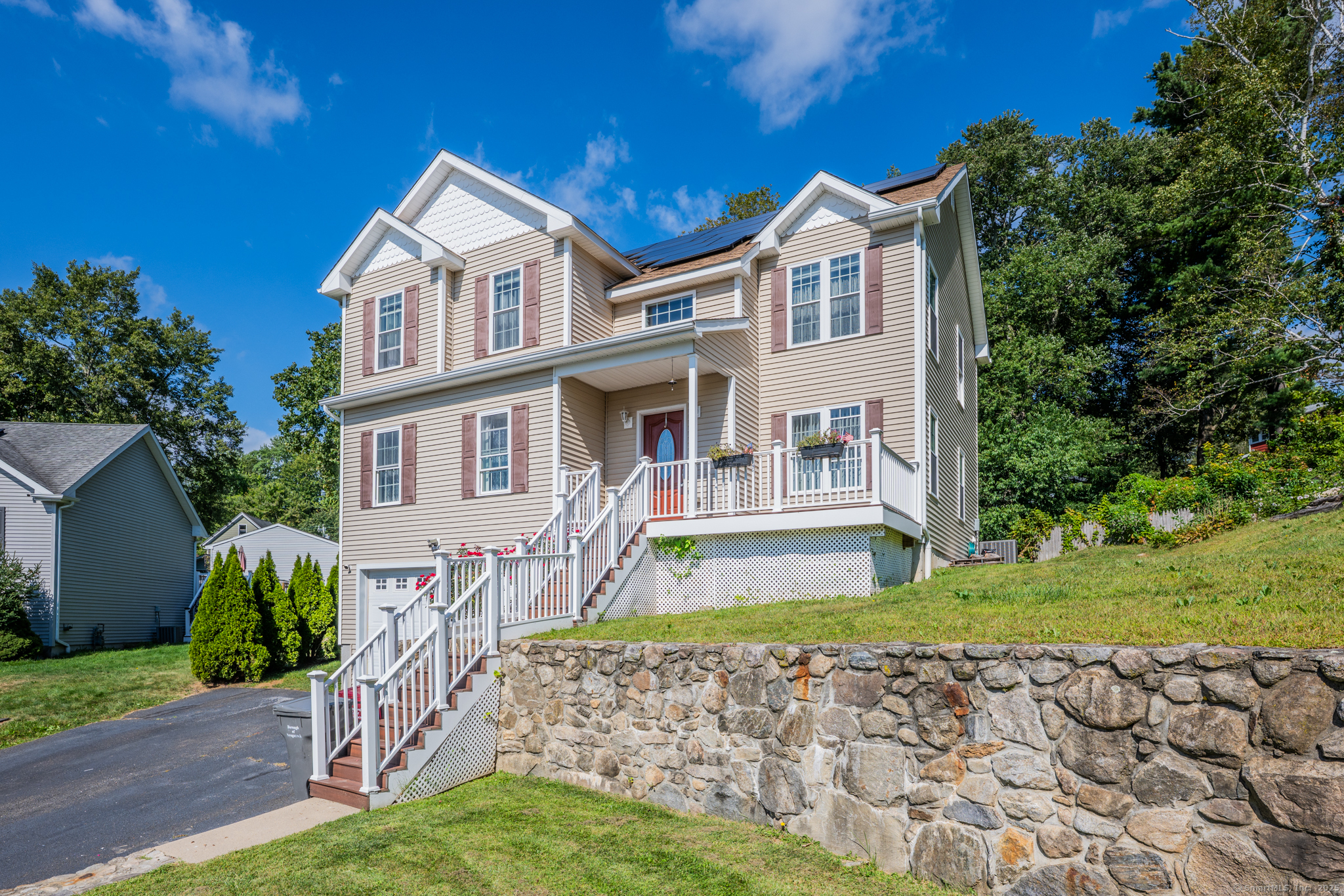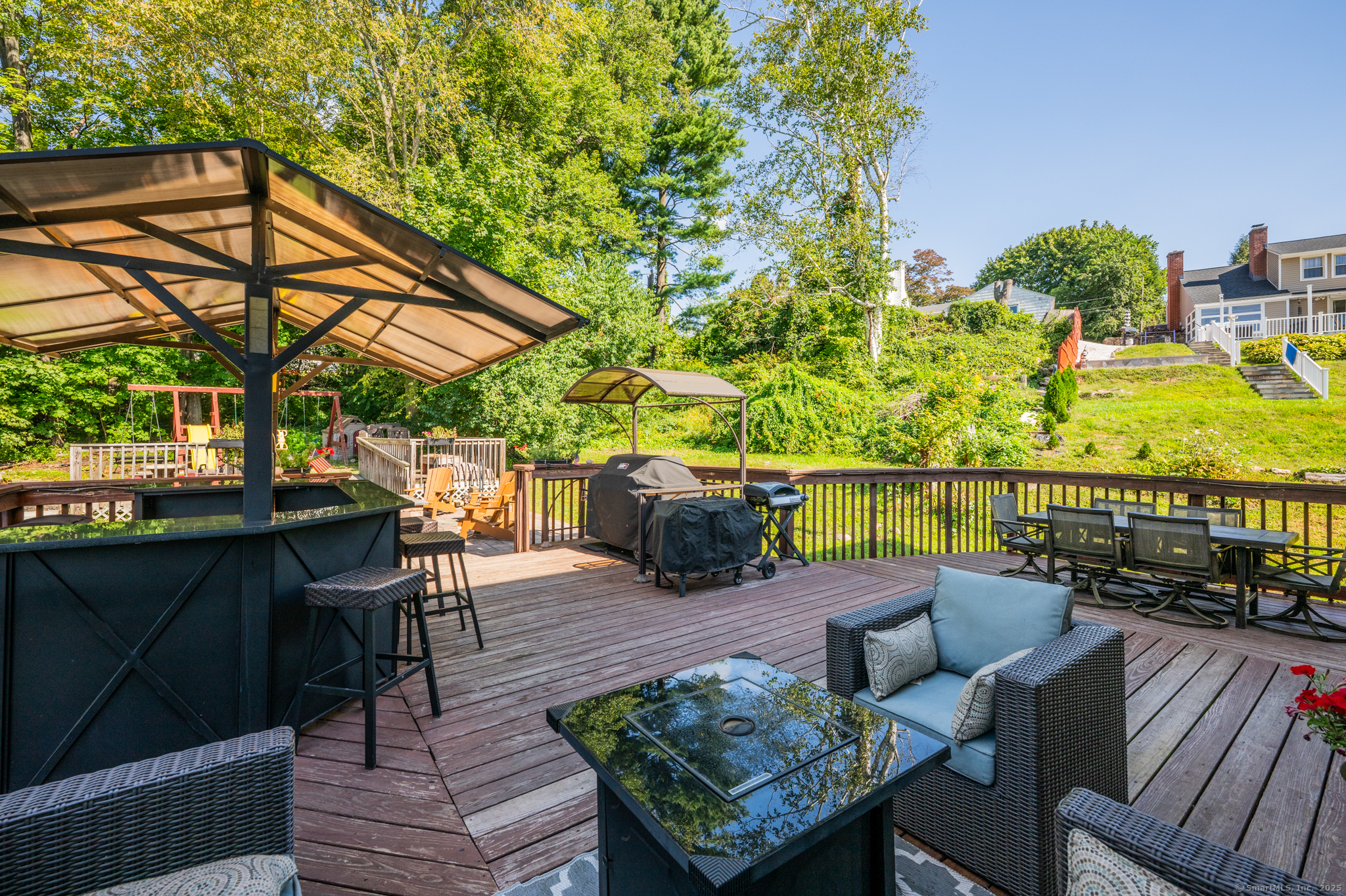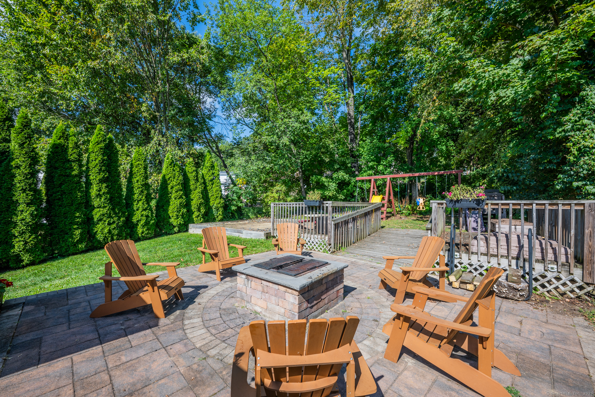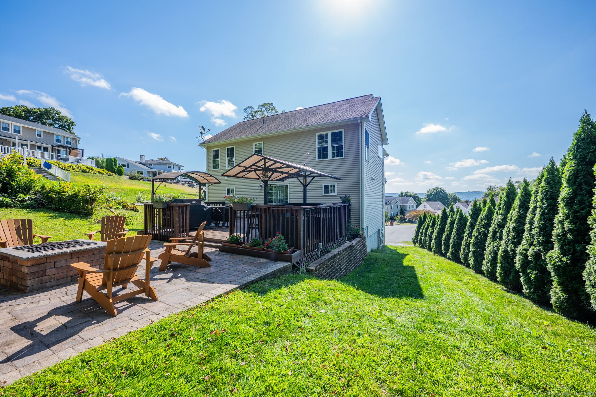 This beautifully maintained 4-bedroom, 2.5-bath Colonial, built in 2008, offers spacious and thoughtfully designed living areas ideal for today's lifestyle. The main level features an inviting eat-in kitchen with granite countertops, seating at the breakfast bar, and an adjacent daily dining area with sliders leading to the backyard. Step outside to an expansive deck with a sitting area, outdoor dining space, and bar that flows seamlessly to a fire pit and large raised garden-perfect for entertaining. A formal dining room is ready for holidays and gatherings, while the sun-filled oversized living room with hardwood floors and a gas fireplace creates a warm and welcoming atmosphere. Upstairs, you'll find four generously sized bedrooms, including a luxurious primary suite with a spa-like bath featuring a walk-in shower with rainfall system, double vanities, and a soaking tub. One of the bedrooms is currently used as a large dressing room with a walk-in closet but could easily serve as a home office. The finished lower level is designed for relaxation and fun, offering a movie room with a refreshment station/wet bar with granite countertops, plus a utility room, storage closet, and direct access to the two-car garage with additional storage. With natural gas, city water, and sewer, this home is truly move-in ready. Don't miss your chance to own this gem-it won't last!