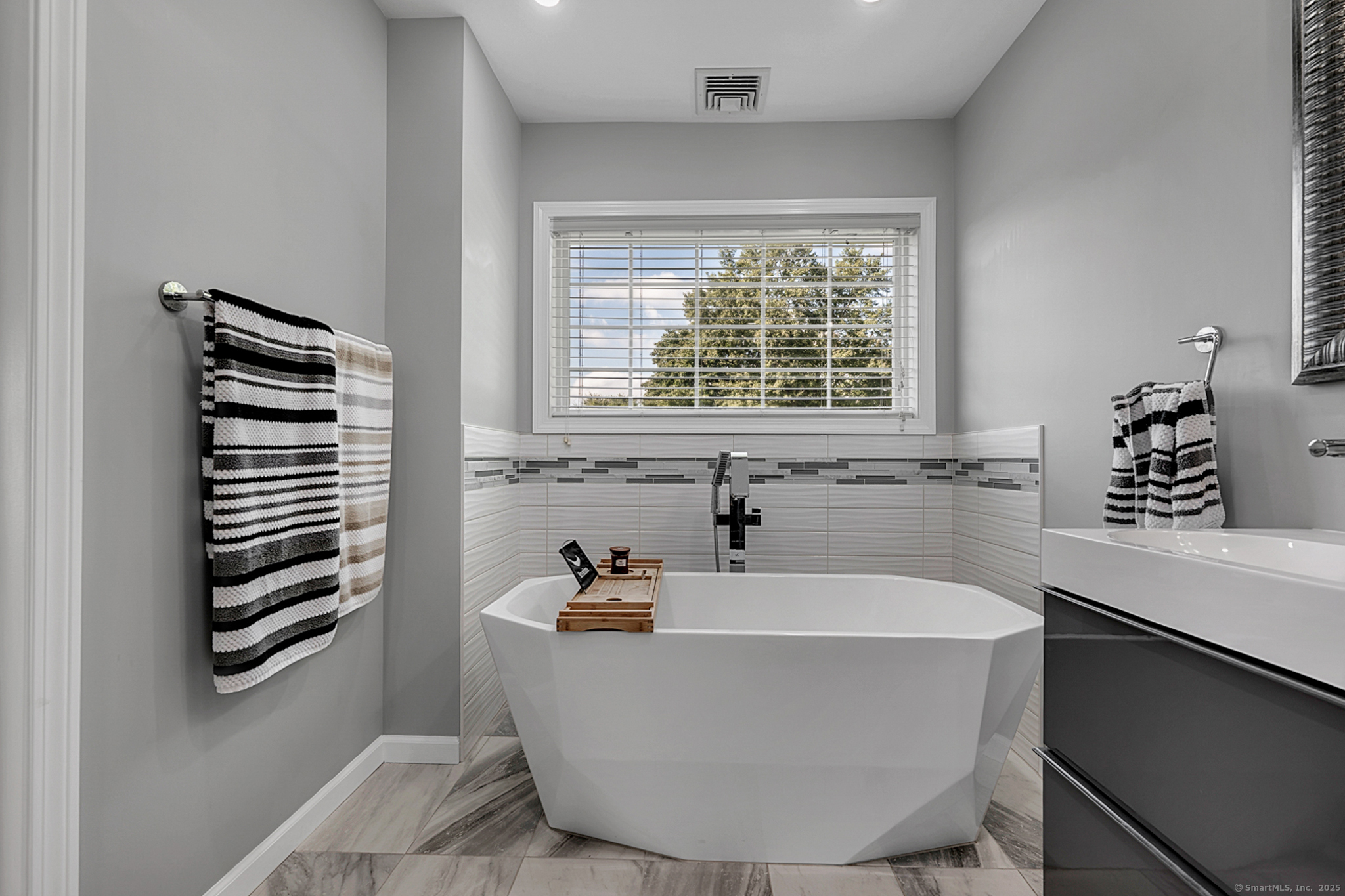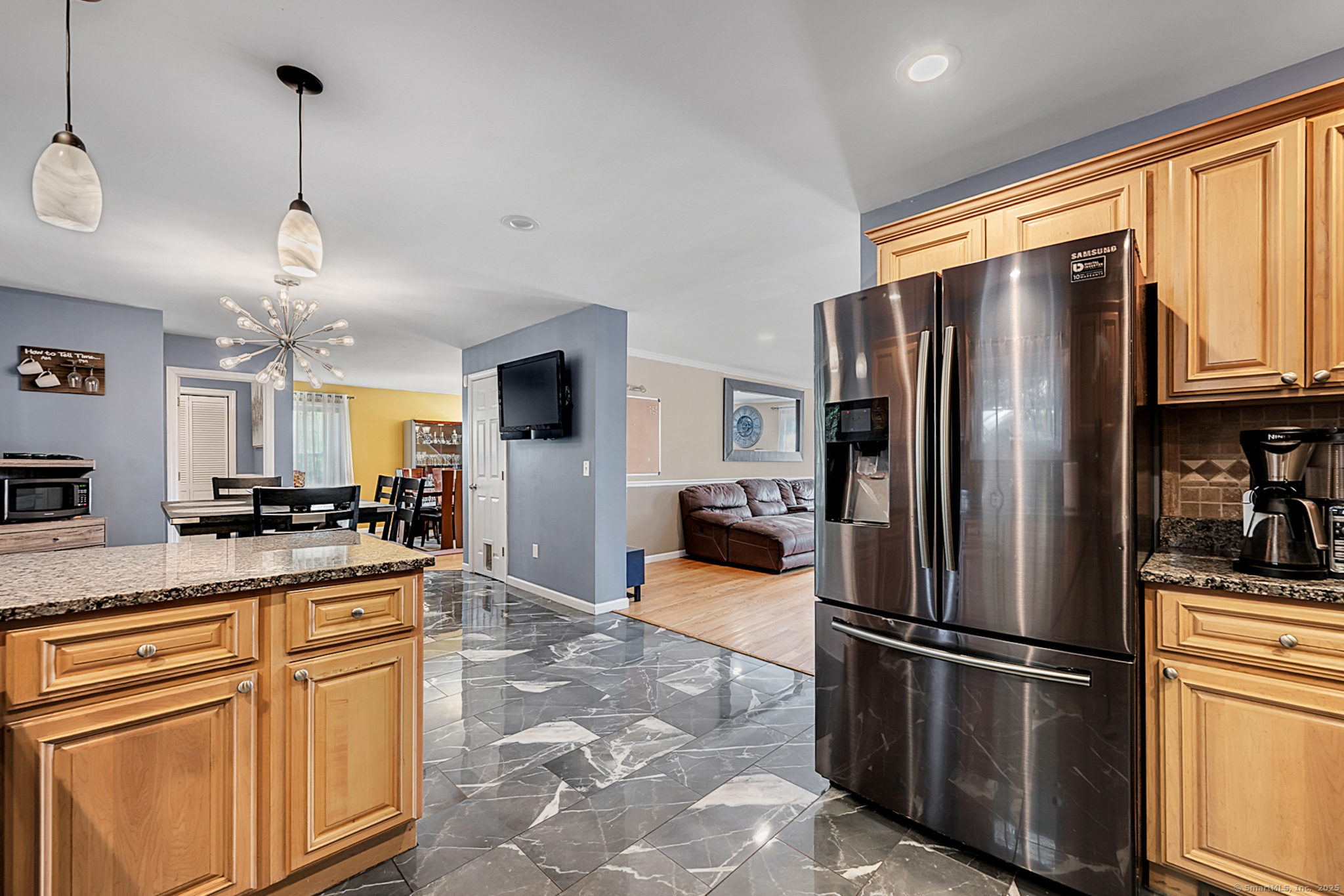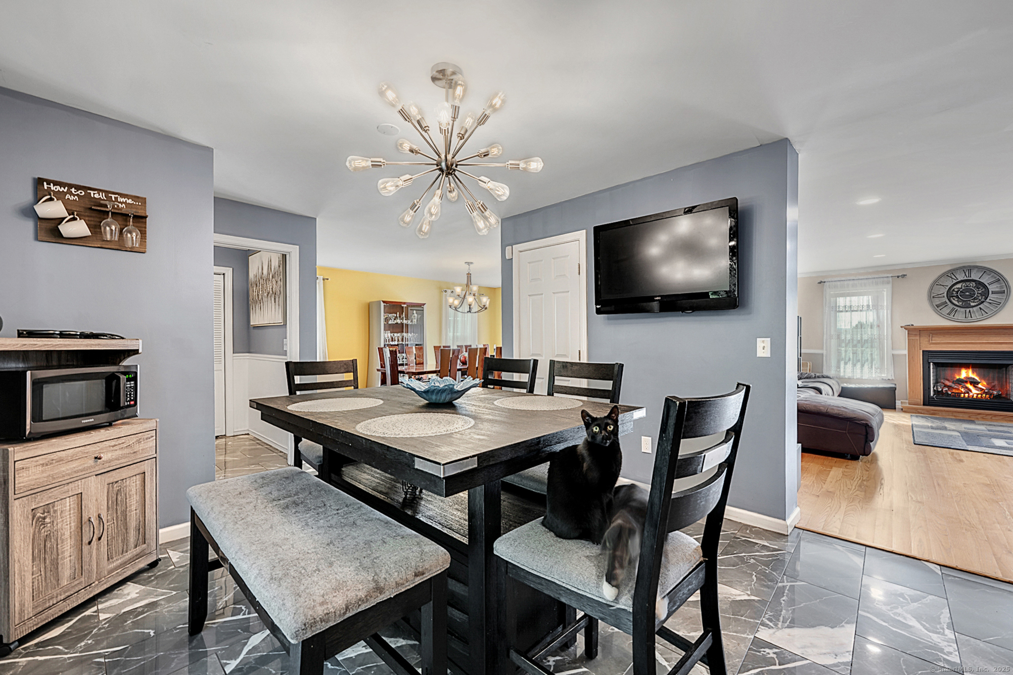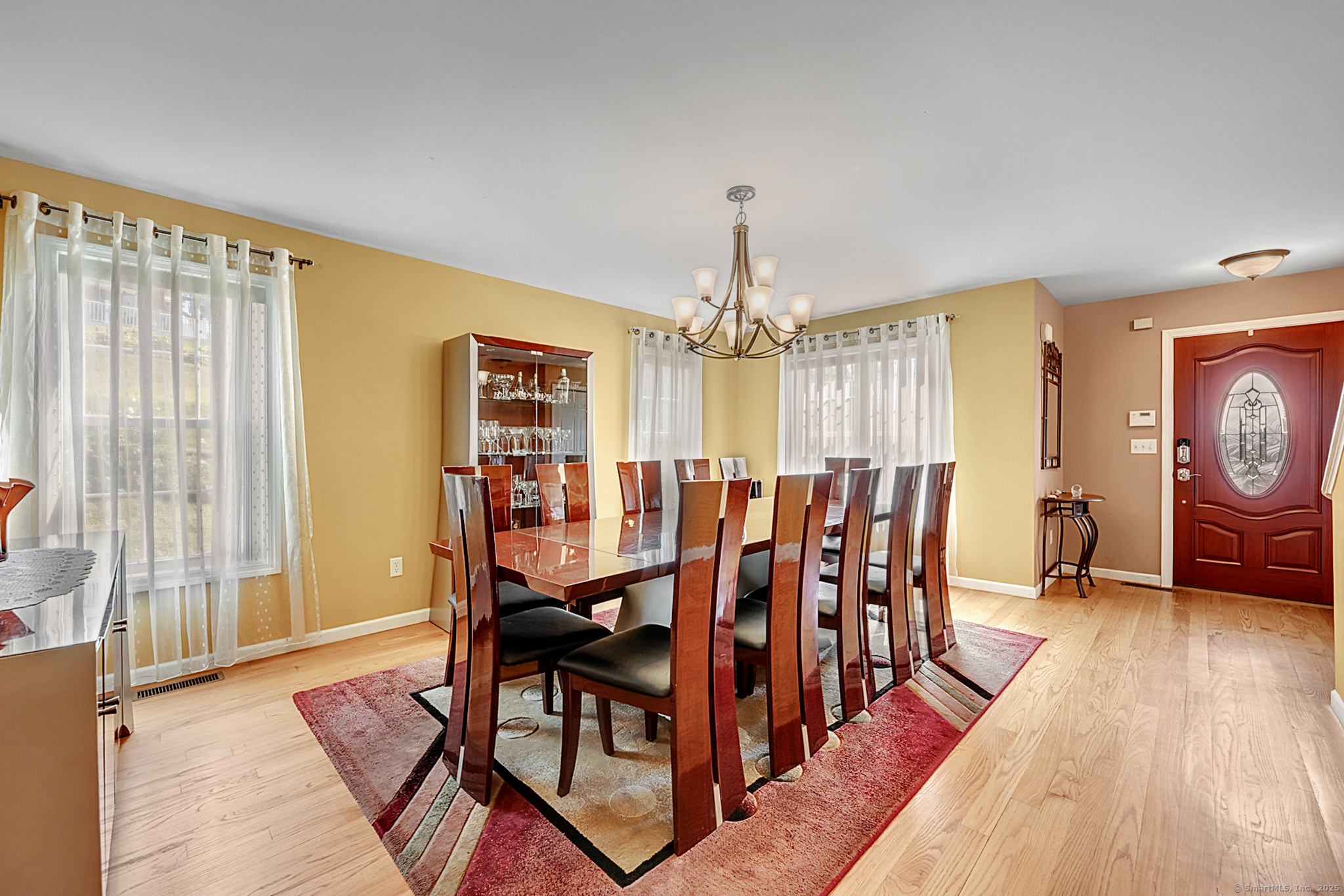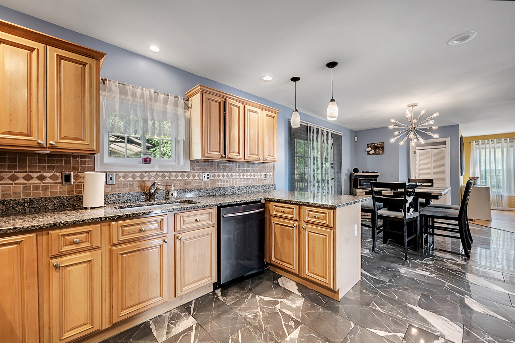 This beautifully maintained 4-bedroom, 2.5-bath Colonial, built in 2008, offers spacious and thoughtfully designed living areas ideal for today's lifestyle. The main level features an inviting eat-in kitchen with granite countertops, seating at the breakfast bar, and an adjacent daily dining area with sliders leading to the backyard. Step outside to an expansive deck with a sitting area, outdoor dining space, and bar that flows seamlessly to a fire pit and large raised garden-perfect for entertaining. A formal dining room is ready for holidays and gatherings, while the sun-filled oversized living room with hardwood floors and a gas fireplace creates a warm and welcoming atmosphere. Upstairs, you'll find four generously sized bedrooms, including a luxurious primary suite with a spa-like bath featuring a walk-in shower with rainfall system, double vanities, and a soaking tub. One of the bedrooms is currently used as a large dressing room with a walk-in closet but could easily serve as a home office. The finished lower level is designed for relaxation and fun, offering a movie room with a refreshment station/wet bar with granite countertops, plus a utility room, storage closet, and direct access to the two-car garage with additional storage. With natural gas, city water, and sewer, this home is truly move-in ready. Don't miss your chance to own this gem-it won't last!