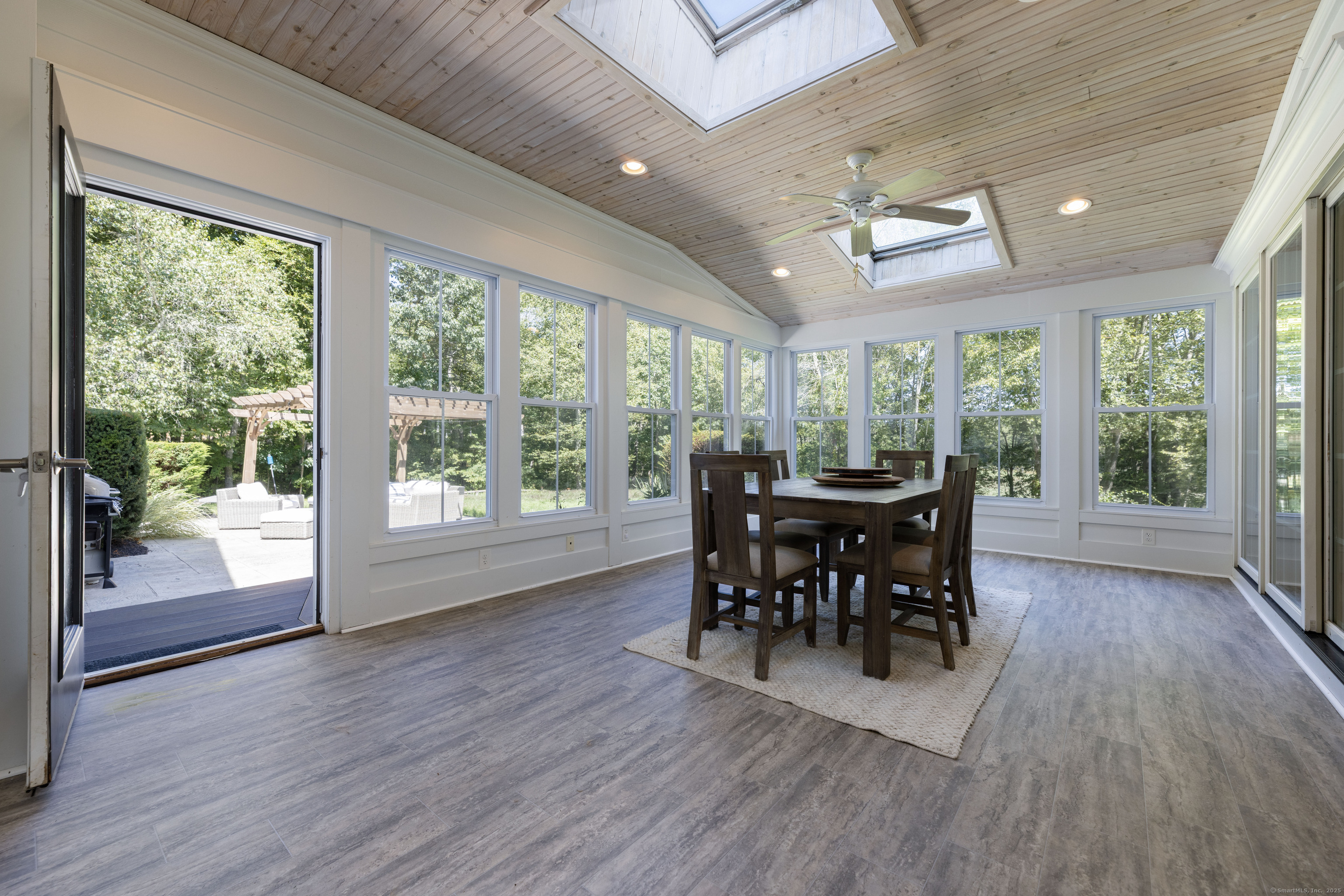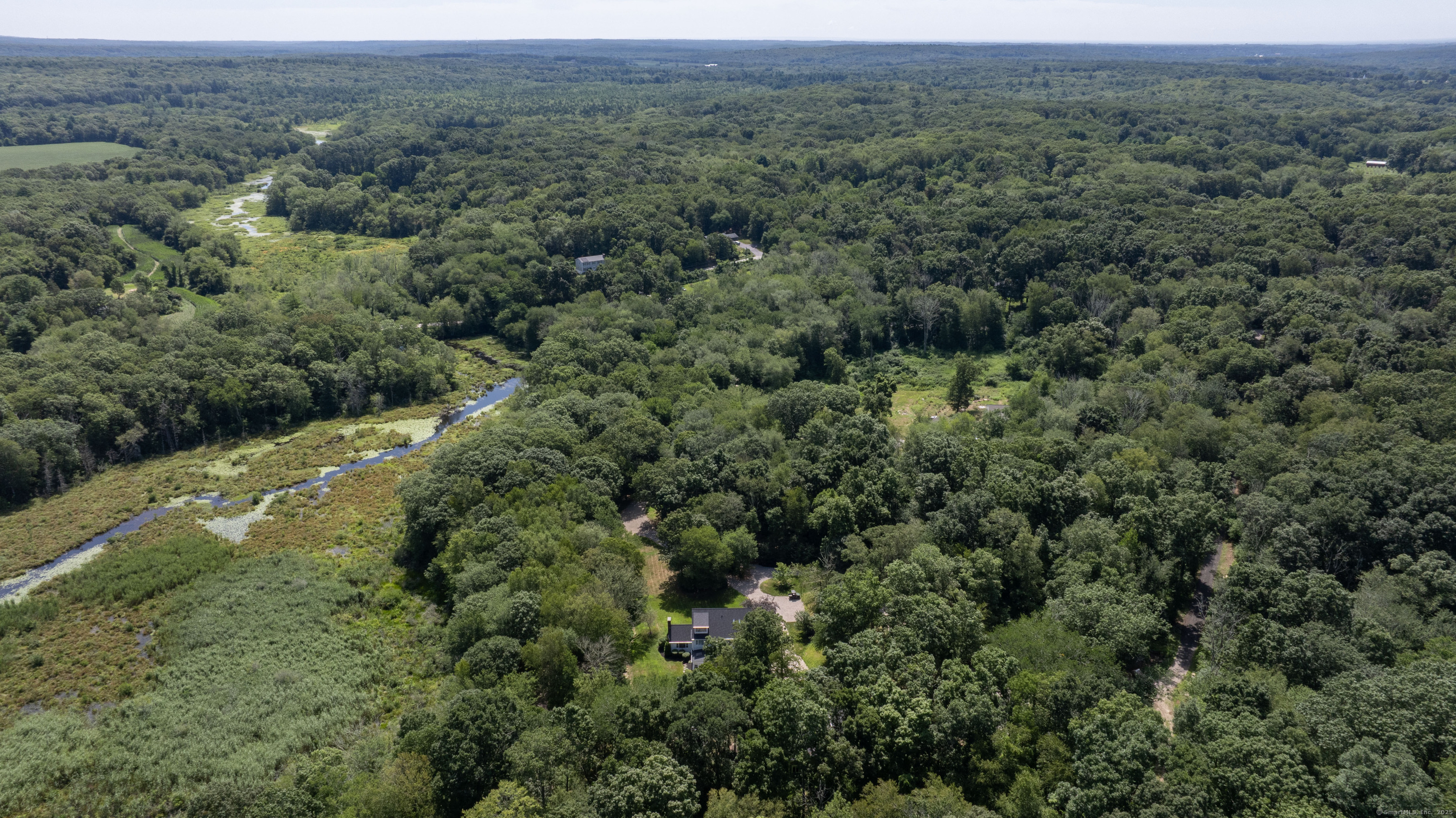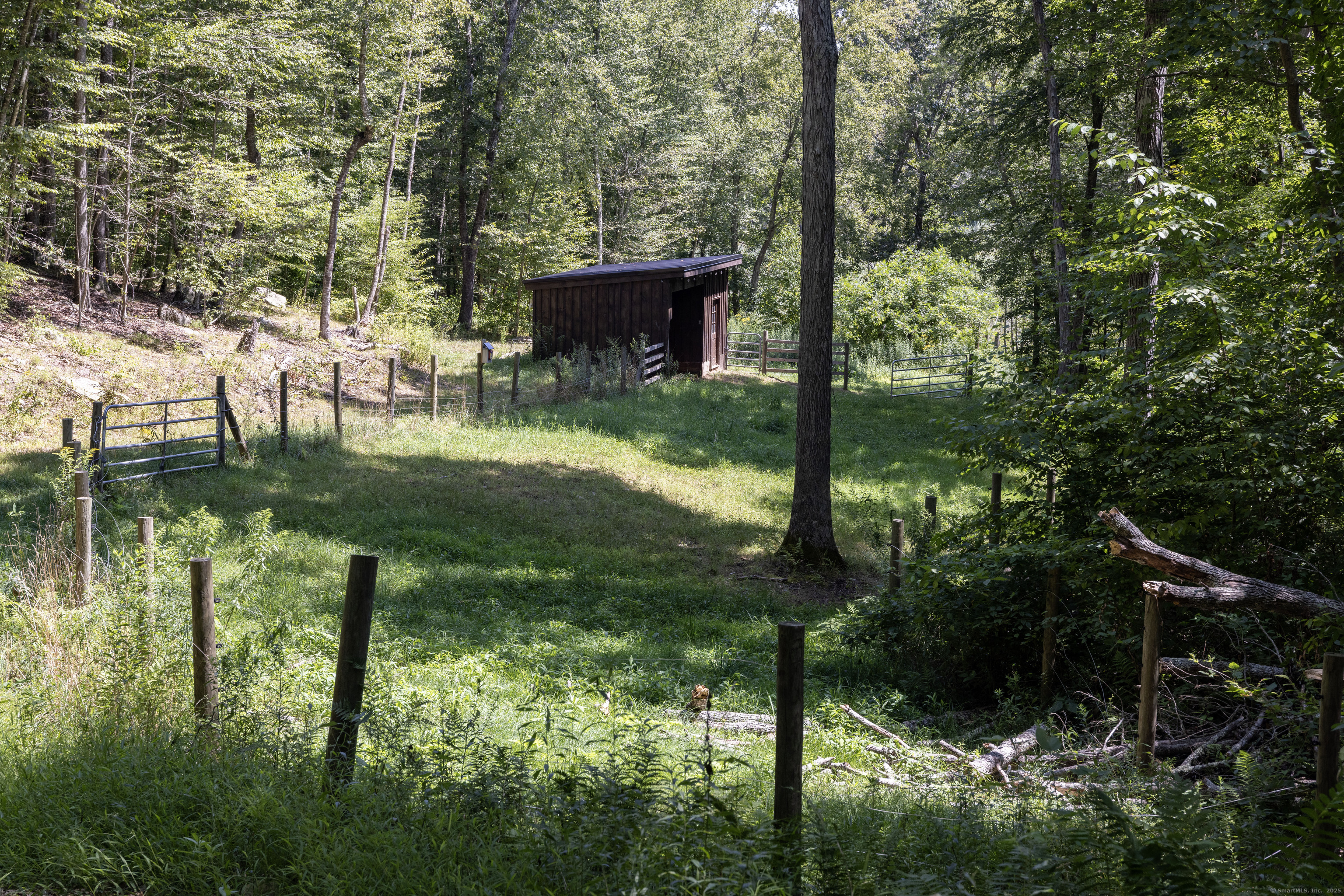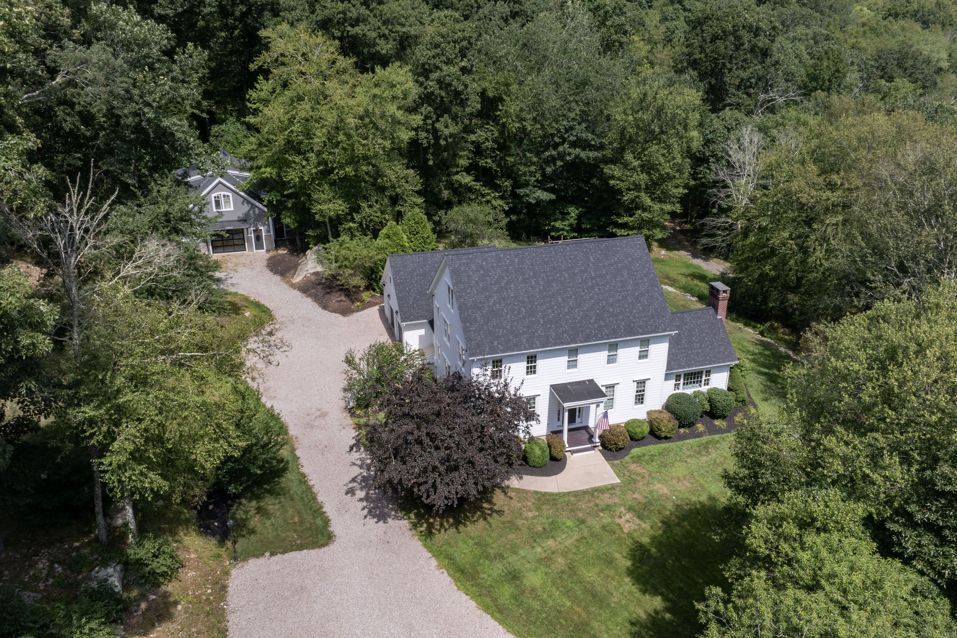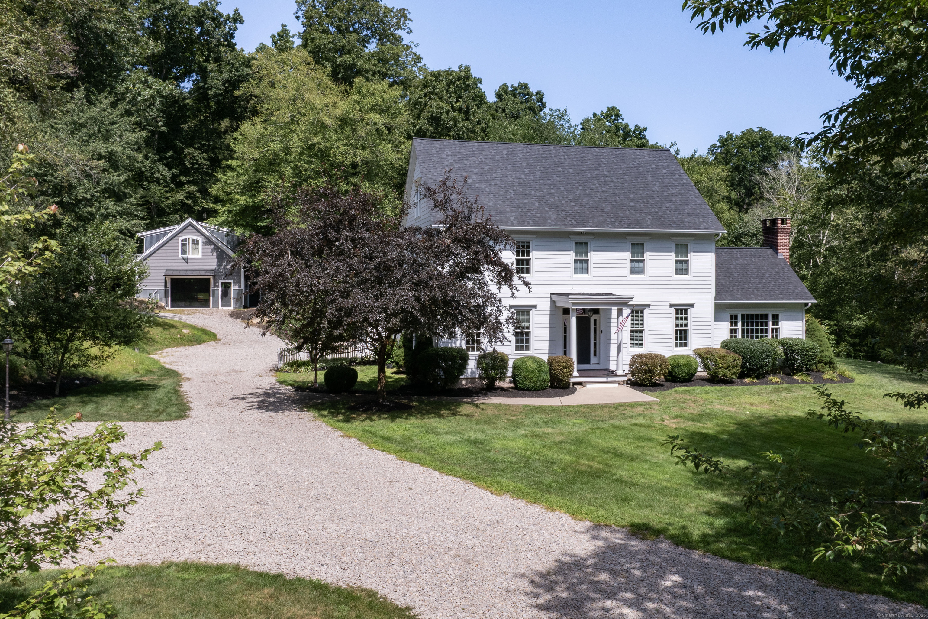 Gorgeous Country Estate Perched on 10 private acres bordering Wyassup Brook. This beautifully maintained 4,500 sq. ft. Colonial blends timeless elegance with modern comfort. Surrounded by wooded farmland, the property offers a rare blend of tranquility, charm, and functionality. Inside, the classic open-floor plan is anchored by a fully renovated chef's kitchen featuring custom cabinetry, quartz countertops, and a butler's pantry. Hardwood floors flow throughout the home, leading to a spacious living room and a sunlit family room with vaulted ceilings and fireplace. A sunroom off the kitchen opens to an expansive patio that overlooking bird sanctuary and wooded trails. The primary suite is a luxurious retreat with a newly expanded bath, skylights, a tiled walk-in shower, and freestanding soaking tub. Recent upgrades include a new roof and gutters. The property also includes a separate, newly built 2-car barn-style garage with a gorgeous 1,000 sq. ft. apartment above-ideal for guests, rental income, or multigenerational living. Animal lovers take note: An enclosed barn currently houses two Scottish Highland cows, along with a separate paddock and shelter for horses. Enjoy beautifully landscaped grounds with multiple decks, patios, and a pergola-perfect for outdoor al fresco dining, relaxing or entertaining. This one-of-a-kind estate is fully move-in ready and waiting for you to enjoy without lifting a finger.