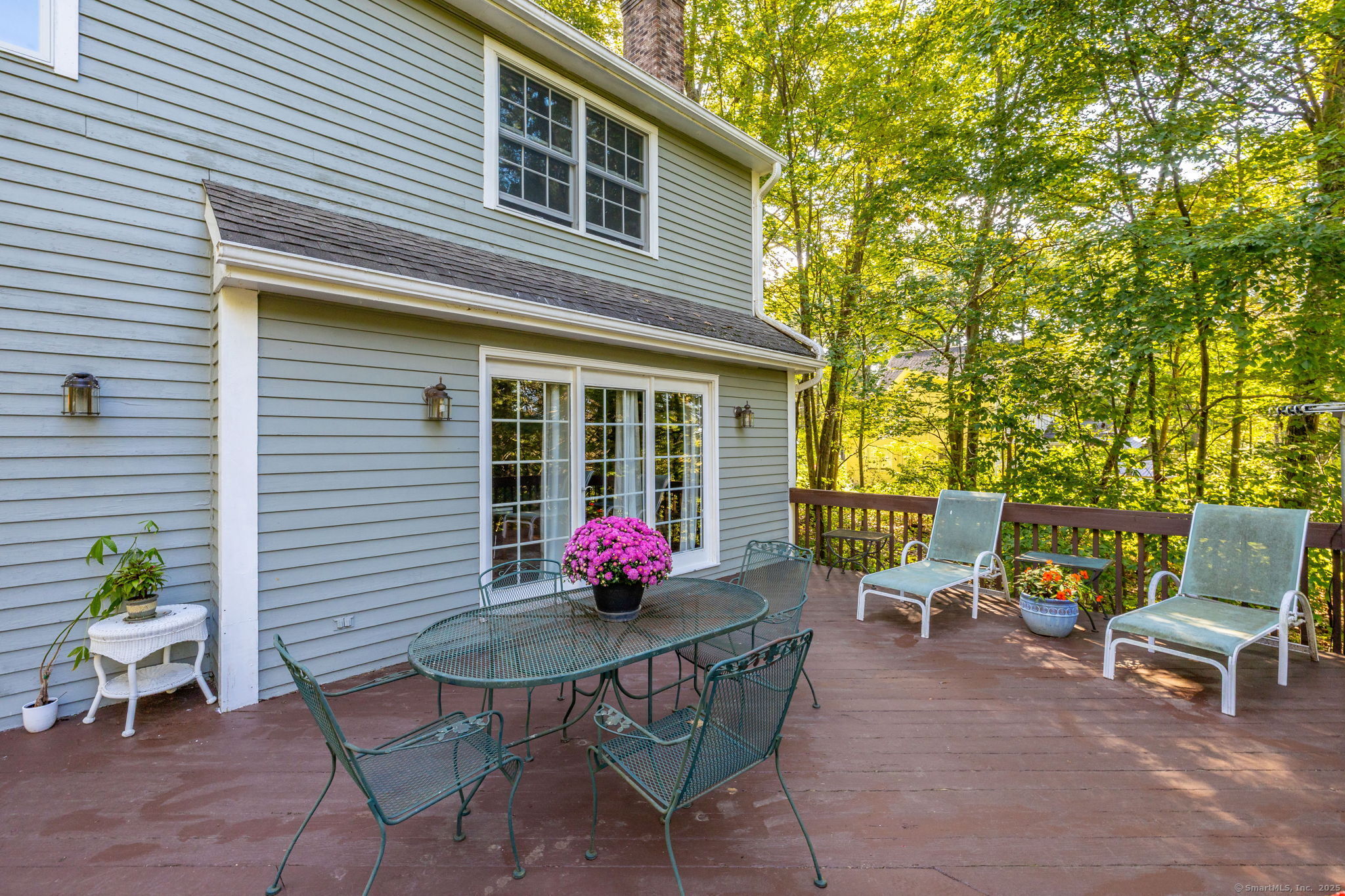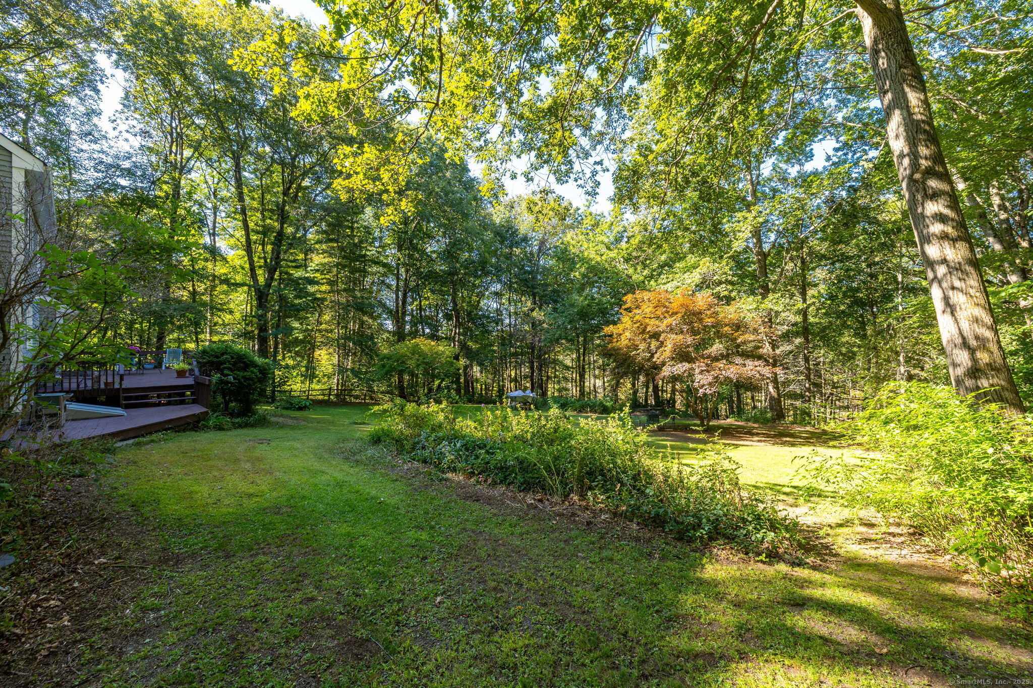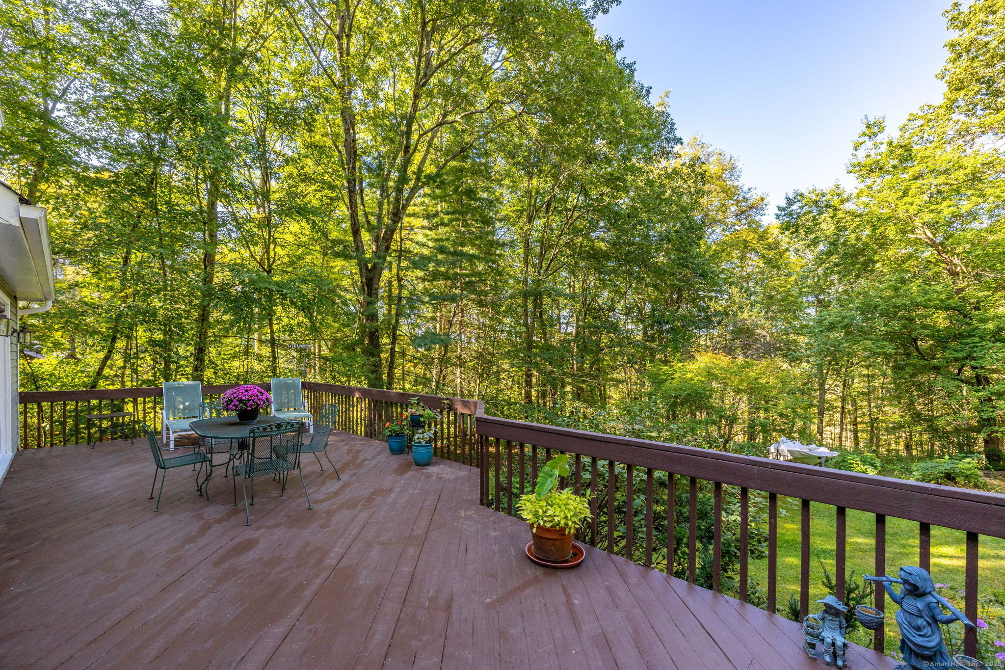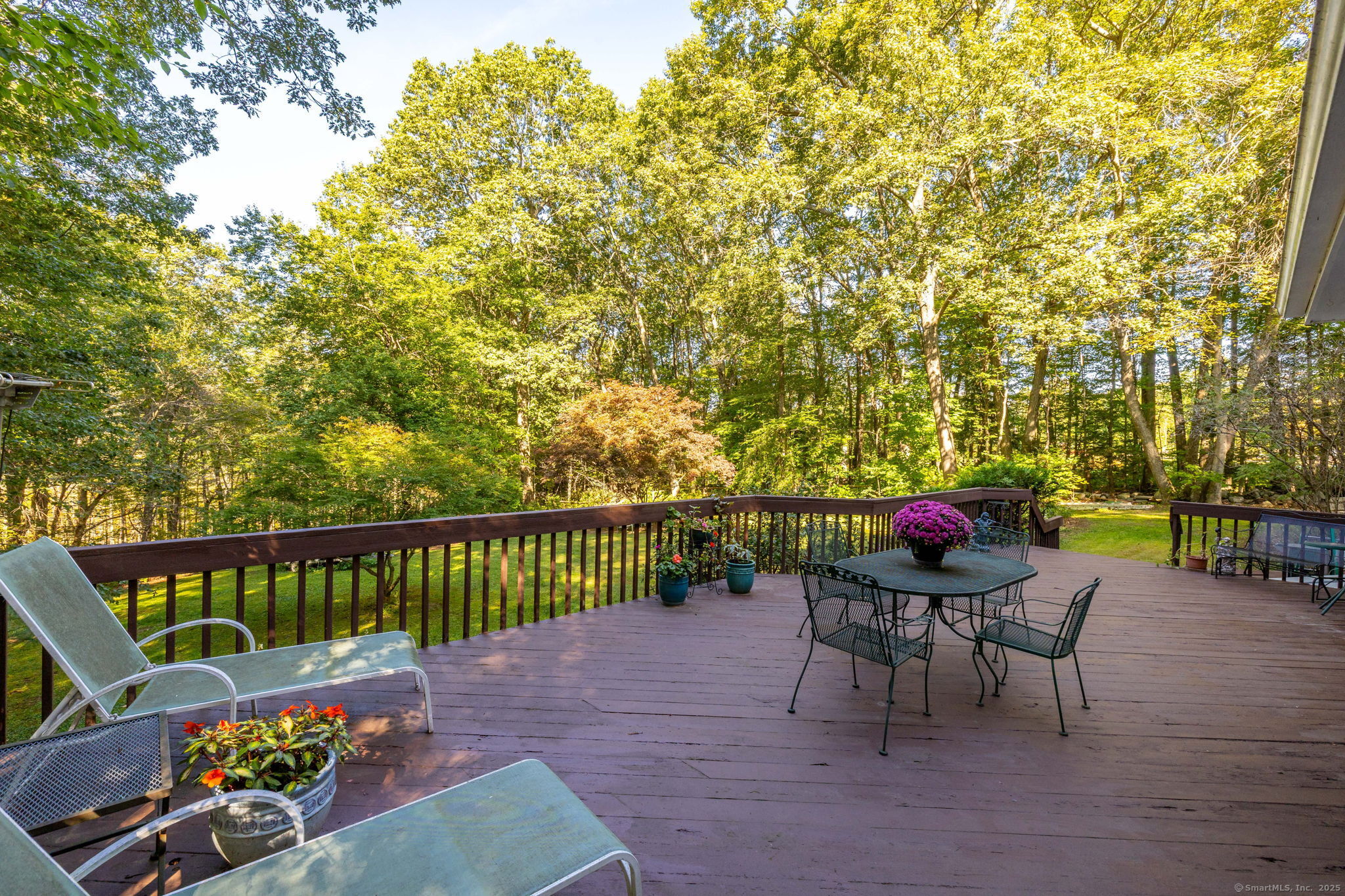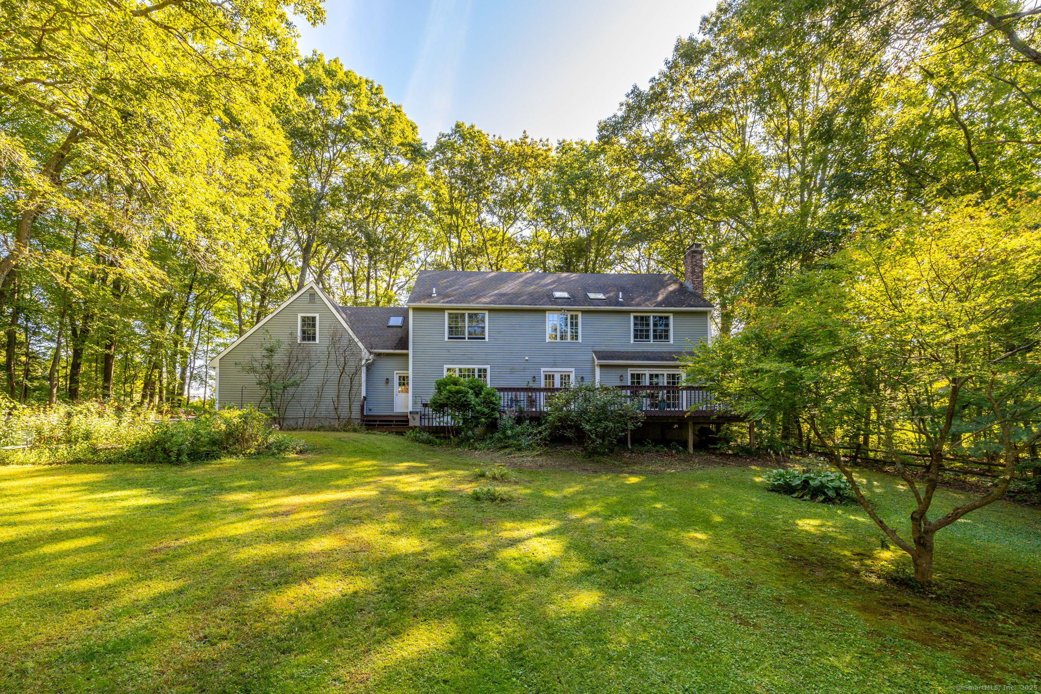 Discover your own private sanctuary on this stunning 7.33 acre wooded residence where tranquility meets elegance on a peaceful country road. This beautifully updated four-bedroom Colonial seamlessly blends classic charm with modern conveniences throughout. The heart of the home features an expertly updated kitchen showcasing elegant quartz countertops, a functional center island and an inviting dining area that flows effortlessly to the expansive wood deck-perfect for entertaining against the backdrop of mature trees and natural beauty. The welcoming family room boasts rich hardwood flooring and a cozy wood-burning fireplace, while the formal living room impresses with refined dental molding and plush wall to wall carpeting. Entertaining is effortless in the sun-filled formal dining room, enhanced by gleaming hardwood floors and elegant dental molding. Practicality continues with a spacious mudroom offering abundant storage and seamless access to the oversized two-car garage, plus a convenient main-level powder room. The upper level reveals an expansive primary bedroom suite featuring two generous closets plus a charming cedar closet, comfortable wall to wall carpeting and a versatile bonus room ideal for a home office, exercise space or personal retreat. Three additional spacious guest rooms and a full bathroom complete this level.