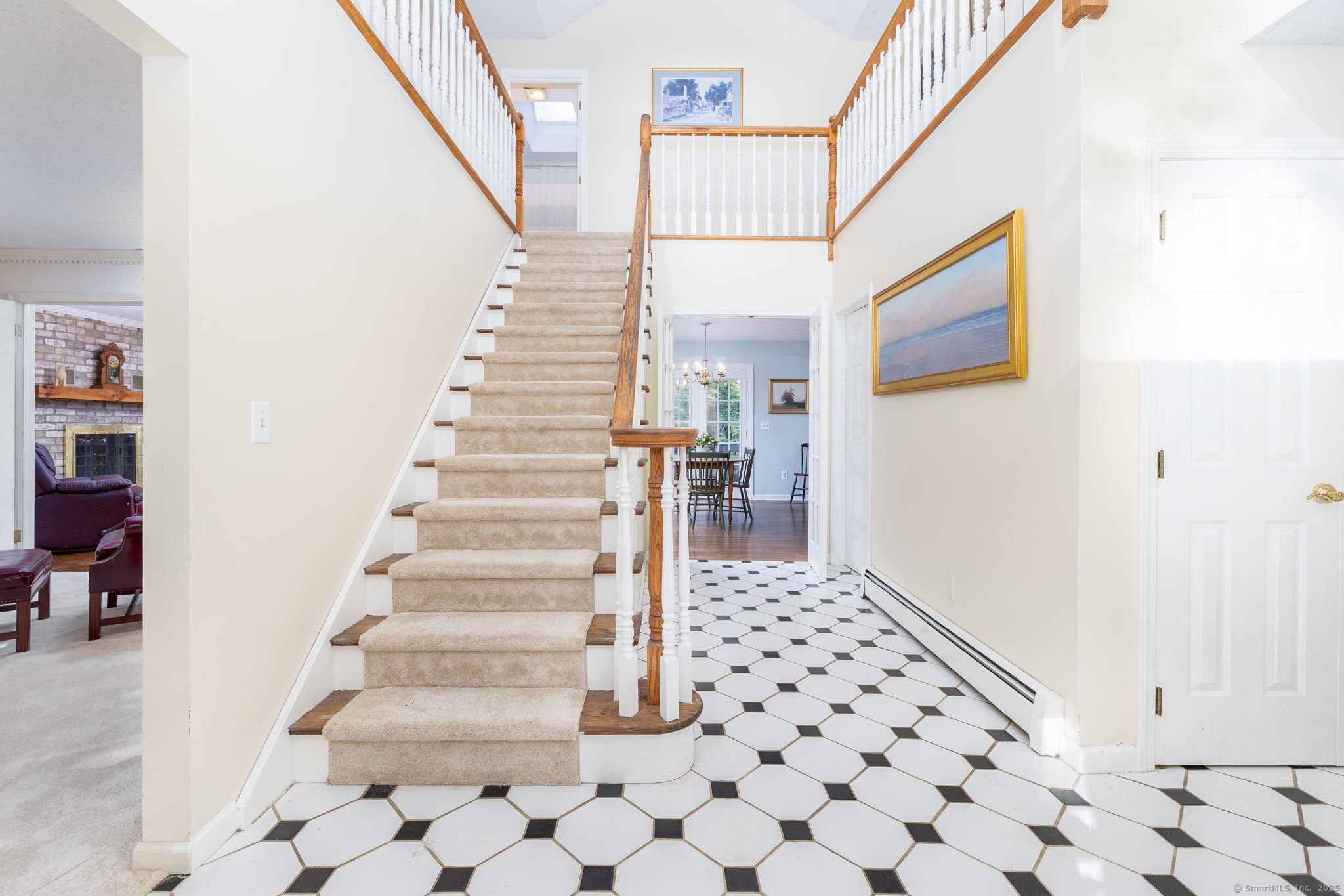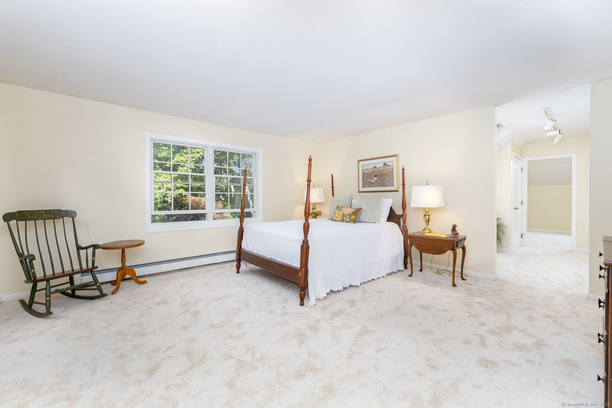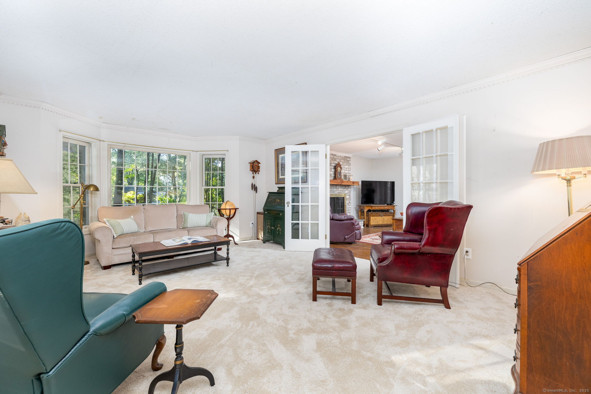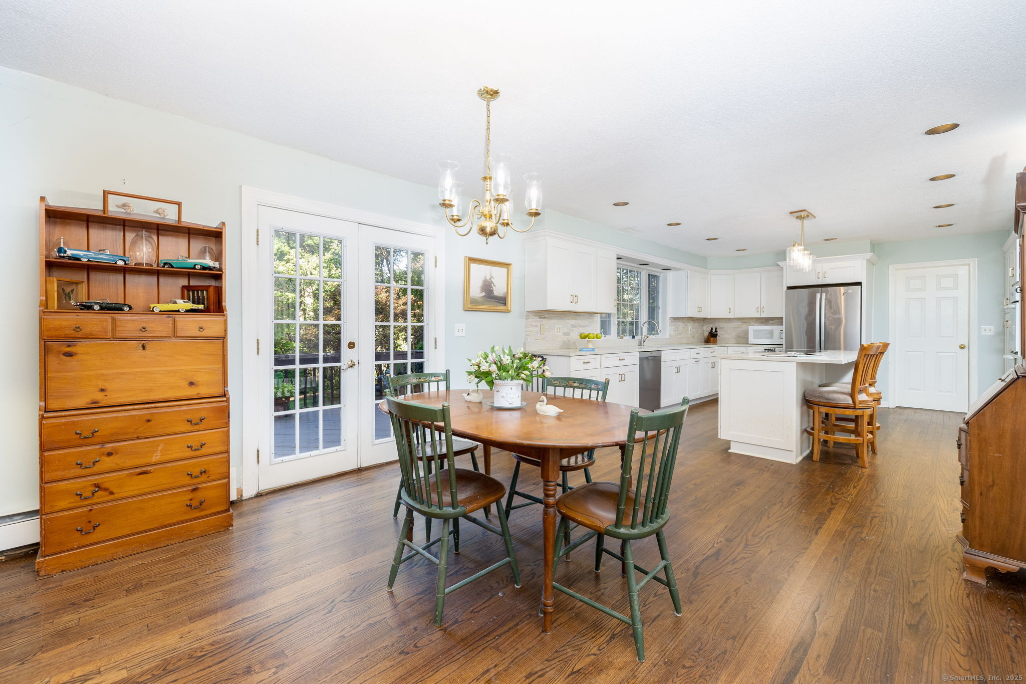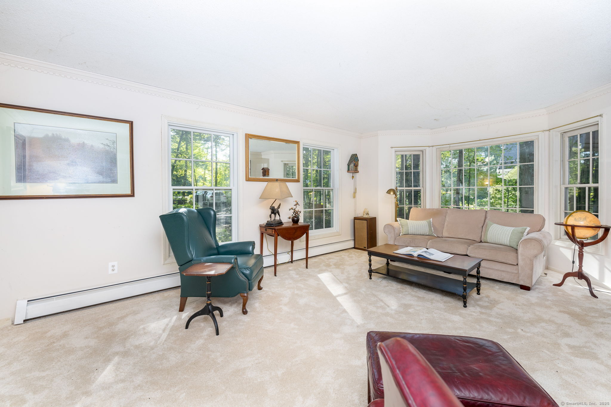 Discover your own private sanctuary on this stunning 7.33 acre wooded residence where tranquility meets elegance on a peaceful country road. This beautifully updated four-bedroom Colonial seamlessly blends classic charm with modern conveniences throughout. The heart of the home features an expertly updated kitchen showcasing elegant quartz countertops, a functional center island and an inviting dining area that flows effortlessly to the expansive wood deck-perfect for entertaining against the backdrop of mature trees and natural beauty. The welcoming family room boasts rich hardwood flooring and a cozy wood-burning fireplace, while the formal living room impresses with refined dental molding and plush wall to wall carpeting. Entertaining is effortless in the sun-filled formal dining room, enhanced by gleaming hardwood floors and elegant dental molding. Practicality continues with a spacious mudroom offering abundant storage and seamless access to the oversized two-car garage, plus a convenient main-level powder room. The upper level reveals an expansive primary bedroom suite featuring two generous closets plus a charming cedar closet, comfortable wall to wall carpeting and a versatile bonus room ideal for a home office, exercise space or personal retreat. Three additional spacious guest rooms and a full bathroom complete this level.