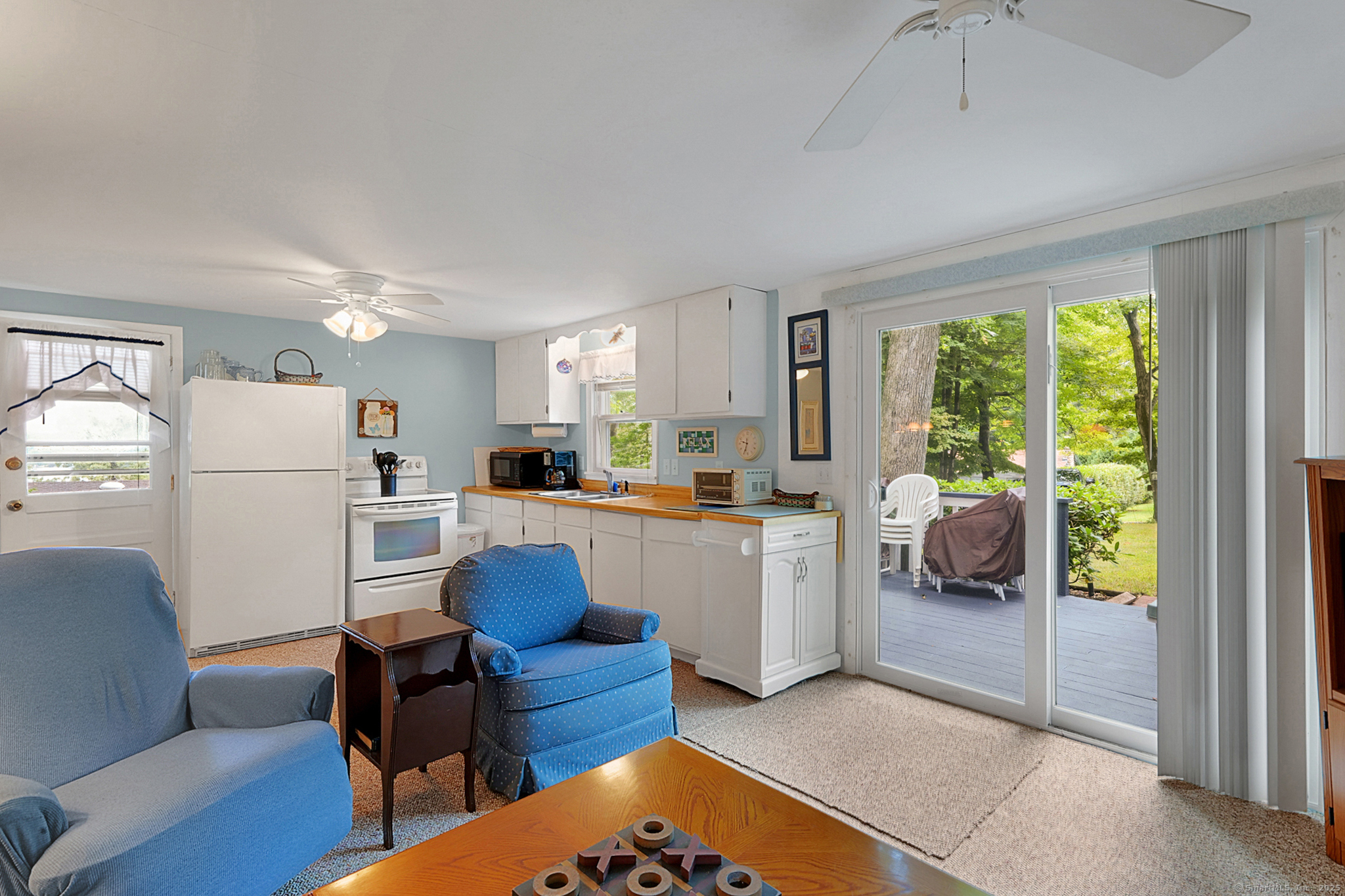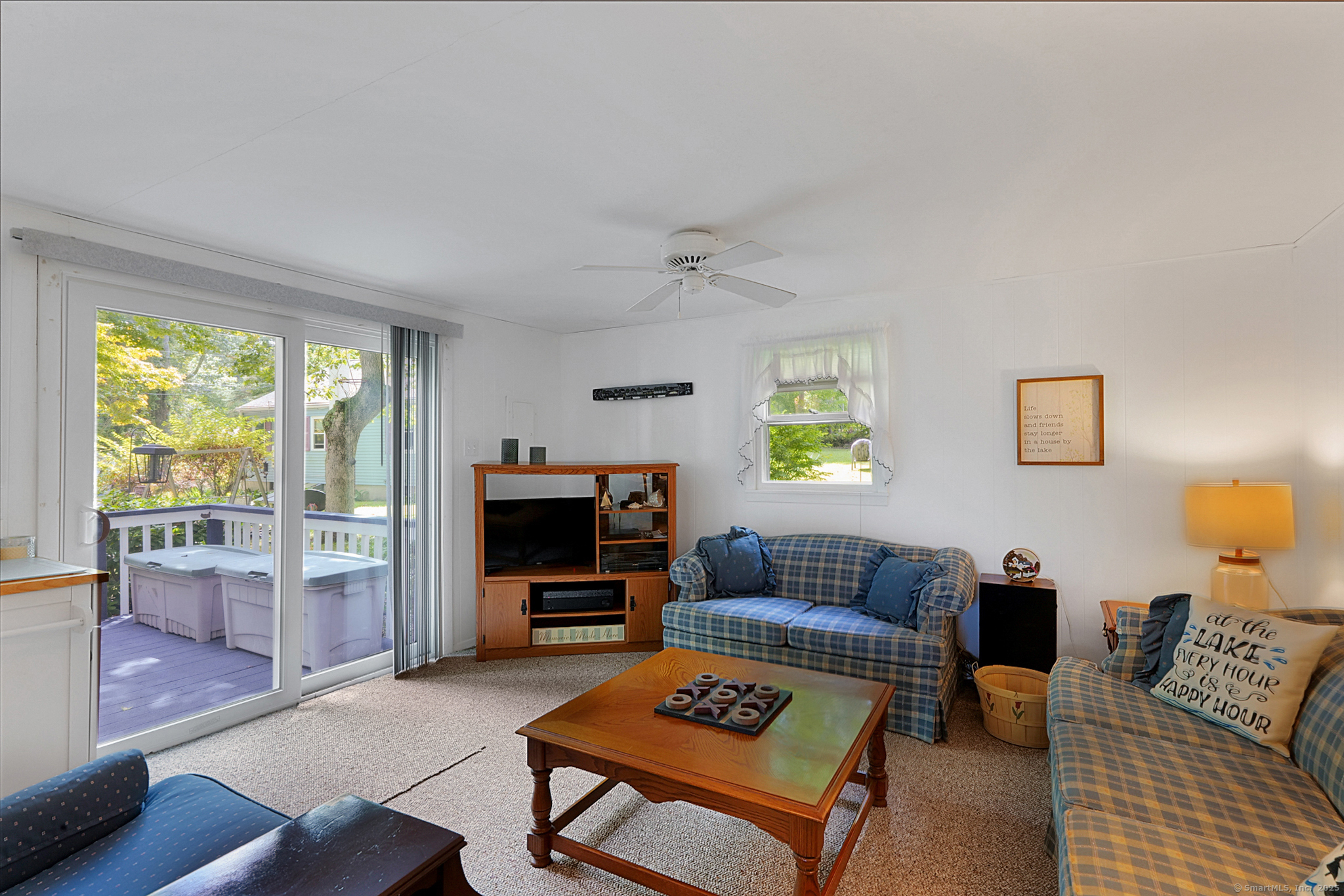 AMSTOM LAKE - A rare opportunity to own a seasonal retreat on coveted Amston Lake. This fully furnished 3-bedroom, 1-bath ranch offers 836 sq. ft. of comfortable living space and the lifestyle only lake living can provide. Enjoy private access to Amston Lake known for its pristine waters, sandy beaches, and endless recreation-swimming, kayaking, fishing, and sailing ready for you to enjoy with you and your family. Whether you're looking for a weekend getaway or a summer haven, this three-season property combines tranquility, privacy, and outdoor adventure. The home itself features a cozy, functional layout perfect for entertaining after a day on the water. With 2 lots included, you'll have room to simply relax in complete tranquility. Located just minutes from local shops and dining, and an easy commute to Hartford, Norwich, or the shoreline. This "Lakelife" property awaits.....come see it soon as this one won't last