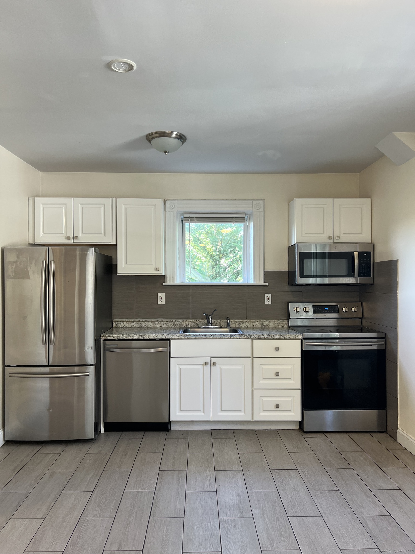 This updated 3-bedroom, 2-bath duplex offers exceptional value in a highly convenient Greenwich location, just minutes from the Port Chester train station. The home features an updated kitchen with stainless steel appliances that opens seamlessly to a spacious layout. There is a first floor primary bedroom. Upstairs you'll find two bedrooms, a full bath and in-unit washer/dryer provide everyday comfort and practicality. Enjoy outdoor living on the expansive deck, ideal for dining and entertaining. Additional highlights include parking for two cars in a shared driveway and an option for a garage space as well. A wonderful opportunity to live close to shops, restaurants, and transportation while enjoying the comfort of a thoughtfully updated home.