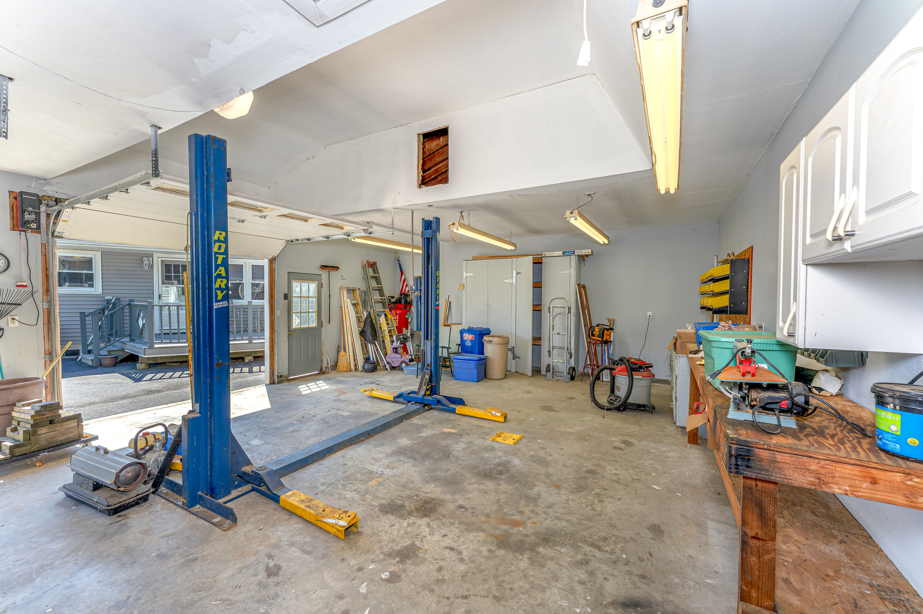 Fantastic Ranch style home on pretty landscaped lot just blocks from beach and right next door to a park. Central air, Updated kitchen, beautiful floors, full bath, front porch, back deck and roof. 864 sq ft detached garage is a car enthusiast dream! Boasts oversized doors, attic storage space and a lift! Subject to probate being sold as is.