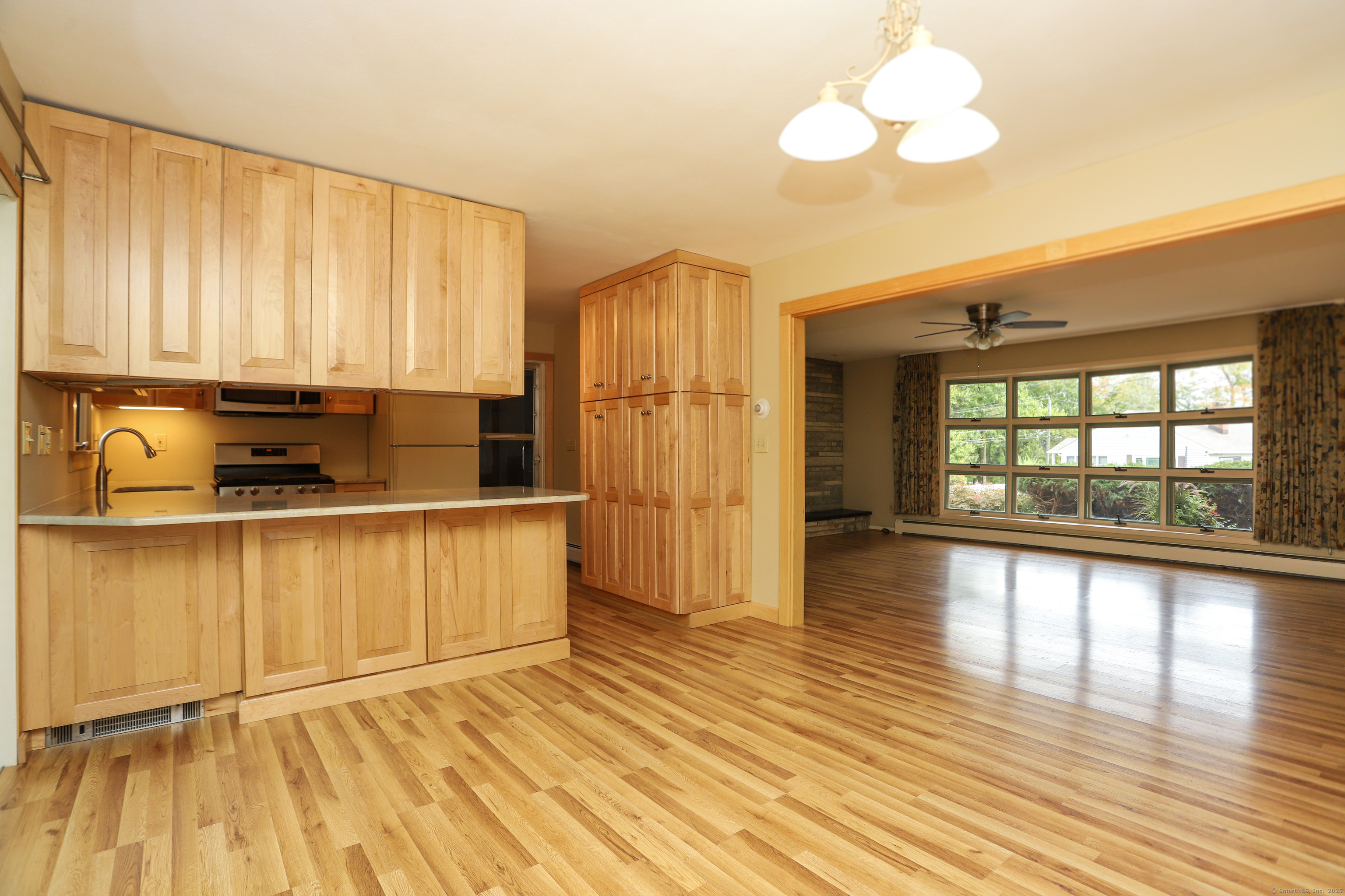 Welcome to this nicely maintained Westside Danbury Ranch! Nestled on a quiet dead end street, you will enjoy a peaceful atmosphere, but also the convenience of shopping, fine restaurants, parks, golf and highways. This charming home offers two large bedrooms, and two full bathrooms. The modern kitchen has newer cabinets and stainless-steel dishwasher, gas range & microwave. There is plenty of cabinet and pantry storage. The kitchen opens up to the bright and sunny dining area. The spacious living room/great room has wonderful natural light streaming thru the large front window. Enjoy the beautiful marble gas fireplace on a cold winter day. As an extra feature, grab a good book and a cozy chair and enjoy the enclosed porch/sunroom. There is a full unfinished basement with the laundry hook-ups and lots of storage space. The two-car oversized garage has automatic garage openers and a door to the completely fenced in private backyard. Schedule your showing today!