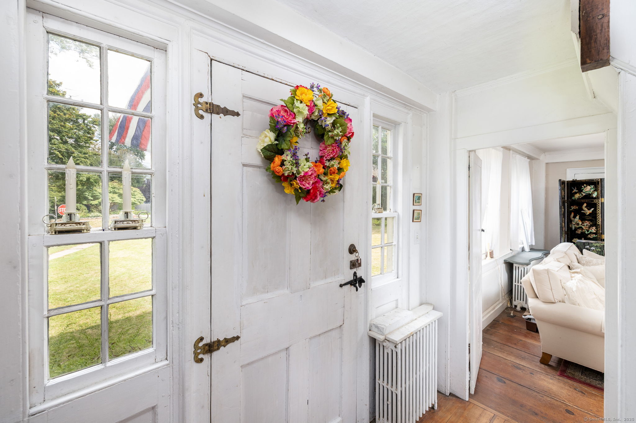 Experience the charm of Old Wethersfield with this exceptional new listing at 493 Main Street. Nestled in a prime location steps from serene Cove views, this property invites you to enjoy peaceful, scenic surroundings & breathtaking sunsets. Step outside to launch your kayak or boat, or explore the nearby waterfront trails just steps from your door. A short stroll in the opposite direction brings you to the heart of the village, home to award-winning restaurants, boutique shops, museums, & vibrant community events throughout the year. This distinguished center-chimney Colonial, built in 1765 by Samuel Hanmer, a successful cooper with a thriving business along the Connecticut River, offers timeless character & historical significance in one of New England's most picturesque settings. The first floor features a well-appointed layout including a living room, dining room, family room, kitchen, laundry area, & a convenient half bath. Upstairs, you'll find four generously sized bedrooms & a full bathroom. Notable architectural details include original wide-plank wood flooring, four wood-burning fireplaces, two authentic beehive ovens, two built-in corner cabinets & raised paneling. One of your favorite spots may be on the back porch perfect for quiet moments or laughter with friends, time spent here is sure to become a lasting memory. Situated on a spacious, level lot set back from Main Street, the property offers ample room for outdoor recreation, gardening or potential expansion.
