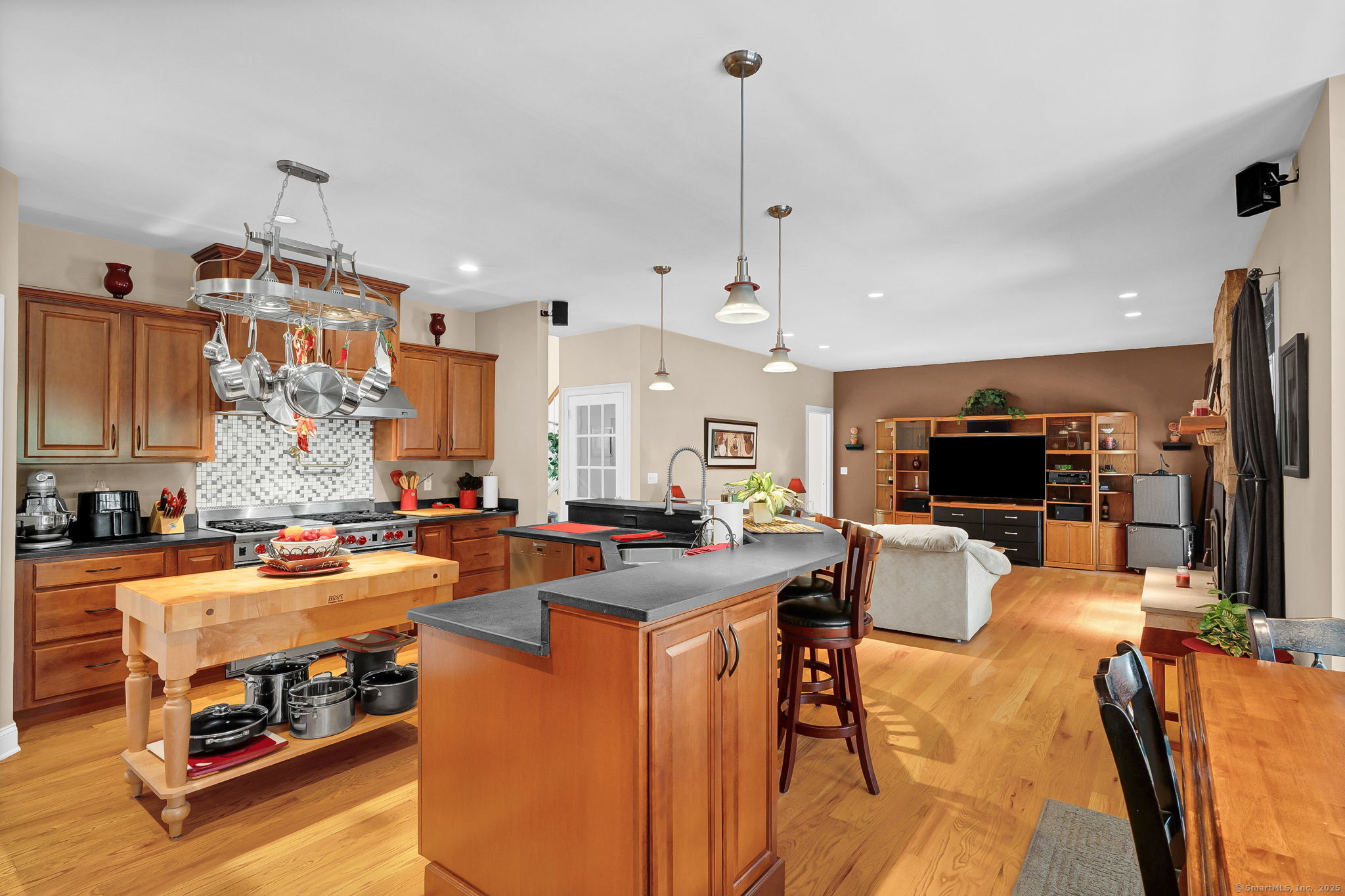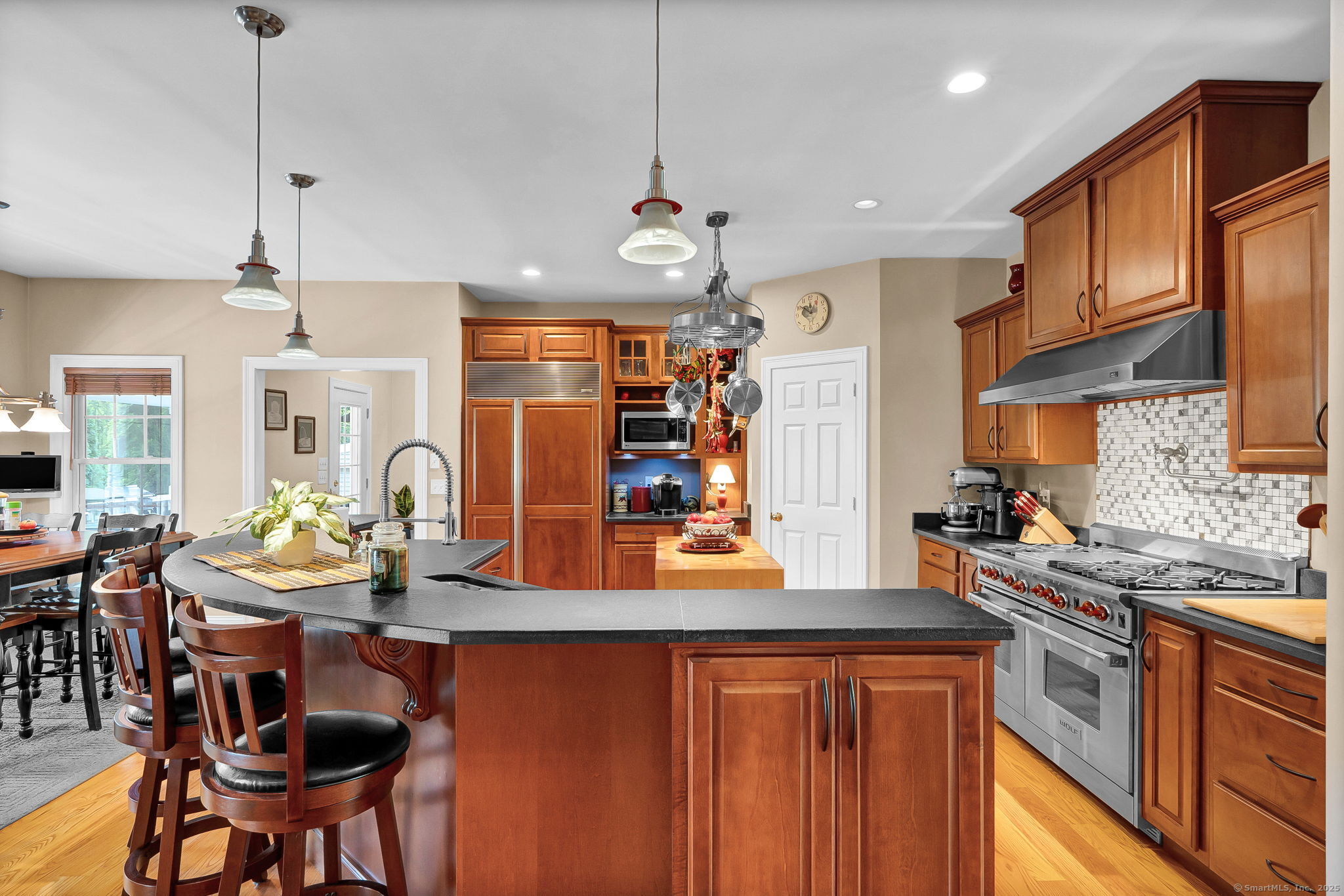Welcome to 4 Bishop Rd, a custom-built colonial on a quiet cul-de-sac in beautiful Oxford, CT. Enjoy area amenities while surrounded by a peace and privacy. A gorgeous stone walkway leads to the dramatic main entrance with a bright two-story foyer, welcoming you and your guests to this exquisite living space. One side of the foyer is a flexible space that can serve as an office or guest suite and includes a full bathroom. Opposite is the formal dining room with inlayed hardwood floors and a tray ceiling to accentuate the space. Next, you move through a small hallway into the open kitchen and main living area. The centerpiece of the living room is a wood burning fireplace to bring warmth while surrounding yourself with friends and family. The kitchen is a chef's dream with a Subzero refrigerator and Wolf range. The granite center island and eat-in nook will be an epicenter of activity for holidays, parties, and daily life. Rounding out the first floor is a dedicated office space near the entrance to the 3-car garage.