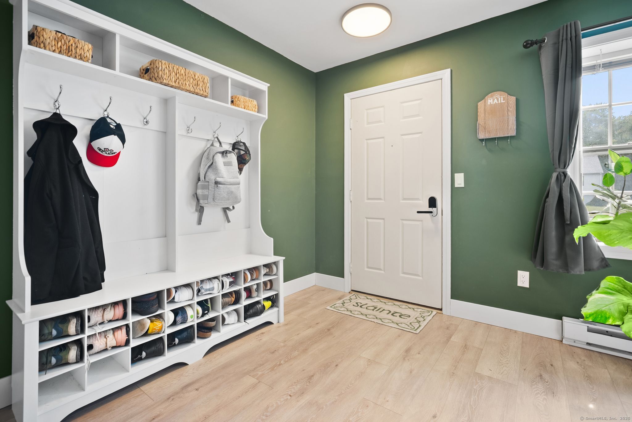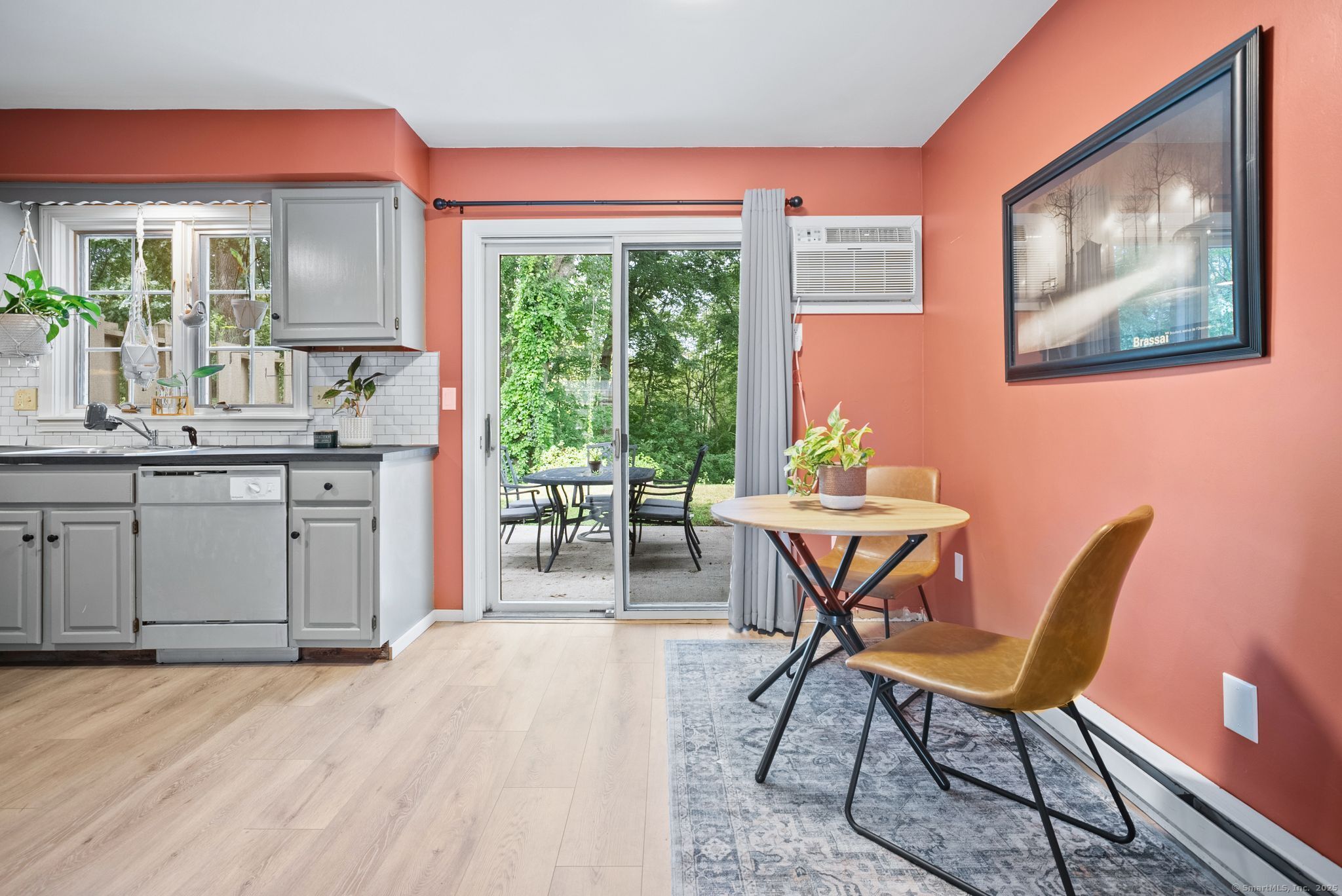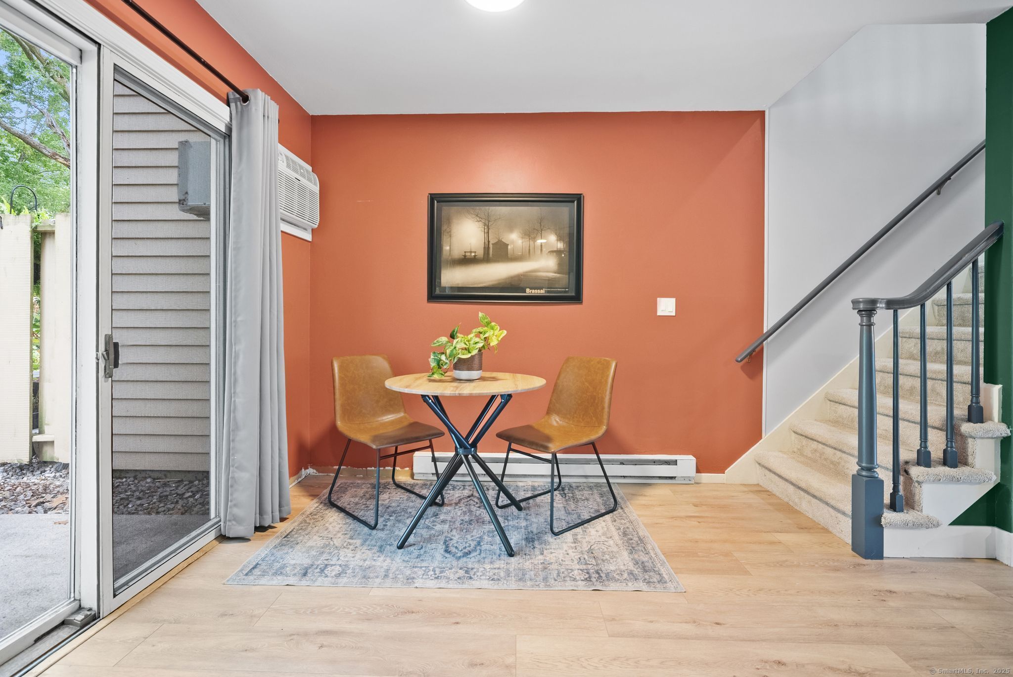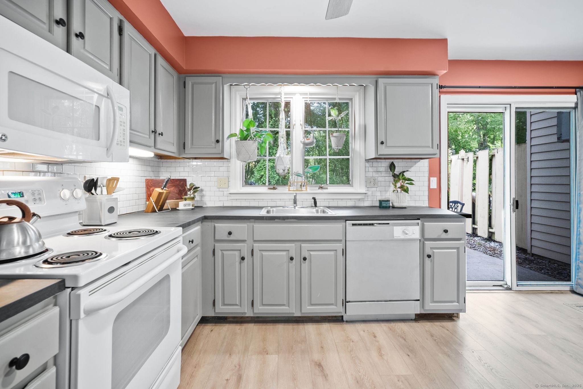 Discover this updated 2-bedroom, 1 full and 2 half-bath townhouse in the Founders Village community. Situated at the rear of the complex with ample parking and a private patio overlooking woods, this home blends modern style and vibrant character with a bold color scheme. The main floor features new vinyl plank flooring, an open-concept living room, kitchen, dining area, and a convenient half bath. Upstairs, the spacious primary bedroom offers double closets, while the second bedroom, also with double closets, shares a unique bathroom setup with individual vanities and a common shower for added privacy. Just minutes from downtown Clinton and Clinton Harbor, enjoy nearby restaurants, marinas, and Clinton Town Beach. Commuters will love easy I-95 access. This pet-friendly complex welcomes your furry friends! Don't miss this charming, move-in-ready townhouse-schedule your tour today!