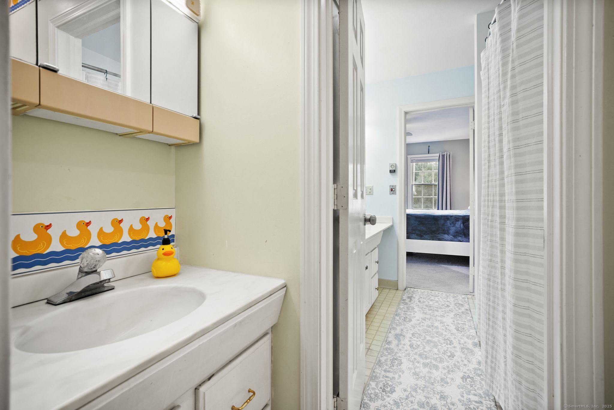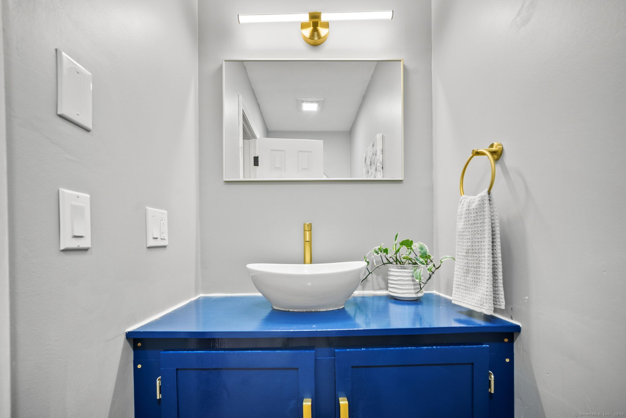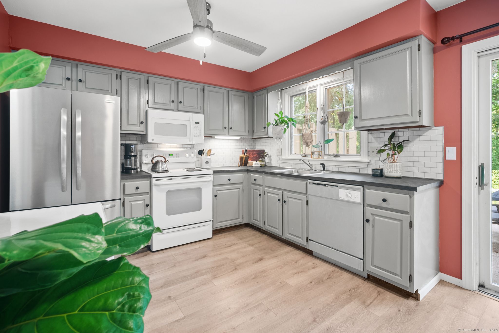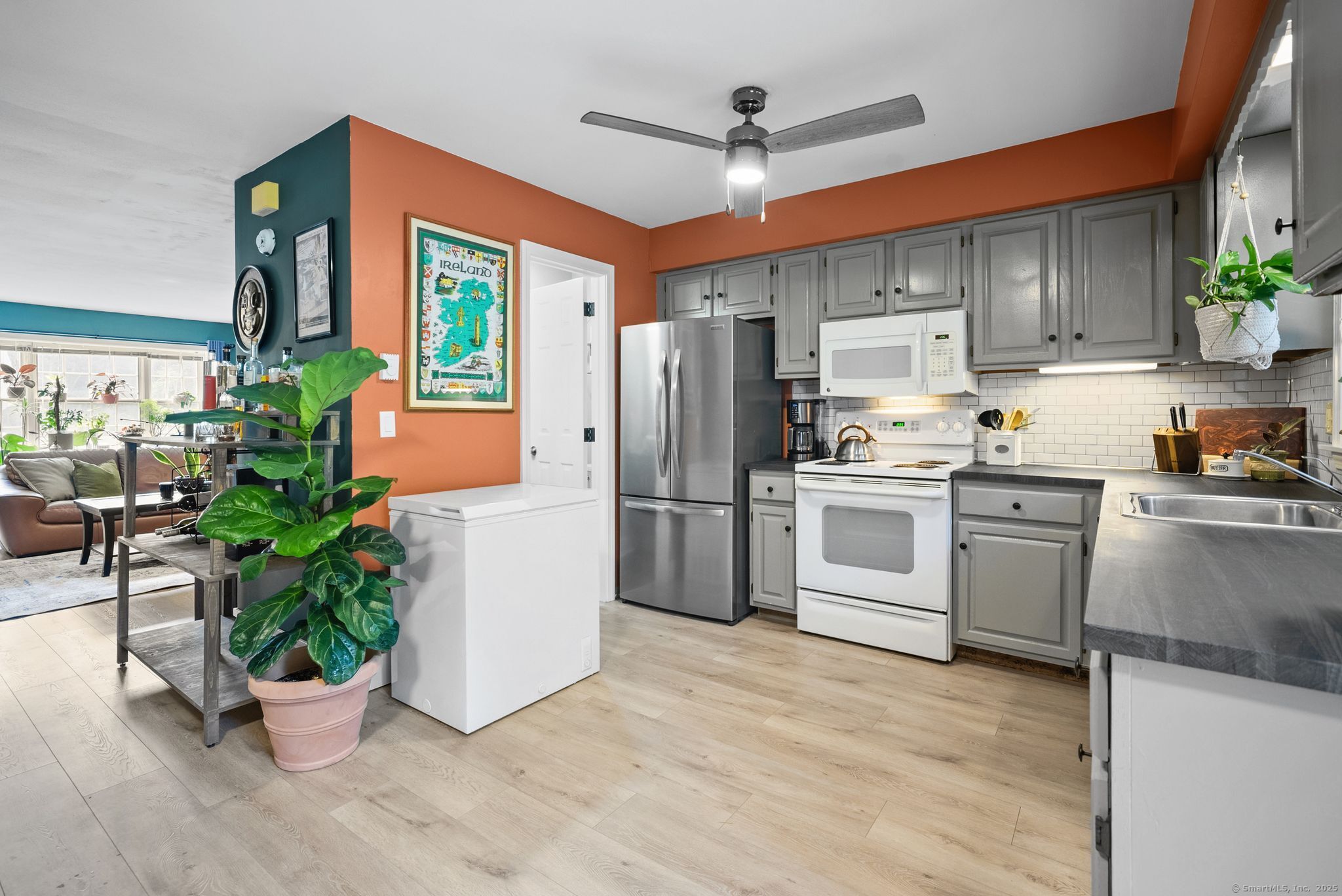 Discover this updated 2-bedroom, 1 full and 2 half-bath townhouse in the Founders Village community. Situated at the rear of the complex with ample parking and a private patio overlooking woods, this home blends modern style and vibrant character with a bold color scheme. The main floor features new vinyl plank flooring, an open-concept living room, kitchen, dining area, and a convenient half bath. Upstairs, the spacious primary bedroom offers double closets, while the second bedroom, also with double closets, shares a unique bathroom setup with individual vanities and a common shower for added privacy. Just minutes from downtown Clinton and Clinton Harbor, enjoy nearby restaurants, marinas, and Clinton Town Beach. Commuters will love easy I-95 access. This pet-friendly complex welcomes your furry friends! Don't miss this charming, move-in-ready townhouse-schedule your tour today!