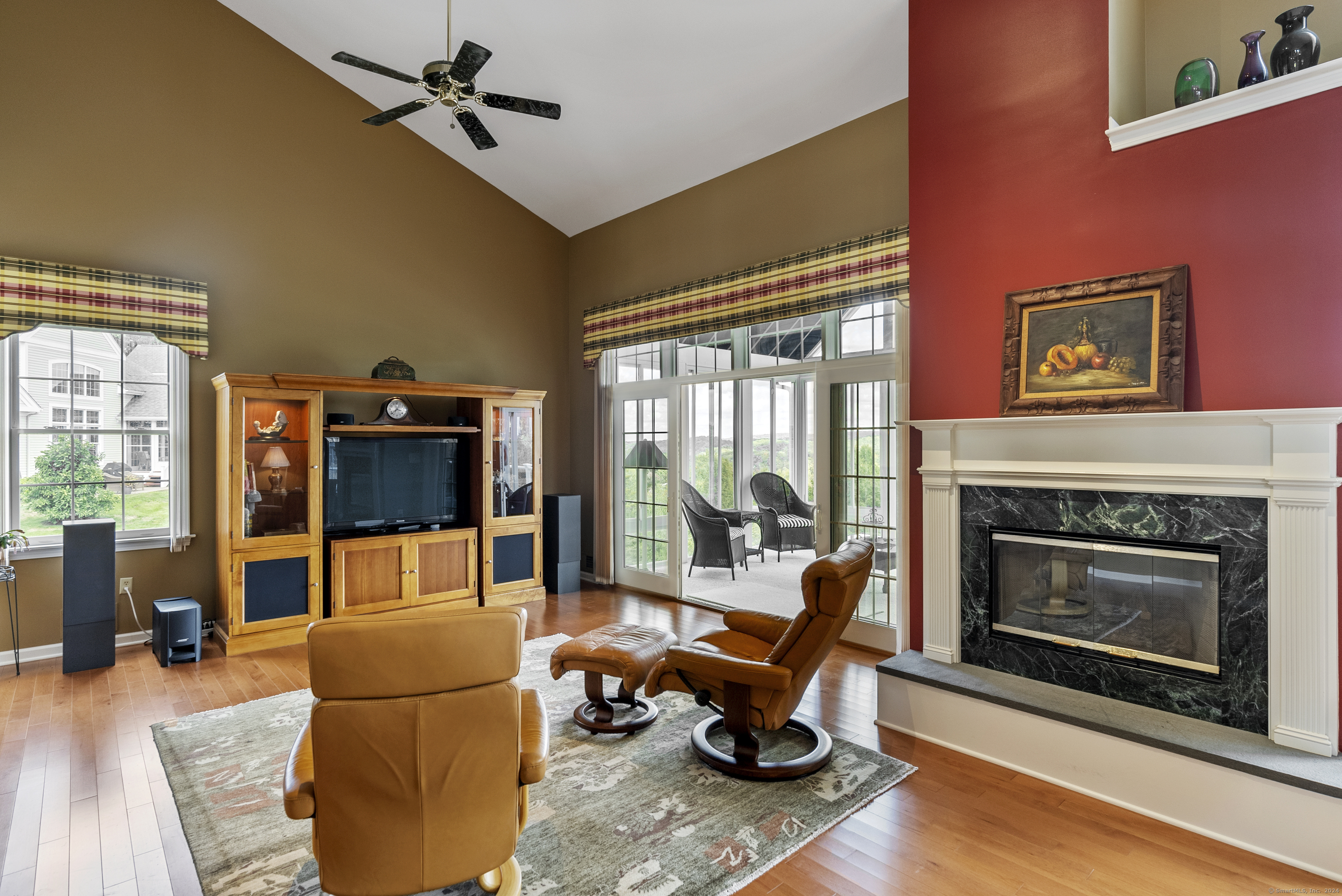 This striking Sunningdale model is set along the prestigious PGA golf course and offers an open, inviting layout designed for both everyday living and entertaining. The dining room flows seamlessly into the living room, highlighted by soaring ceilings and a stunning gas fireplace, while the sun-filled eat-in kitchen is perfect for gathering open to a charming sunroom providing a peaceful spot to take in the views year-round. The first-floor primary suite is a private retreat, featuring a spacious design, spa-like bath, and generous walk-in closets. Expansive windows throughout bathe the home in natural light, showcasing every detail. Upstairs, you'll find a versatile loft-ideal for an office, den, or media room-along with two additional bedrooms. The lower level that has been partially finished with only a few steps left to fully finish along with a cedar closet! Step outside to dual decks on both levels, perfect for dining al fresco, entertaining, or simply enjoying the serene golf course setting. New driveway, New AC! Situated in a sought-after community, this home blends tranquility with the vibrant lifestyle of PGA living-offering comfort, style, and views that are second to none.