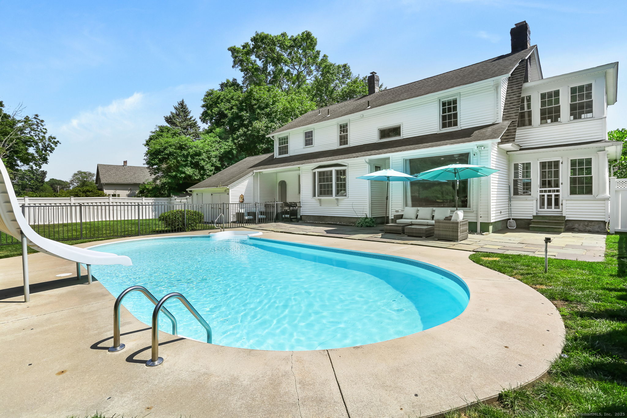 This classic updated 1920s Colonial has four-bedroom, two-and-a-half-bath. The home backs up to the 18th hole of the Mill River country club. Enjoy easy indoor/outdoor entertaining to the underground pool and patio. Main level also features stylish living room with fireplace, elegant large dining room, sun porch/office and powder room. The second floor includes a large primary suite with updated spa bathroom, walk-in closet and two bedrooms plus sunroom. Spacious lower level with all updated systems. Updates galore including new primary bath, installed central air, updated electric, converted from oil to gas, landscaping, waterproof basement, irrigation system, new kitchen floors, brought laundry upstairs and more. Two-car garage. Convenient to schools, shopping and train.