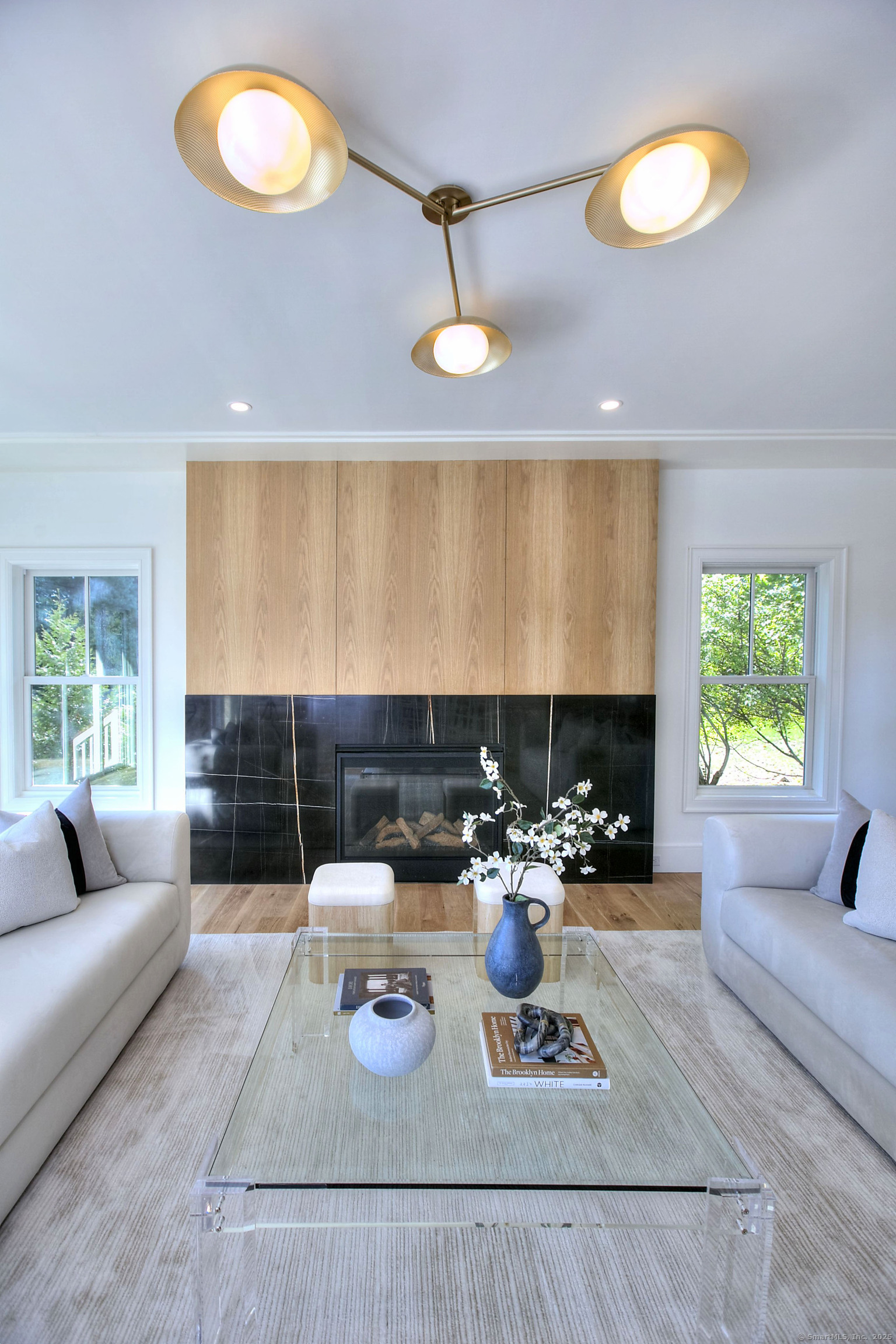 3 Hickory Hill Rd, an exceptional new construction sits on a quiet cut-de-sac close to Westport's Town Tennis courts & ball fields & 3 mins to Main St. With over 5000SF on 4 finished levels, this home blends modern design, luxury finishes, & thoughtful functionality. The main level features 9' ceilings, wide-plank white oak floors & a dramatic oak & glass staircase with white oak wall paneling.The chef's kitchen offers custom cabinetry, quartzite countertops & backsplash, a luxury Thermador appliance package & center island with seating for four. The breakfast area flows into a spacious FR with sliders to a bluestone patio. A gas-ready fireplace with stunning Sahara Noir marble surround & oak paneling is the focal point. Elegant tray-ceiling DR, walk-in pantry & mudroom with side & garage entry, large -format porcelain tile floors, custom oak -paneled cabinetry & benches complete the main level. Upstairs, the primary suite boasts a cathedral ceiling, dual walk-ins & spa- like bath with heated floors, Victoria & Albert soaking tub, large frameless shower with LED niches, custom cabinetry, marble counters & wall-mounted California Faucets. 2 BRS share a Jack & Jill bath, while the 4th has its own ensuite. The 3rd floor offers a private office & recreation/playroom & and the finished lower level includes the 5th BR, full bath & gym/media room. Professionally landscaped 0.34 acre lot with stone walls, sprinklers & room for a small pool. Home is EV charger & generator ready.