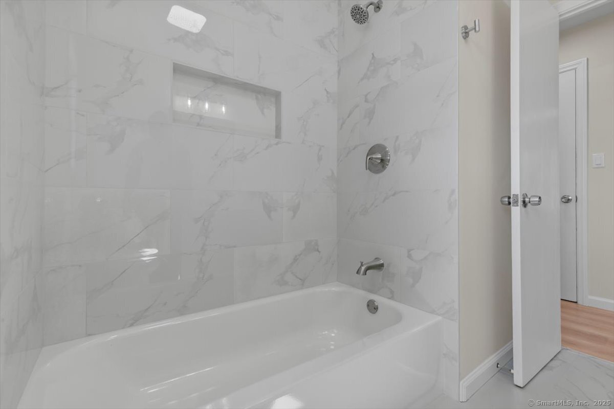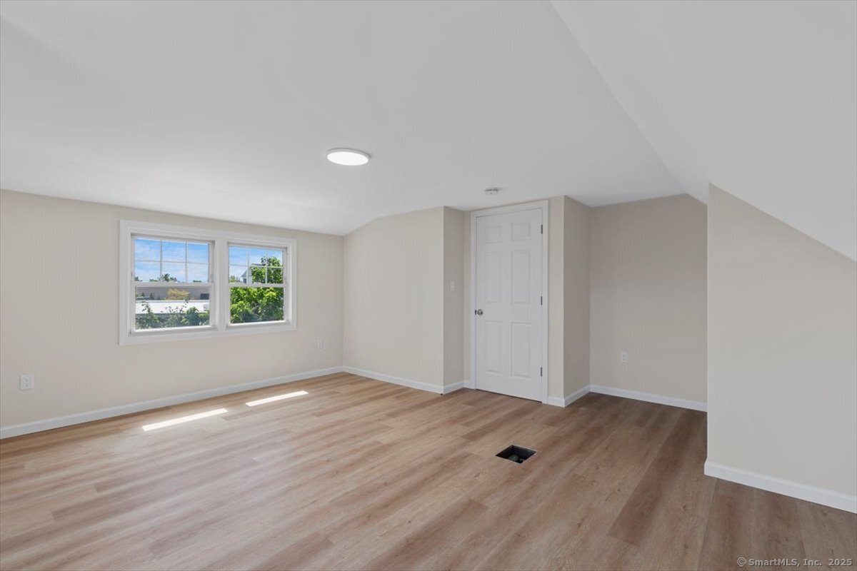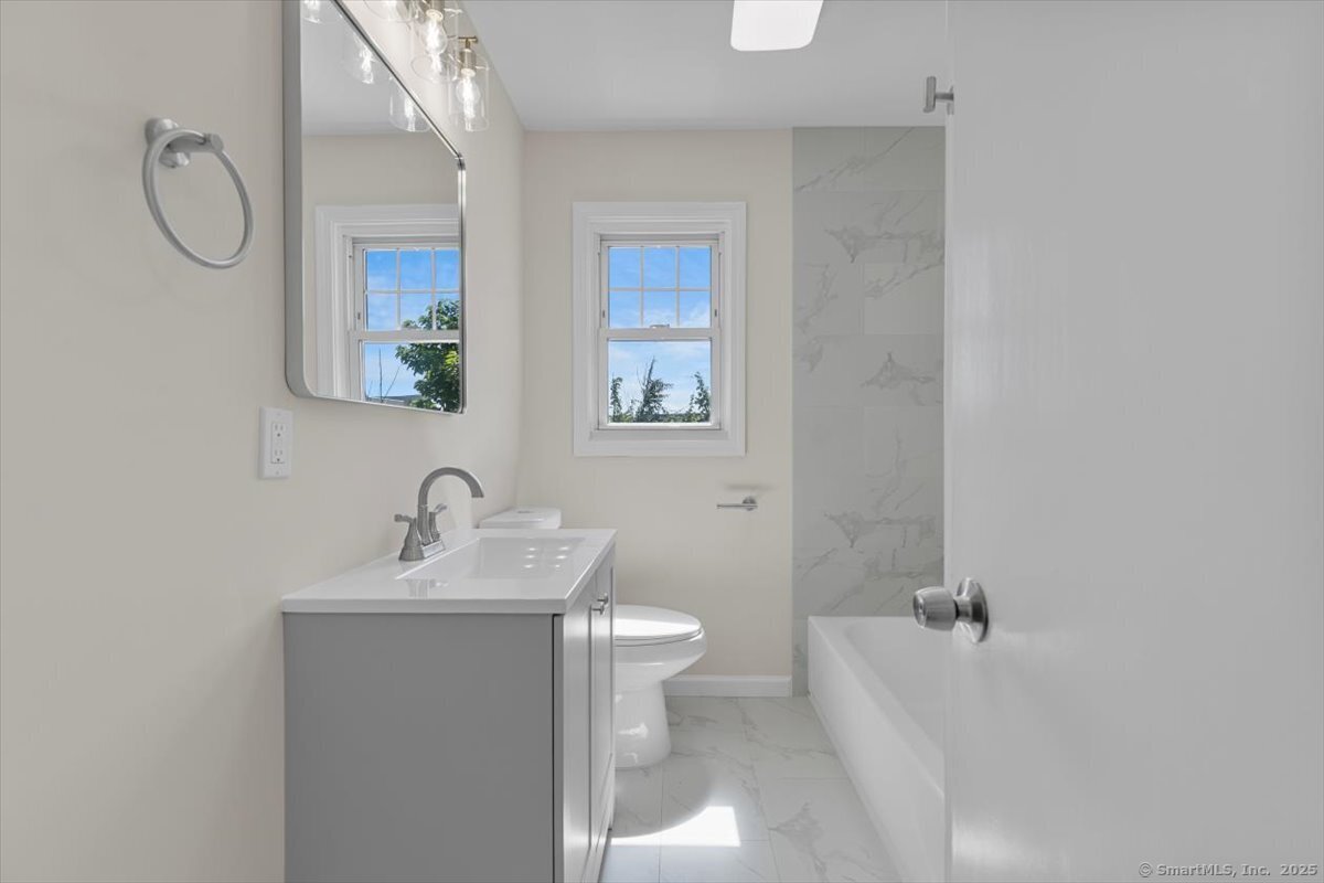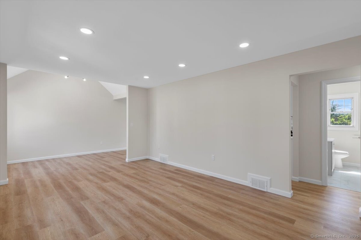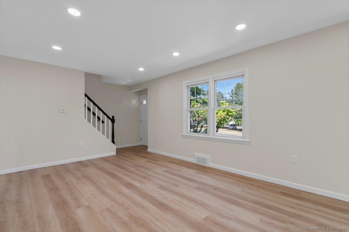Welcome to this beautifully updated Cape Cod in the heart of Milford, offering both comfort and convenience just minutes from downtown, the beaches, I-95, and Route 1. Inside, you'll find 4 bedrooms and 2 full baths, along with a thoughtfully updated kitchen featuring quartz counters, stainless steel appliances, and modern fixtures. The living area stands out with vaulted 9+ foot ceilings, recessed lighting, and sliding doors that open to a private rear patio-perfect for gatherings or quiet evenings at home. A detached garage and full basement provide plenty of storage, while the newly paved driveway ensures ample parking.