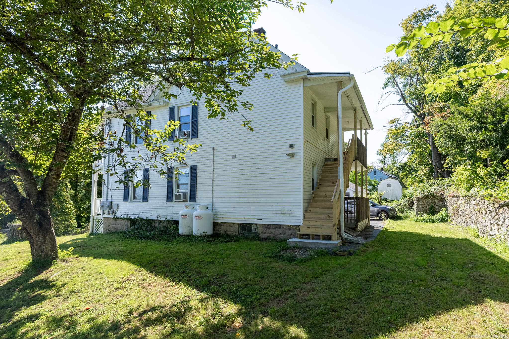 Multi-family in a lovely rural neighborhood with a large side yard. The first floor is owner occupied with high ceilings throughout, and features a spacious living room, eat-in-kitchen , 2 bedrooms, and a full bath. The 2nd and 3rd floors are combined and feature a living room, completely remodeled kitchen with new appliances, remodeled full bath, primary bedroom with walk-in closet, and a 2nd bedroom. Both units have wraparound porches. There are 2 additional rooms and common space on the 3rd floor with plenty of storage space. Large unfinished basement with laundry hookups. Dry and clean with exterior access Brand new roof. 2 car detached garage. Located in a convenient yet private location.